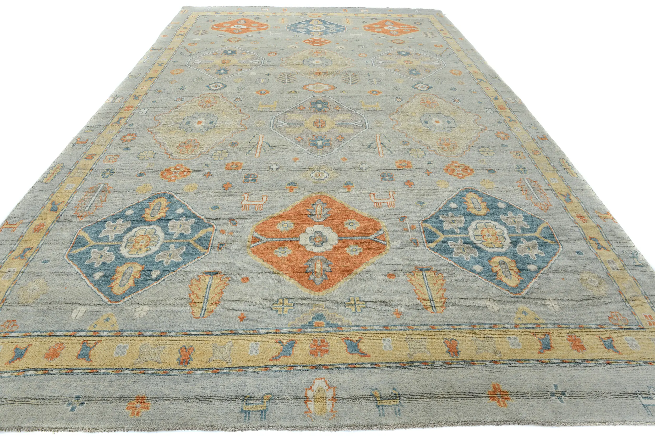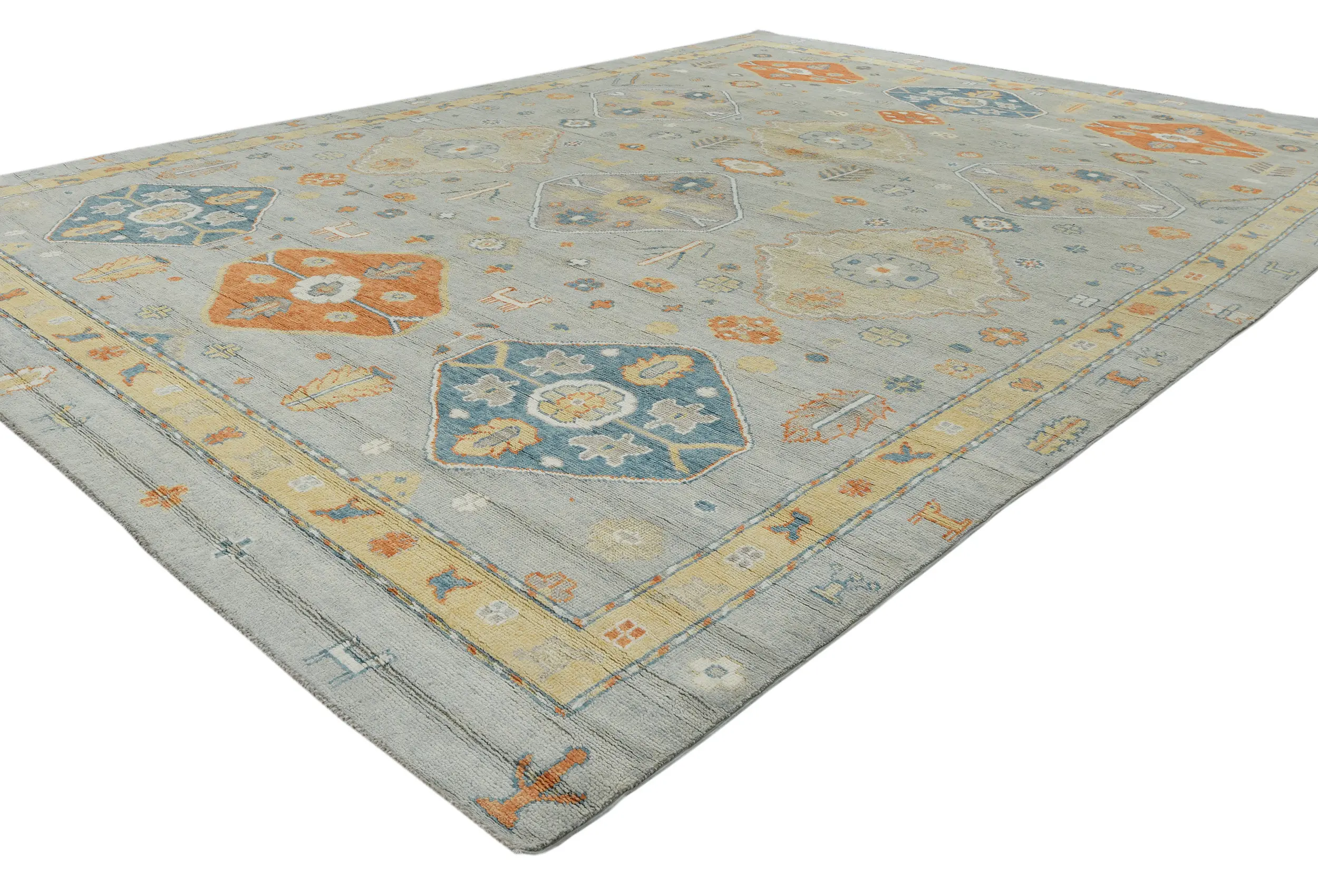 Muted Colors Floral Transitional 10X14 Oushak Oriental Rug