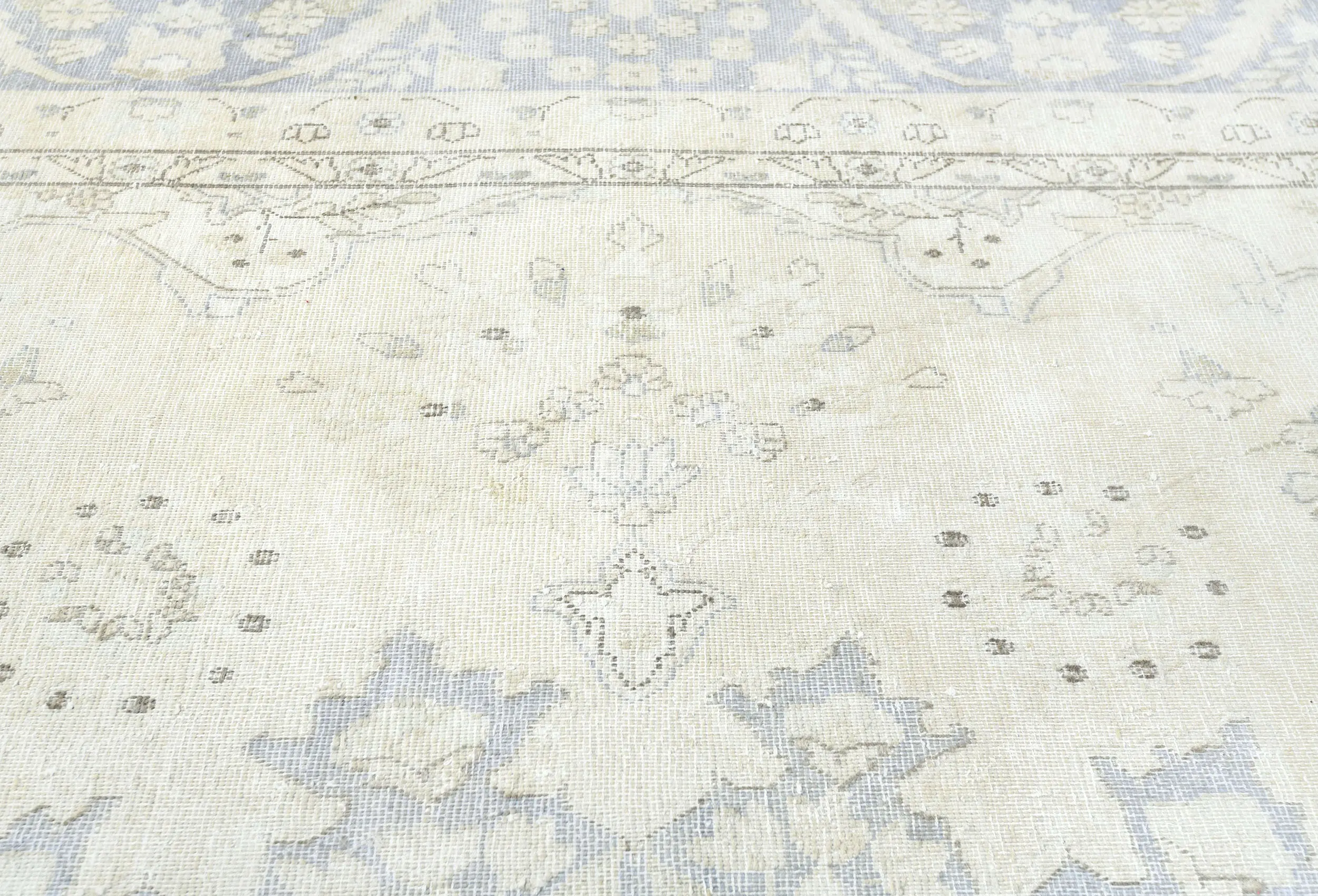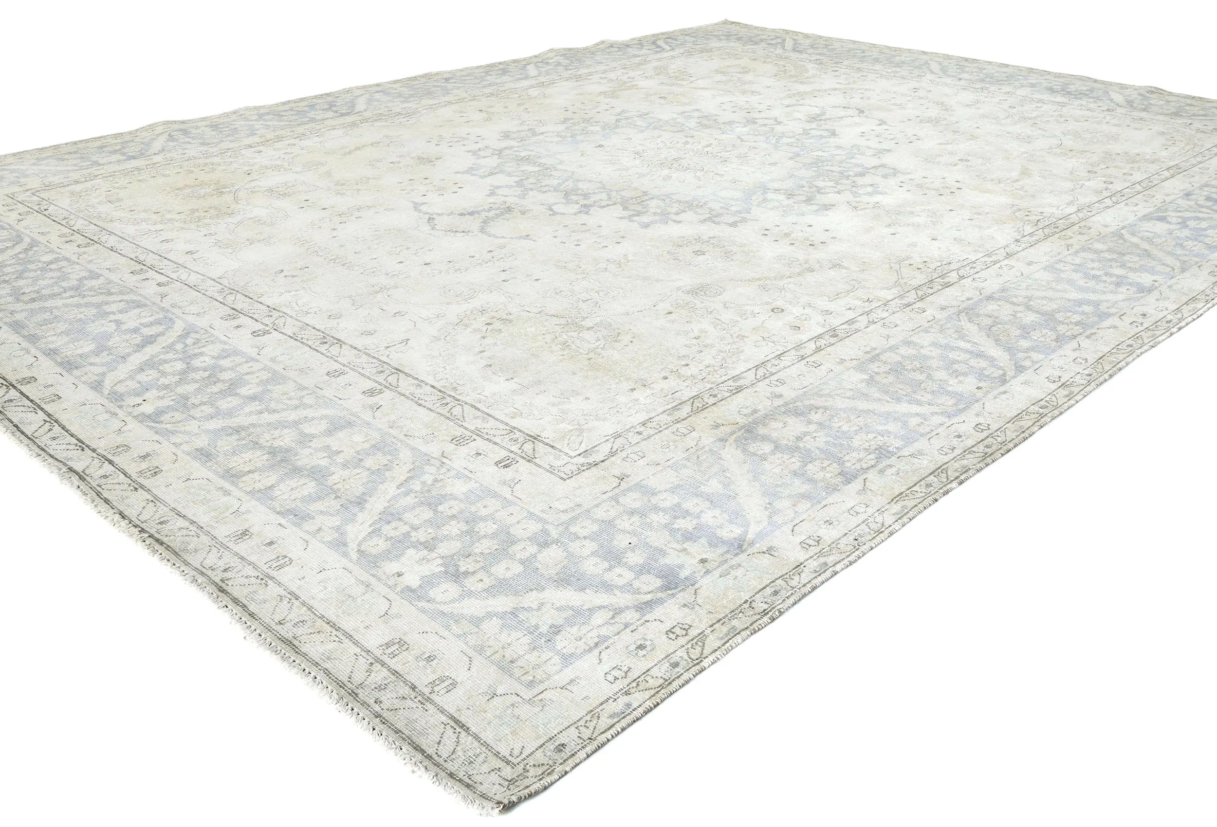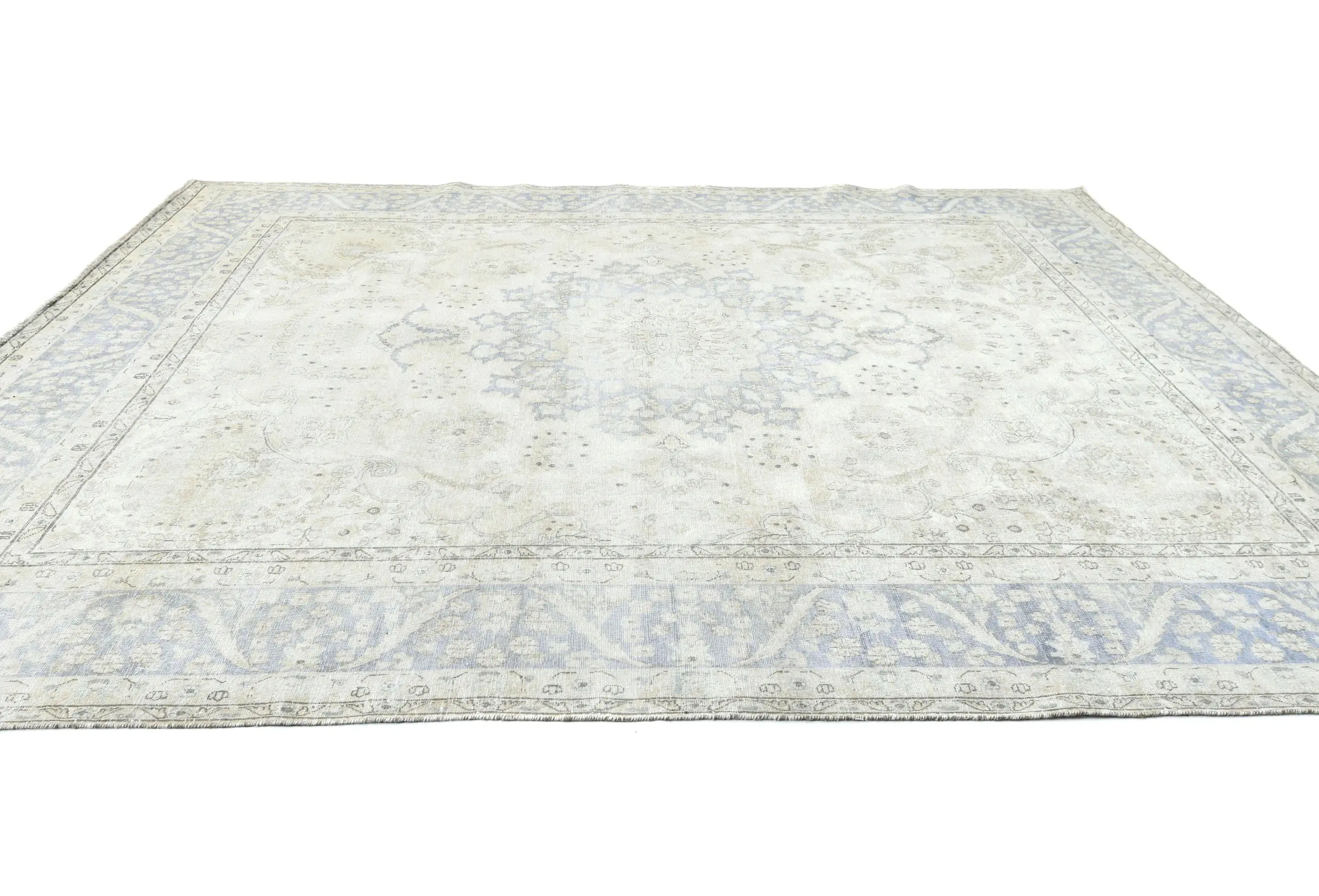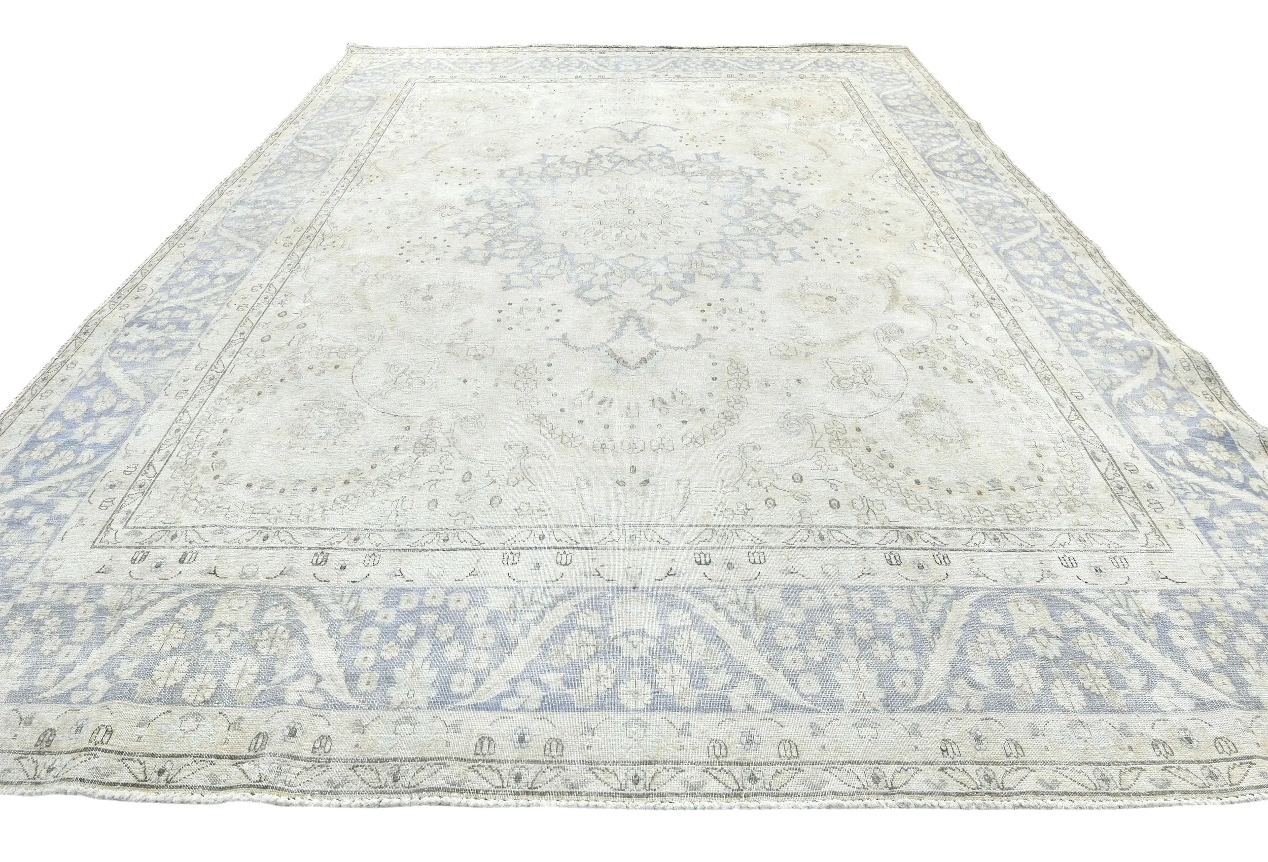 Muted Cream Floral 10X13 Distressed Vintage Oriental Rug