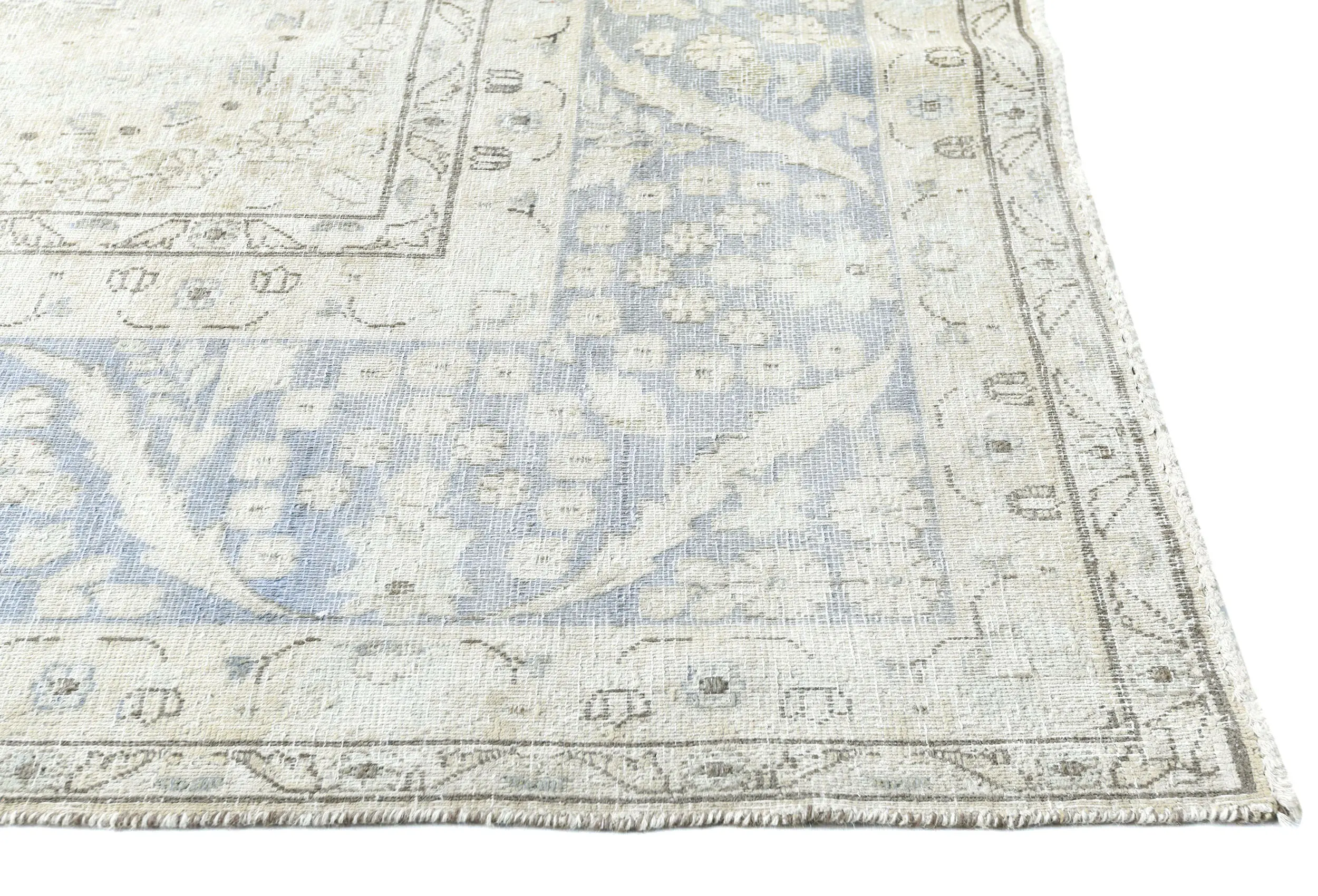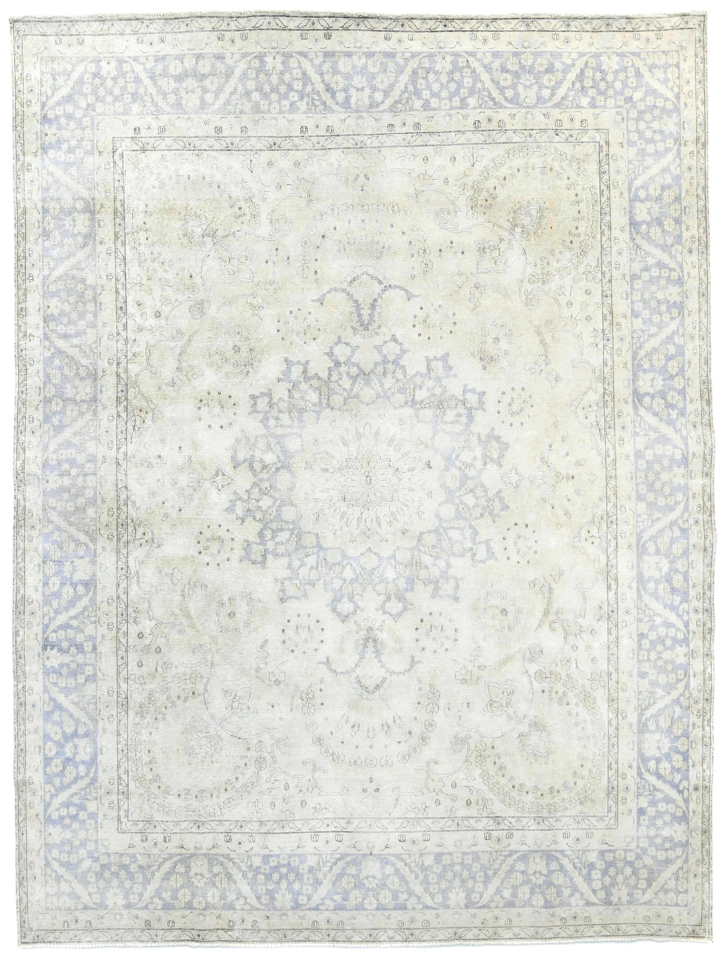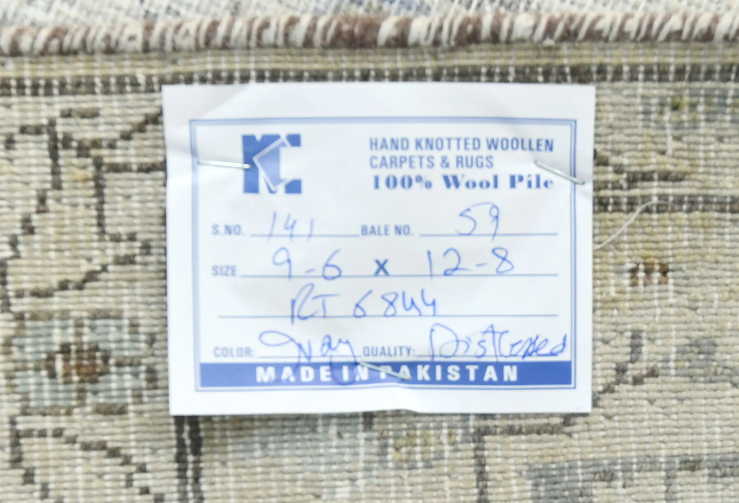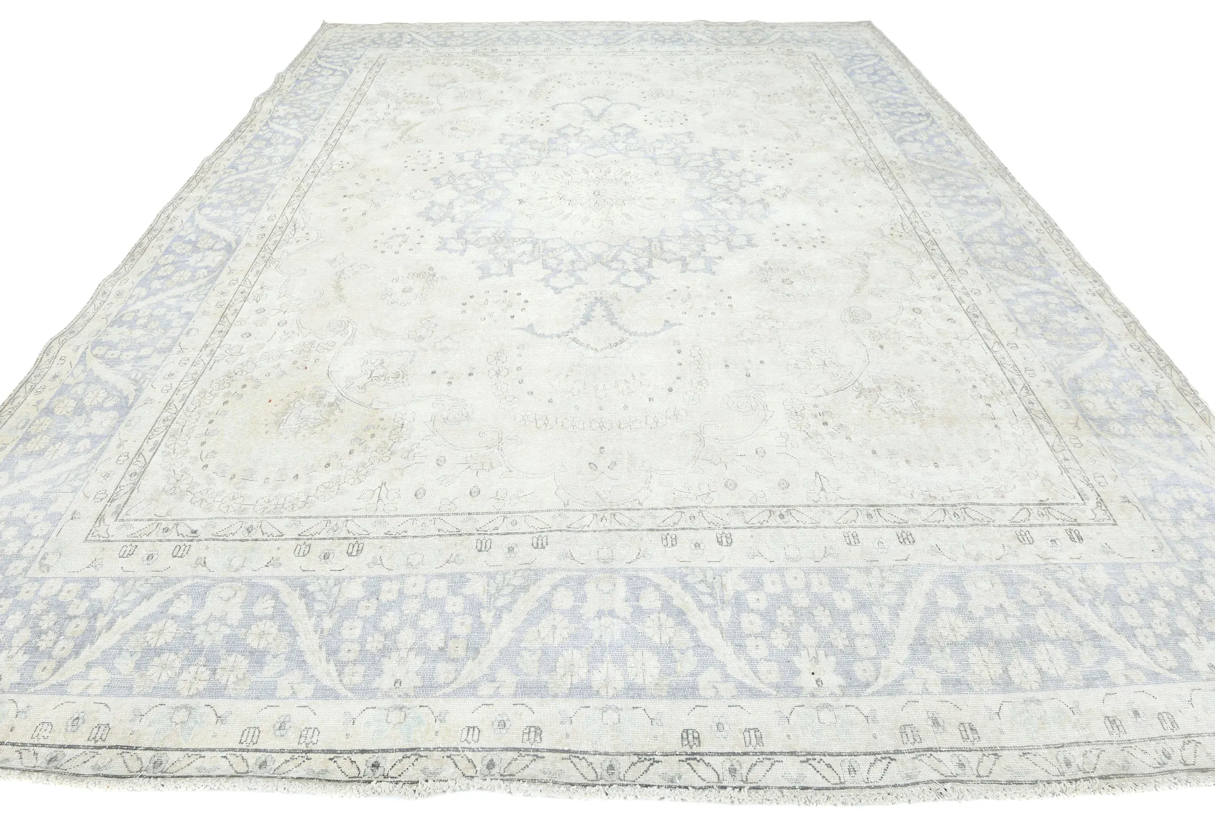 Muted Cream Floral 10X13 Distressed Vintage Oriental Rug
