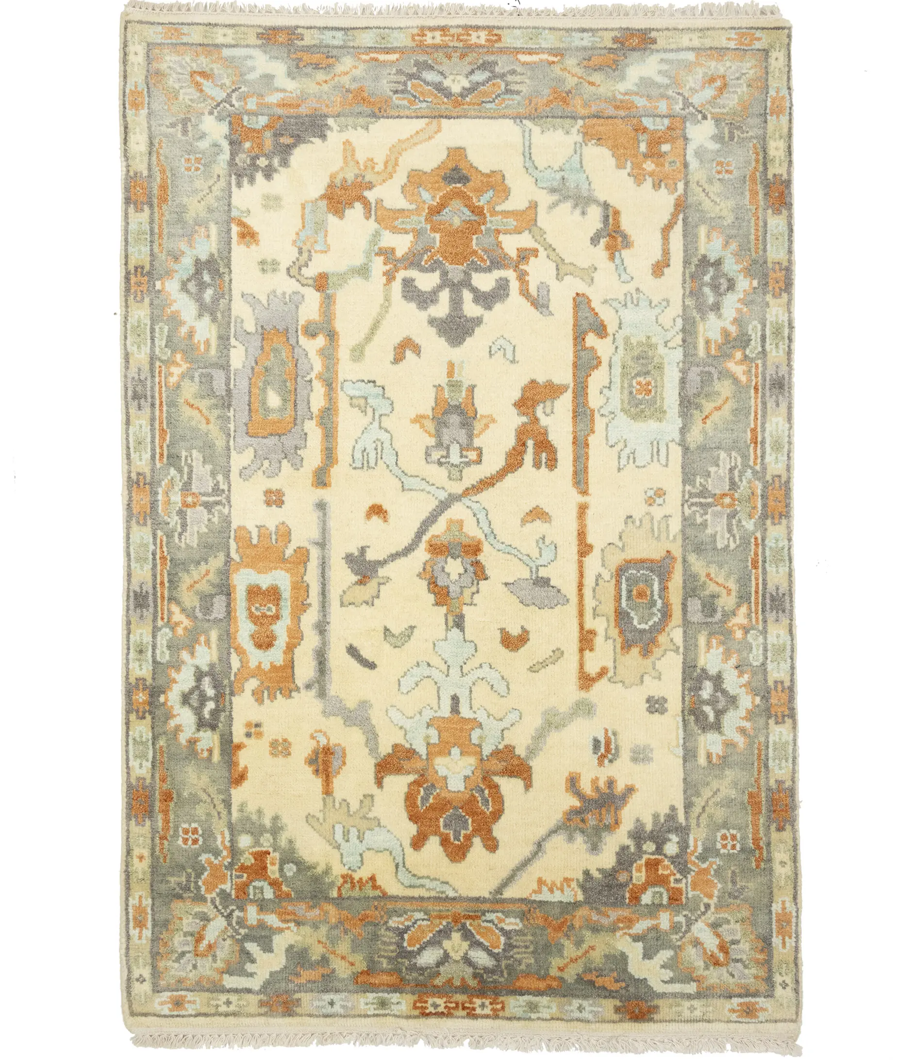 Muted Cream Floral 4X6 Oushak Chobi Oriental Rug