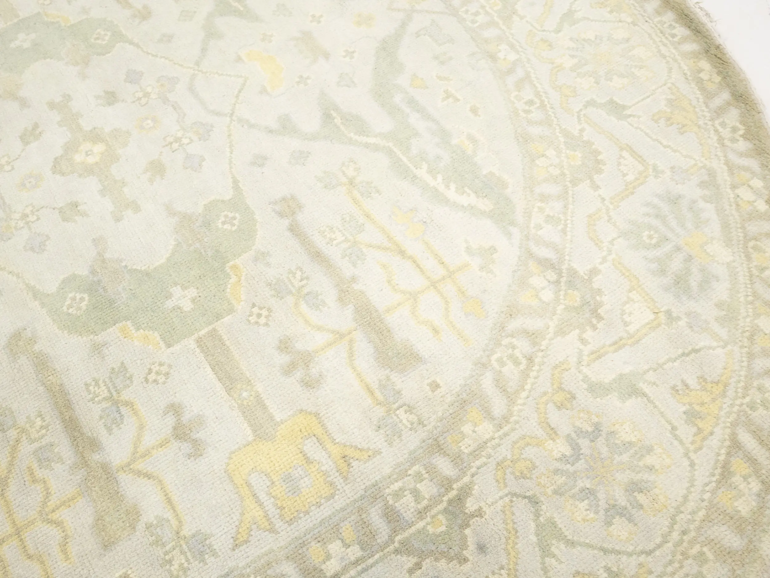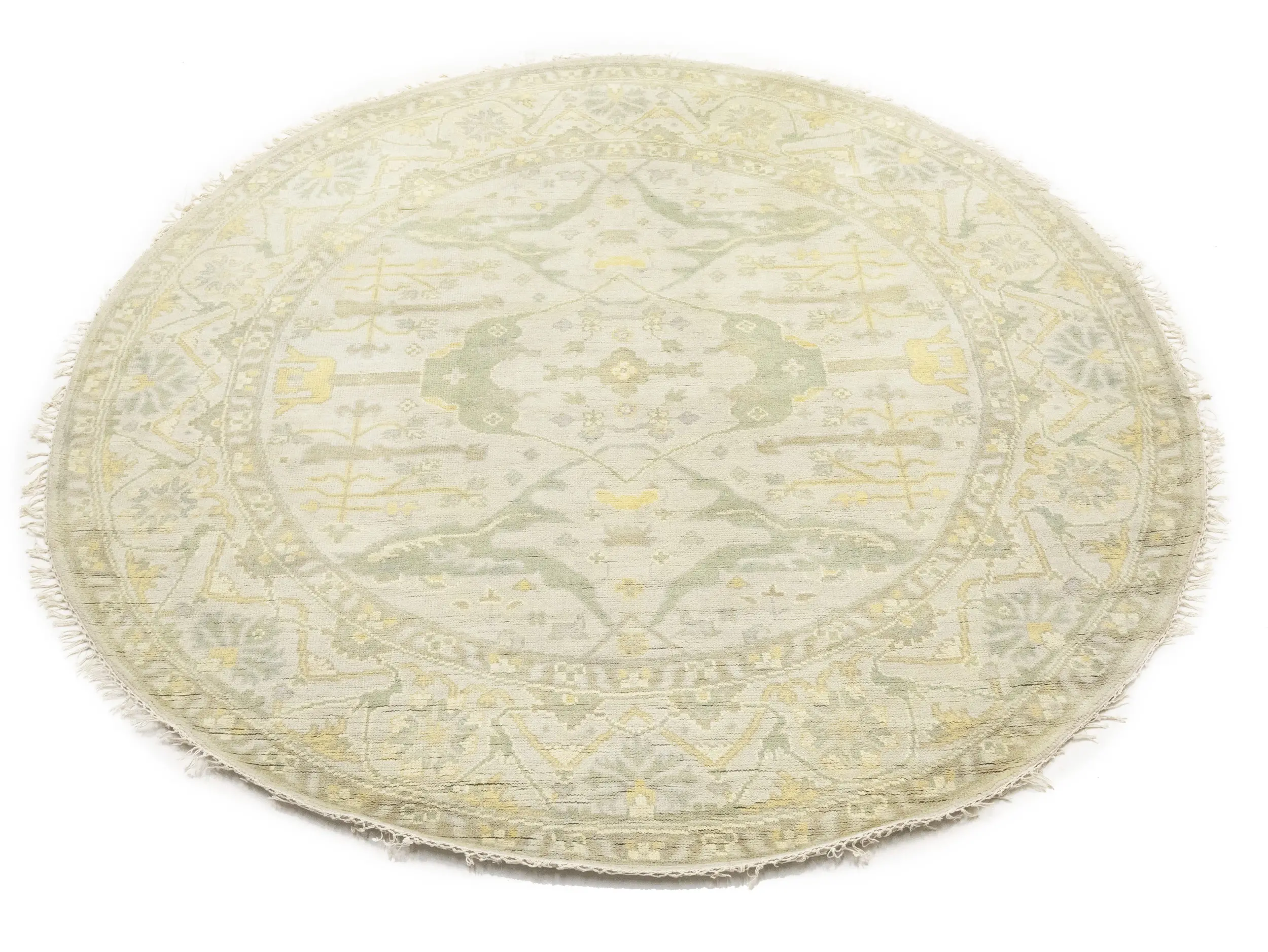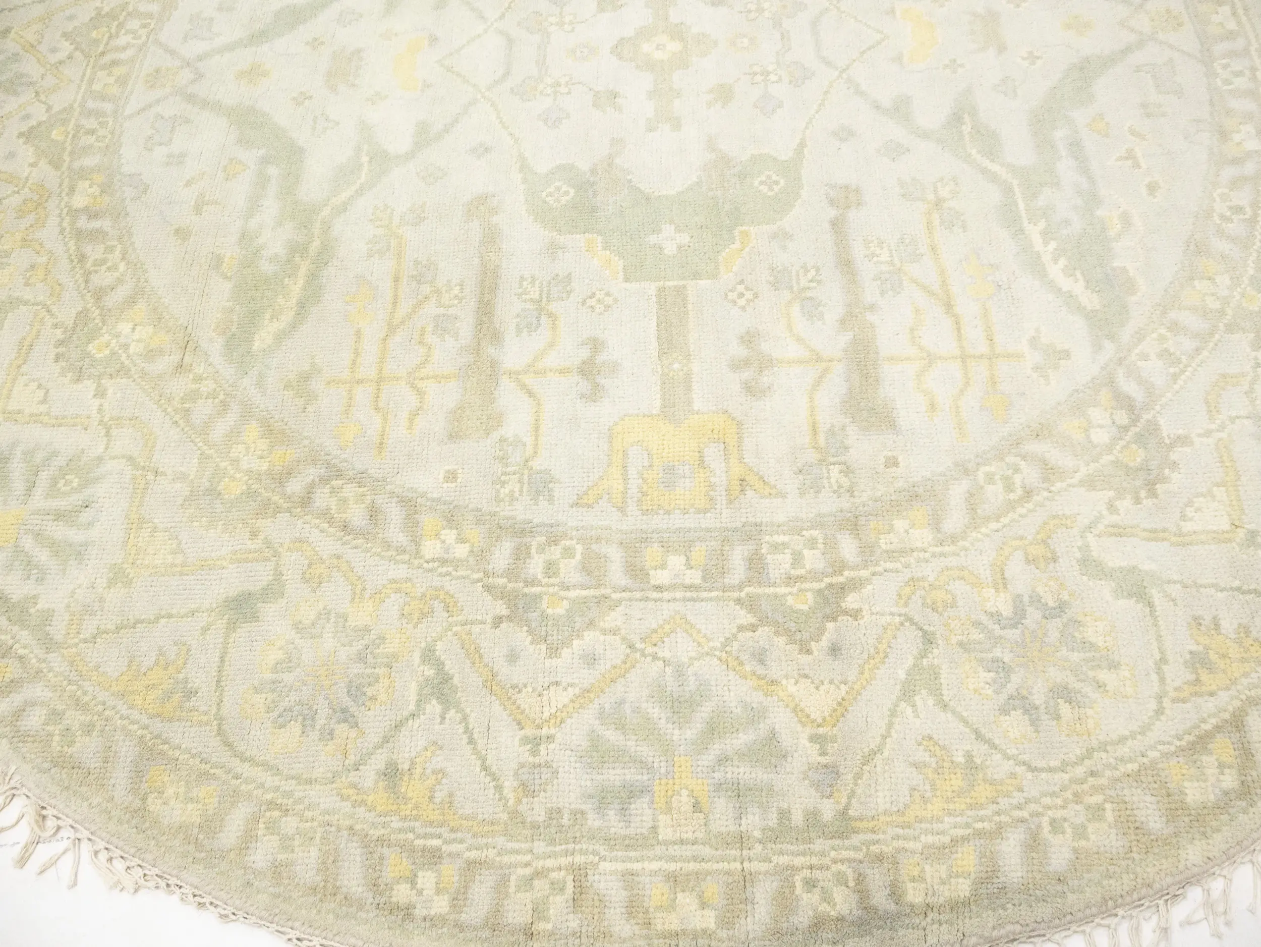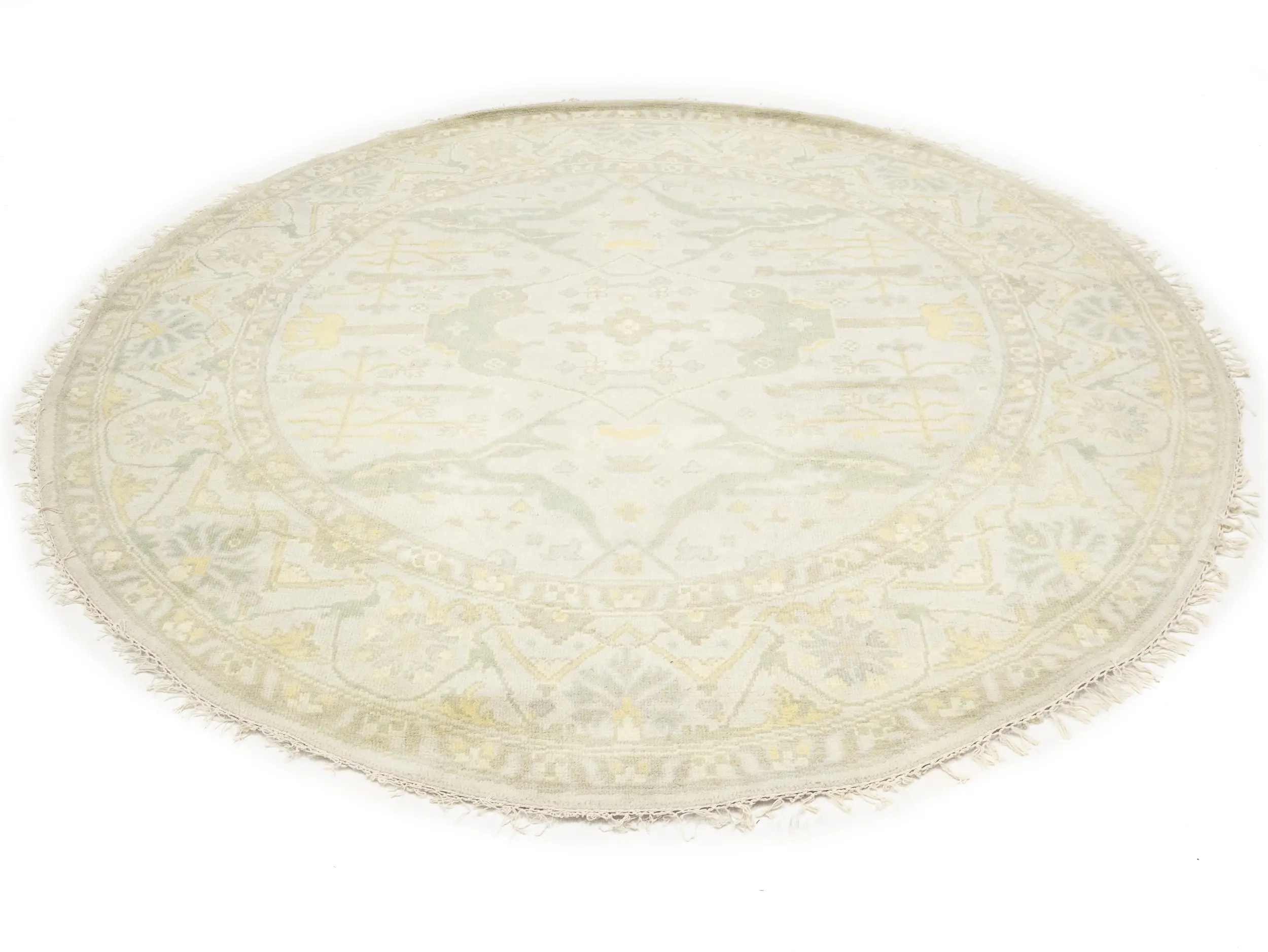Muted Cream Floral 8X8 Oushak Chobi Oriental Round Rug