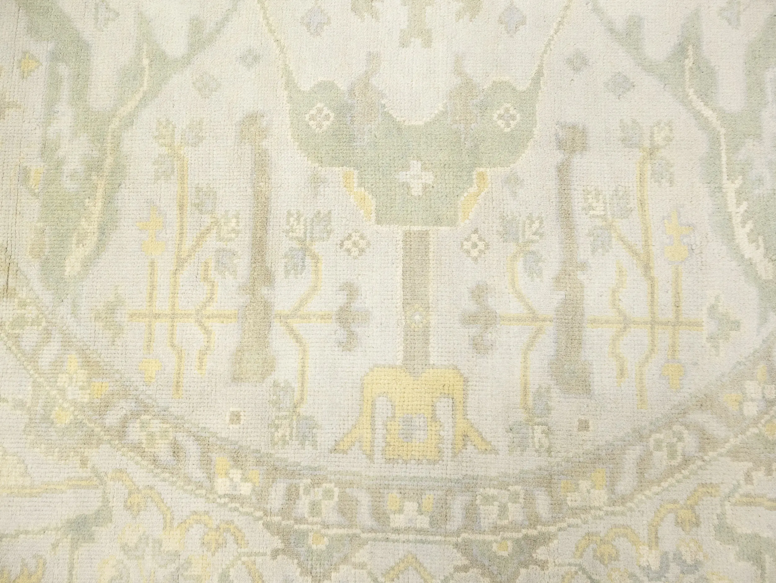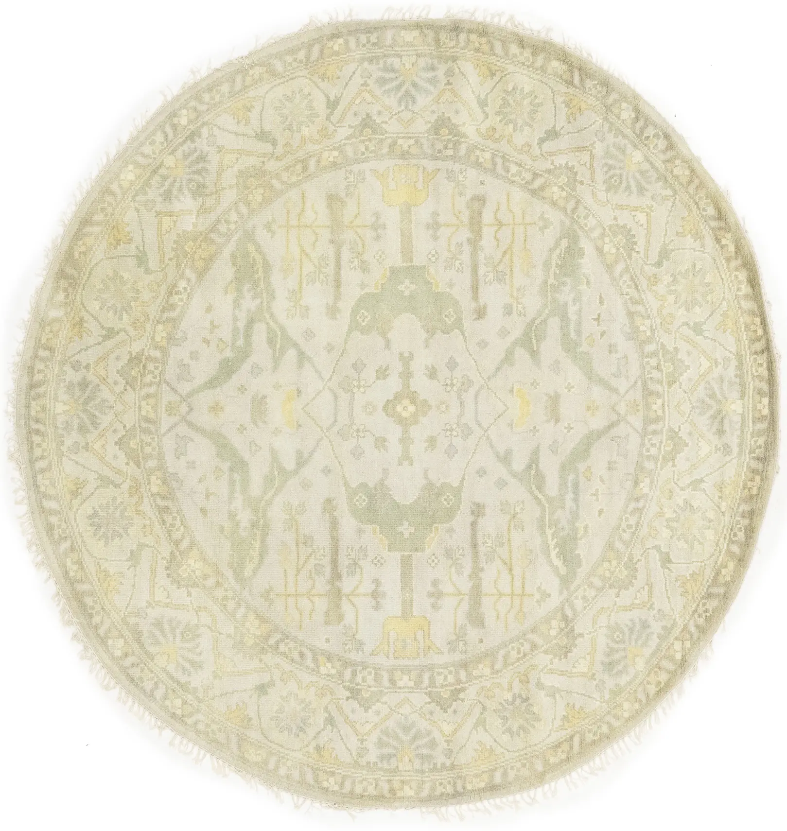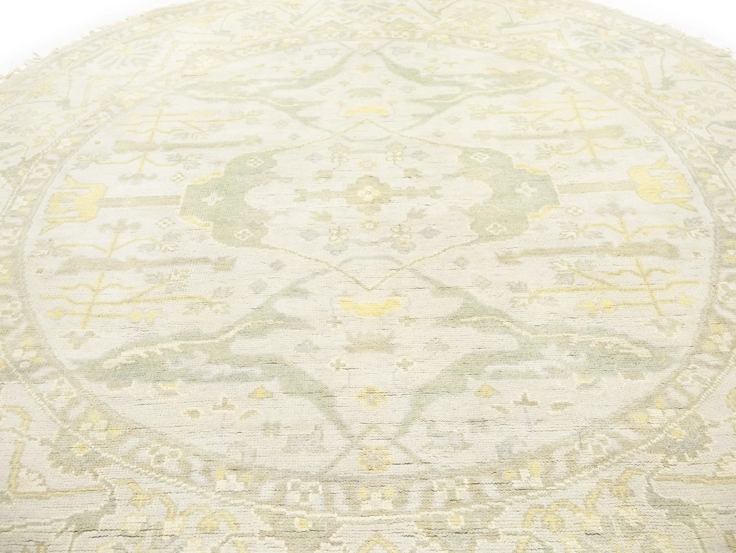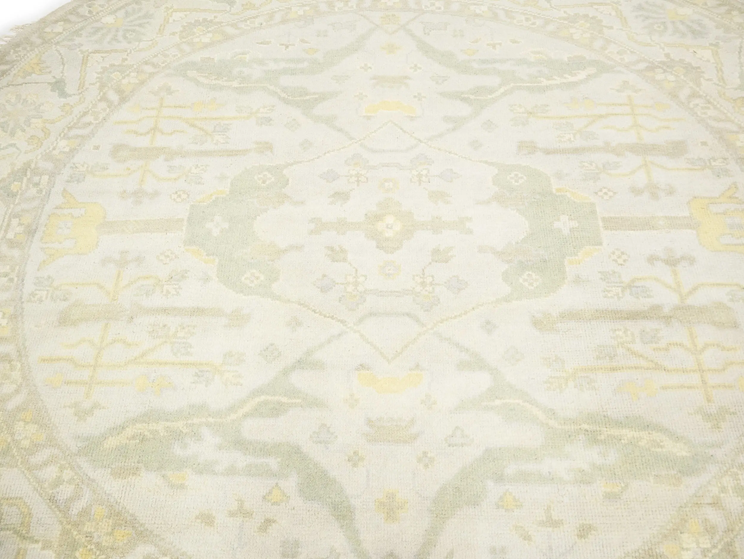 Muted Cream Floral 8X8 Oushak Chobi Oriental Round Rug