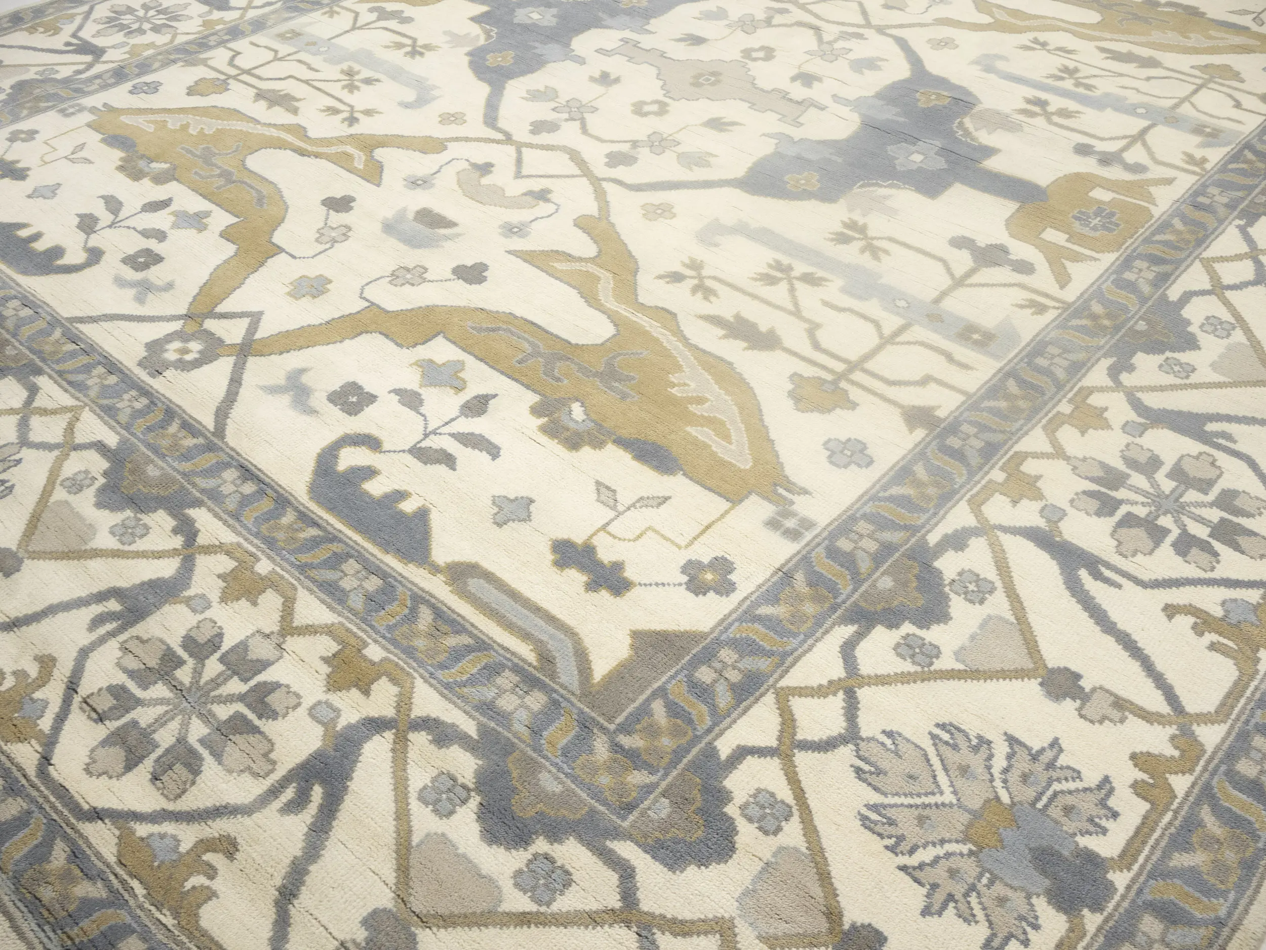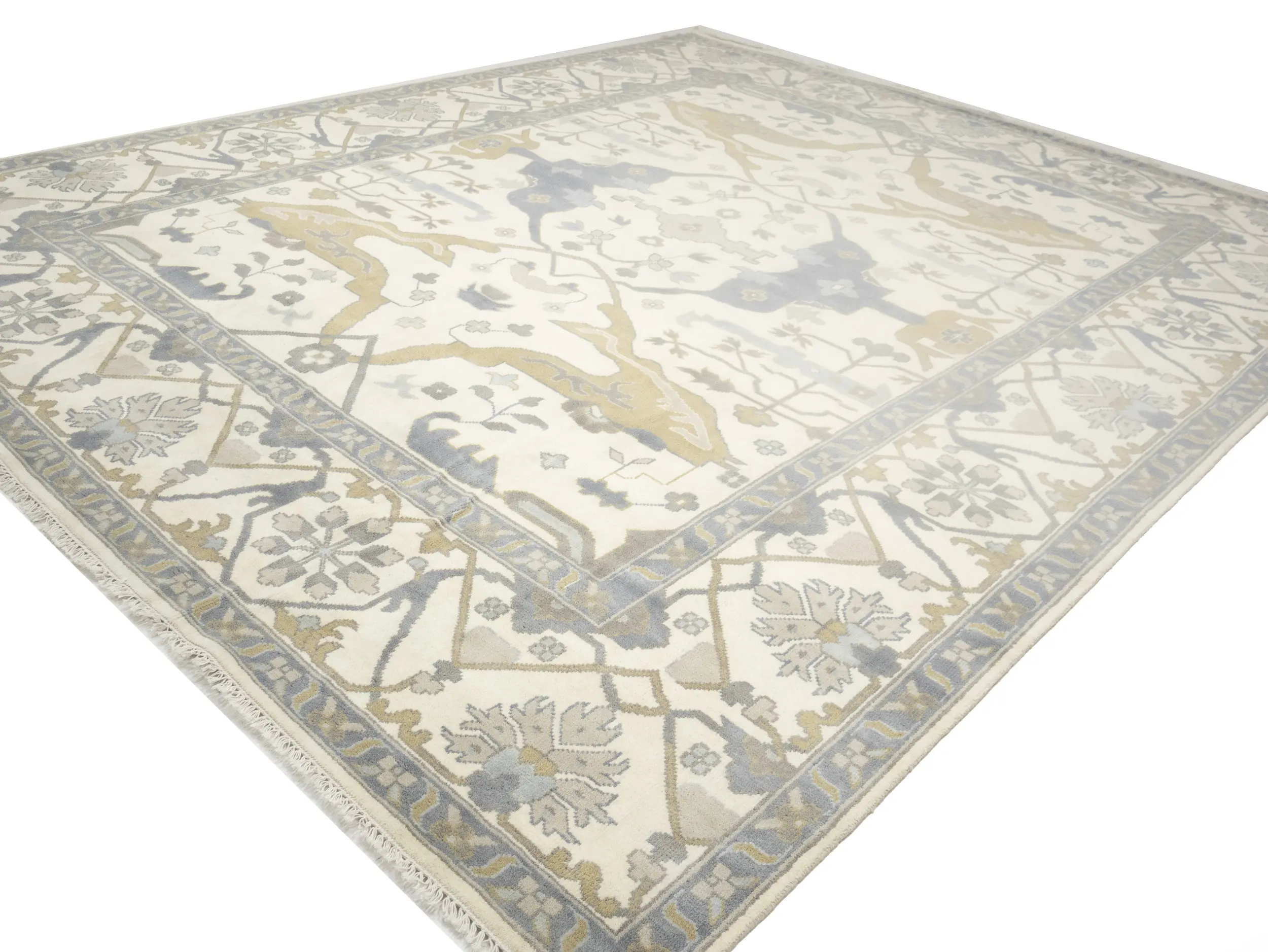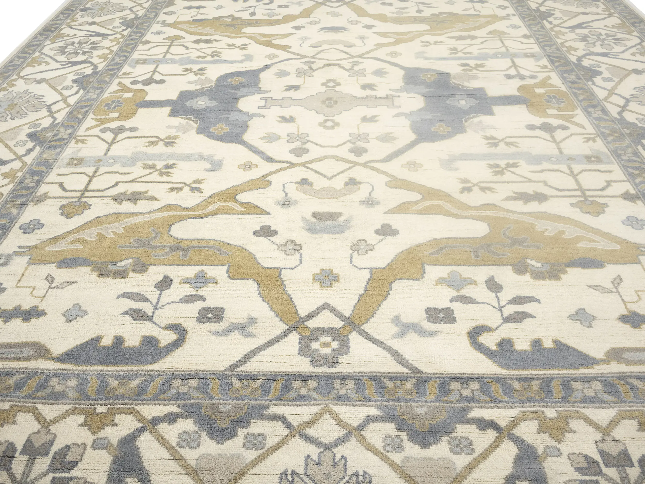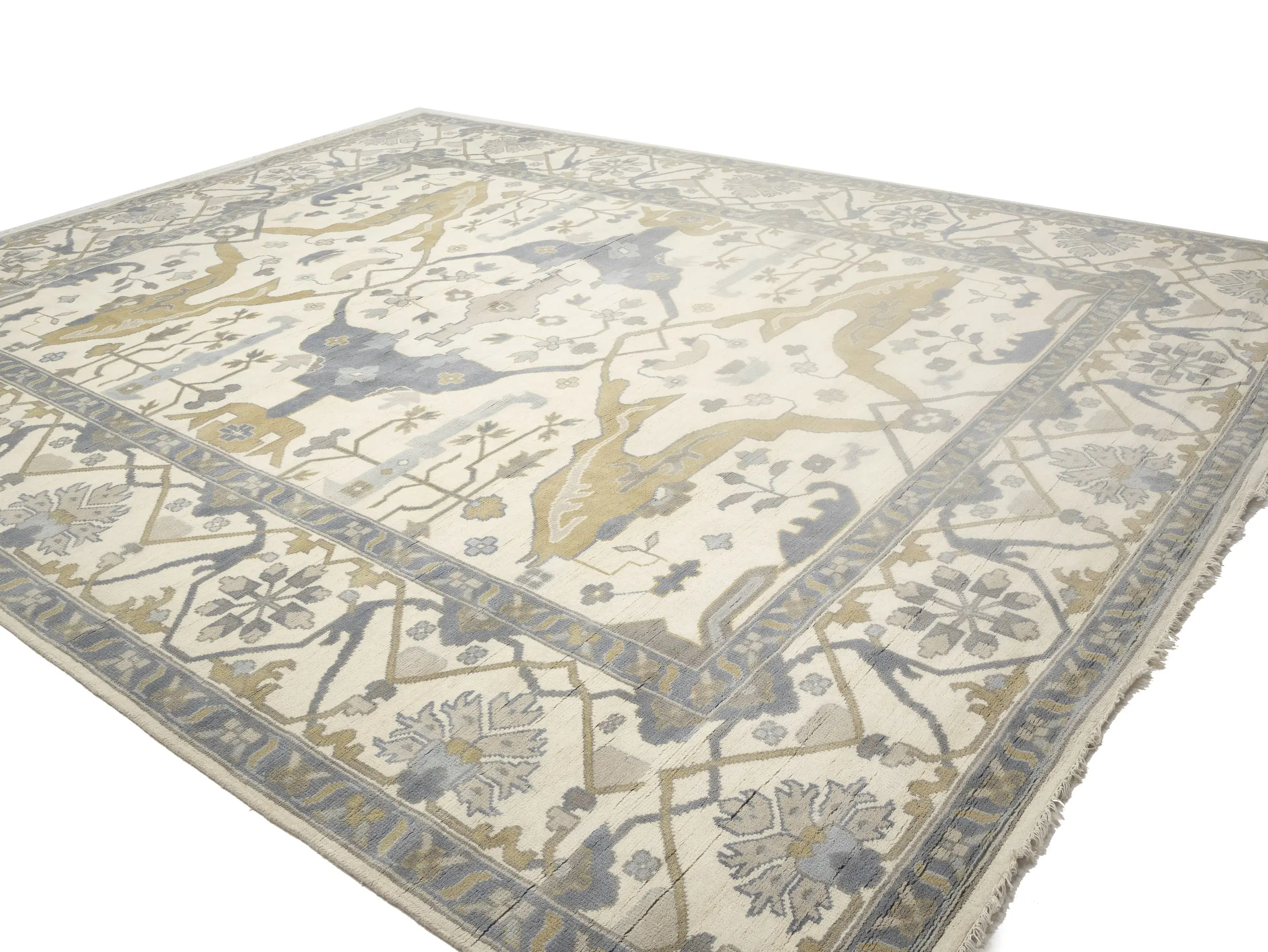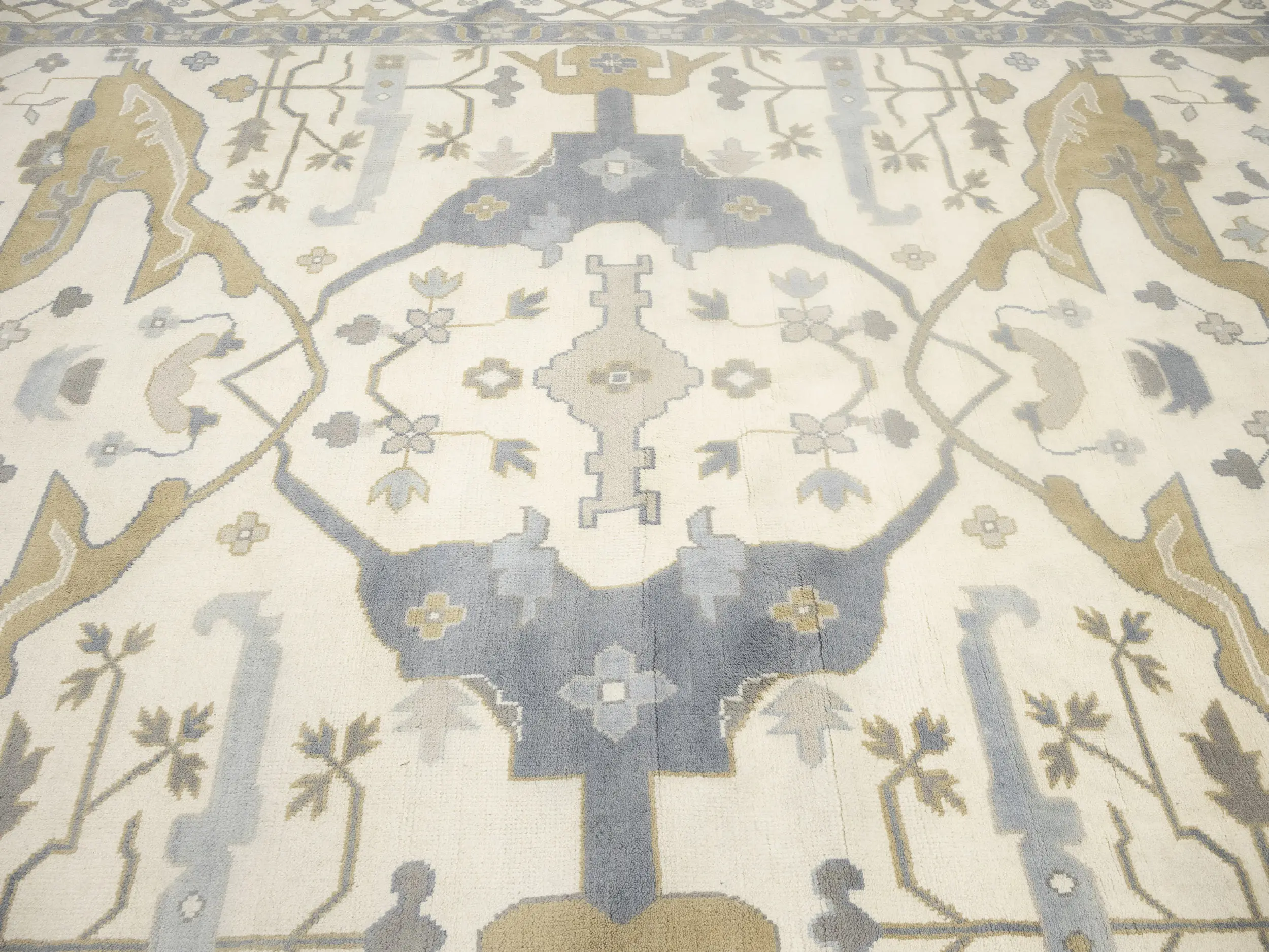 Muted Cream Floral Transitional 12X15 Oushak Oriental Rug