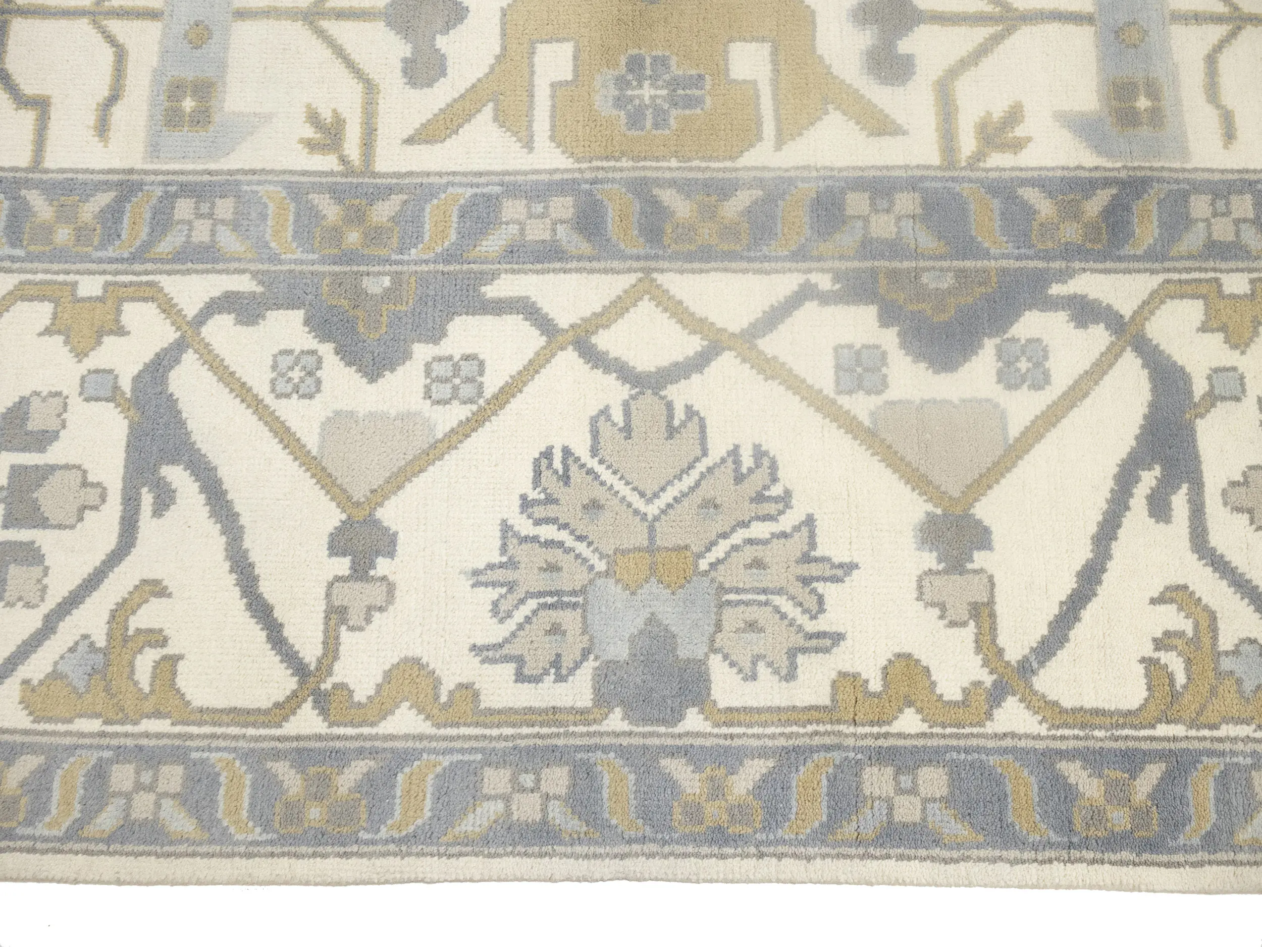 This genuine 12X15 cream new Oriental rug was made by the hands of gifted weavers inspired by a variety of spectacular artistic designs, to recreate the aged look of the original piece with a richness of color and ornately patterned background field. What set this vintage style Oriental area rug from the others are the material and dye used (wool pile and cotton foundation), knot count, ancient designs, fantastic grades, and its regional historical connection: it has deep roots, from the story of the people who produced it to the meaning of the symbols and colors displayed across its canvas that have been praised for centuries. This Indian home décor carpet will be completely cozy and inviting that never will go out of style! Also, this Oriental rug would be among your most valuable treasures, it is a great investment that accrues value over time, and it will last for generations because was woven with high-quality, all-natural wool. Environmentally friendly, opulent yet affordable; this rug will give you a thorough amount of character to help define your living space with elegance and warmth that will capture the eyes and attention of your audience (homeowners, designers, decorators, family and friends).