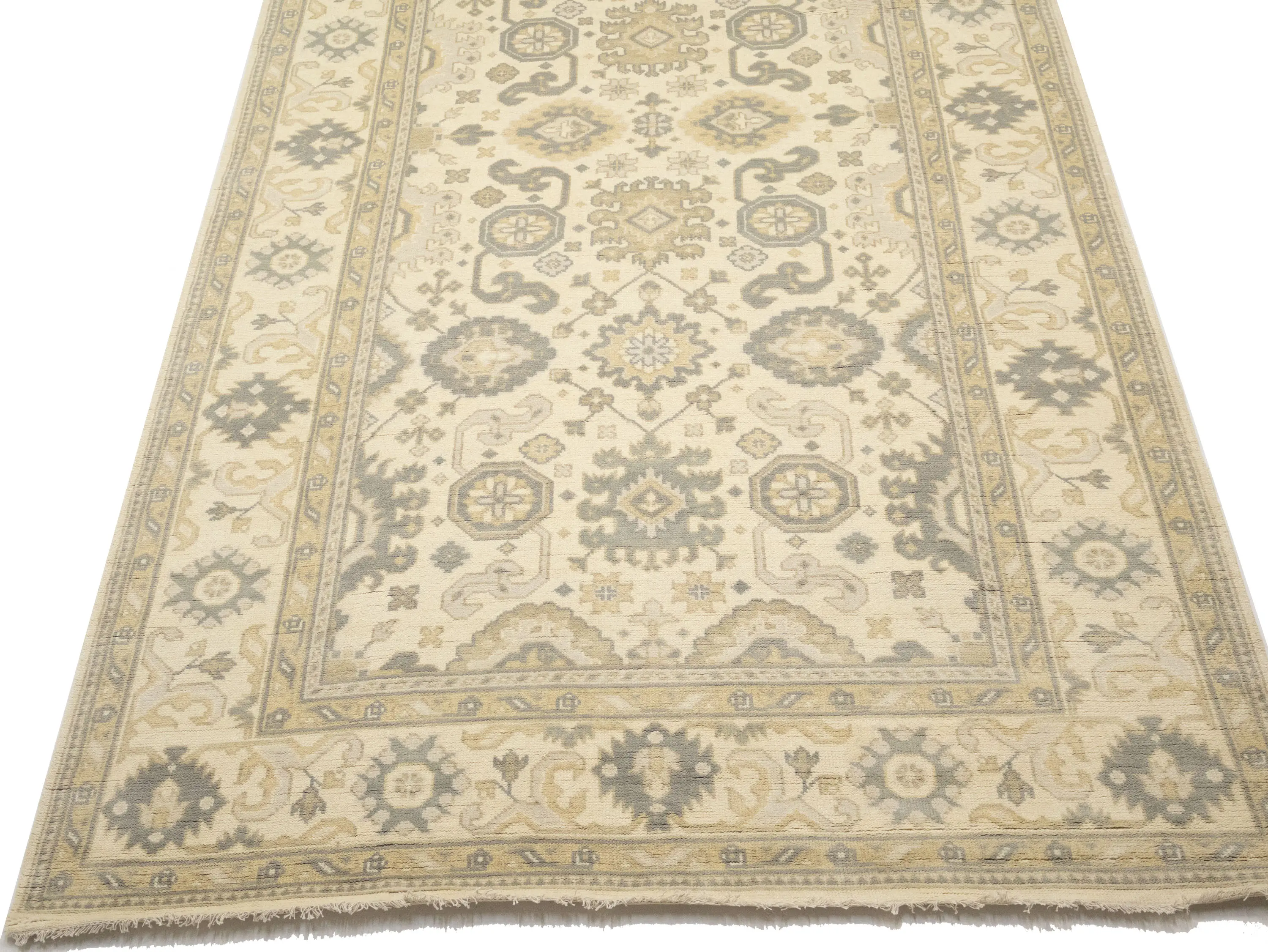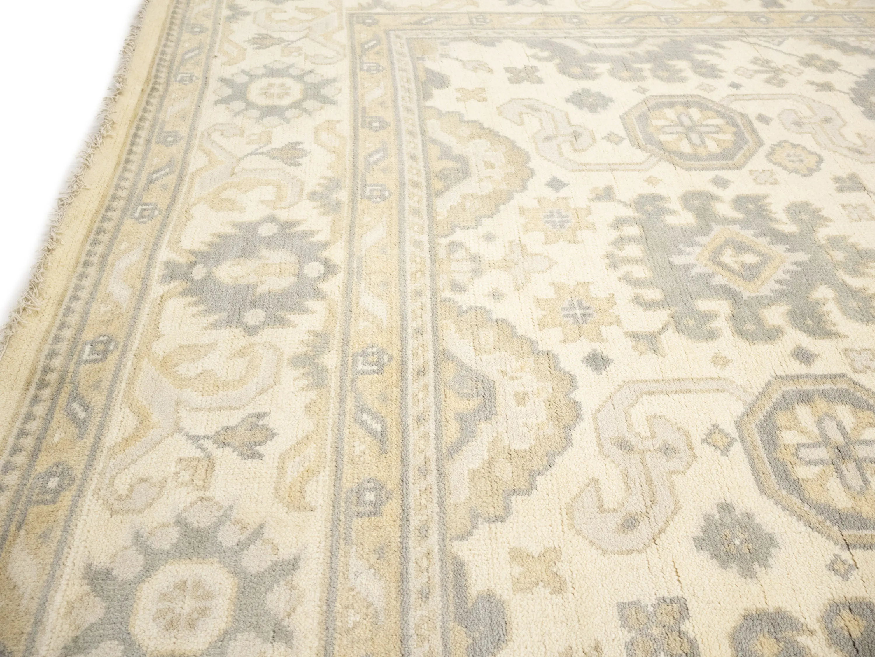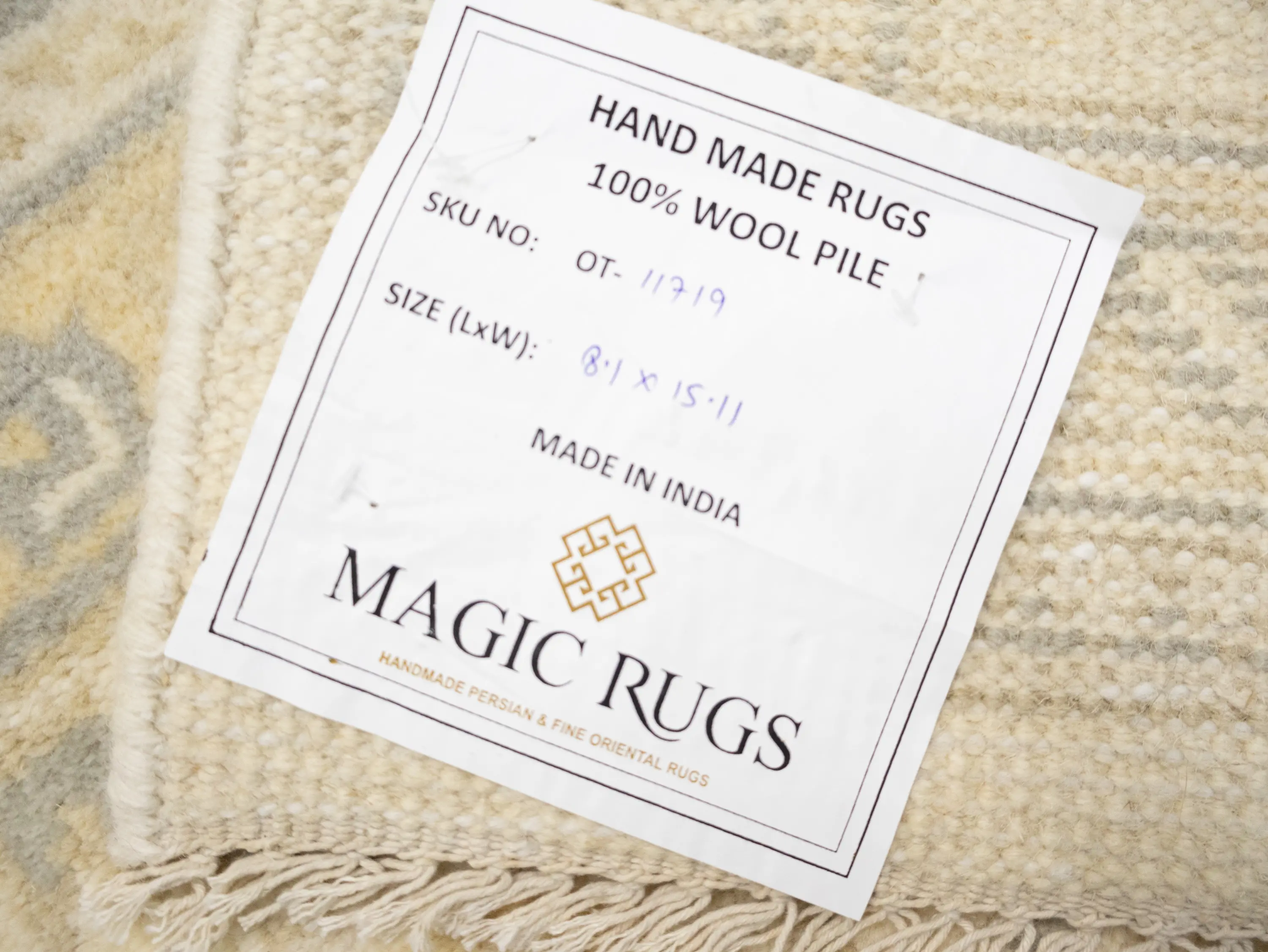 This genuine 8X16 cream new Oriental rug was made by the hands of gifted weavers inspired by a variety of spectacular artistic designs, to recreate the aged look of the original piece with a richness of color and ornately patterned background field. What set this vintage style Oriental area rug from the others are the material and dye used (wool pile and cotton foundation), knot count, ancient designs, fantastic grades, and its regional historical connection: it has deep roots, from the story of the people who produced it to the meaning of the symbols and colors displayed across its canvas that have been praised for centuries. This Indian home décor carpet will be completely cozy and inviting that never will go out of style! Also, this Oriental rug would be among your most valuable treasures, it is a great investment that accrues value over time, and it will last for generations because was woven with high-quality, all-natural wool. Environmentally friendly, opulent yet affordable; this rug will give you a thorough amount of character to help define your living space with elegance and warmth that will capture the eyes and attention of your audience (homeowners, designers, decorators, family and friends). OT-11719