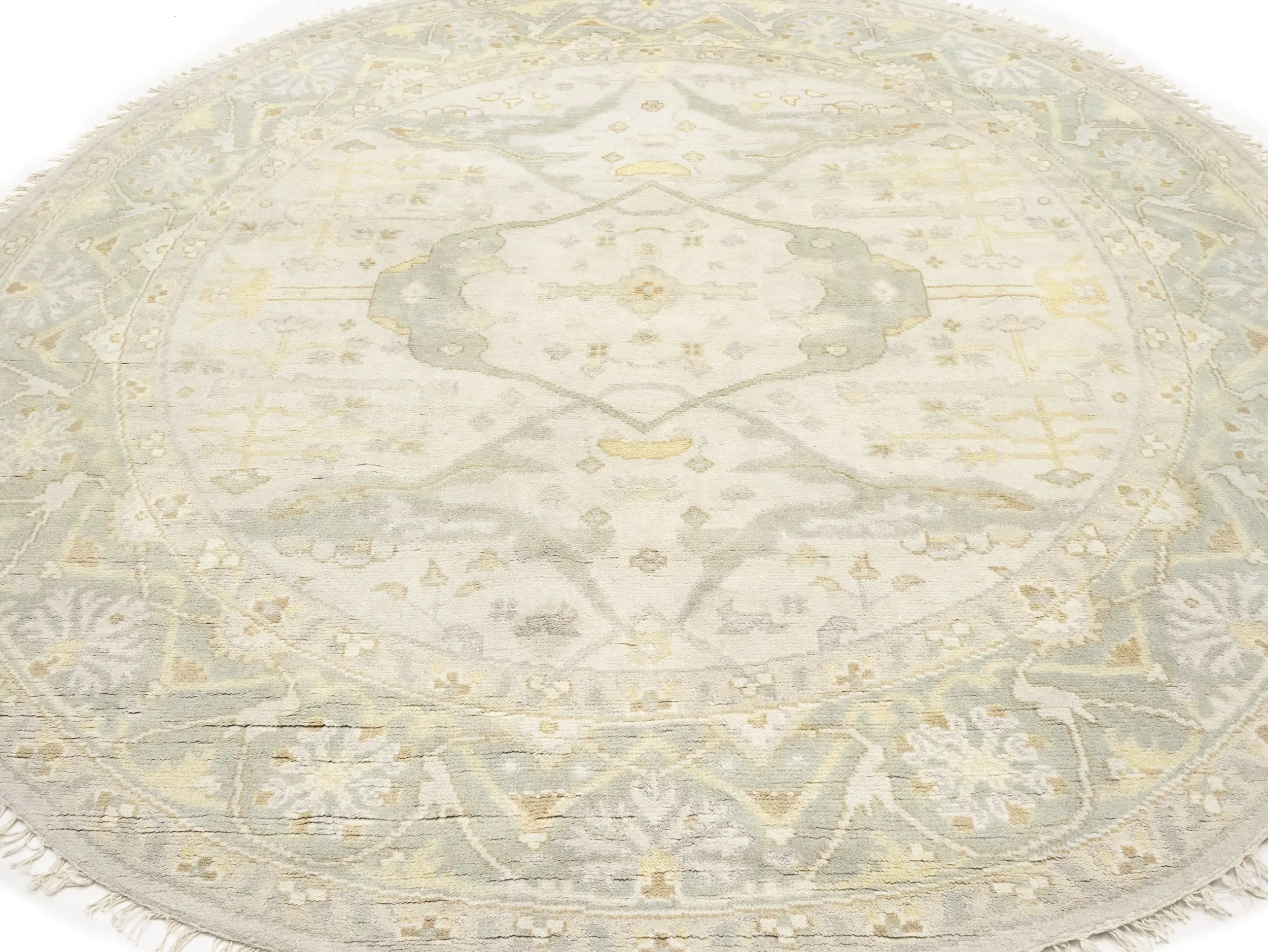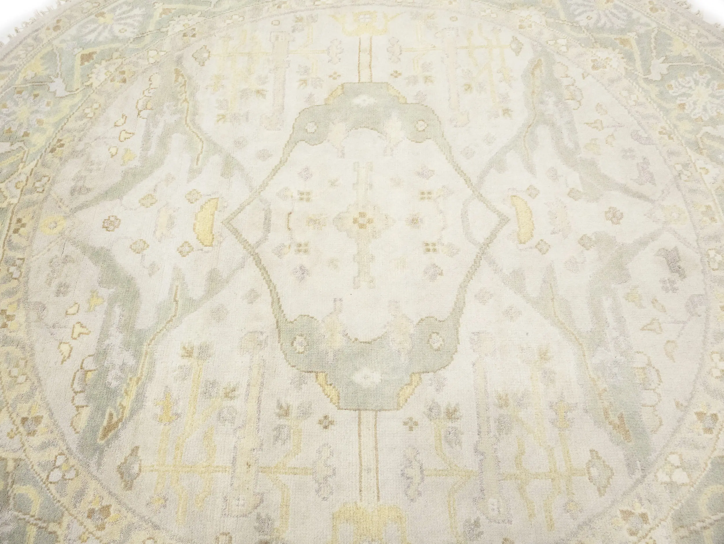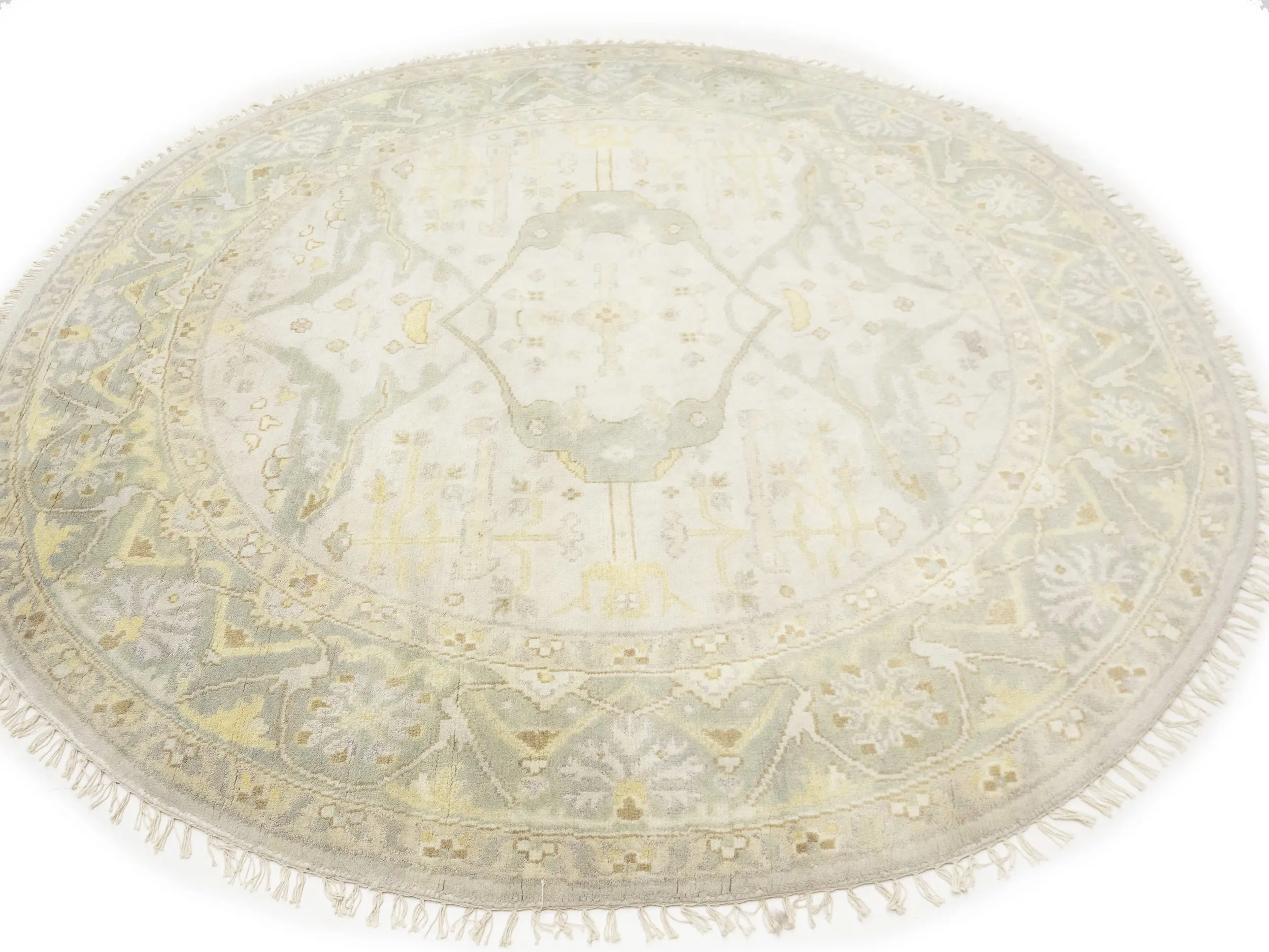 Muted Cream Floral Transitional 8X8 Oushak Chobi Oriental Round Rug