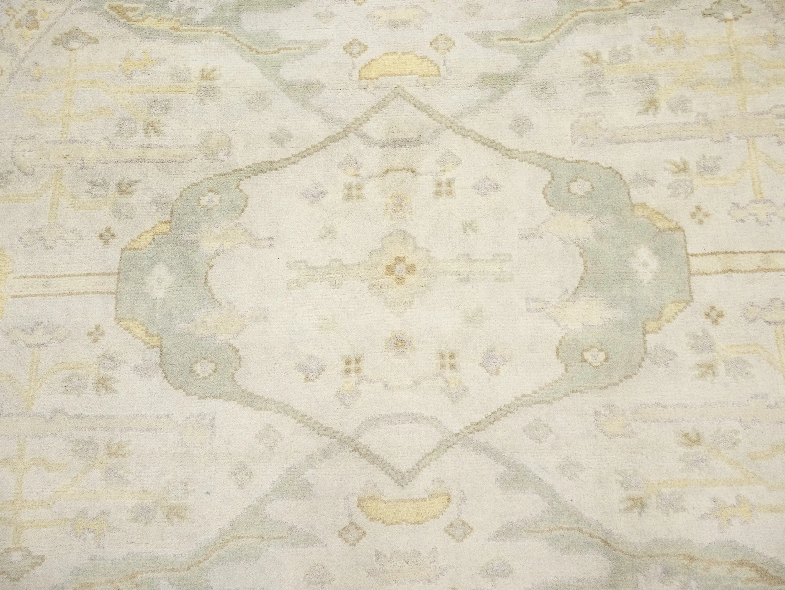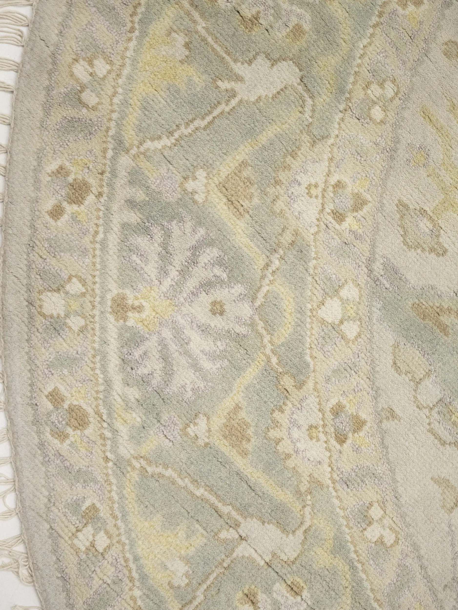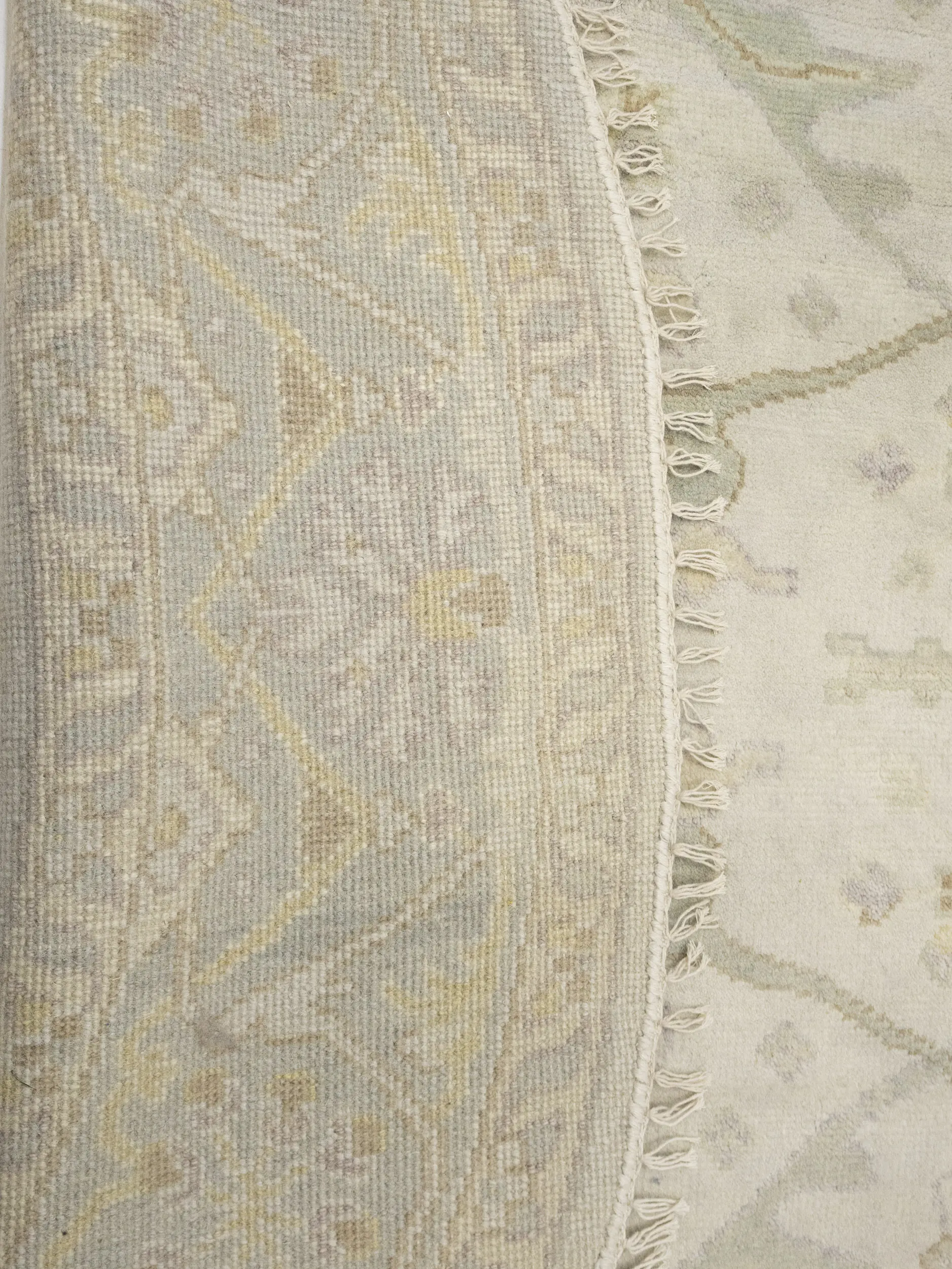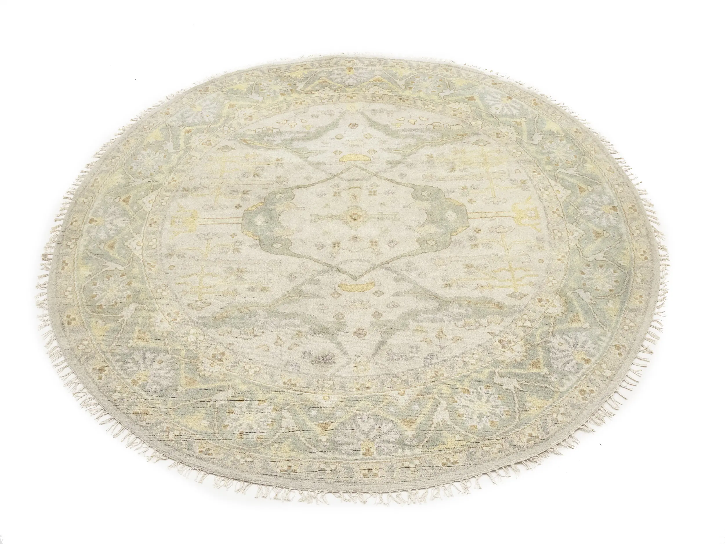 Muted Cream Floral Transitional 8X8 Oushak Chobi Oriental Round Rug