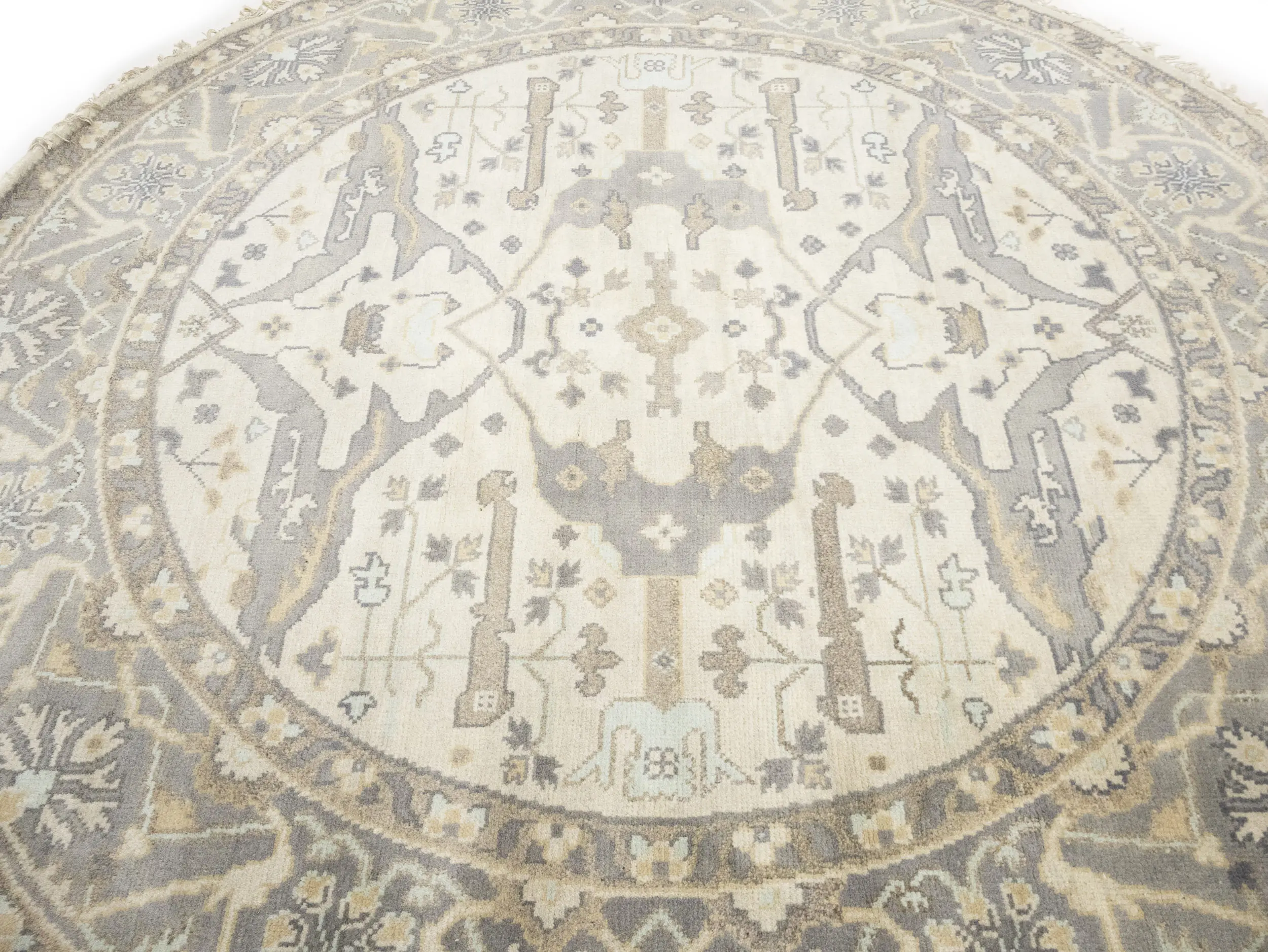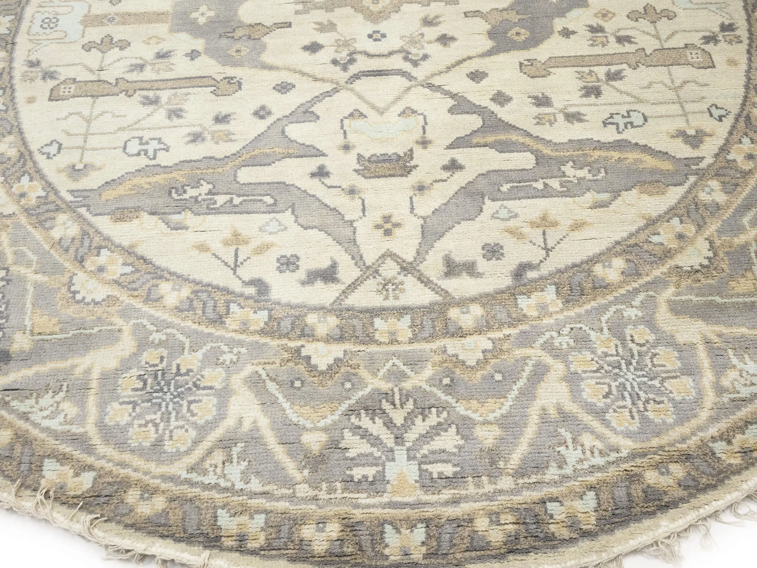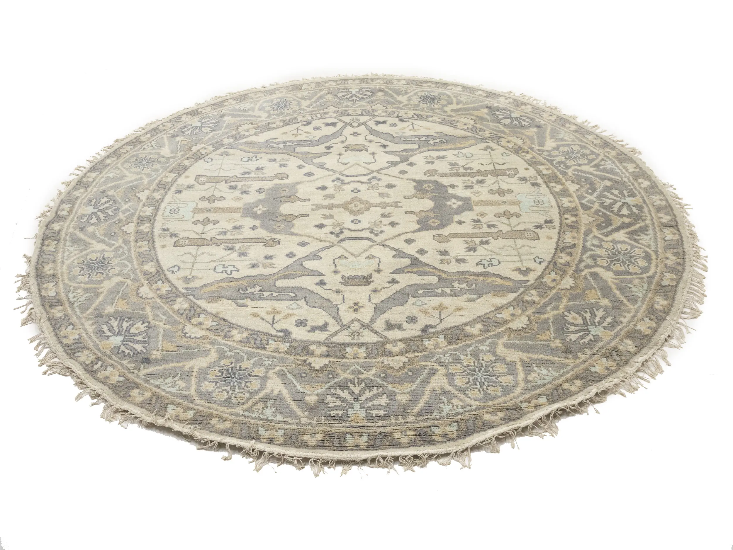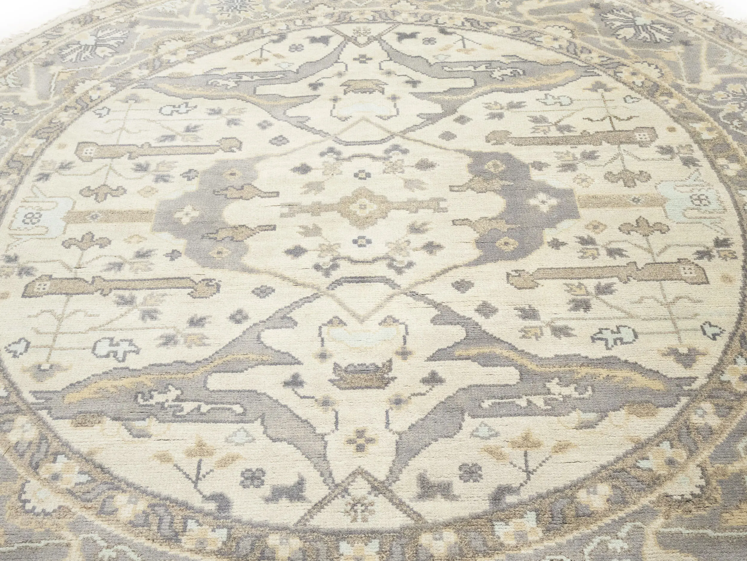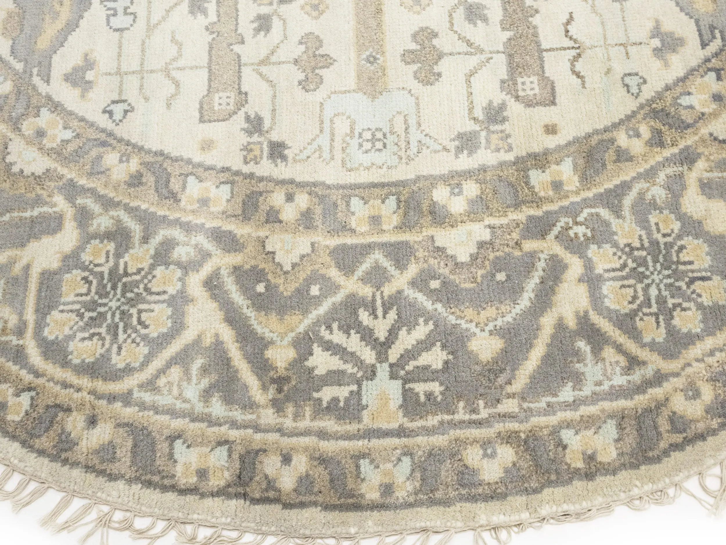 Muted Cream Floral Transitional 8X8 Oushak Oriental Round Rug