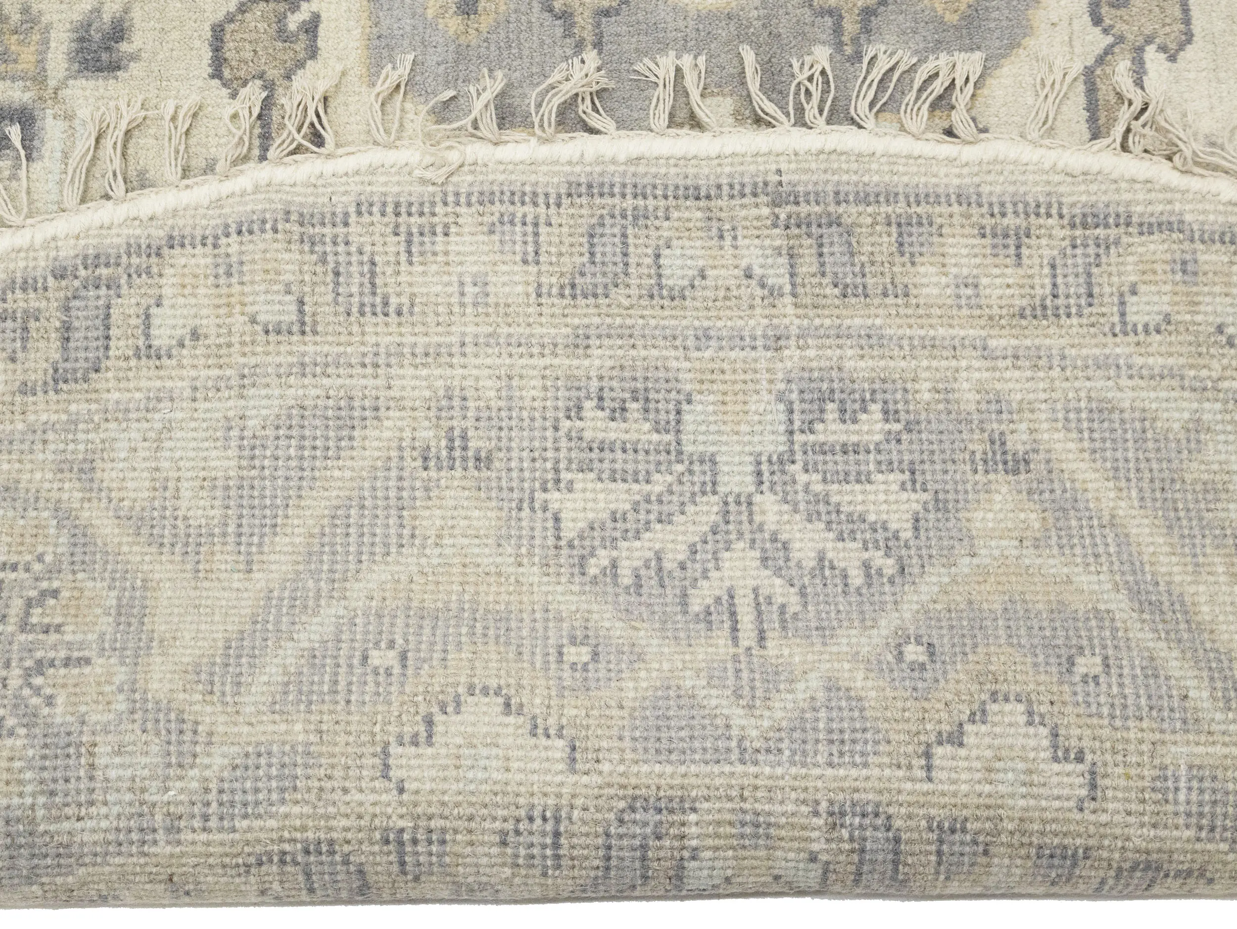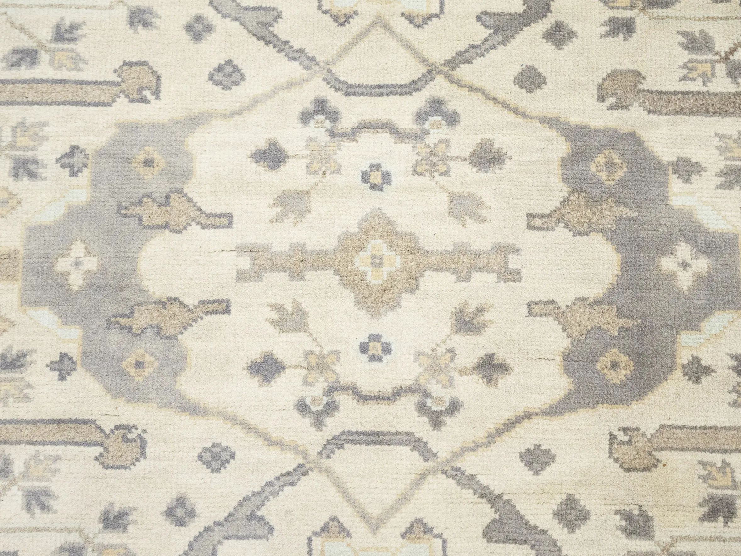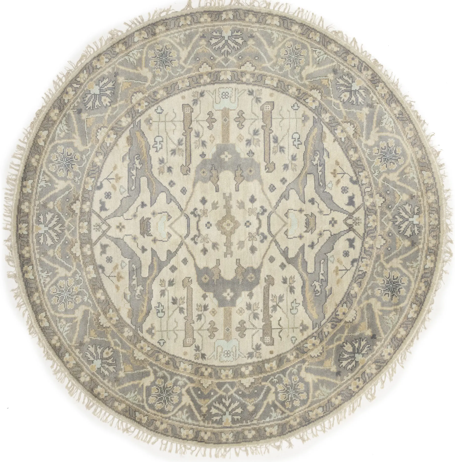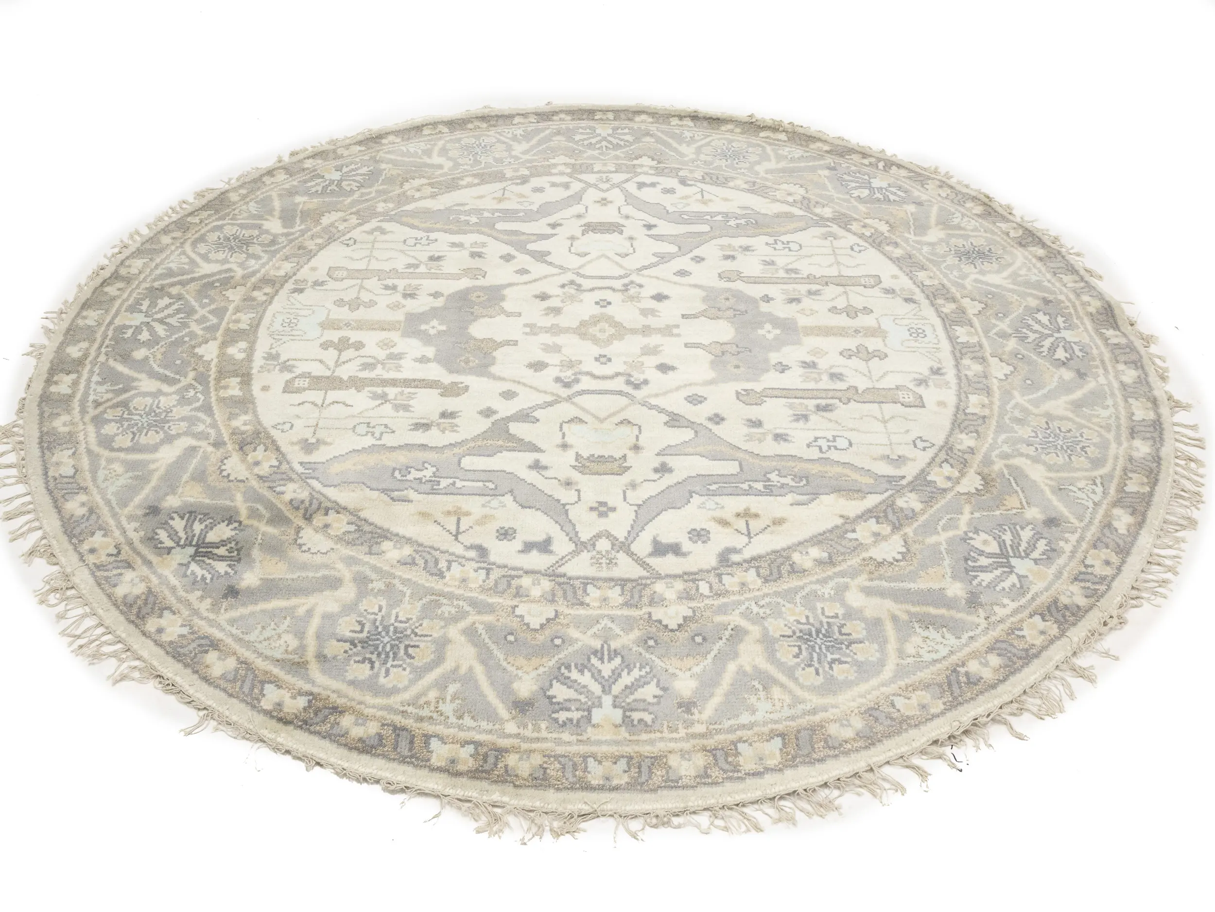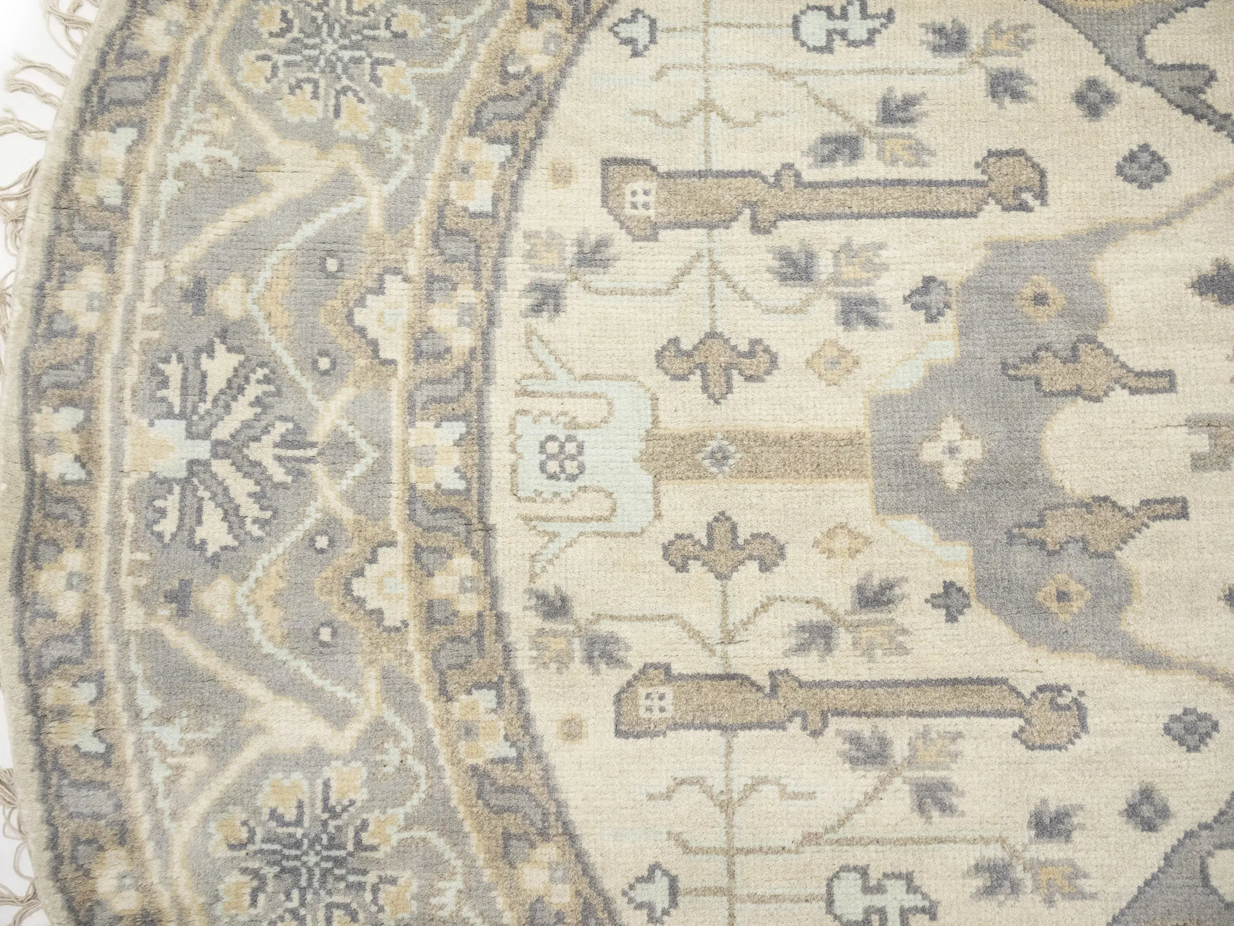 Muted Cream Floral Transitional 8X8 Oushak Oriental Round Rug