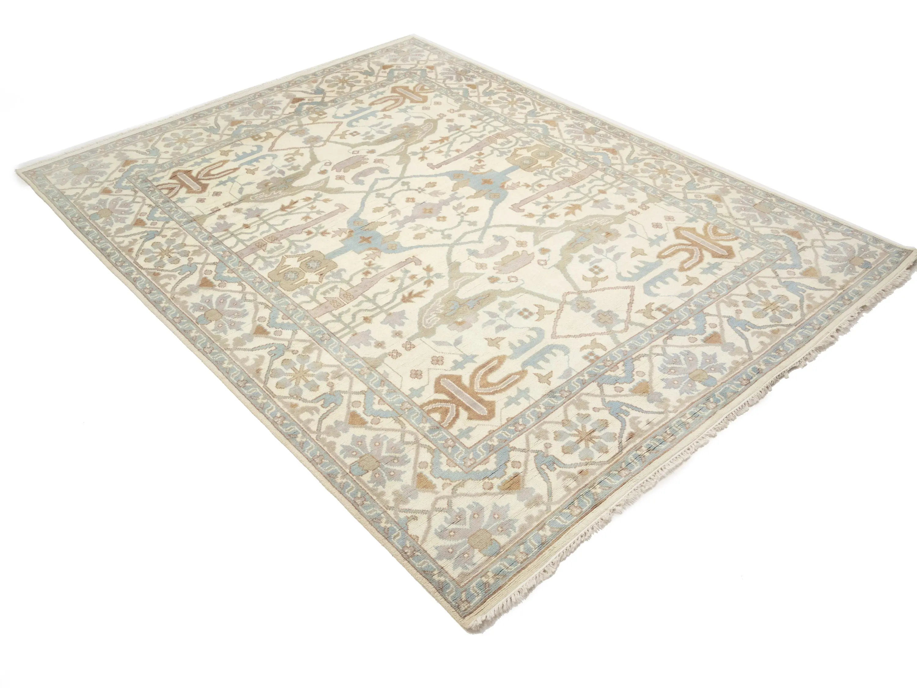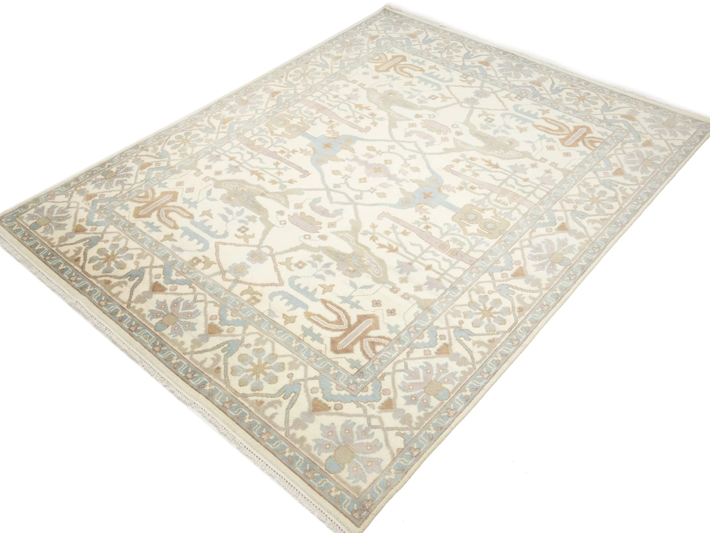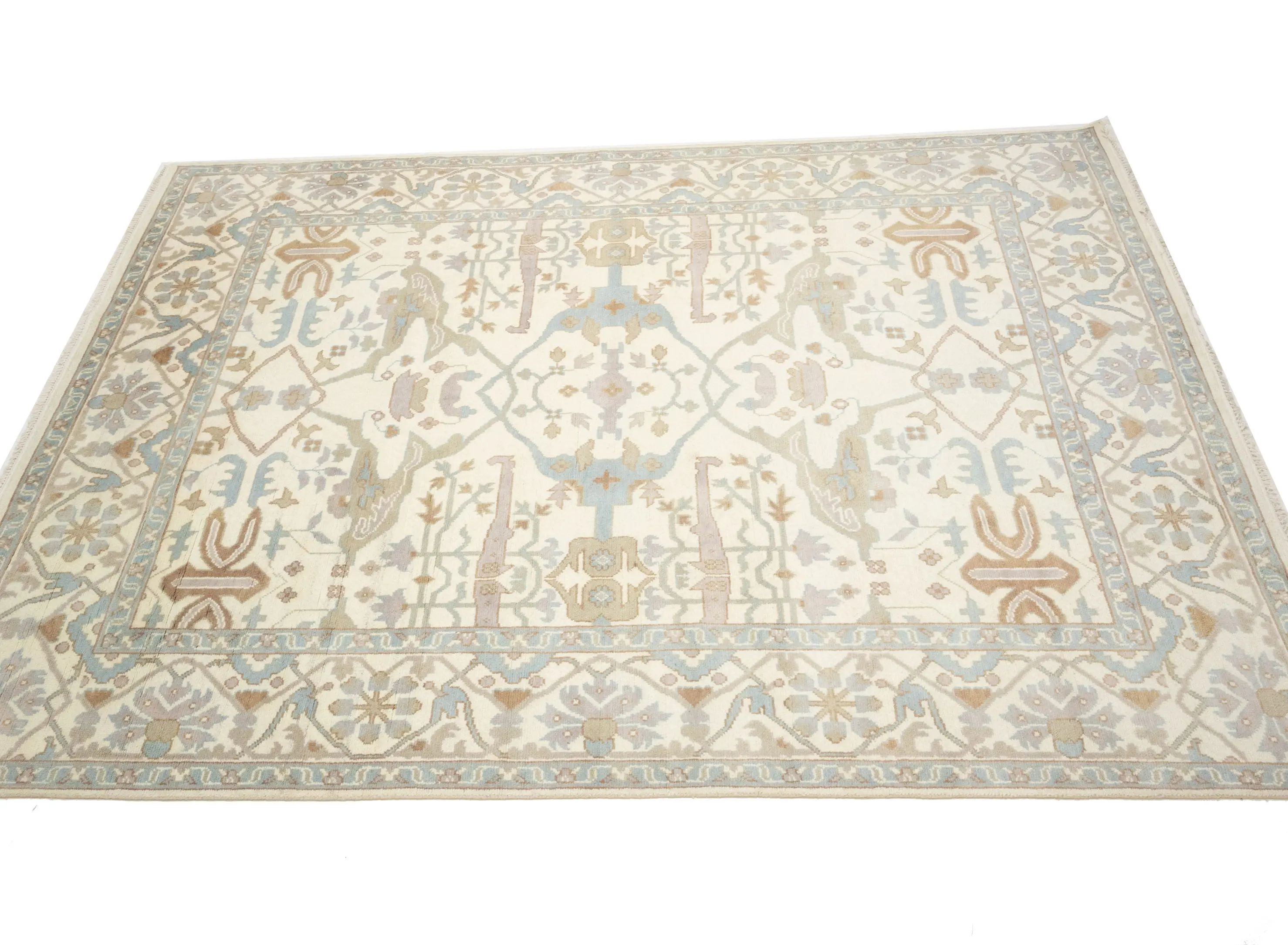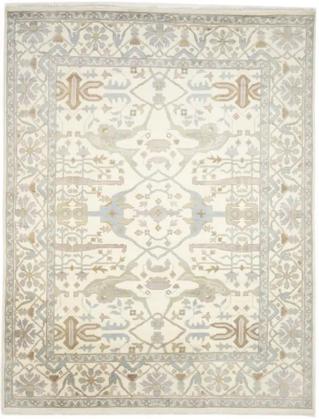 Muted Cream Floral Transitional 9X12 Oushak Oriental Rug