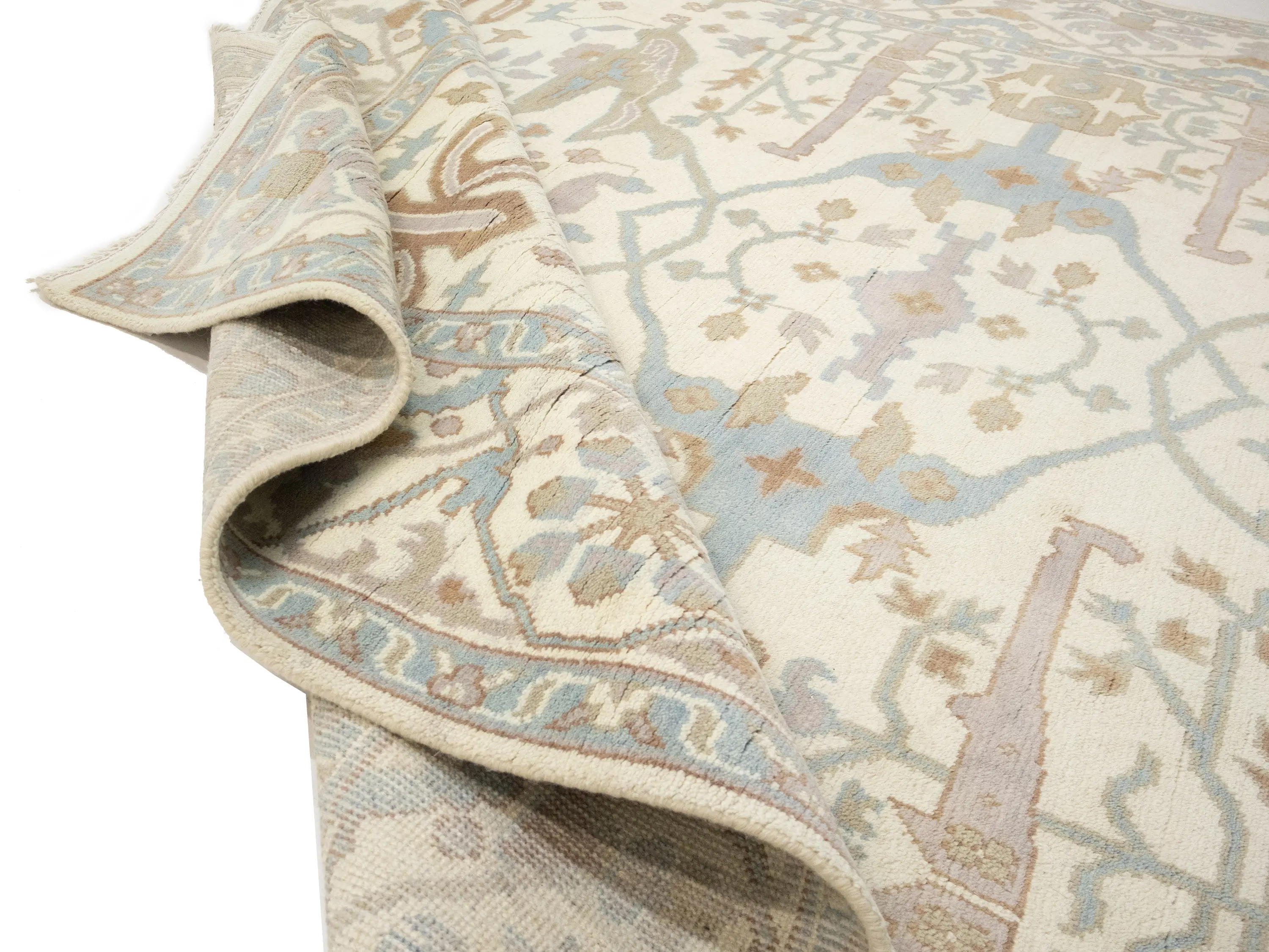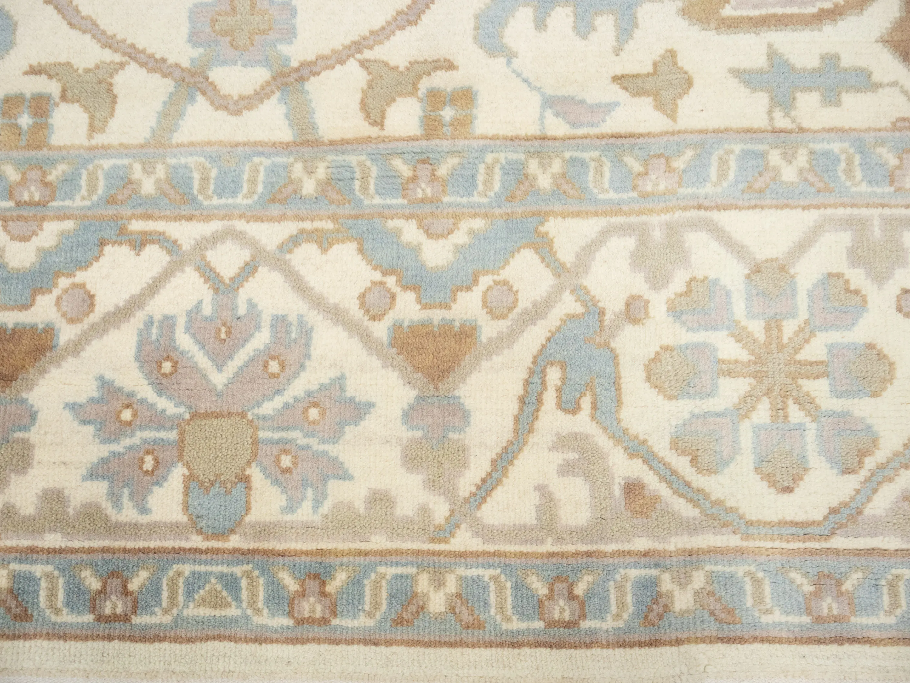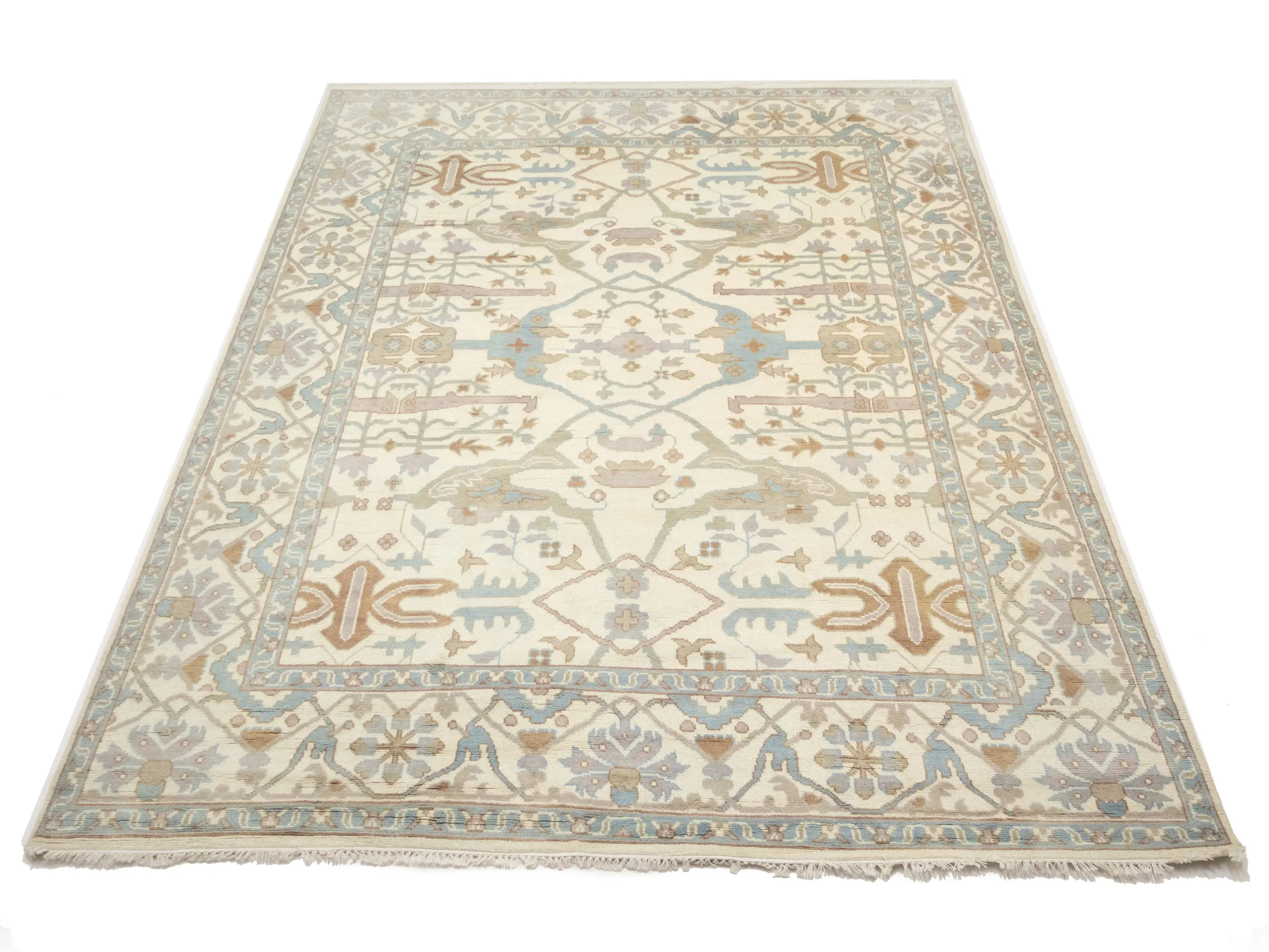 Muted Cream Floral Transitional 9X12 Oushak Oriental Rug