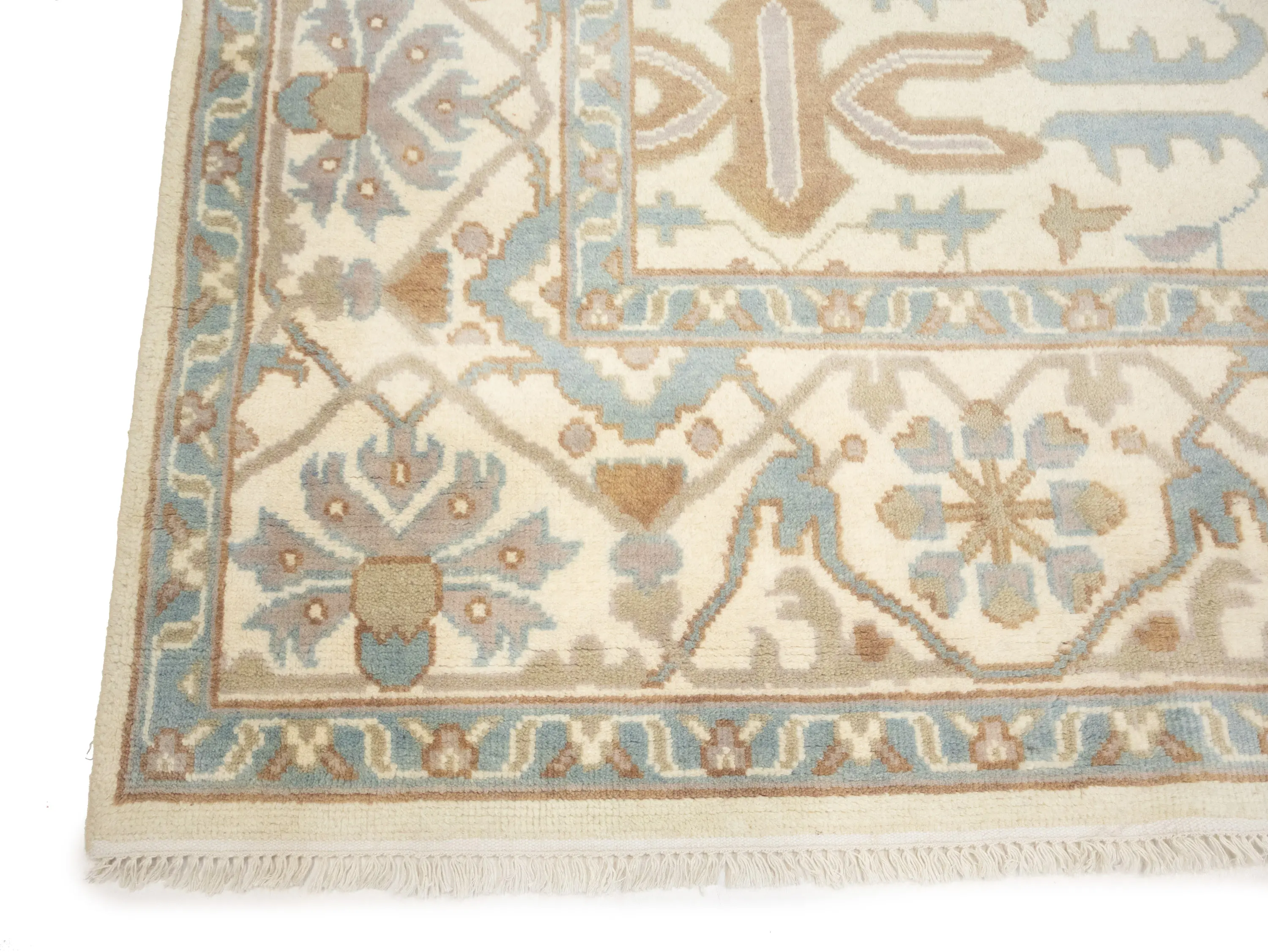 This genuine 9X12 cream new Oriental rug was made by the hands of gifted weavers inspired by a variety of spectacular artistic designs, to recreate the aged look of the original piece with a richness of color and ornately patterned background field. What set this vintage style Oriental area rug from the others are the material and dye used (wool pile and cotton foundation), knot count, ancient designs, fantastic grades, and its regional historical connection: it has deep roots, from the story of the people who produced it to the meaning of the symbols and colors displayed across its canvas that have been praised for centuries. This Indian home décor carpet will be completely cozy and inviting that never will go out of style! Also, this Oriental rug would be among your most valuable treasures, it is a great investment that accrues value over time, and it will last for generations because was woven with high-quality, all-natural wool. Environmentally friendly, opulent yet affordable; this rug will give you a thorough amount of character to help define your living space with elegance and warmth that will capture the eyes and attention of your audience (homeowners, designers, decorators, family and friends).