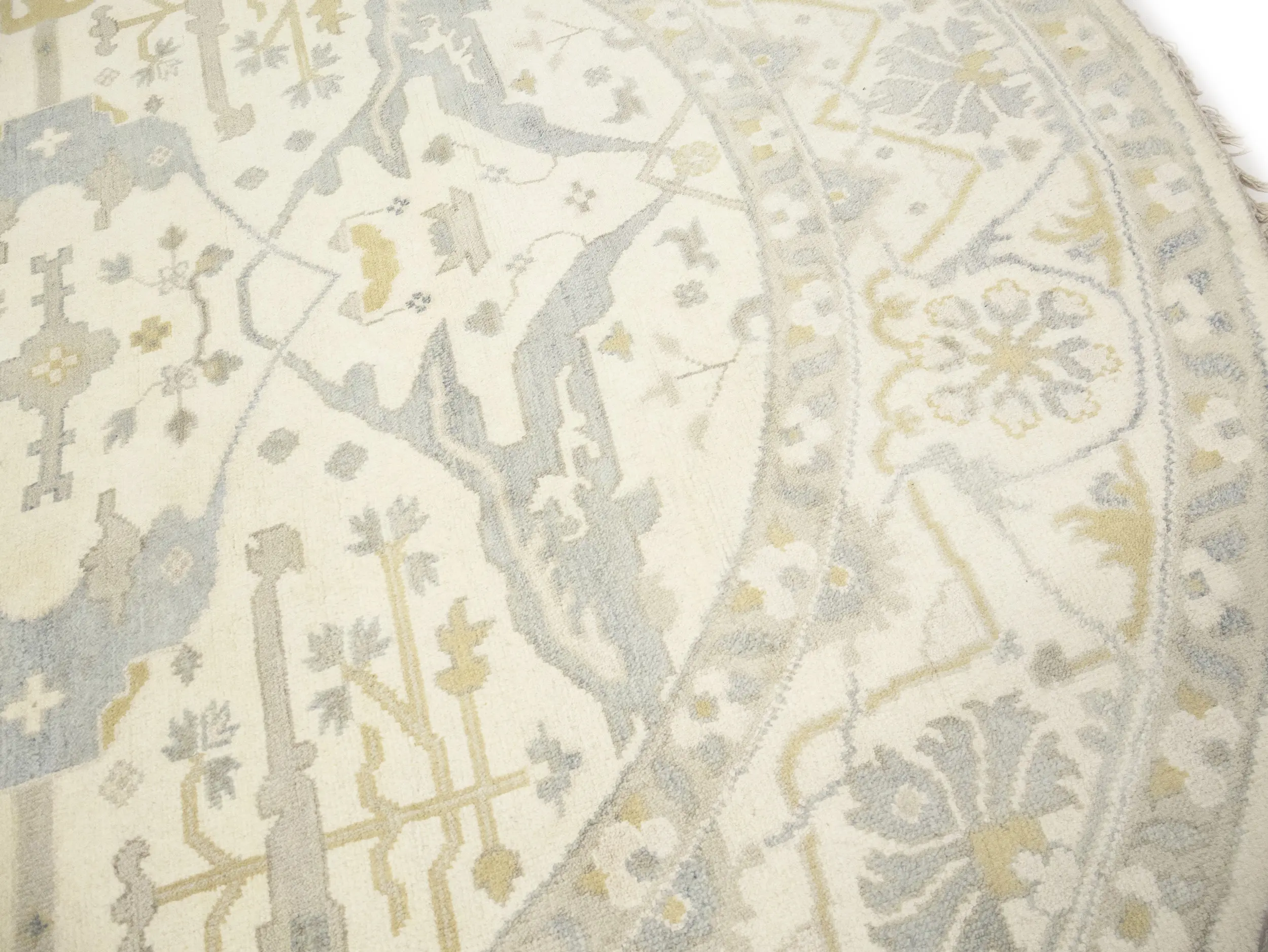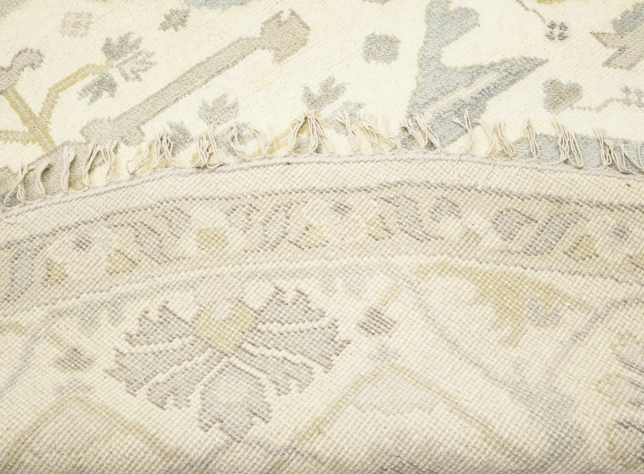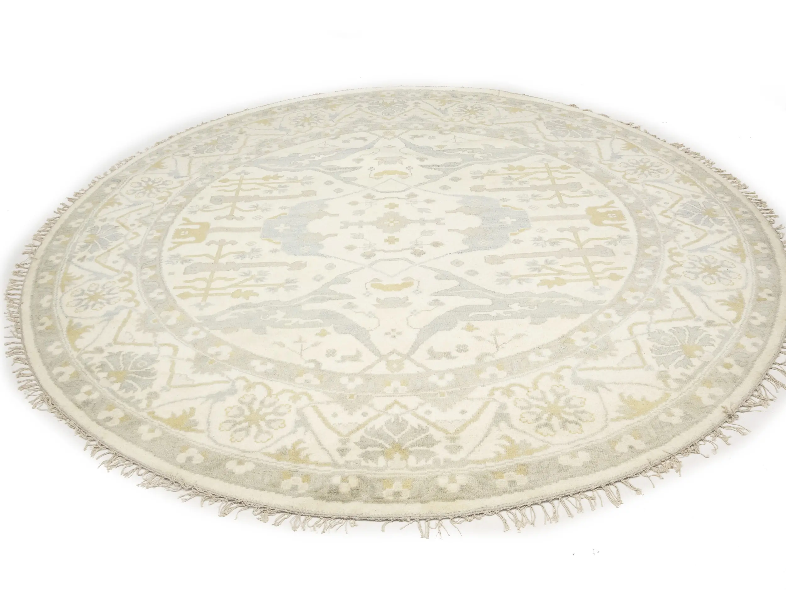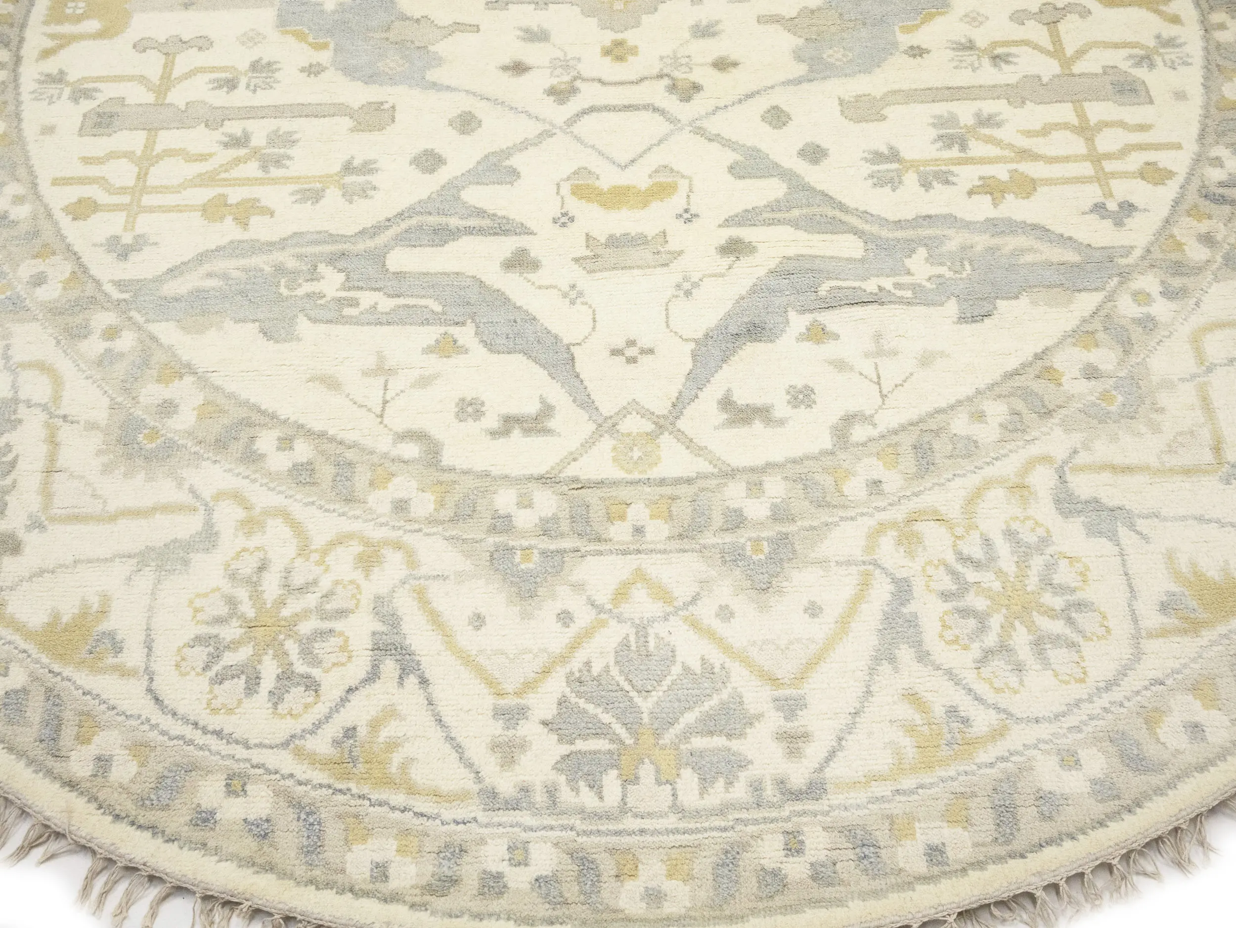 Muted Cream Floral Transitional 9X9 Oushak Oriental Round Rug