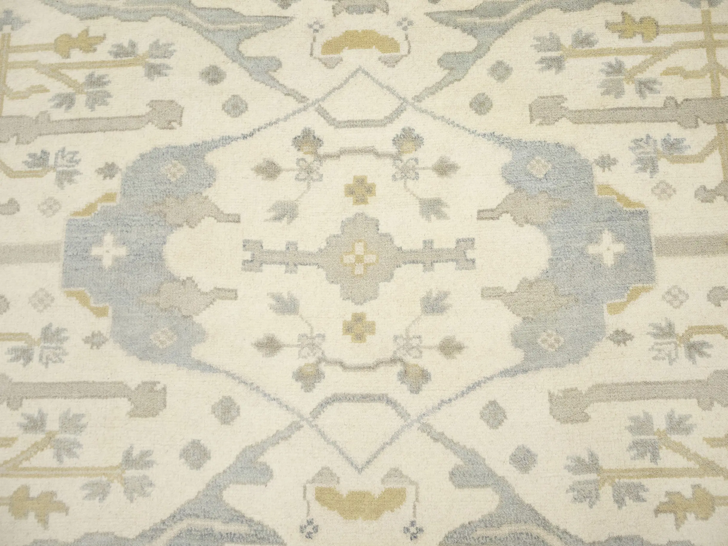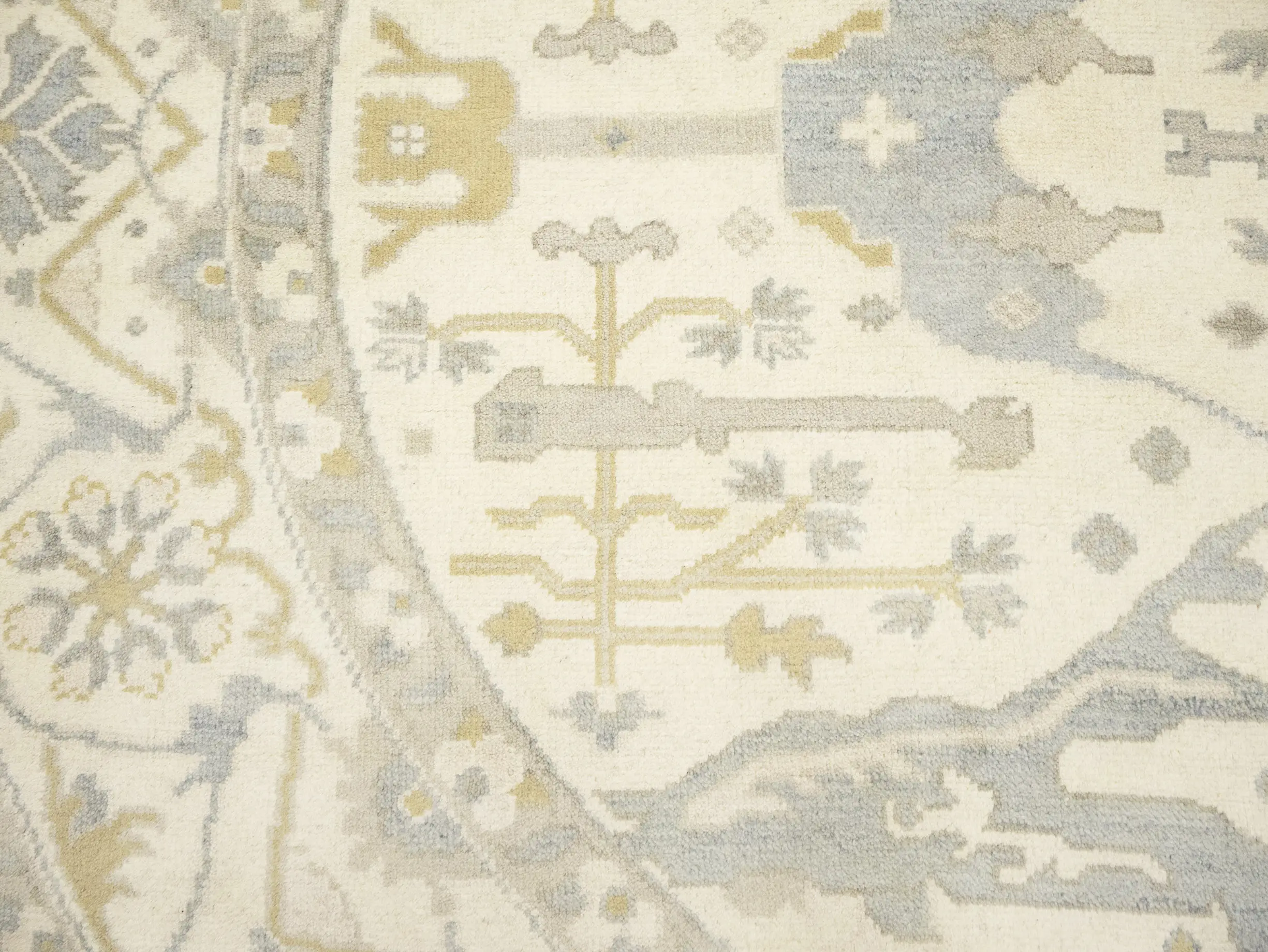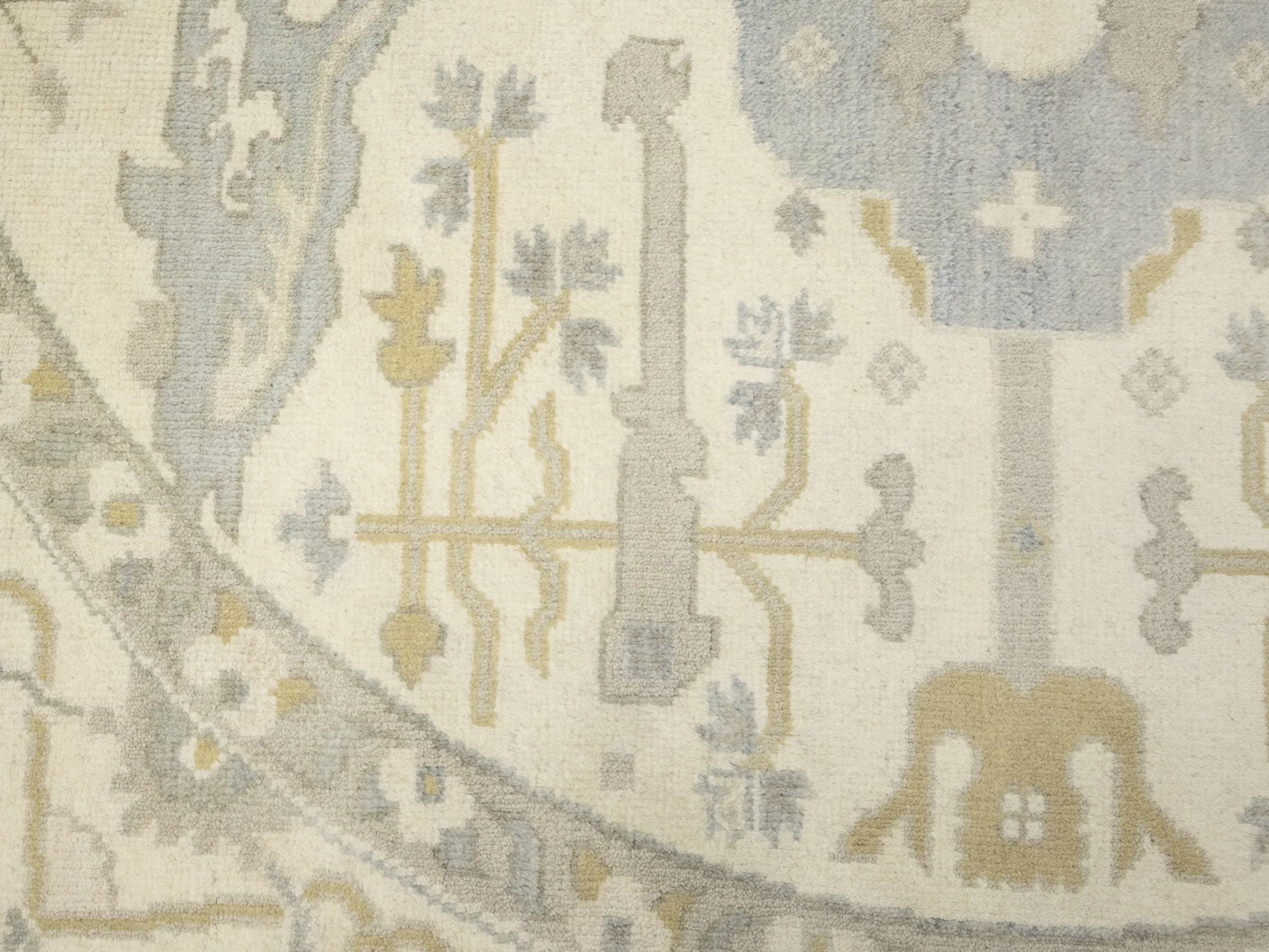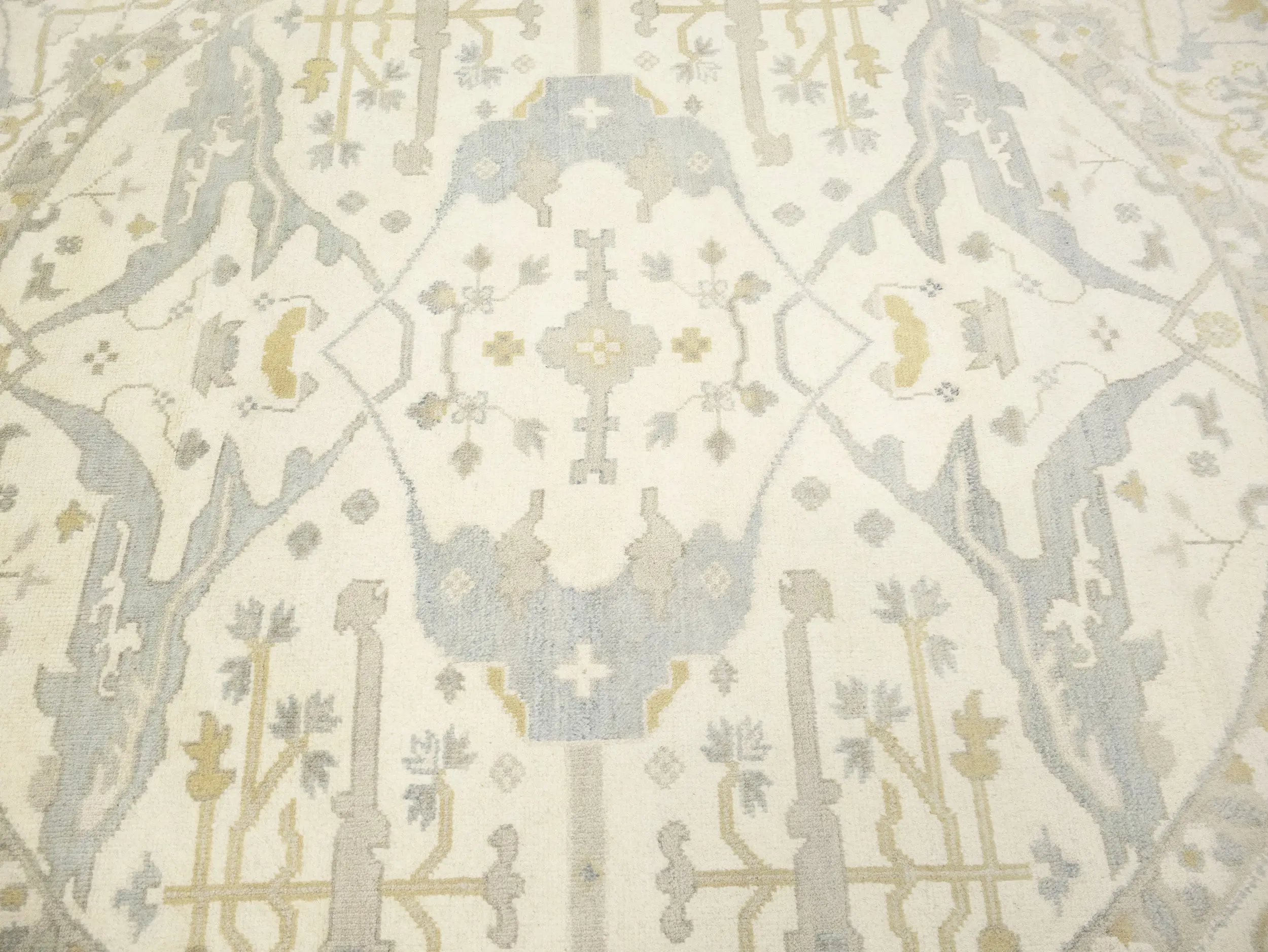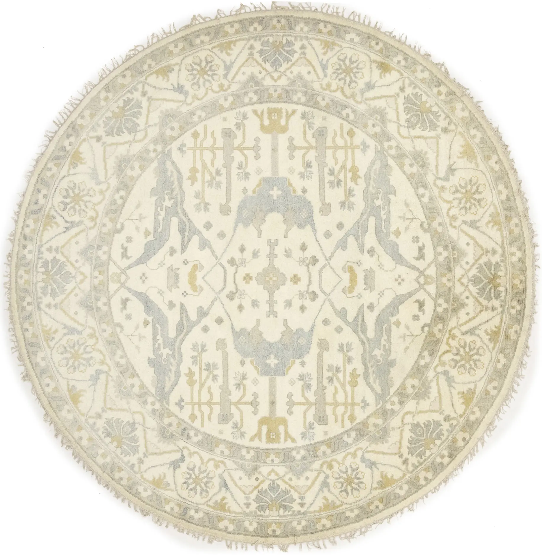Muted Cream Floral Transitional 9X9 Oushak Oriental Round Rug