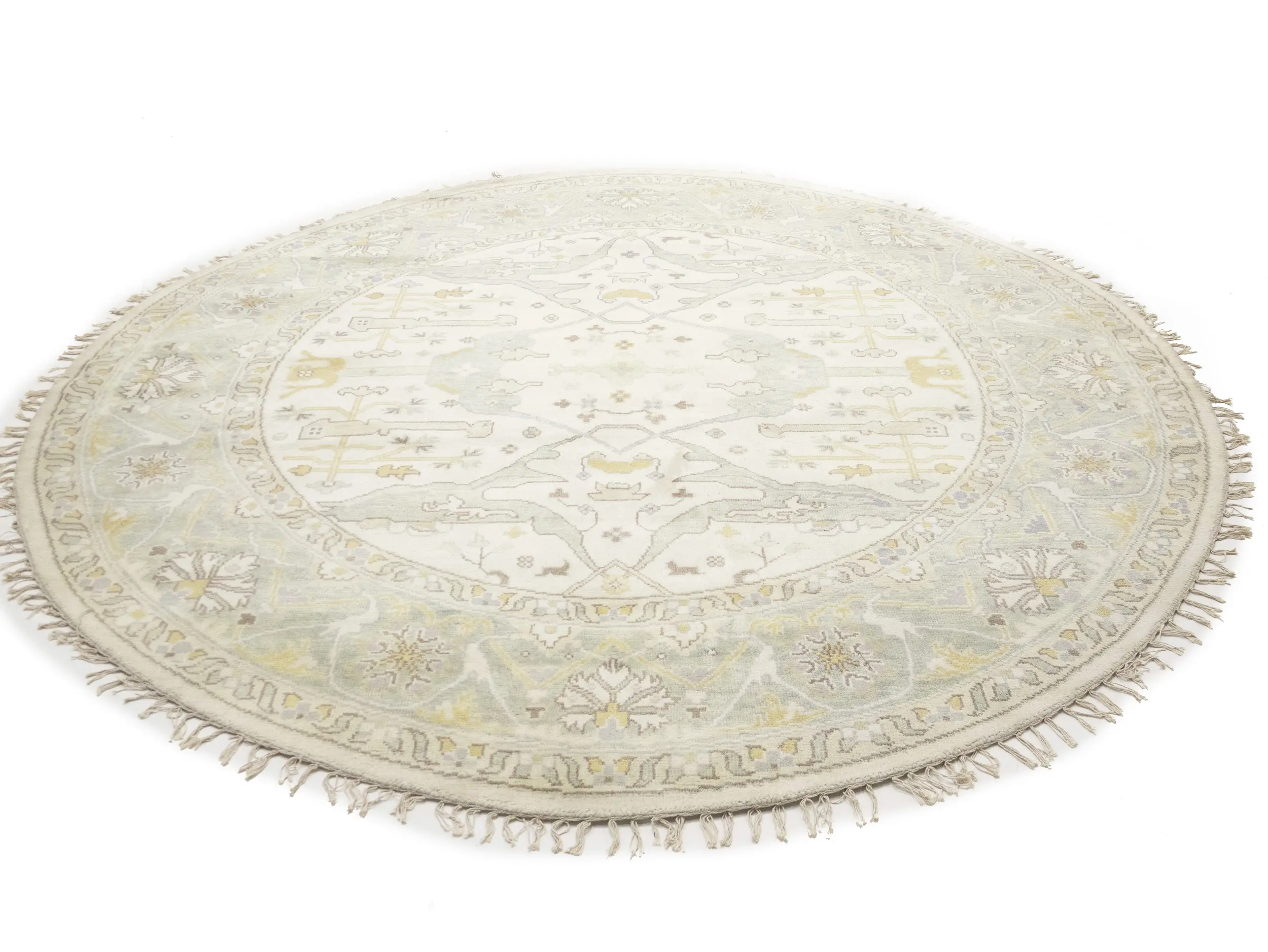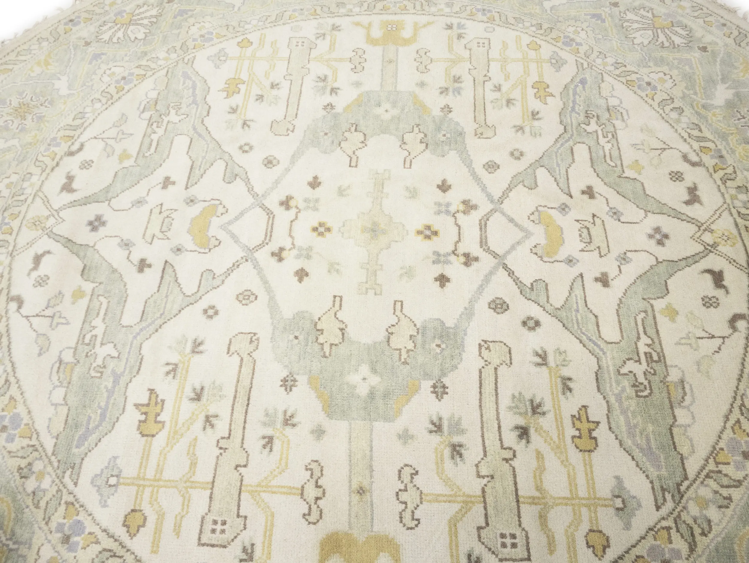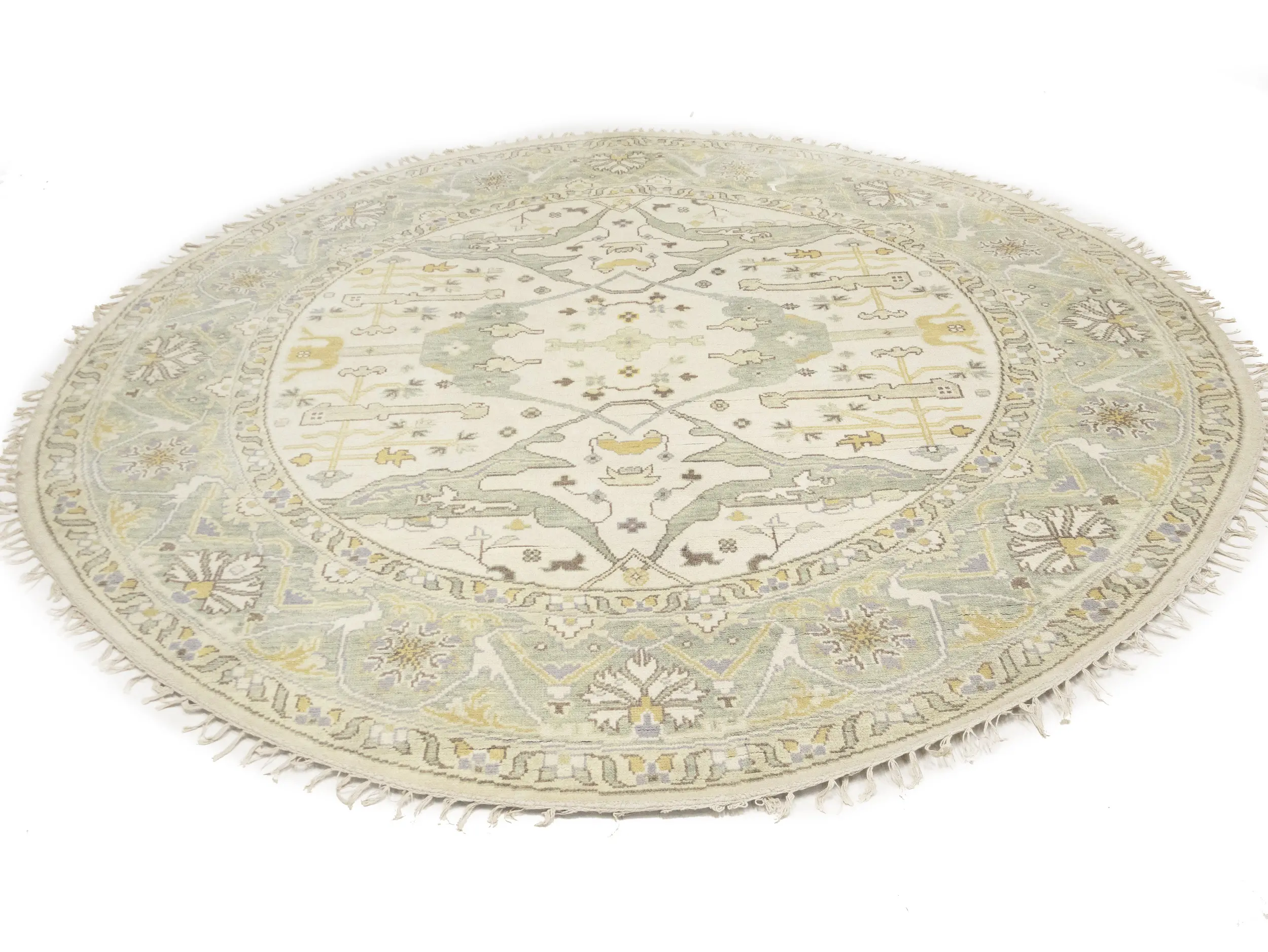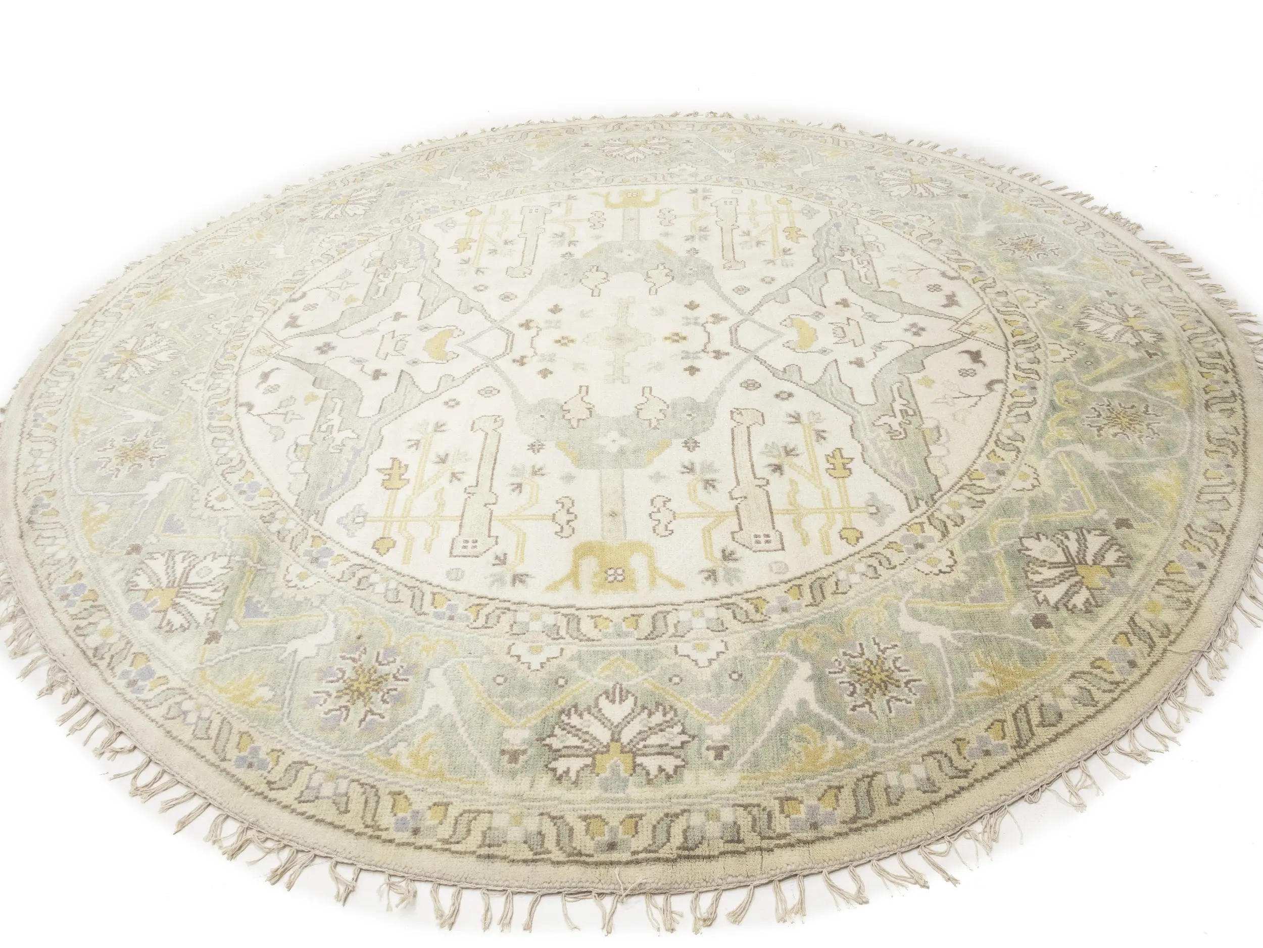 Muted Cream Floral Transitional 9X9 Oushak Oriental Round Rug