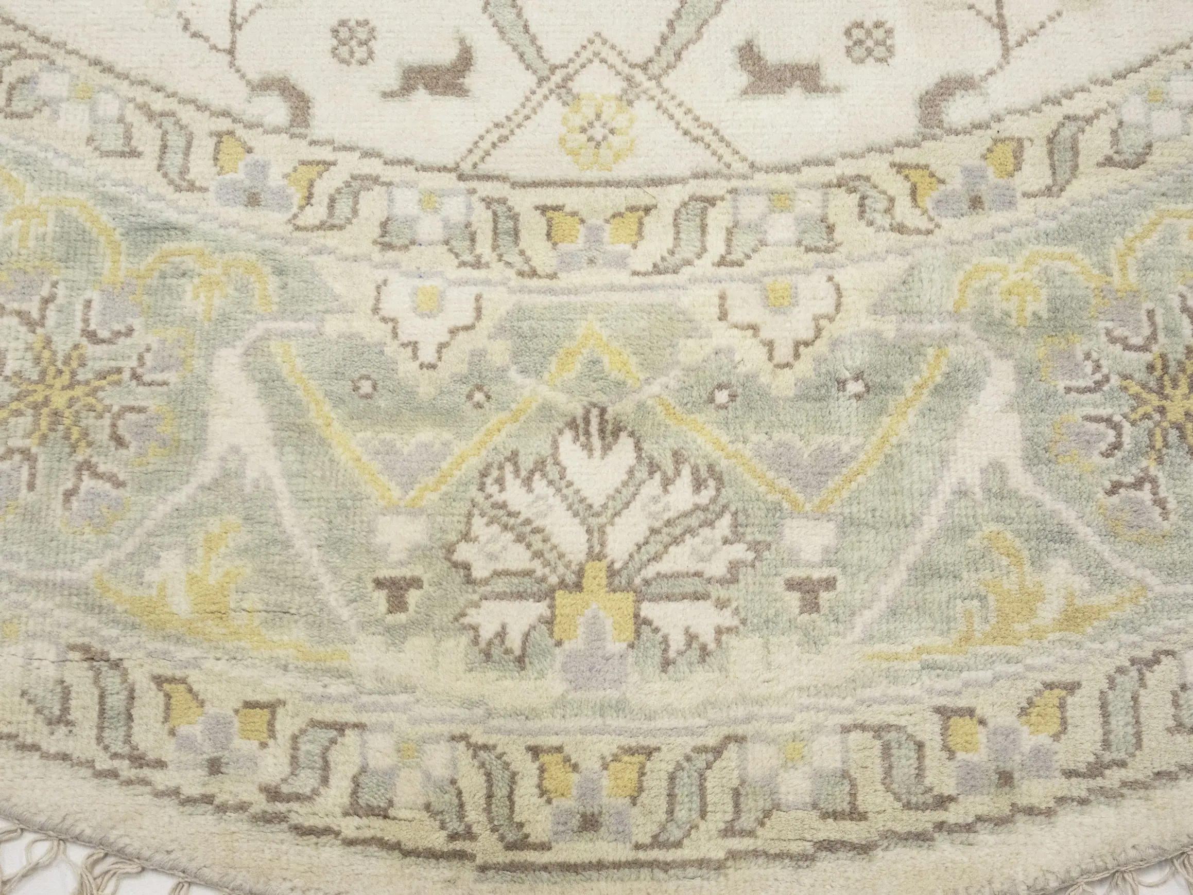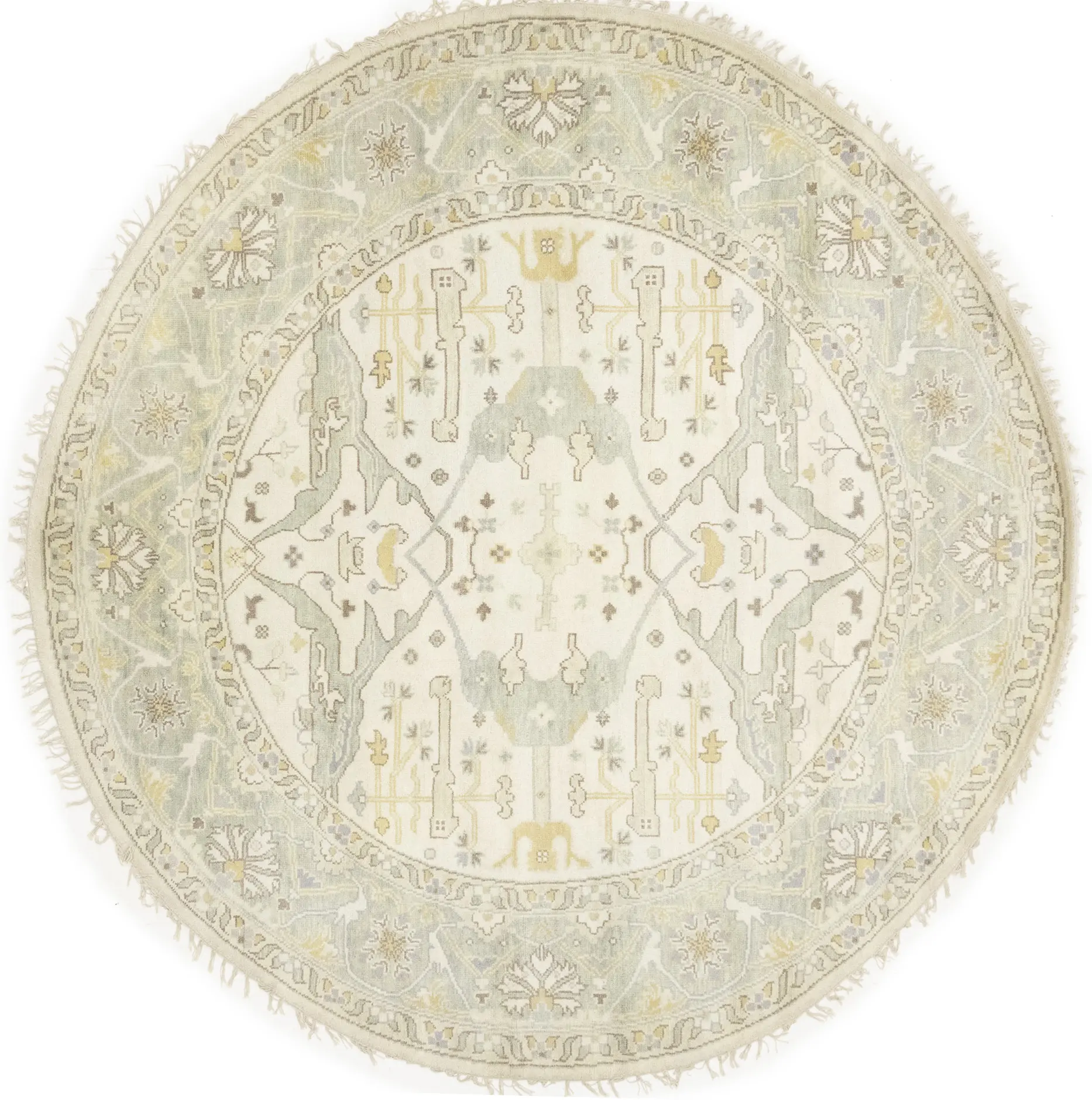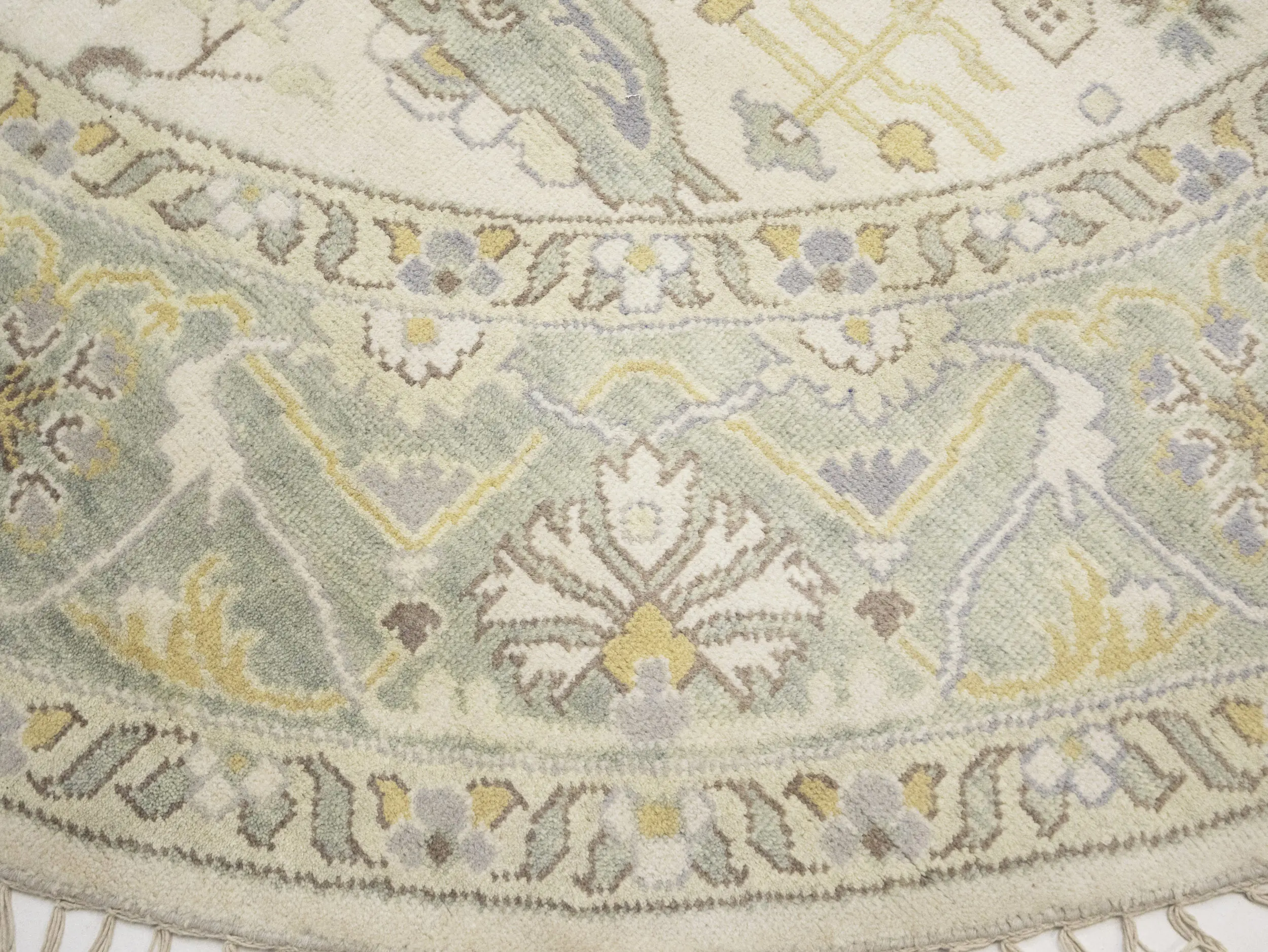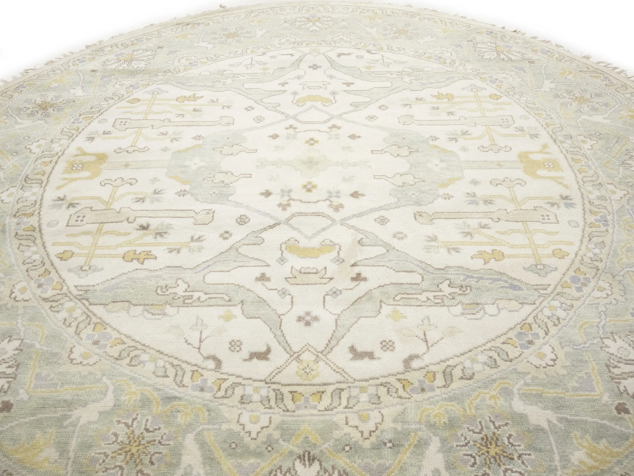 Muted Cream Floral Transitional 9X9 Oushak Oriental Round Rug