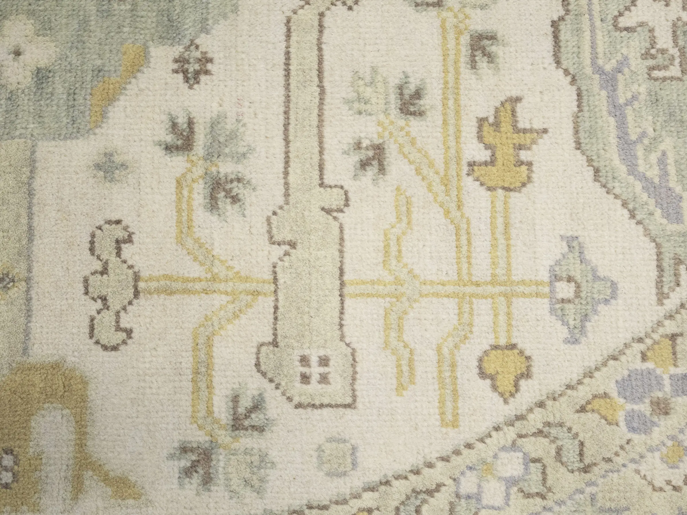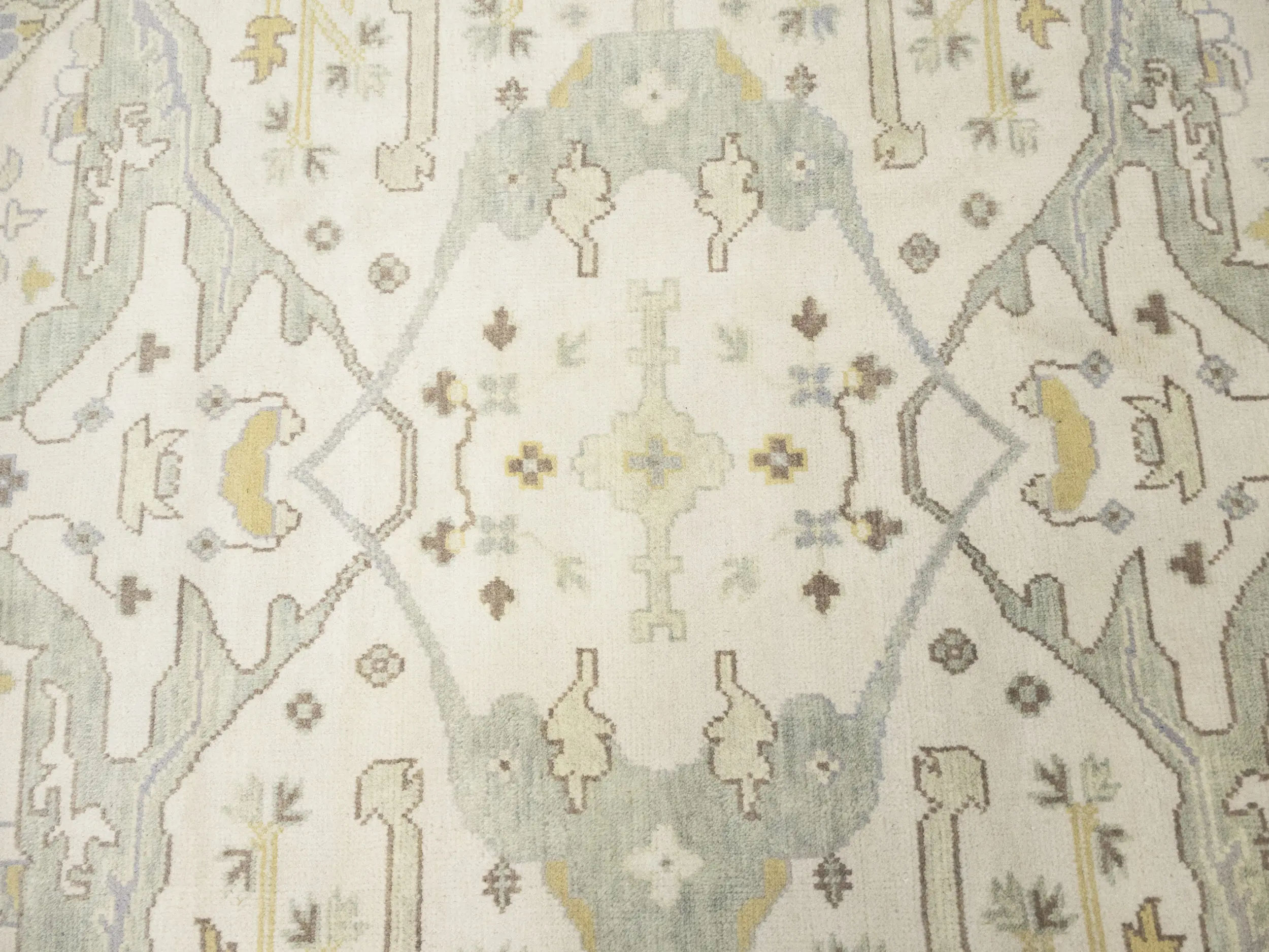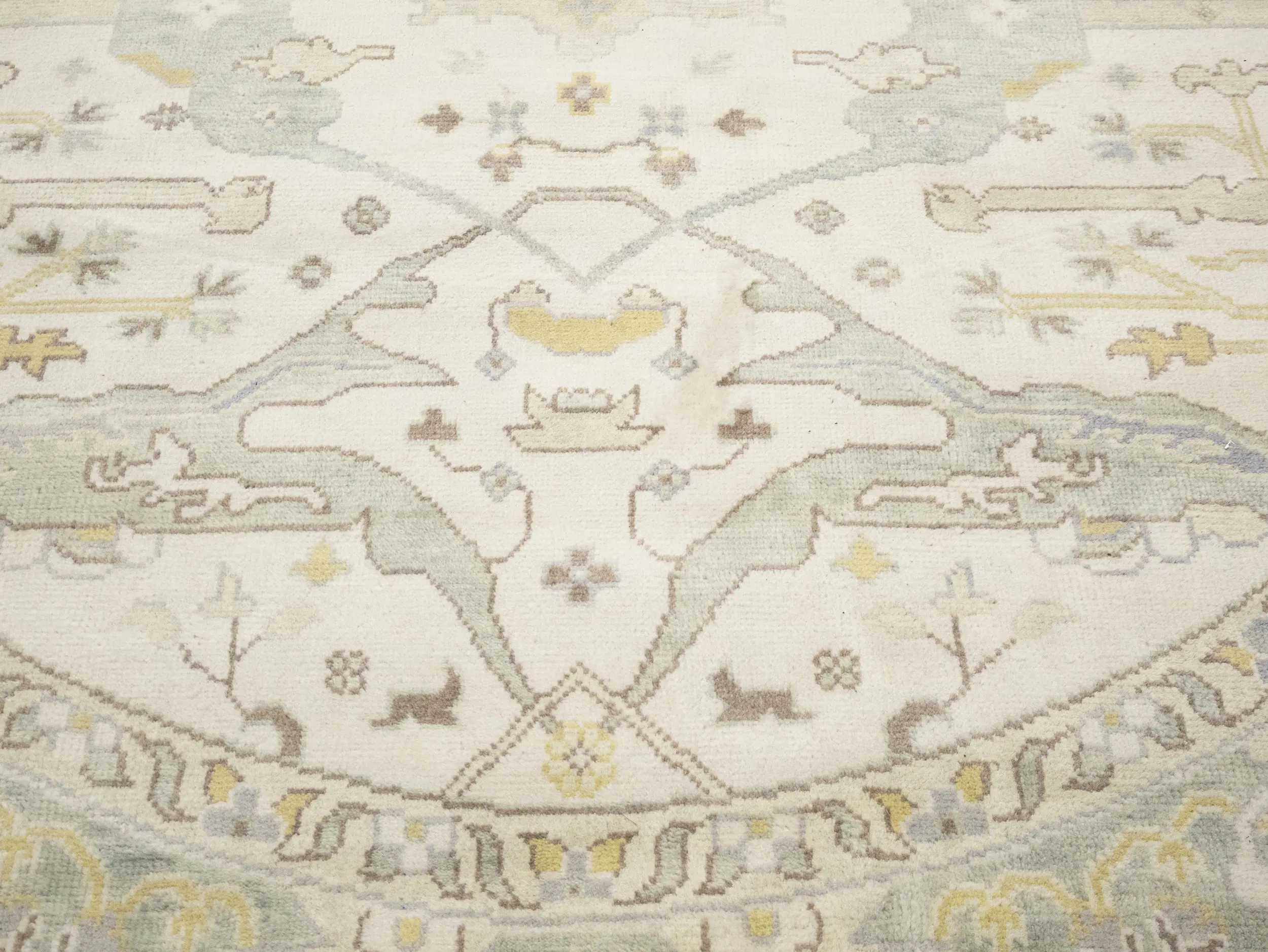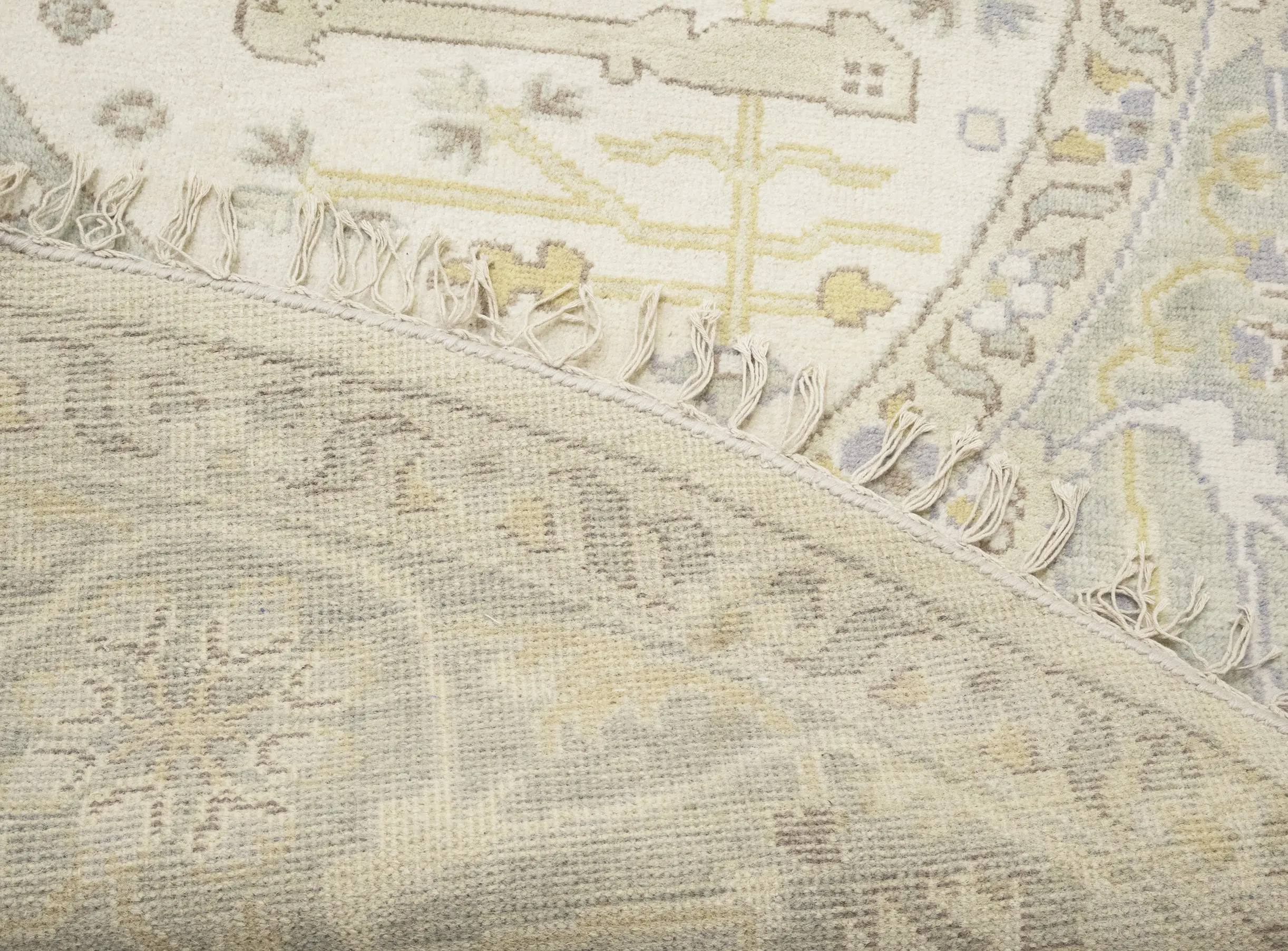 Muted Cream Floral Transitional 9X9 Oushak Oriental Round Rug