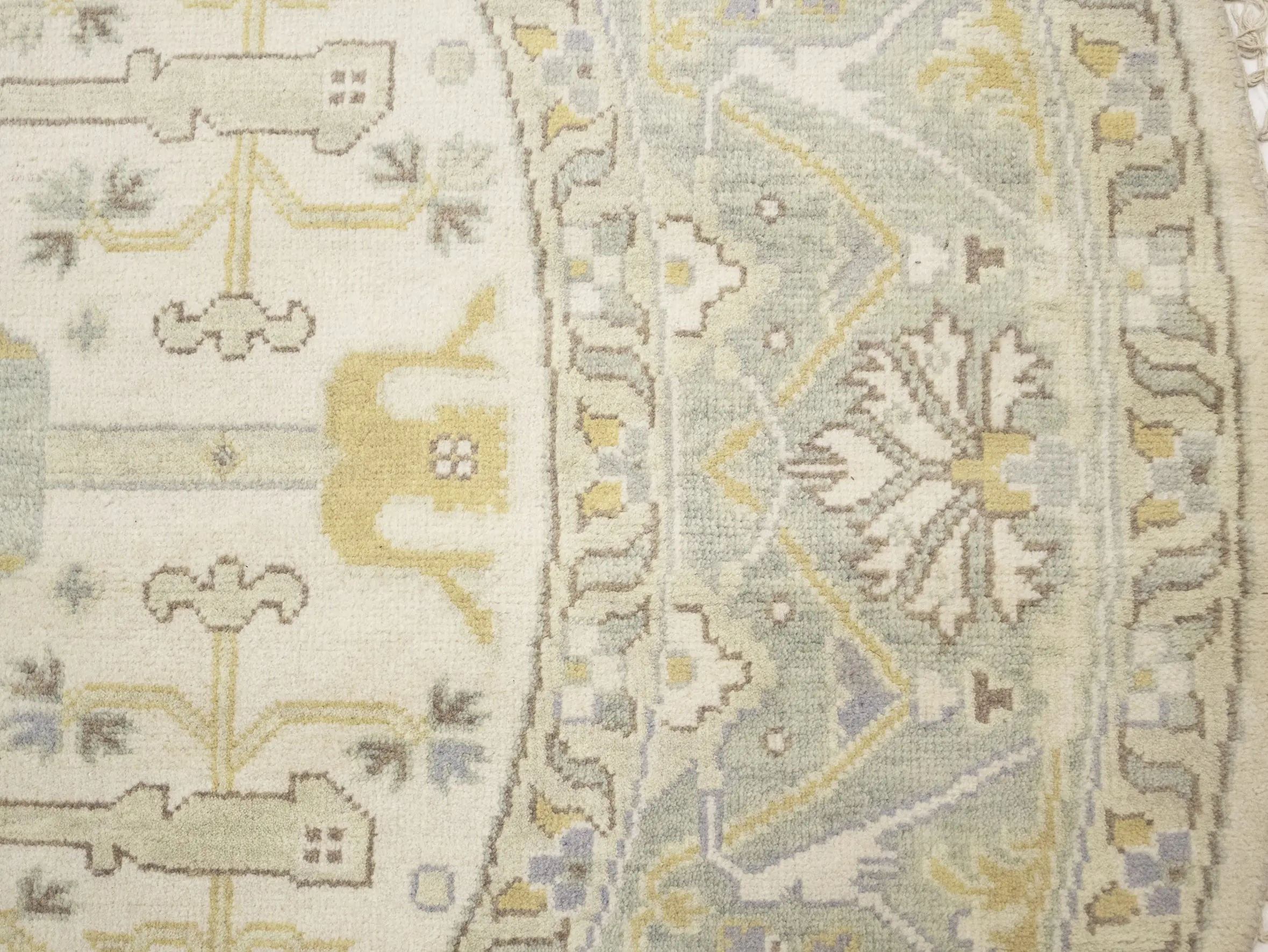 This genuine 9X9 cream new Oriental Round rug was made by the hands of gifted weavers inspired by a variety of spectacular artistic designs, to recreate the aged look of the original piece with a richness of color and ornately patterned background field. What set this vintage style Oriental area rug from the others are the material and dye used (wool pile and cotton foundation), knot count, ancient designs, fantastic grades, and its regional historical connection: it has deep roots, from the story of the people who produced it to the meaning of the symbols and colors displayed across its canvas that have been praised for centuries. This Indian home décor carpet will be completely cozy and inviting that never will go out of style! Also, this Oriental rug would be among your most valuable treasures, it is a great investment that accrues value over time, and it will last for generations because was woven with high-quality, all-natural wool. Environmentally friendly, opulent yet affordable; this rug will give you a thorough amount of character to help define your living space with elegance and warmth that will capture the eyes and attention of your audience (homeowners, designers, decorators, family and friends).