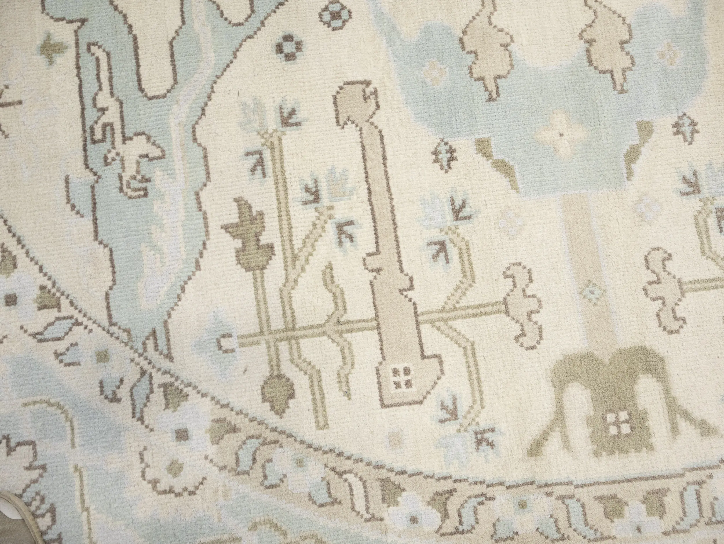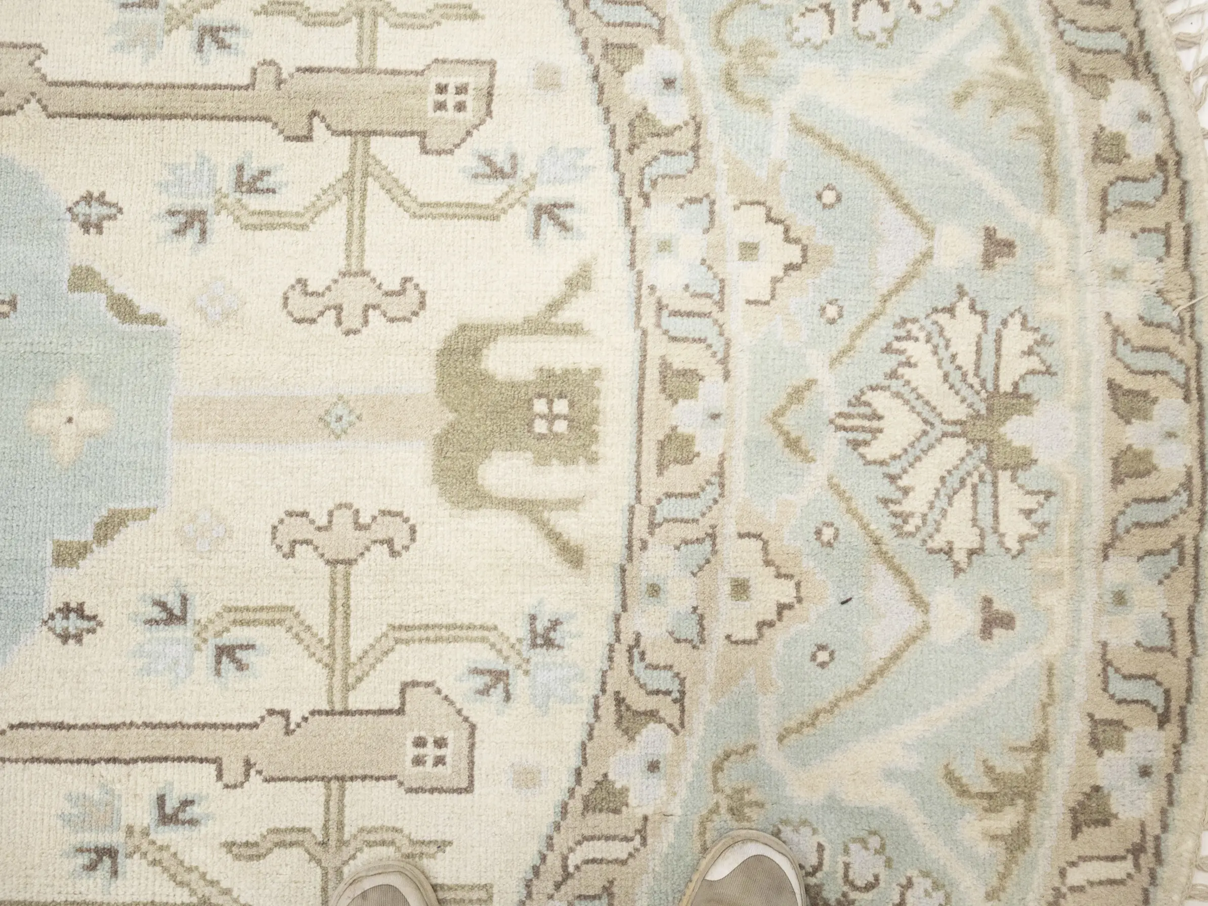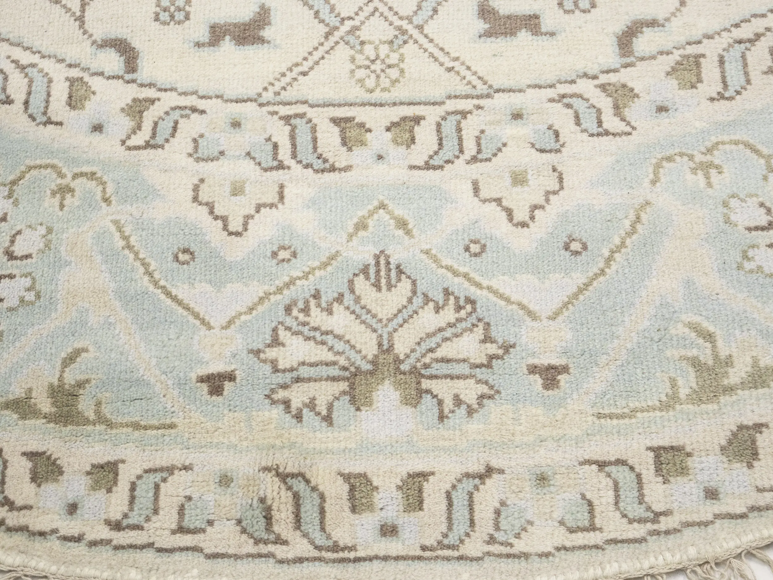 This genuine 9X9 cream new Oriental Round rug was made by the hands of gifted weavers inspired by a variety of spectacular artistic designs, to recreate the aged look of the original piece with a richness of color and ornately patterned background field. What set this vintage style Oriental area rug from the others are the material and dye used (wool pile and cotton foundation), knot count, ancient designs, fantastic grades, and its regional historical connection: it has deep roots, from the story of the people who produced it to the meaning of the symbols and colors displayed across its canvas that have been praised for centuries. This Indian home décor carpet will be completely cozy and inviting that never will go out of style! Also, this Oriental rug would be among your most valuable treasures, it is a great investment that accrues value over time, and it will last for generations because was woven with high-quality, all-natural wool. Environmentally friendly, opulent yet affordable; this rug will give you a thorough amount of character to help define your living space with elegance and warmth that will capture the eyes and attention of your audience (homeowners, designers, decorators, family and friends).