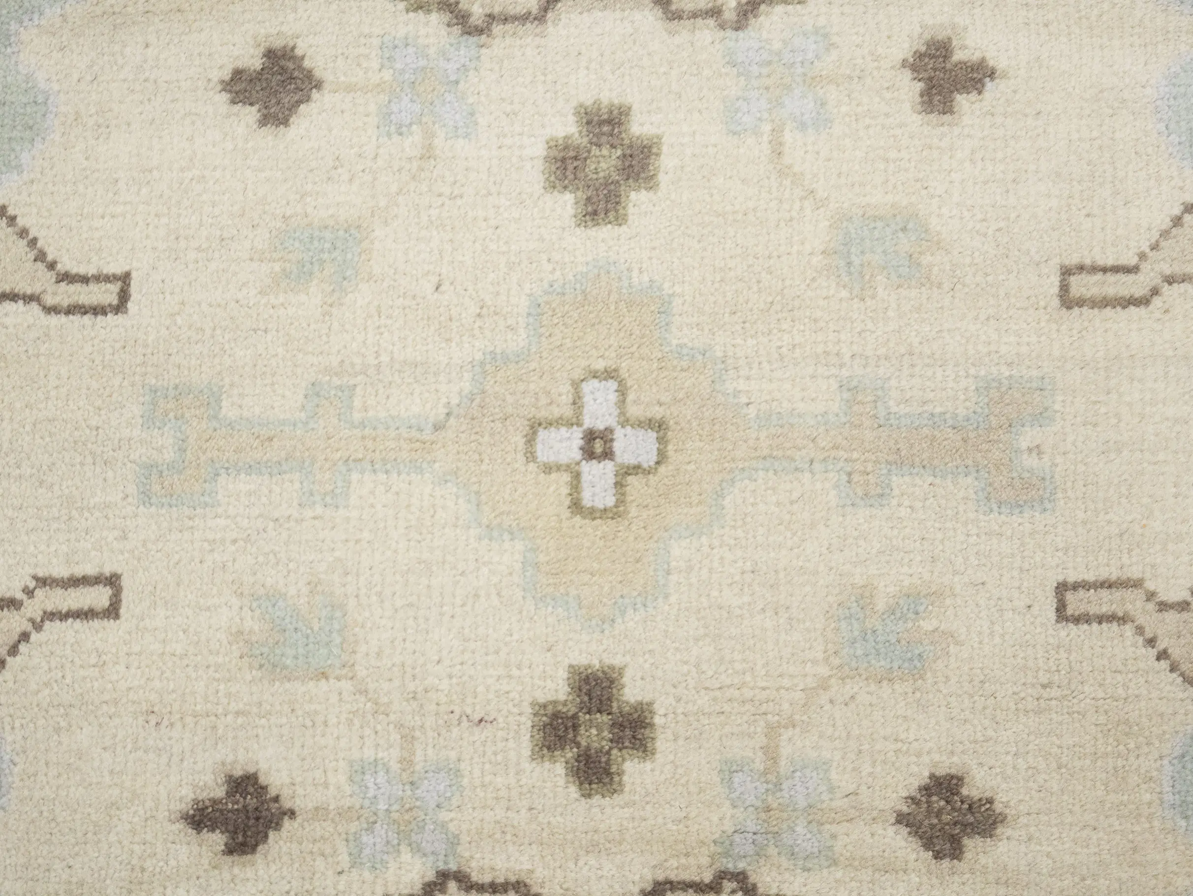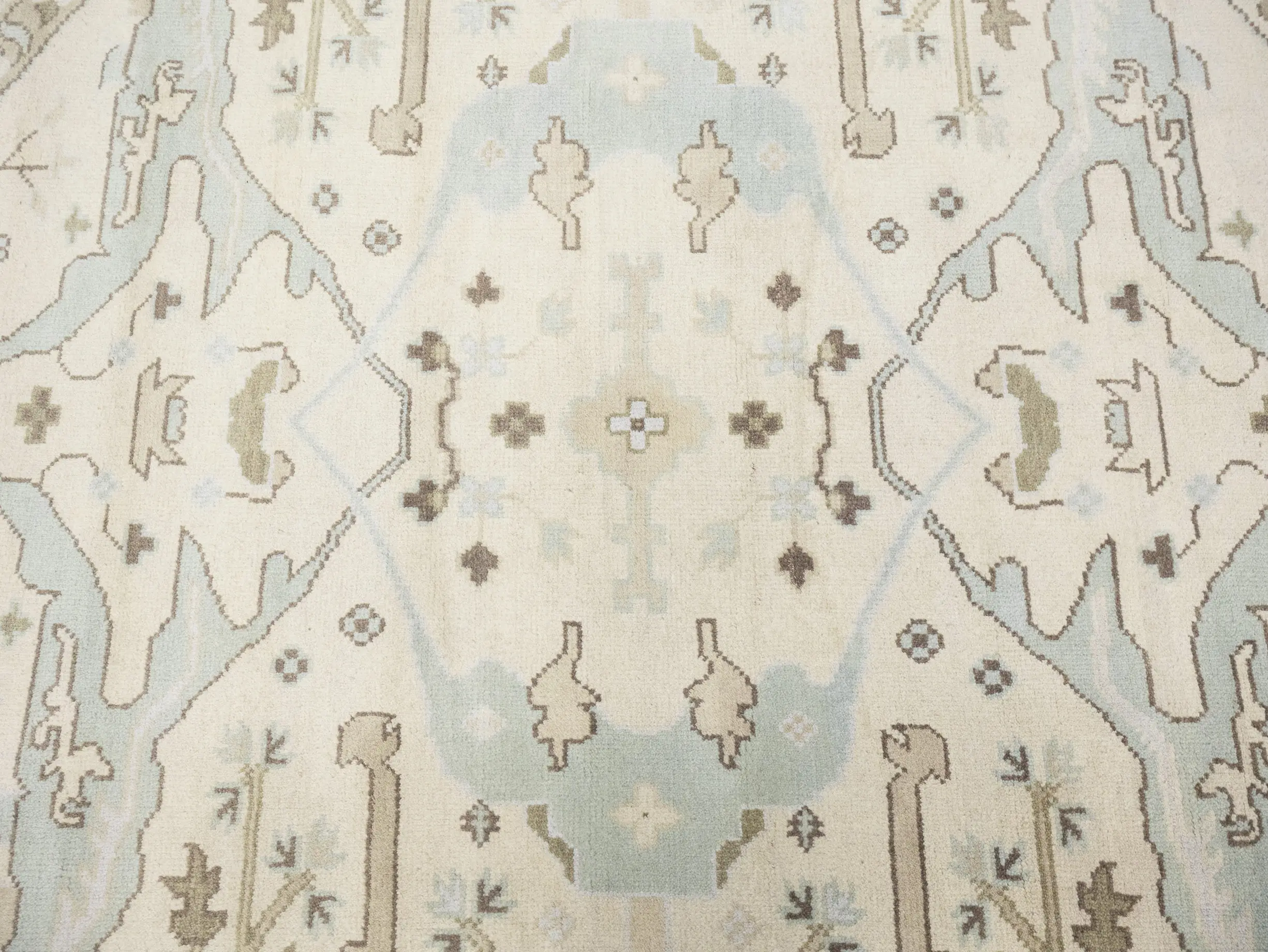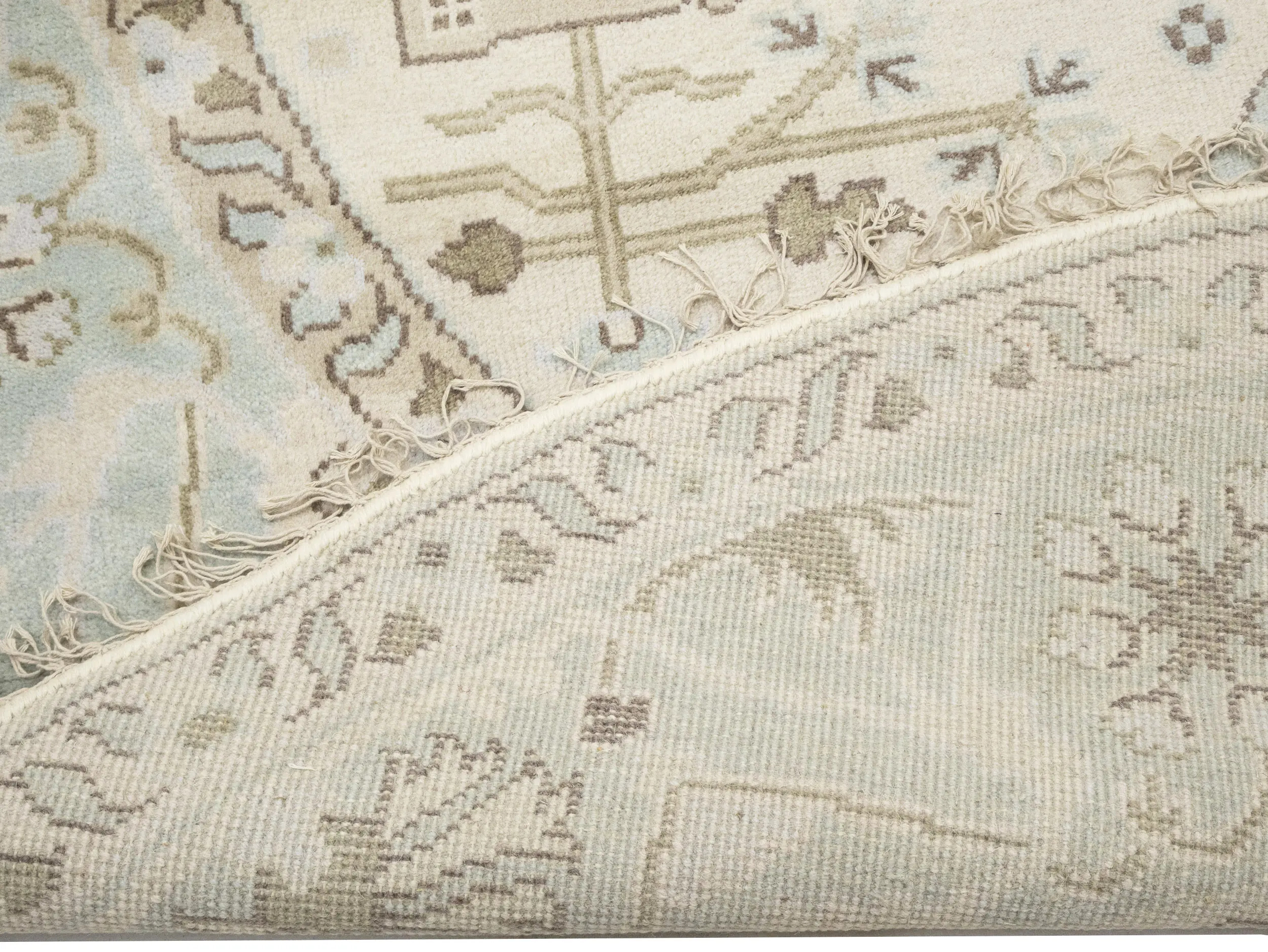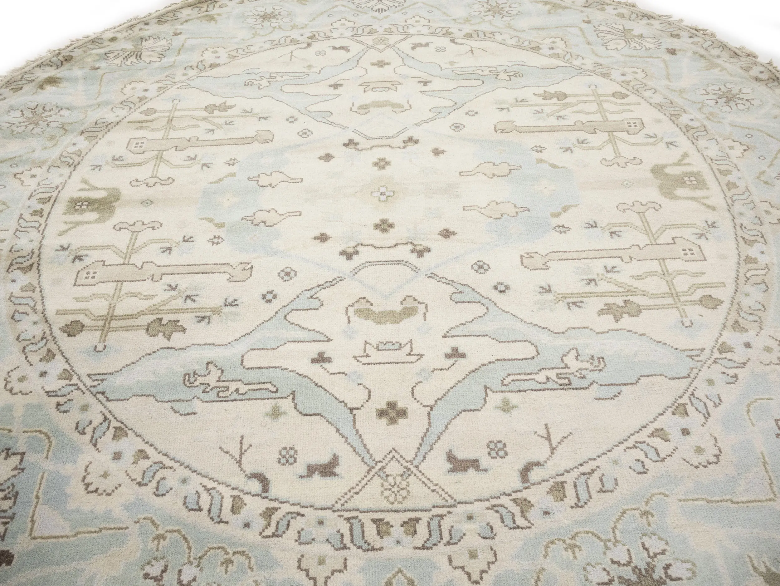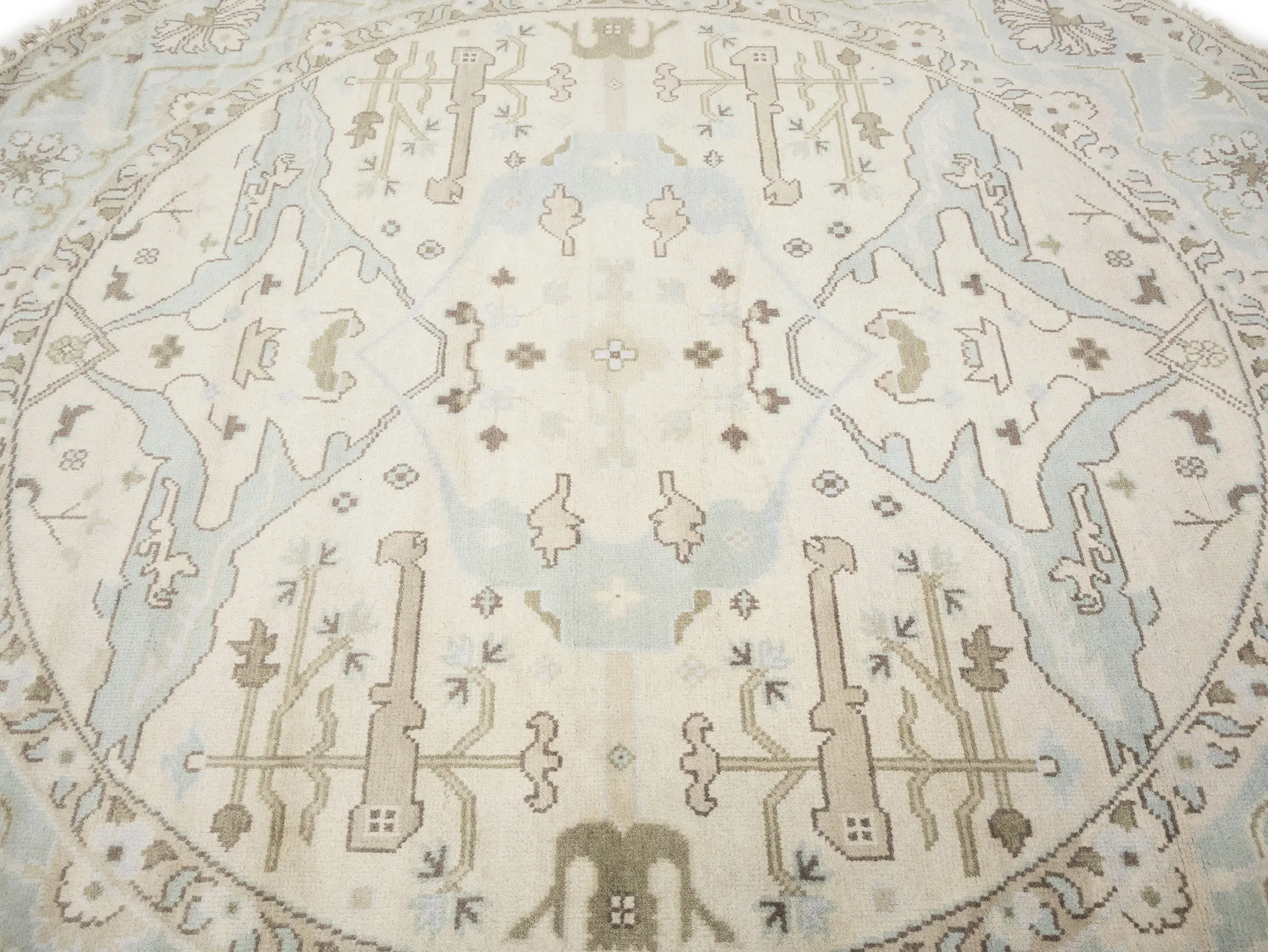 Muted Cream Floral Transitional 9X9 Oushak Oriental Round Rug