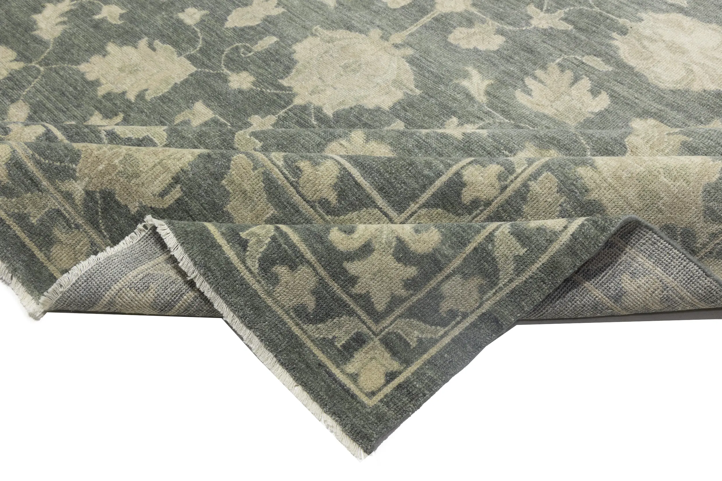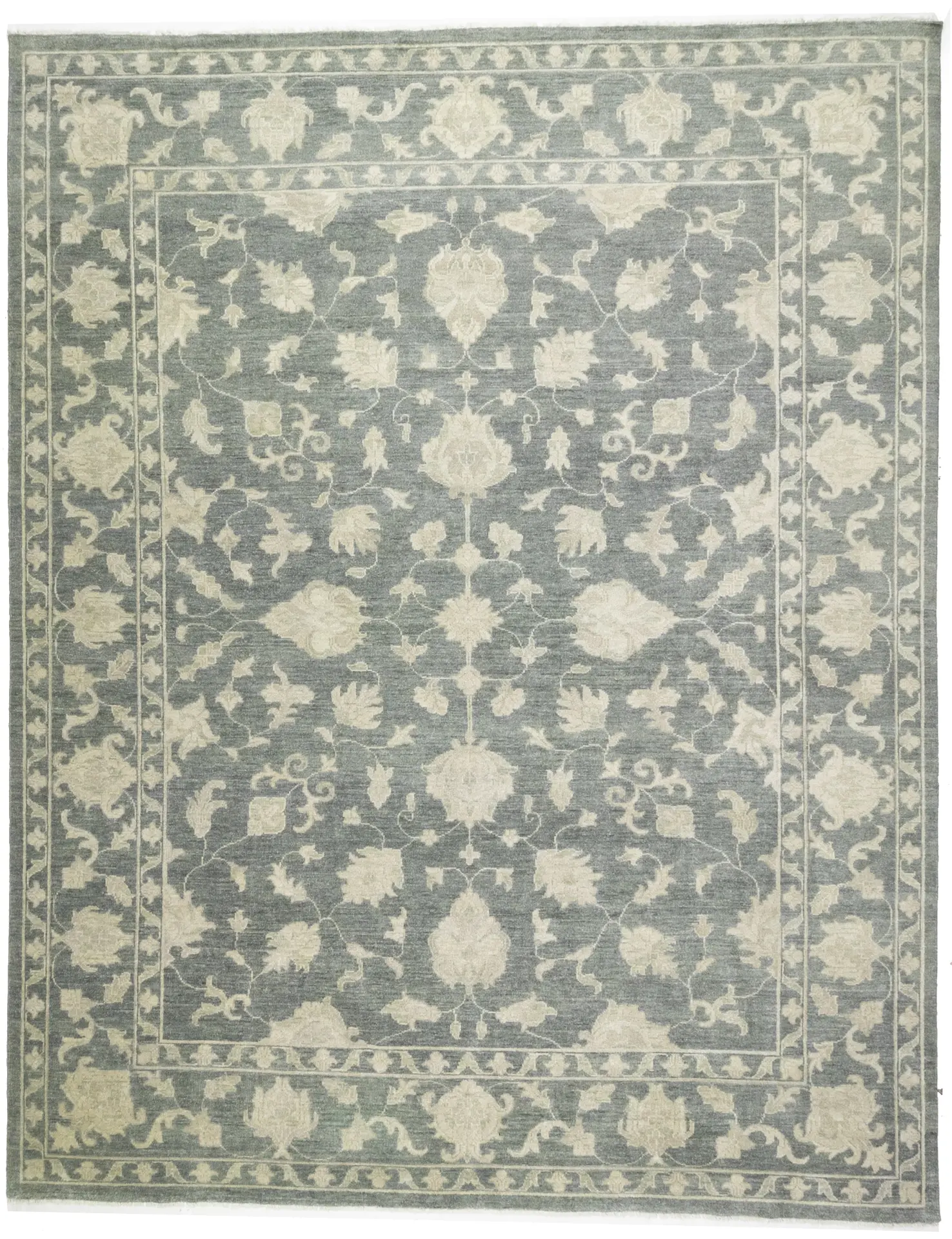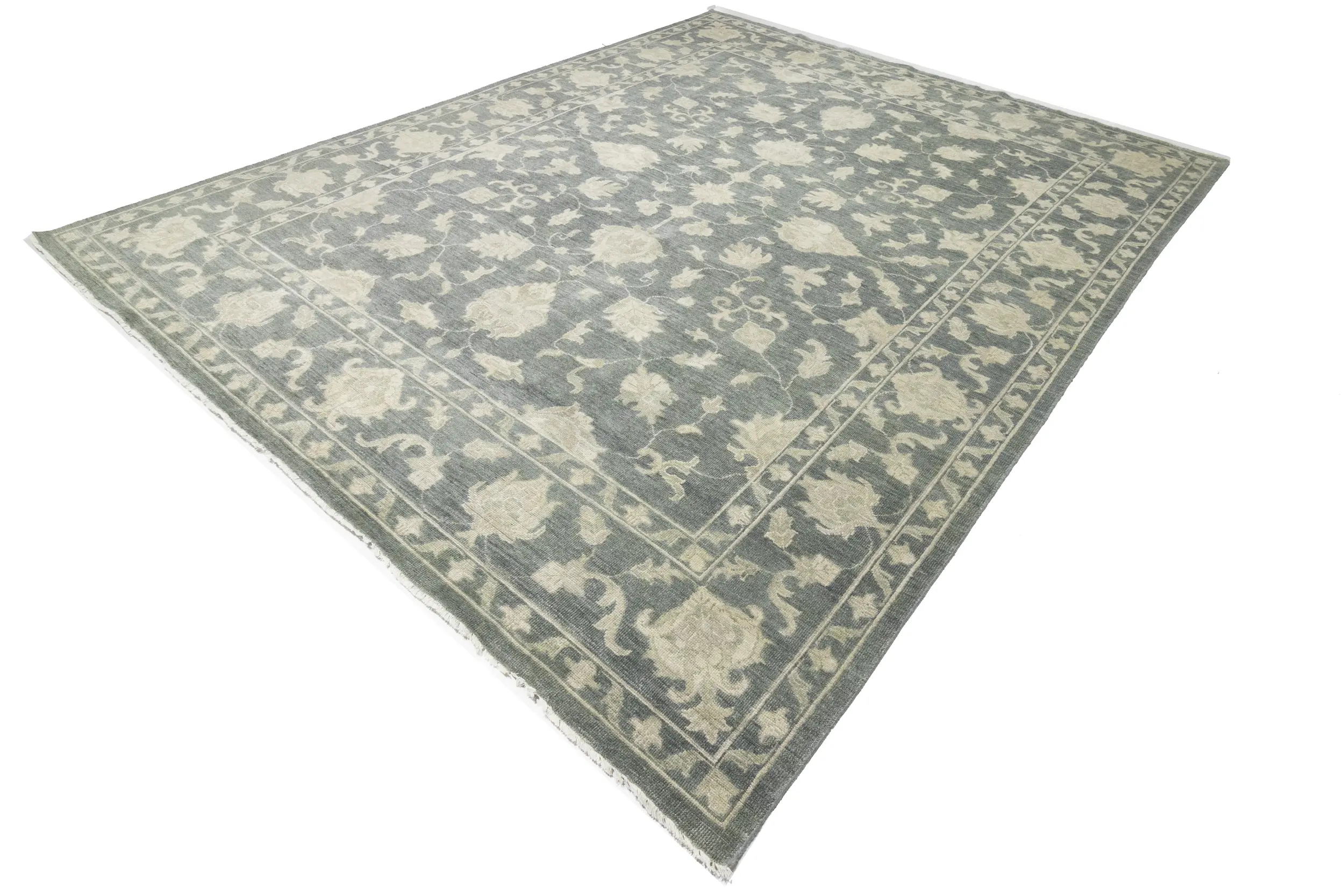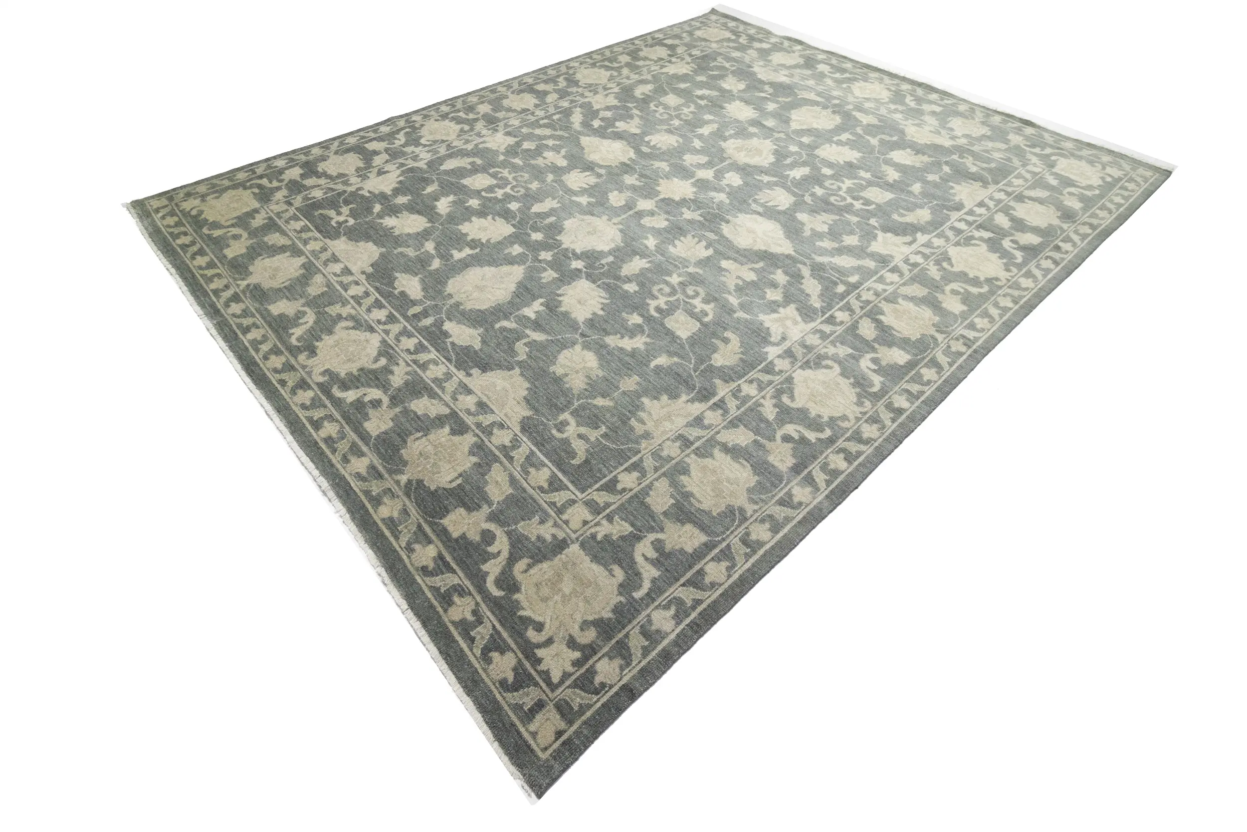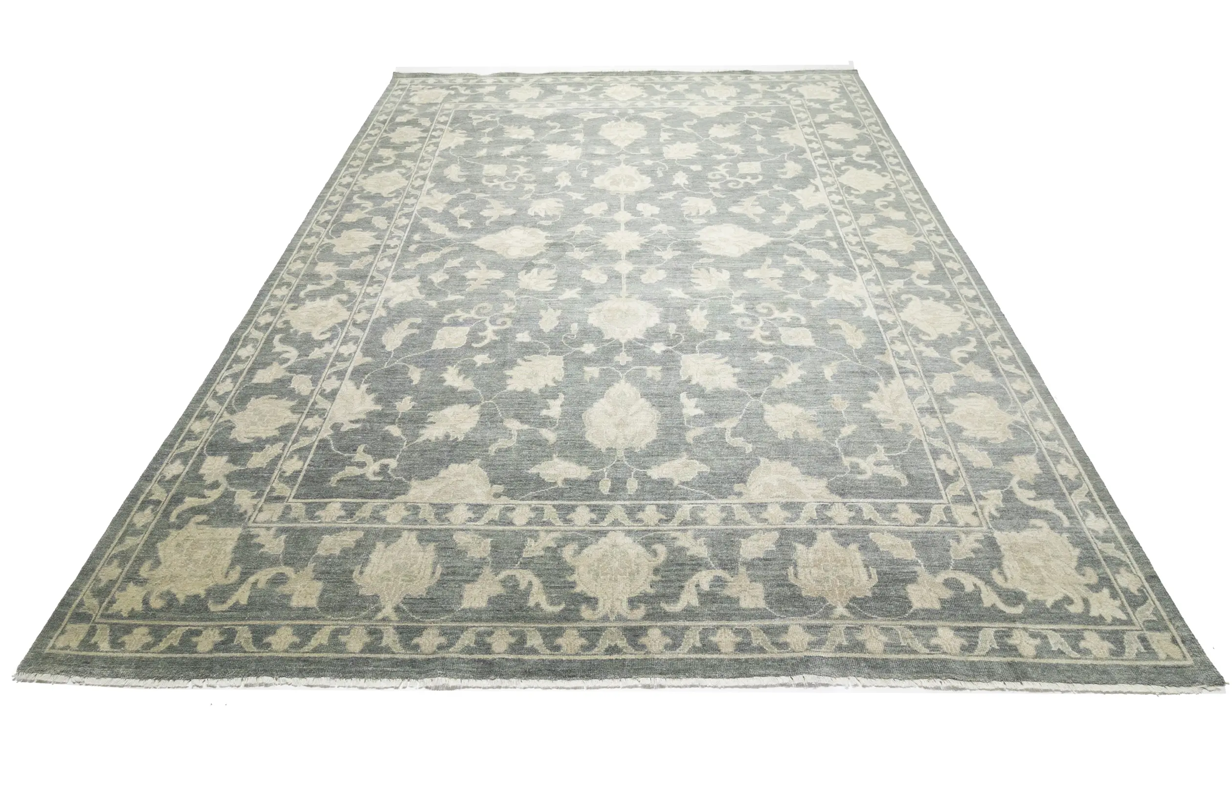Muted Dark Slate Floral 10X14 Transitional Oriental Rug