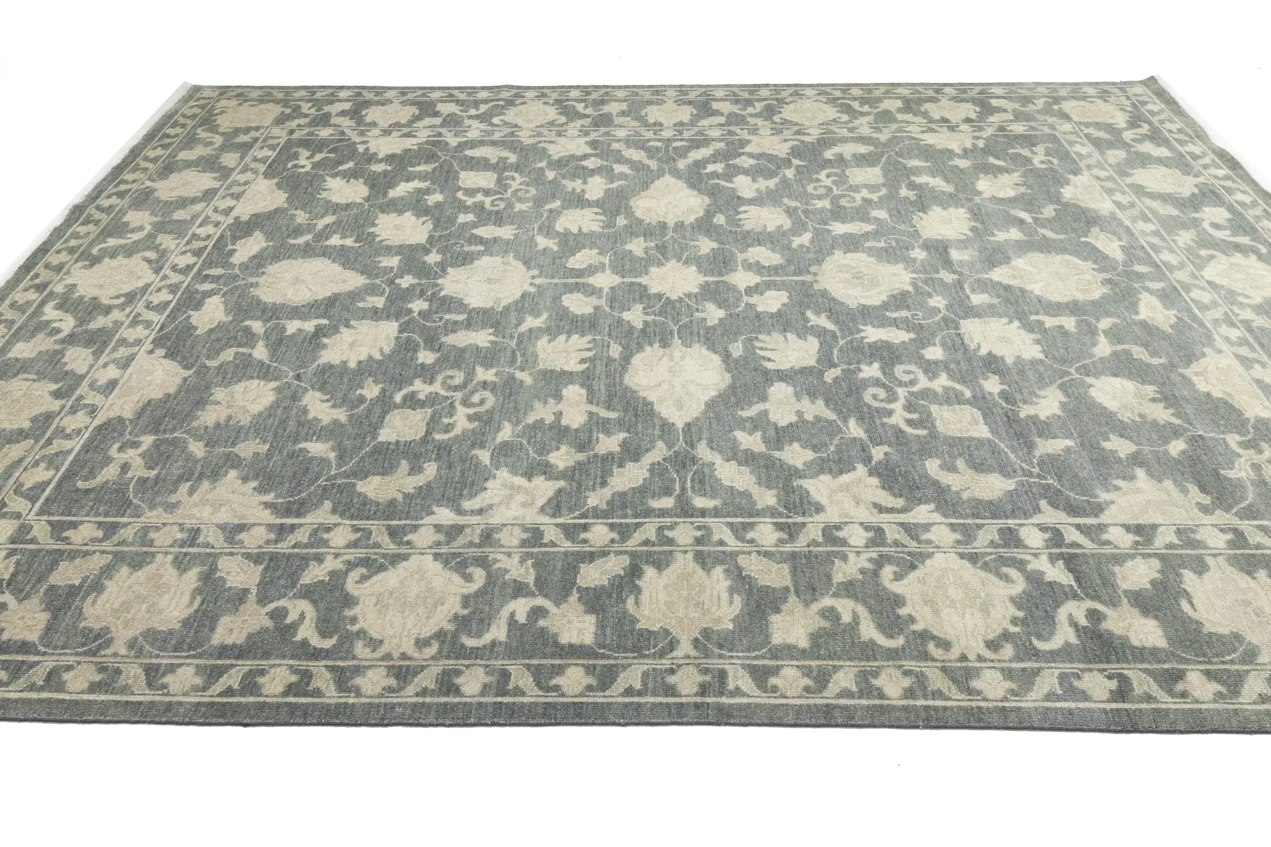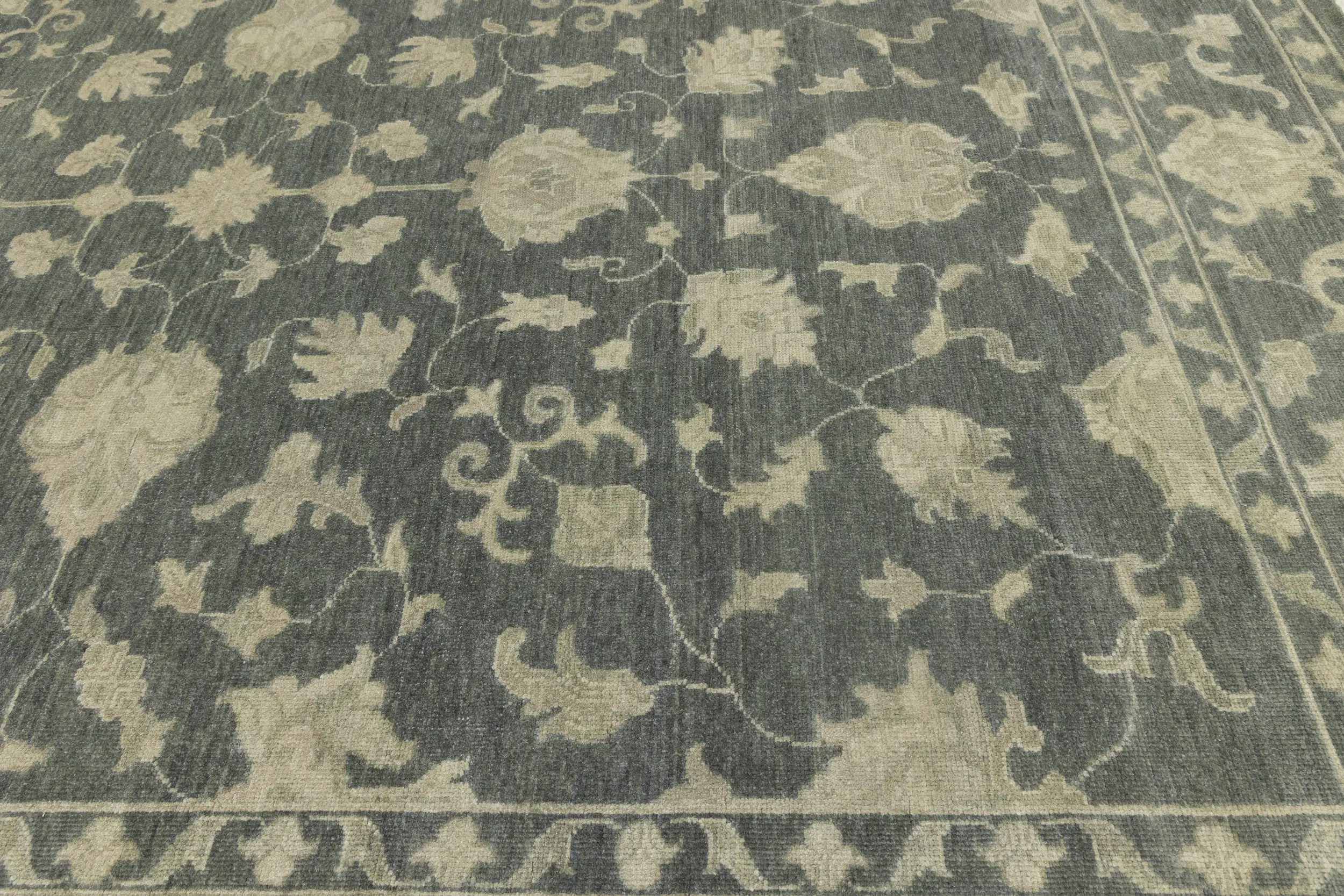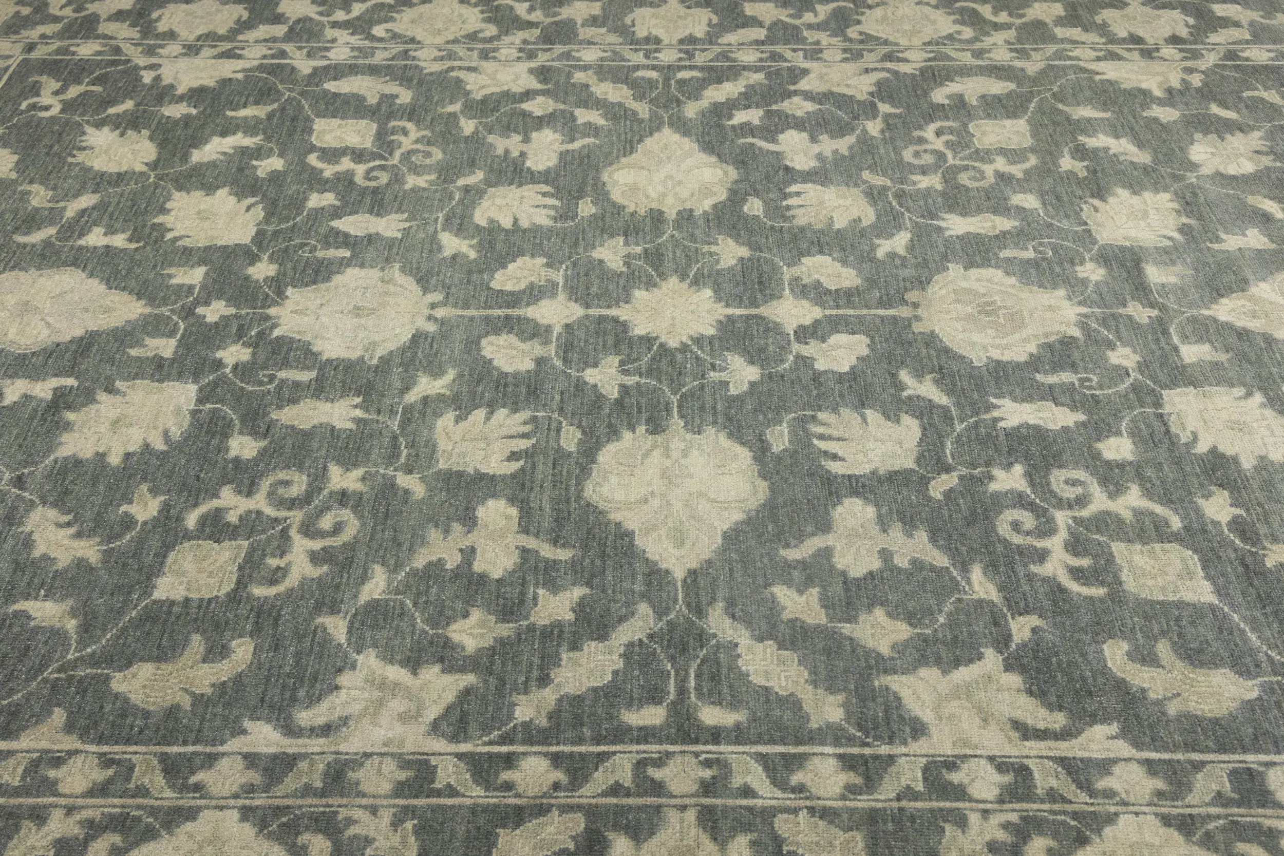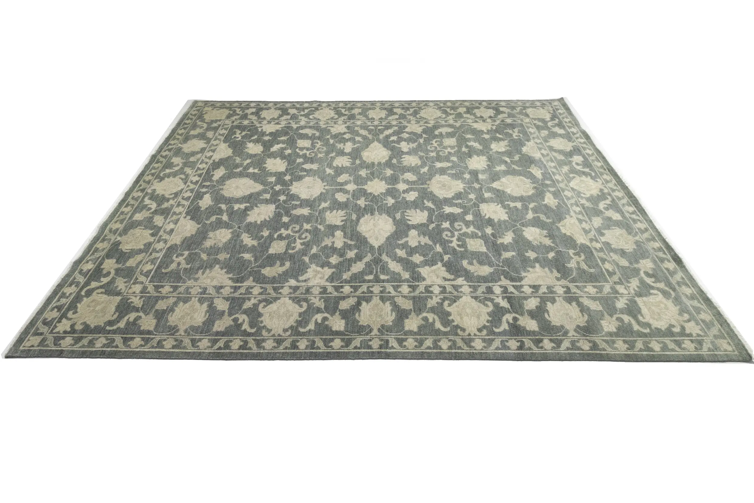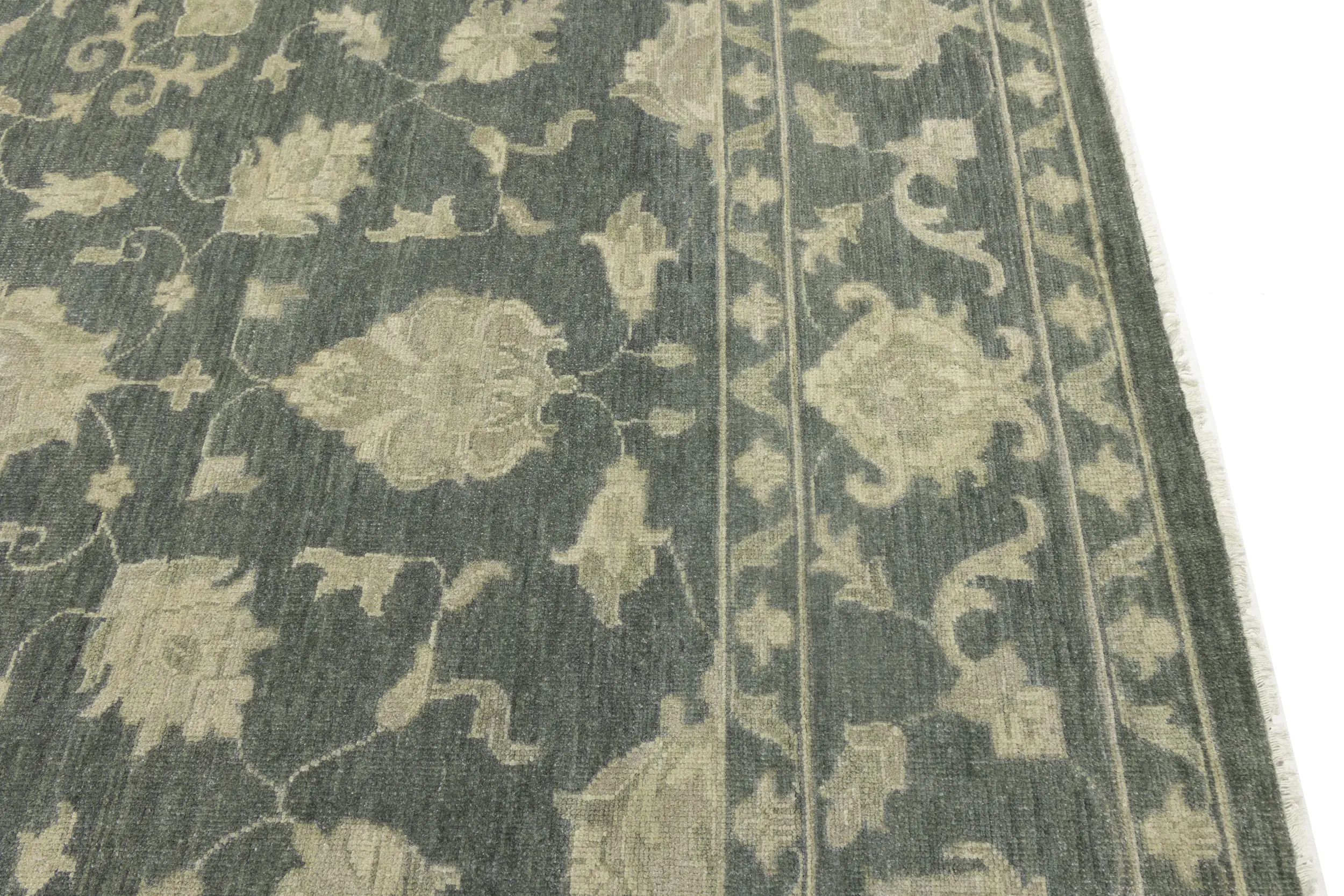 Muted Dark Slate Floral 10X14 Transitional Oriental Rug