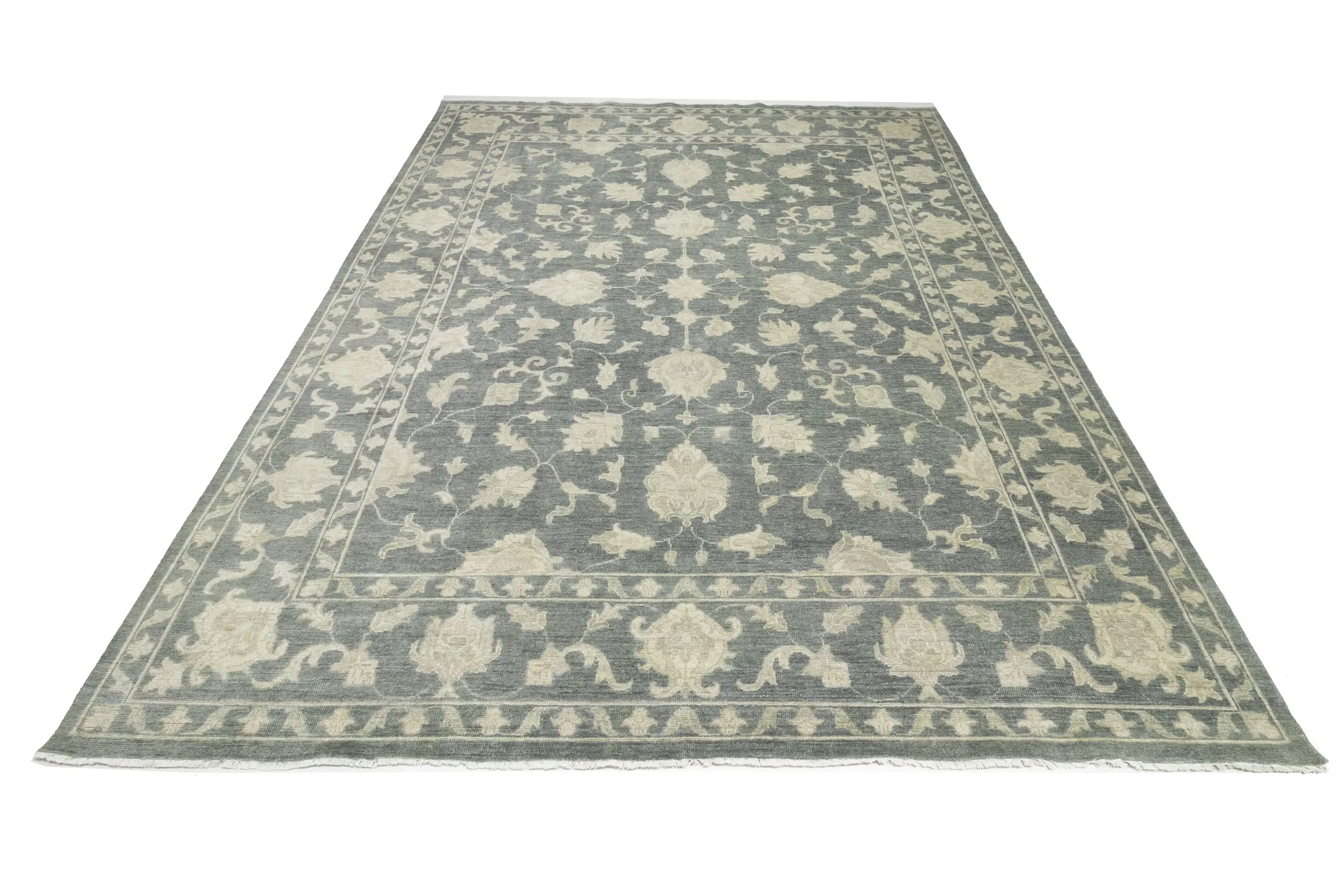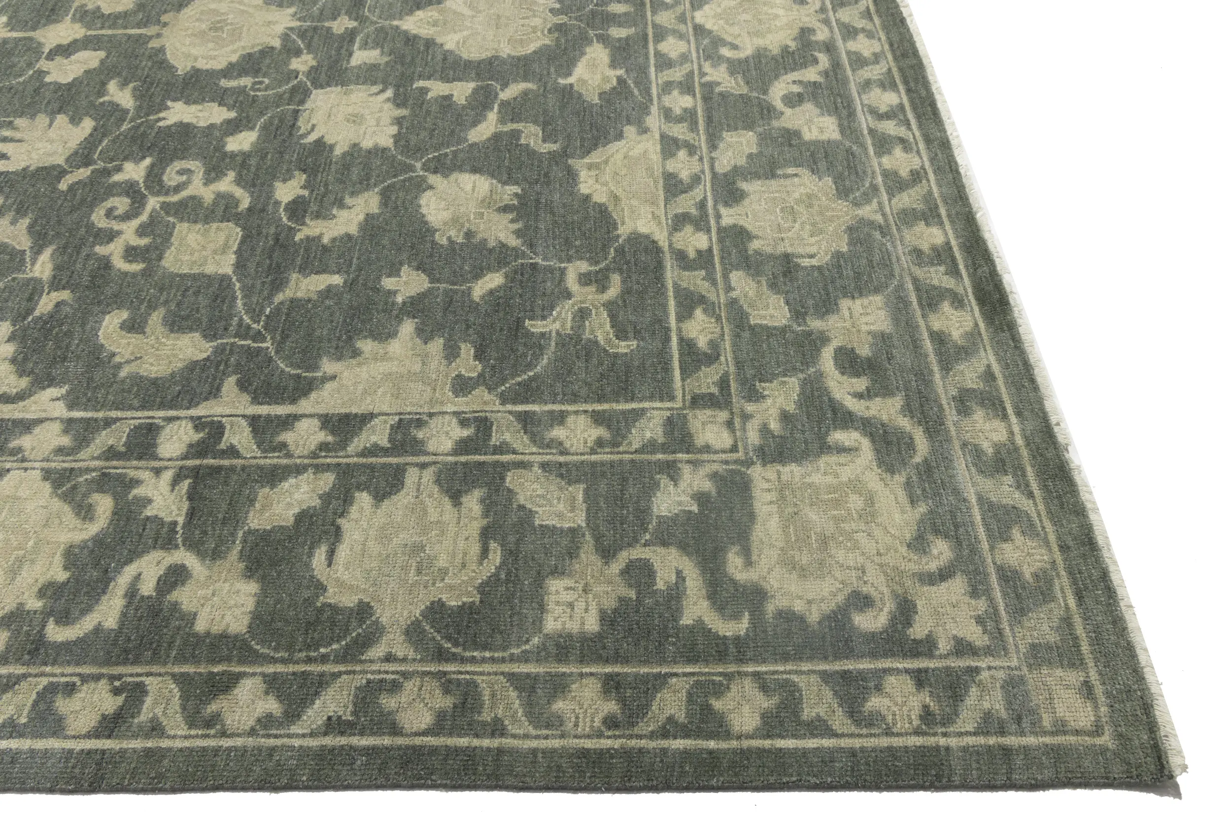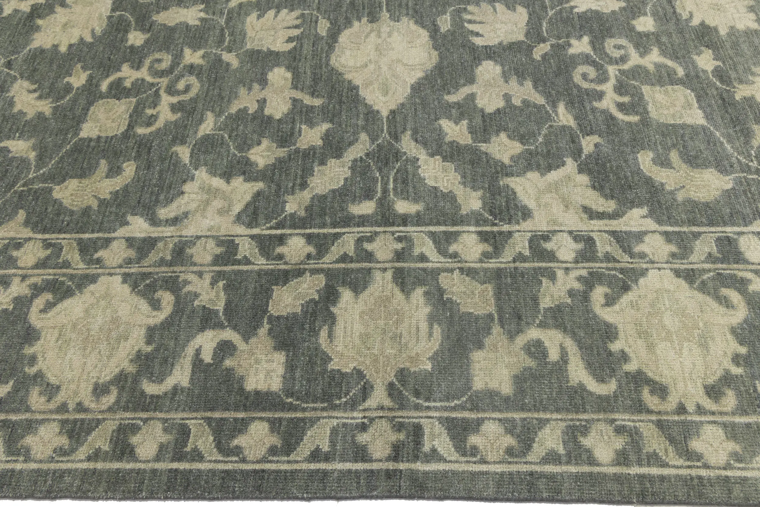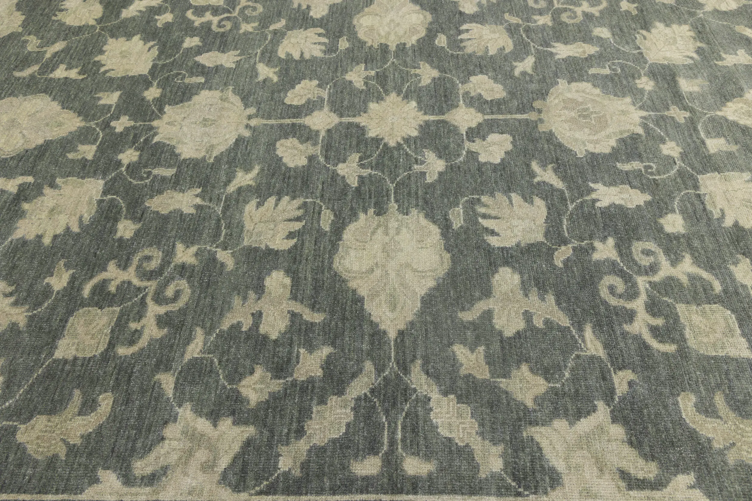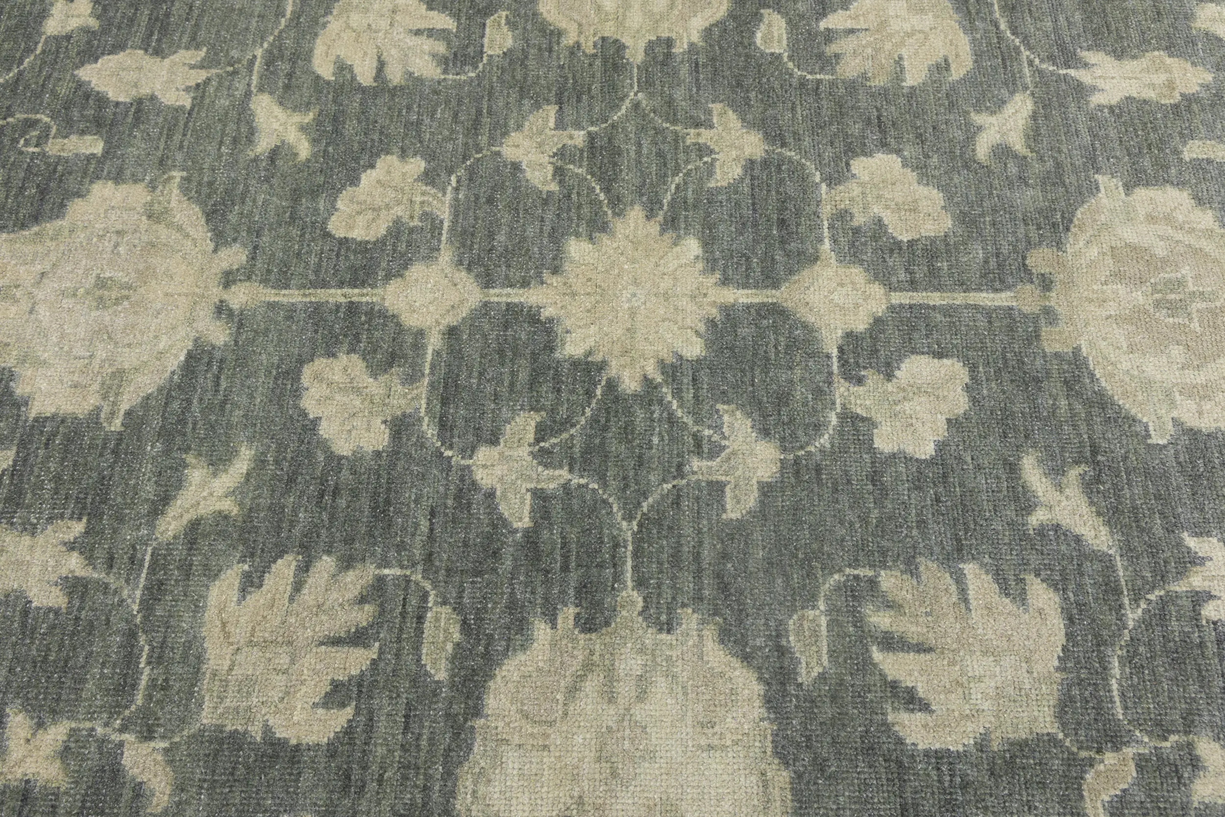Muted Dark Slate Floral 10X14 Transitional Oriental Rug