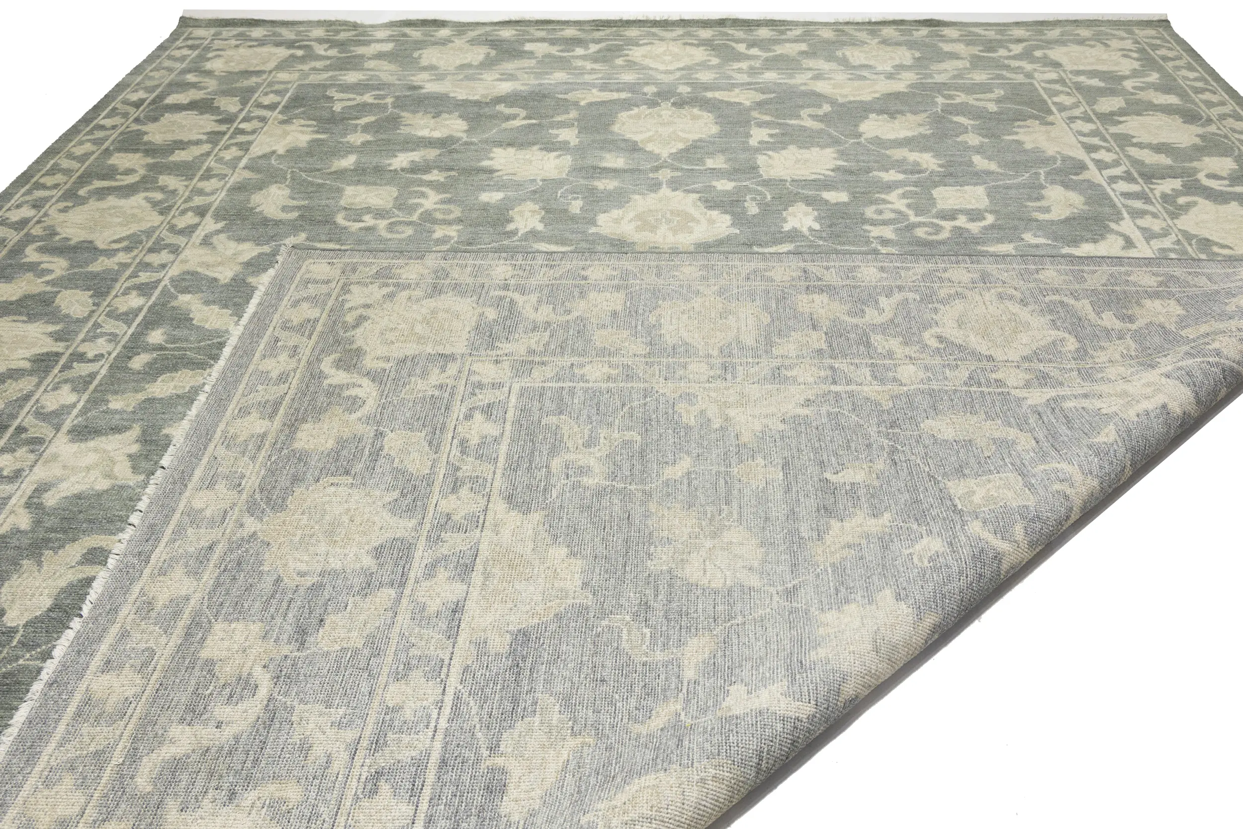 Handmade 10X14 gray oriental rug made with vegetable dyes (fine wool pile and cotton foundation), superior knot count, and appealing ancient designs. This Oriental rug never will go out of style and would be among your most valuable treasures.