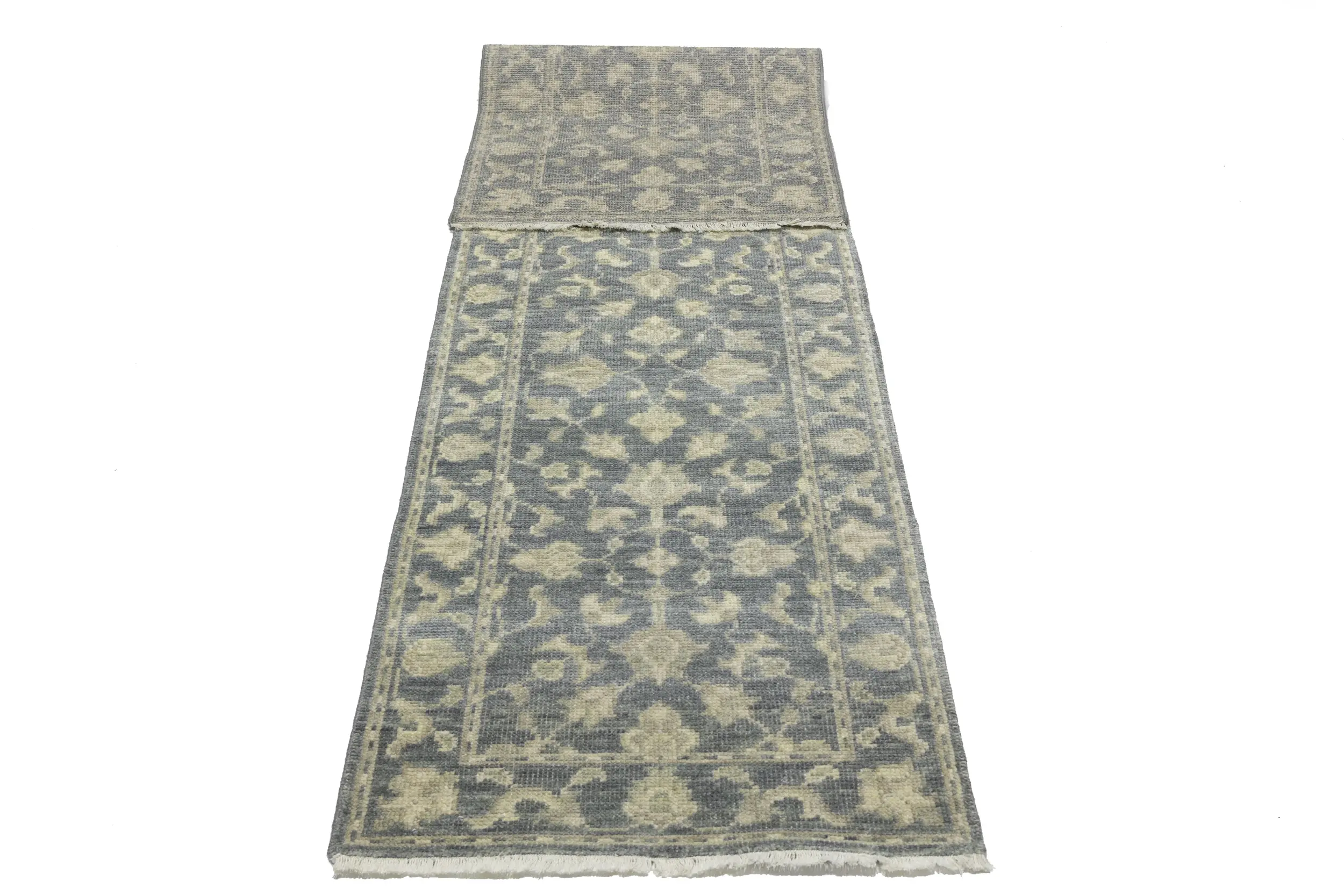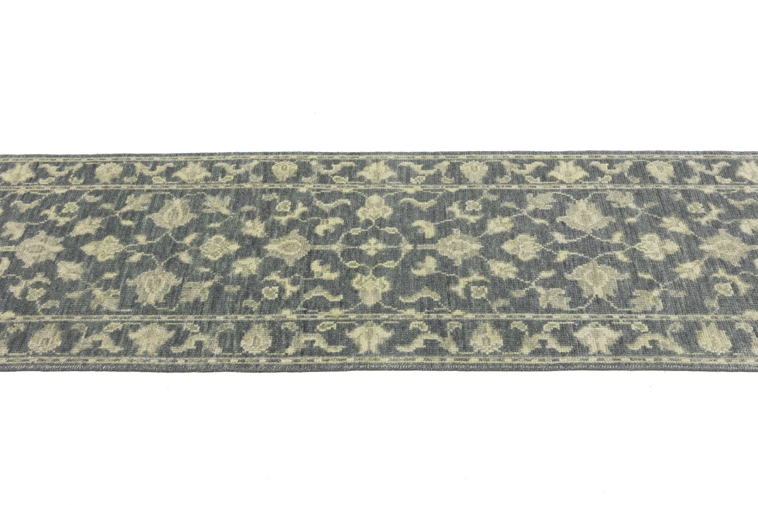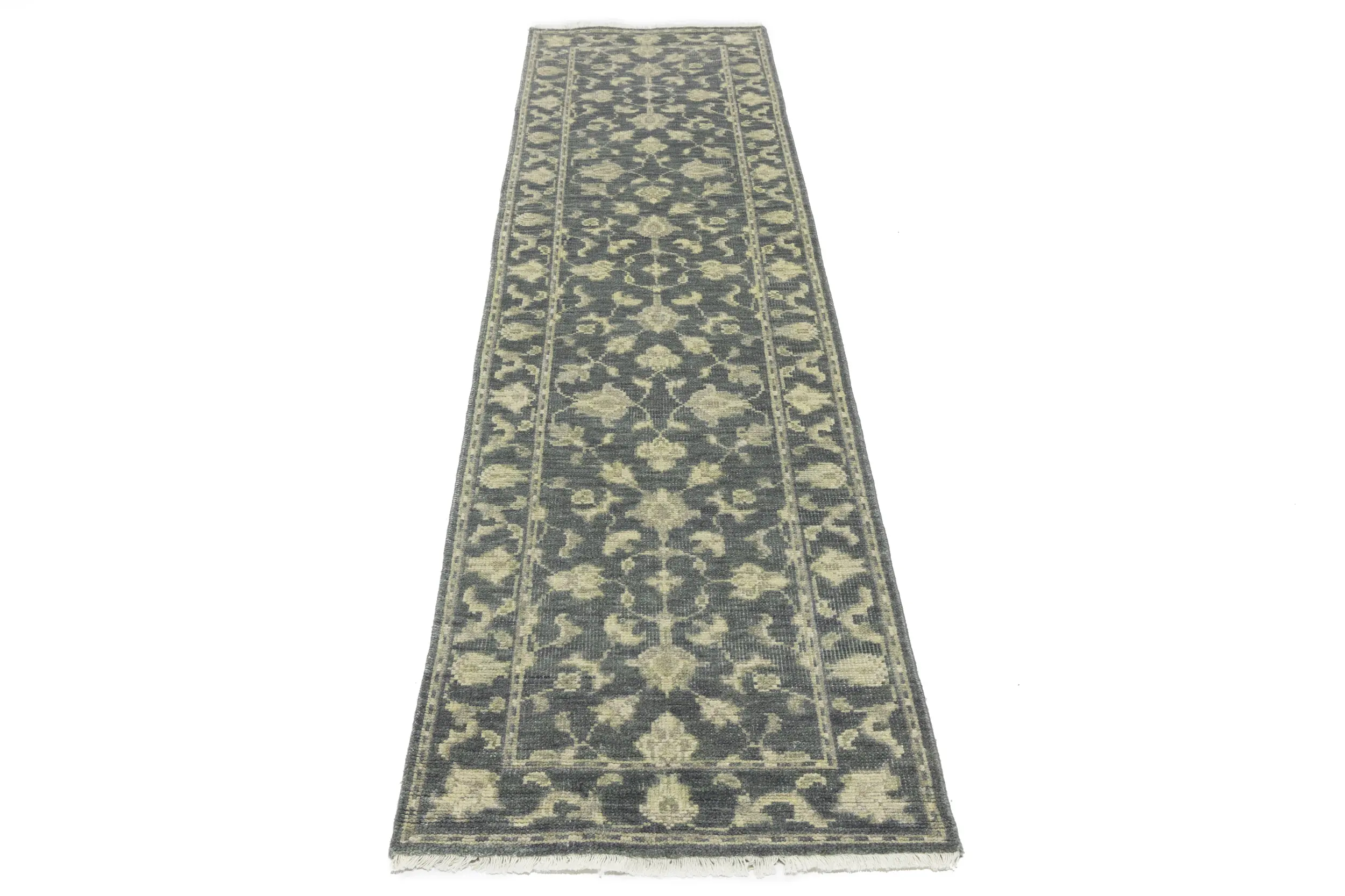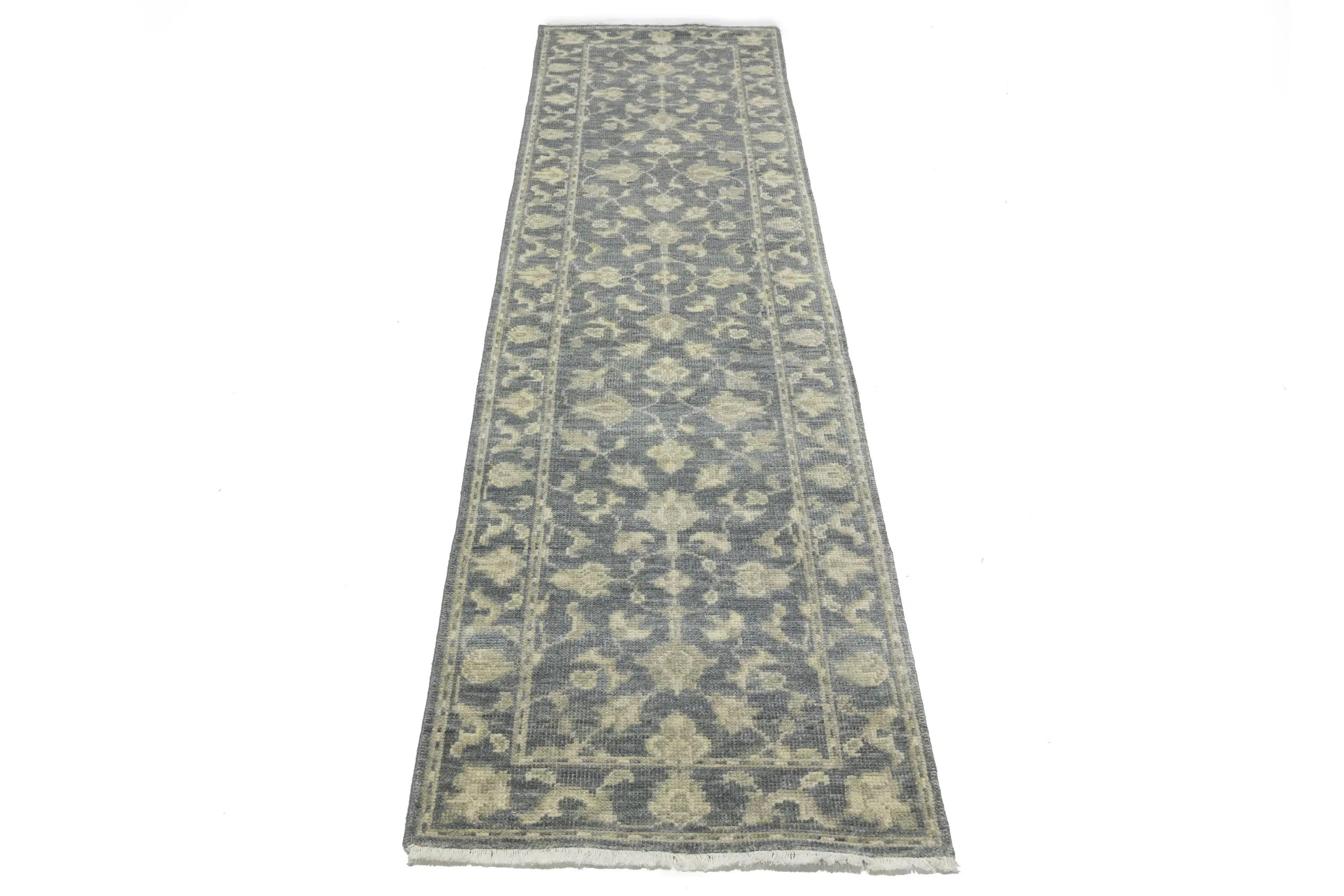 Muted Dark Slate Floral 2'6X10 Transitional Oriental Runner Rug
