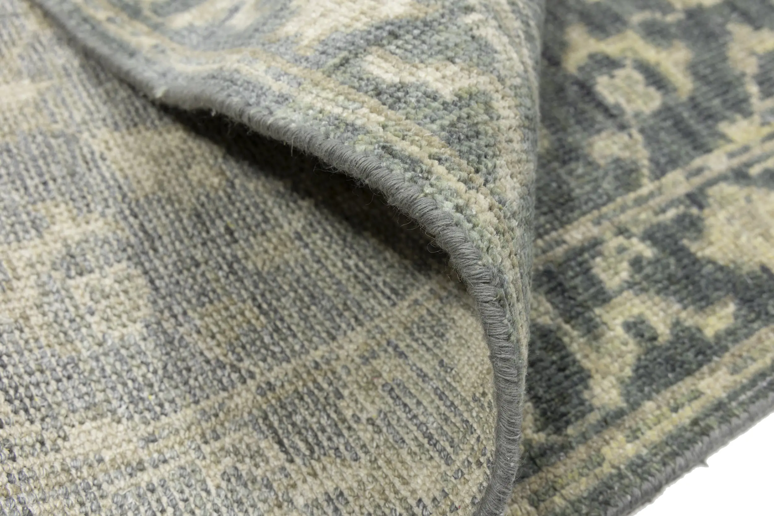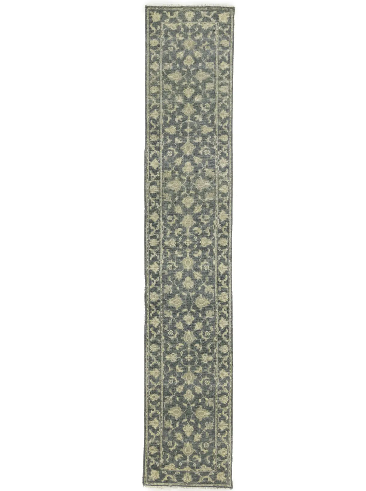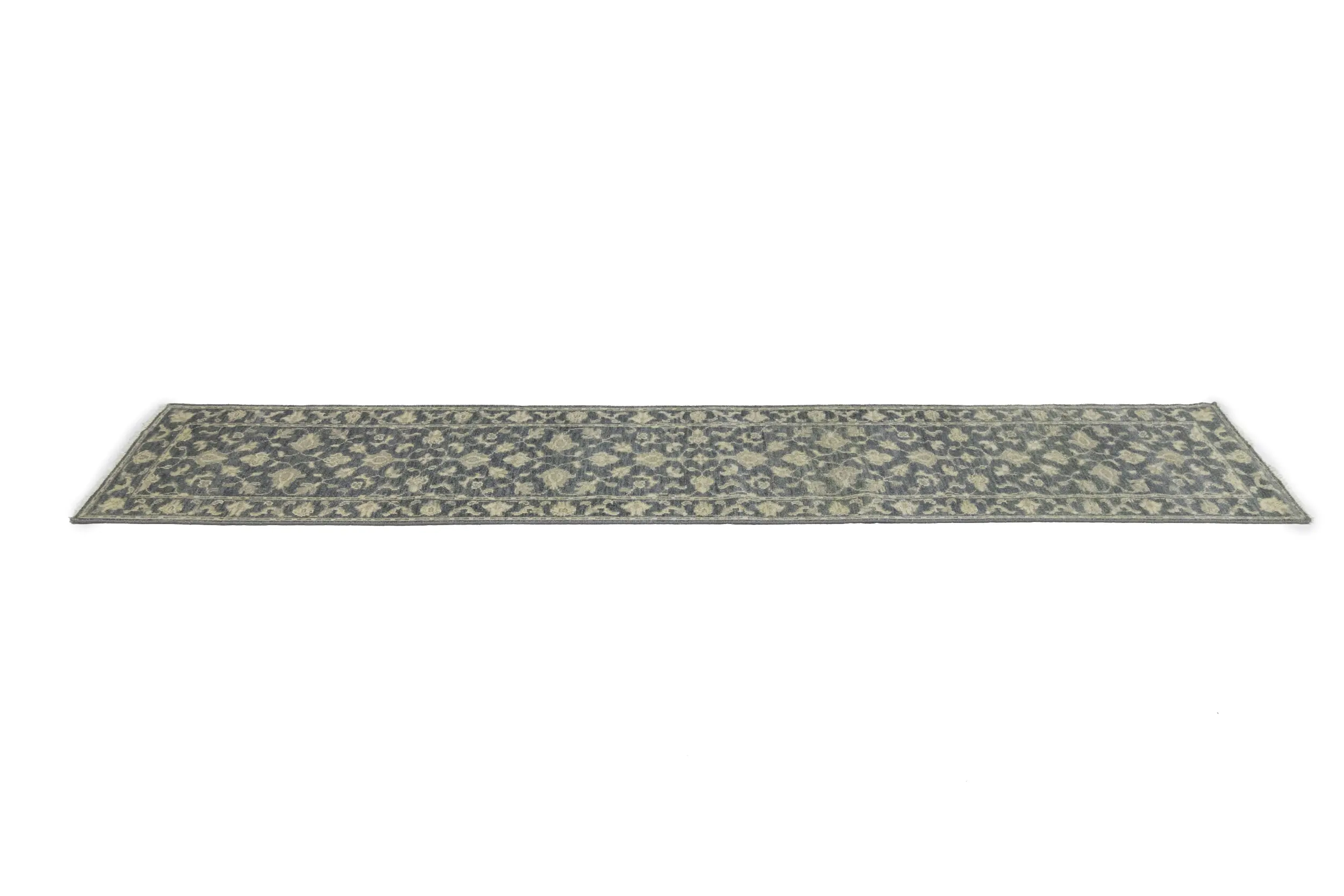 Handmade 2'7X14 gray oriental runner made with vegetable dyes (fine wool pile and cotton foundation), superior knot count, and appealing ancient designs. This Oriental runner never will go out of style and would be among your most valuable treasures.