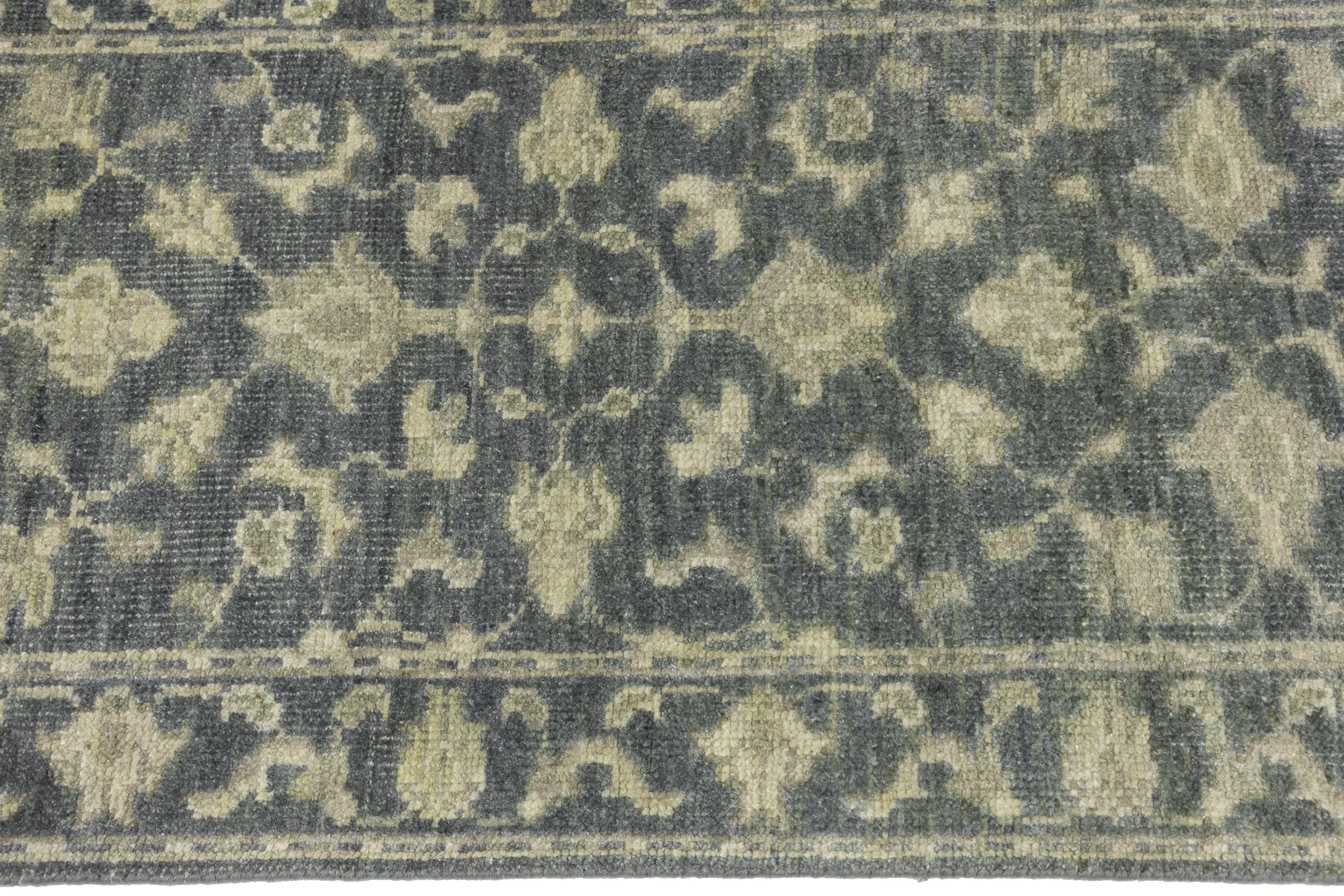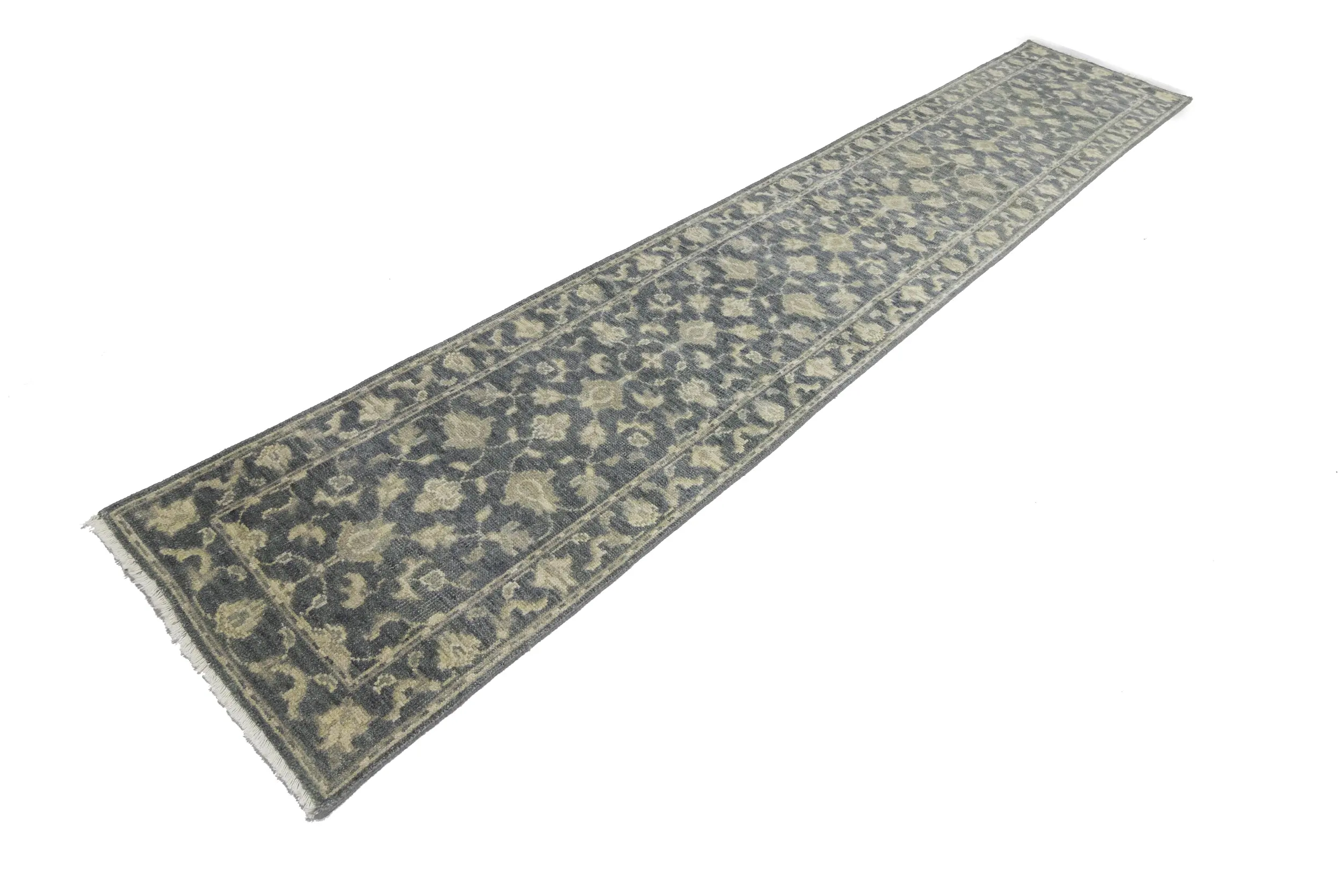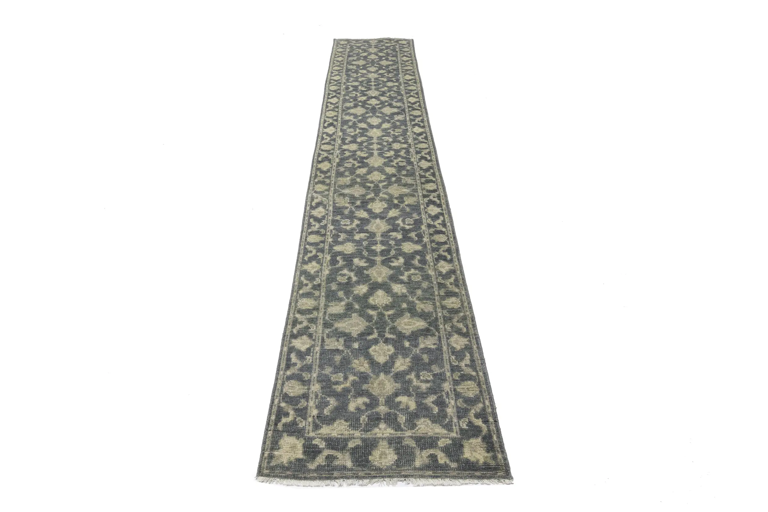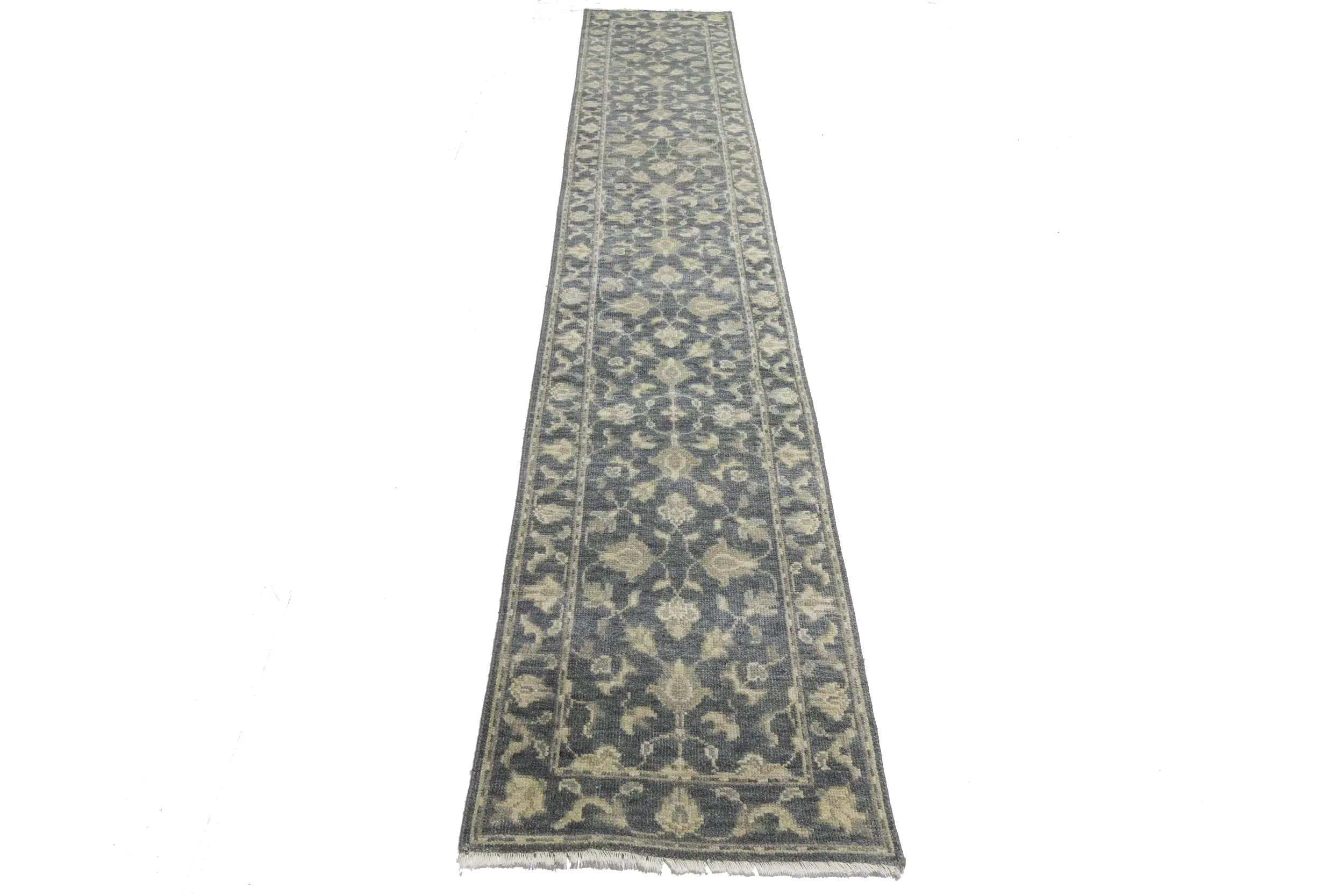 Muted Dark Slate Floral 2'7X14 Transitional Oriental Runner Rug