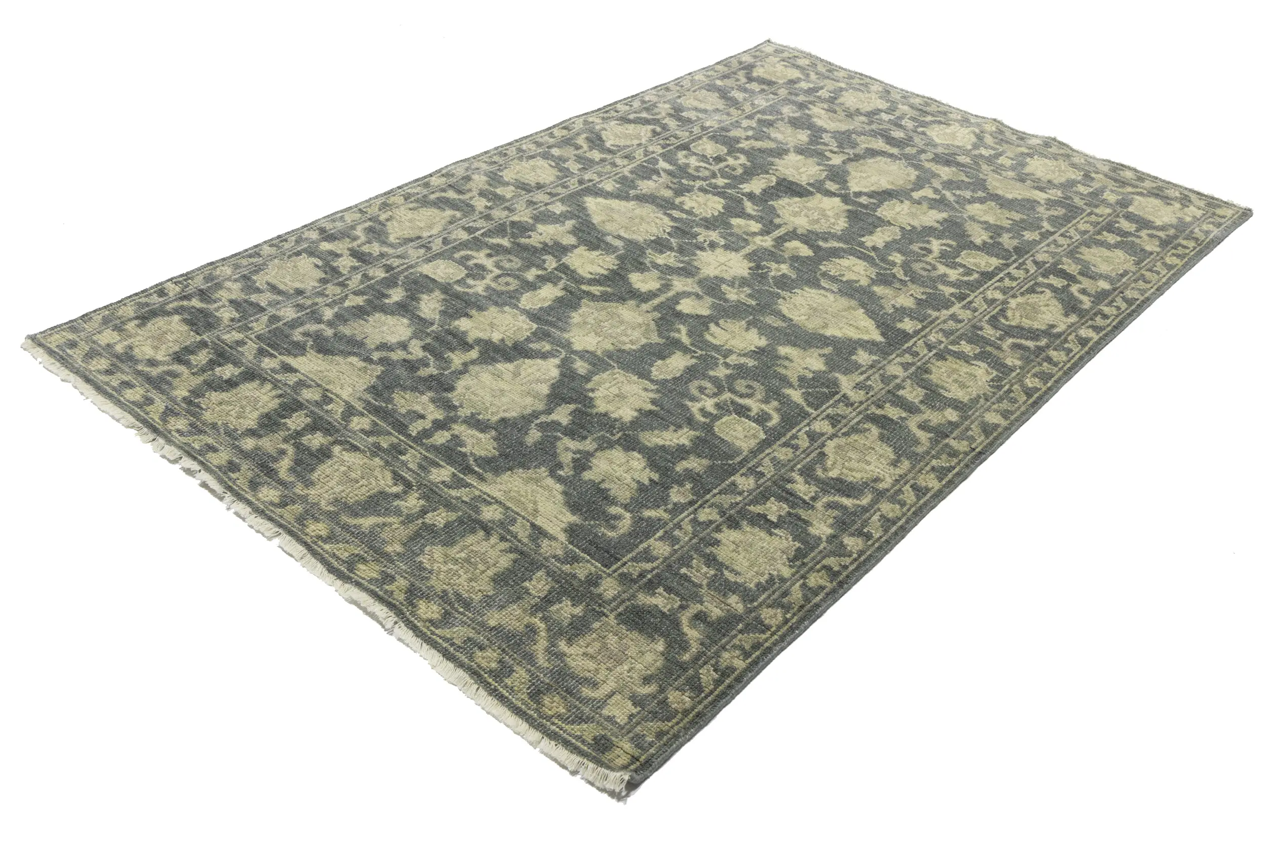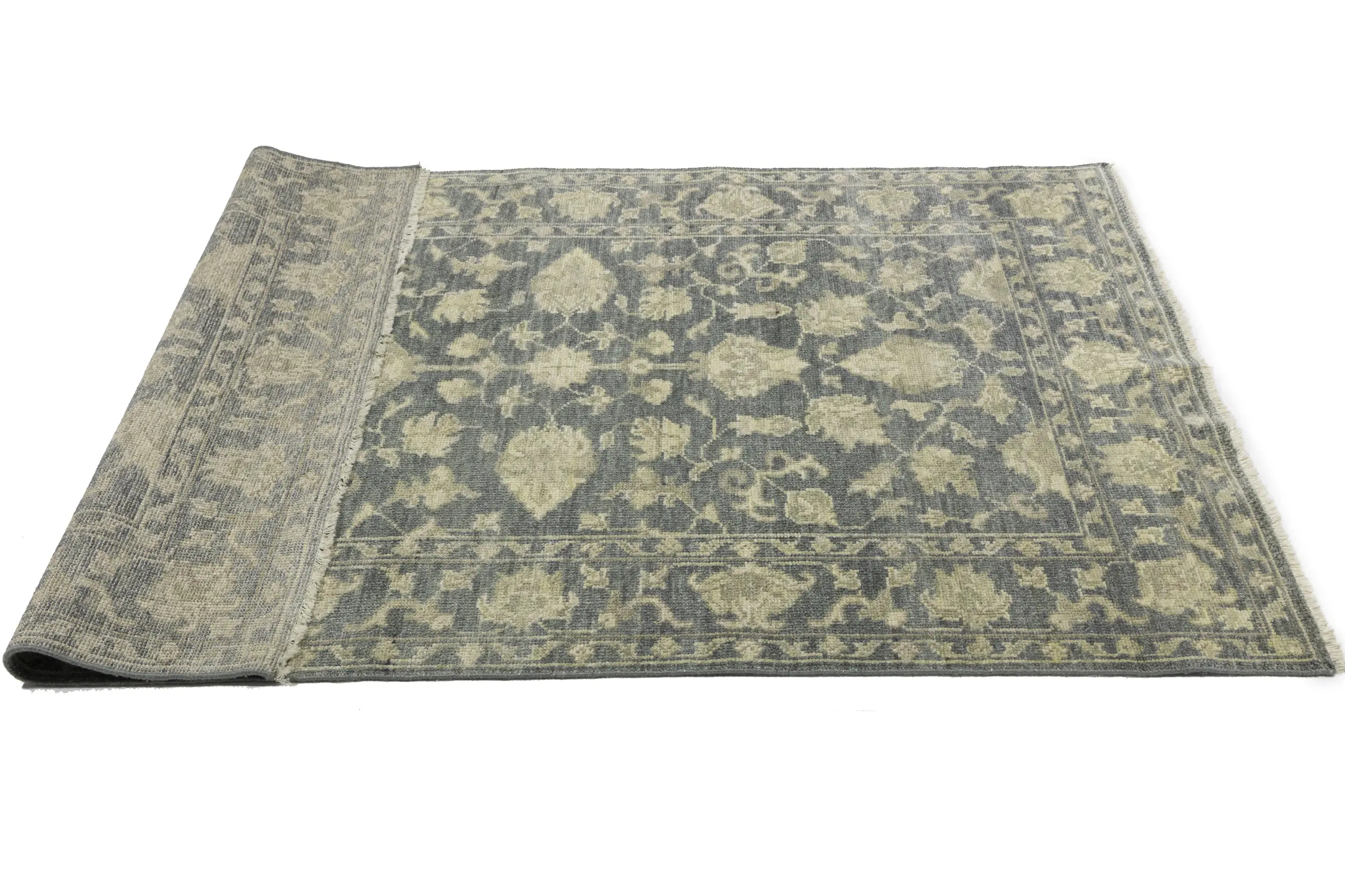 Muted Dark Slate Floral 5X8 Transitional Oriental Rug