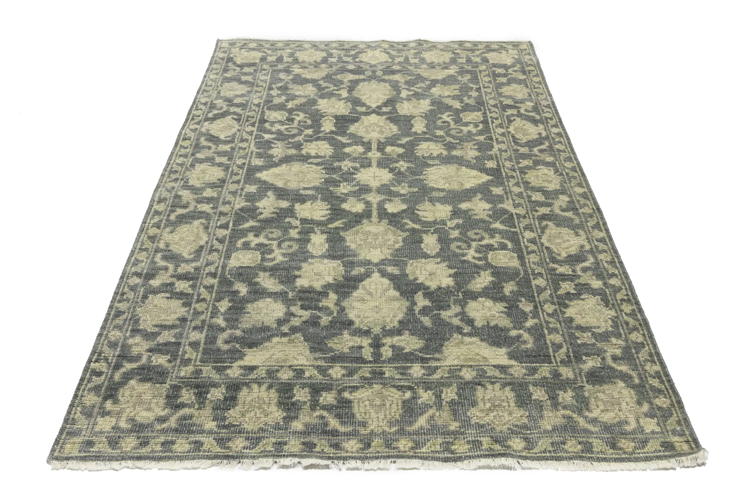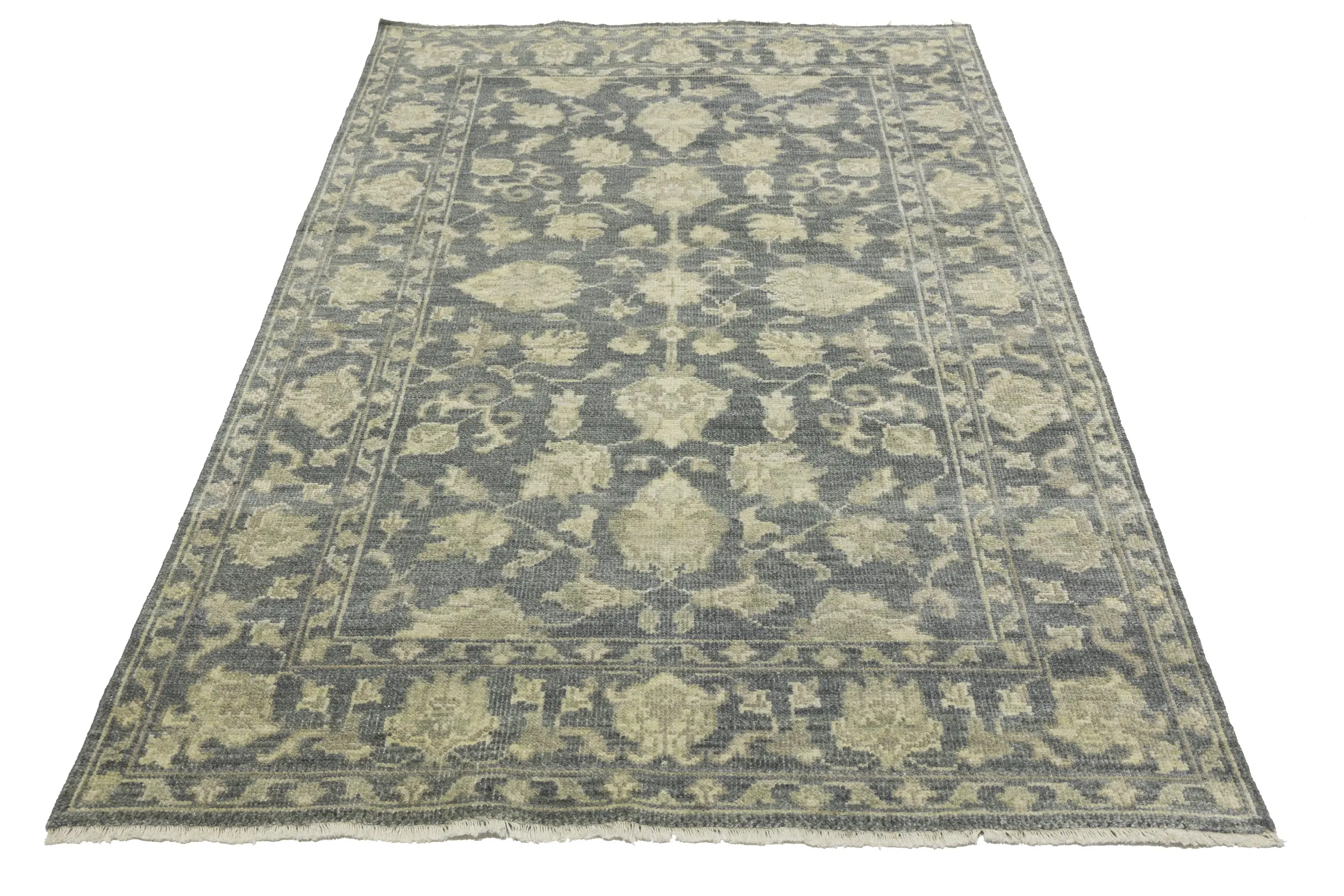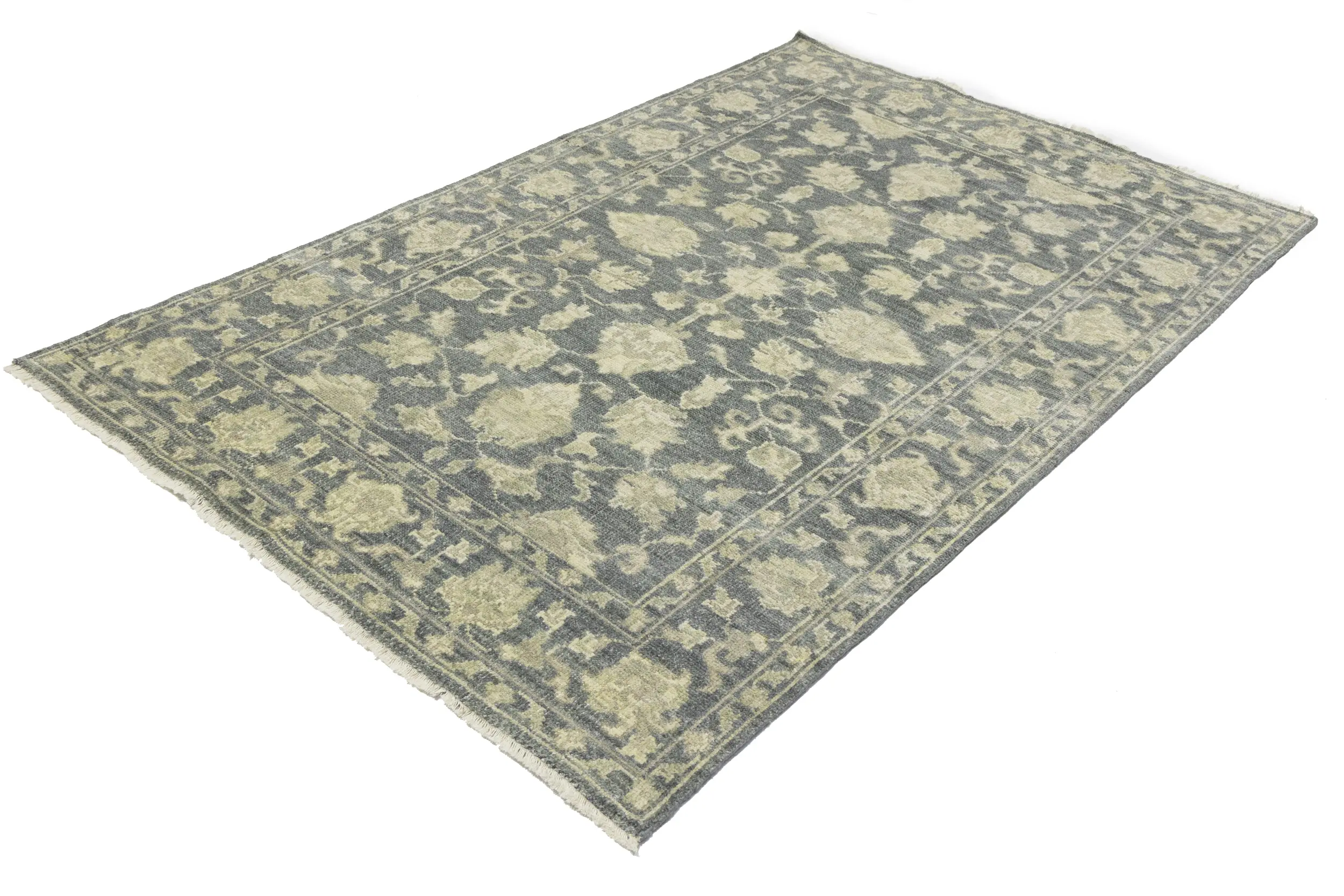 Handmade 5X8 gray oriental rug made with vegetable dyes (fine wool pile and cotton foundation), superior knot count, and appealing ancient designs. This Oriental rug never will go out of style and would be among your most valuable treasures.