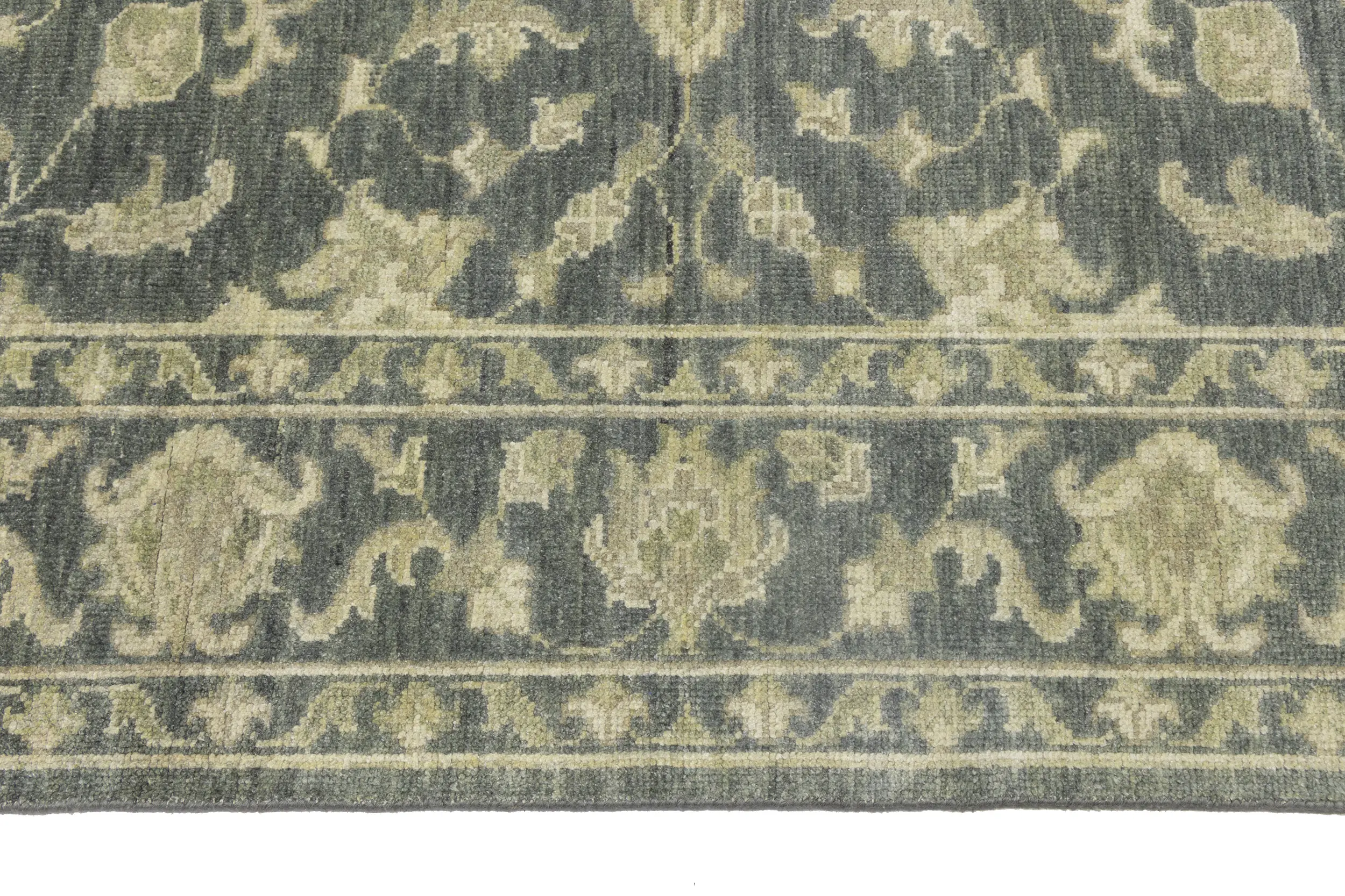 This genuine 8X10 gray new Oriental rug was made by the hands of gifted weavers inspired by a variety of spectacular artistic designs, to recreate the aged look of the original piece with a richness of color and ornately patterned background field. What set this vintage style Oriental area rug from the others are the material and dye used (wool pile and cotton foundation), knot count, ancient designs, fantastic grades, and its regional historical connection: it has deep roots, from the story of the people who produced it to the meaning of the symbols and colors displayed across its canvas that have been praised for centuries. This Indian home décor carpet will be completely cozy and inviting that never will go out of style! Also, this Oriental rug would be among your most valuable treasures, it is a great investment that accrues value over time, and it will last for generations because was woven with high-quality, all-natural wool. Environmentally friendly, opulent yet affordable; this rug will give you a thorough amount of character to help define your living space with elegance and warmth that will capture the eyes and attention of your audience (homeowners, designers, decorators, family and friends).