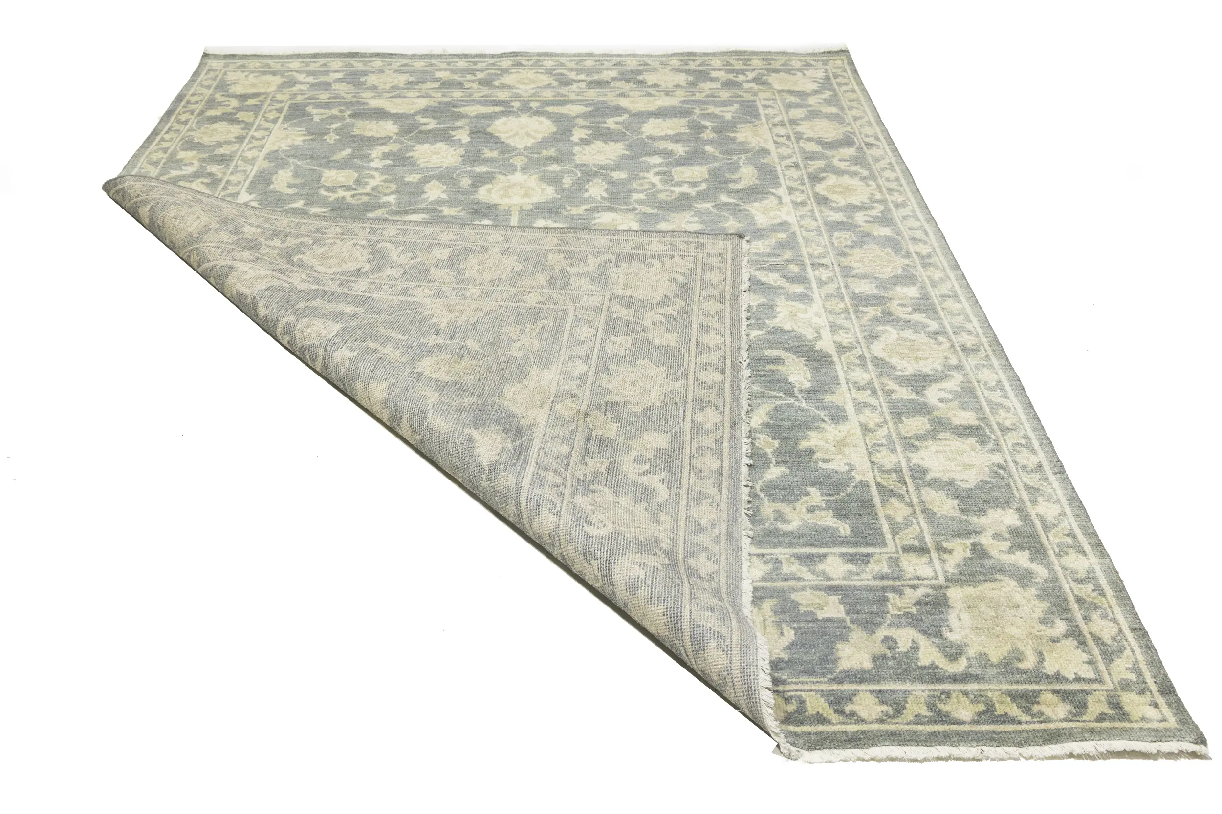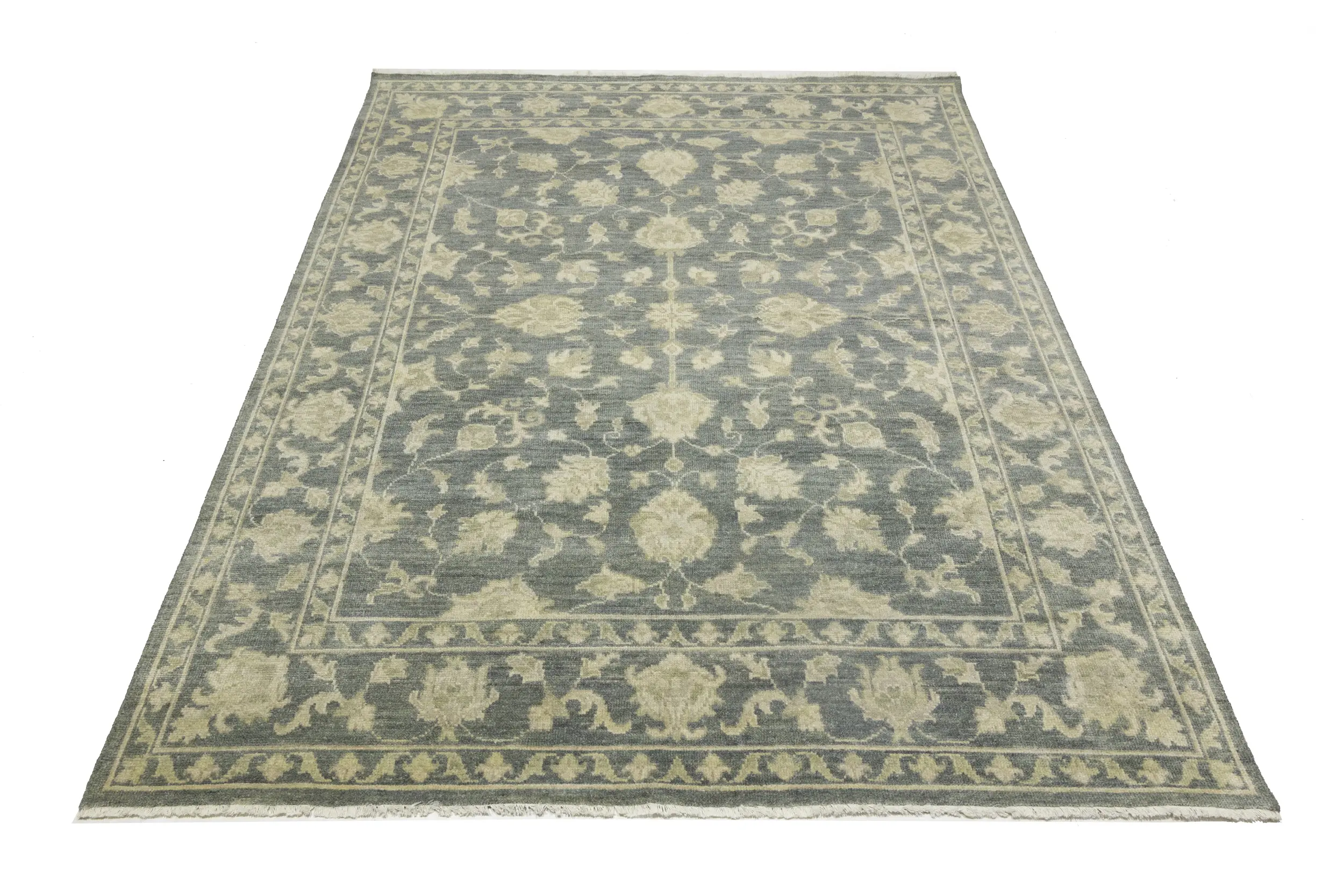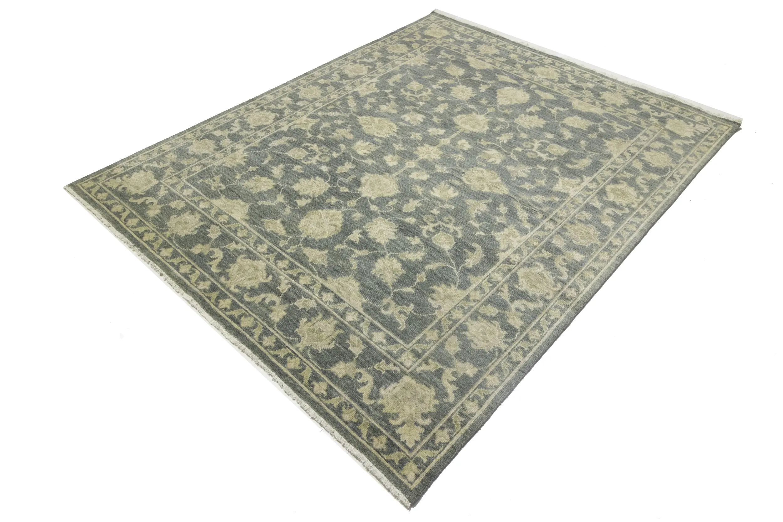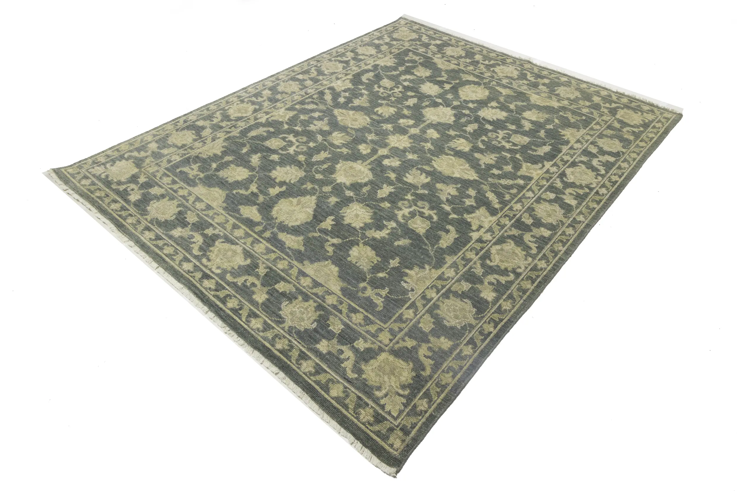 Muted Dark Slate Floral 8X10 Transitional Oriental Rug