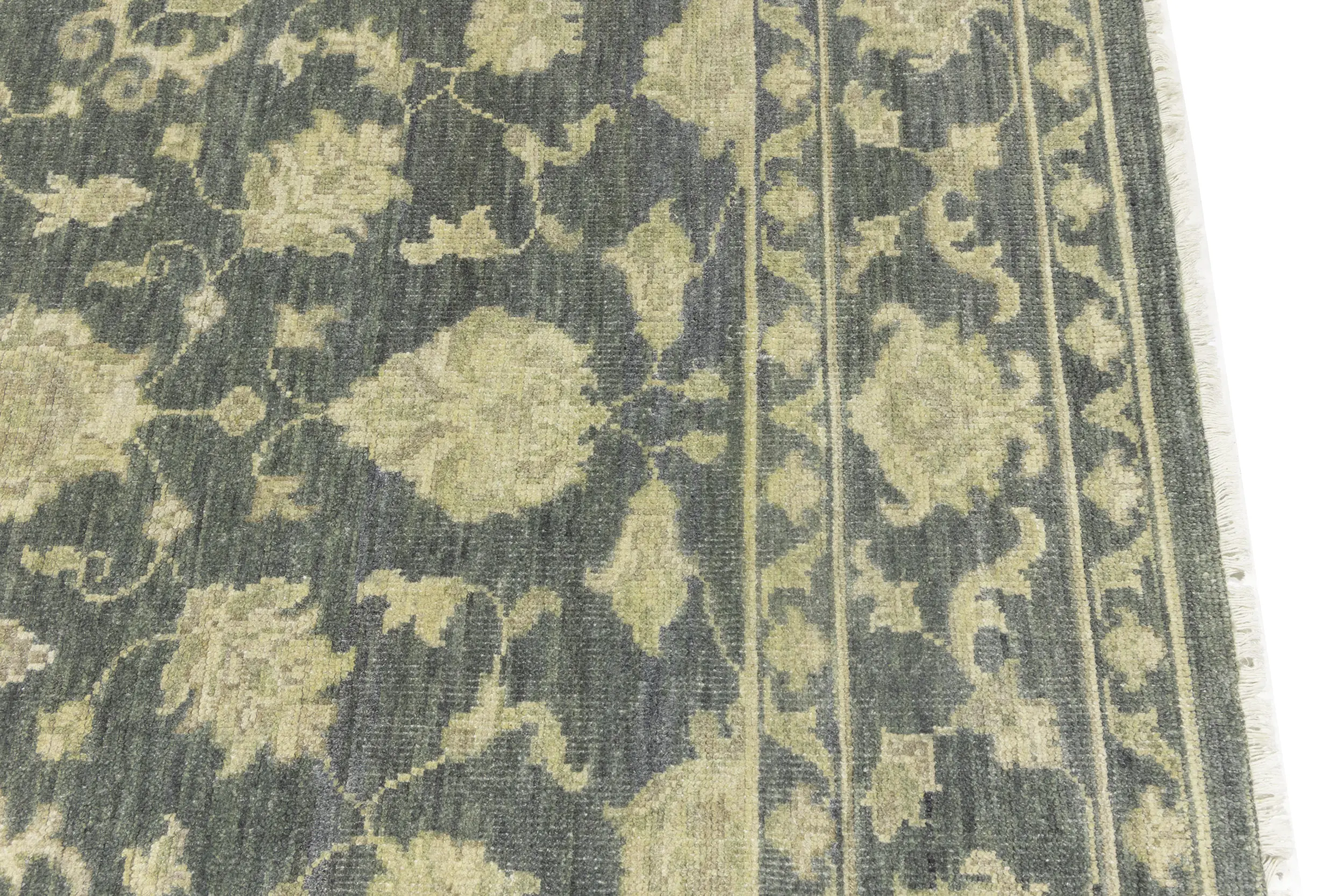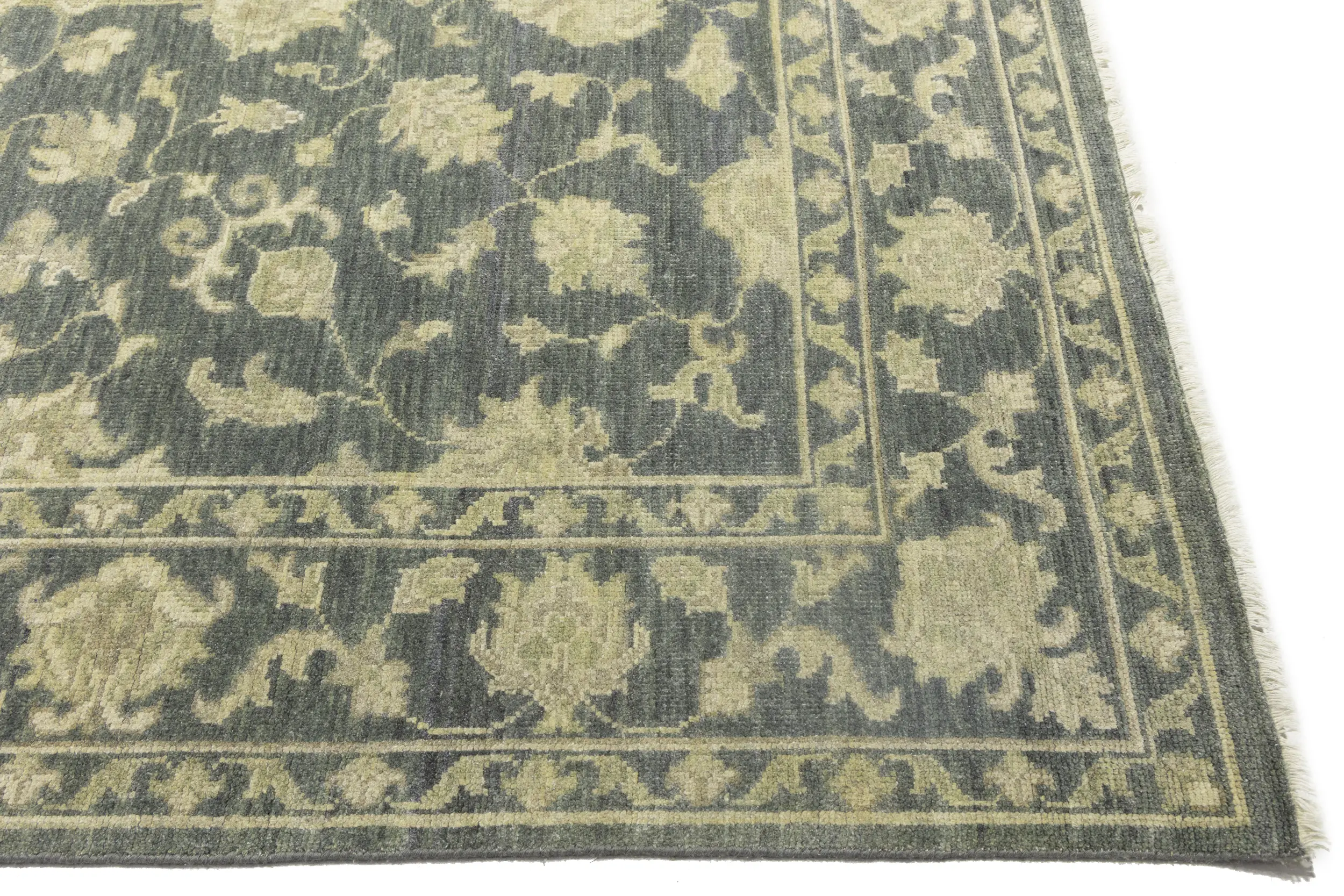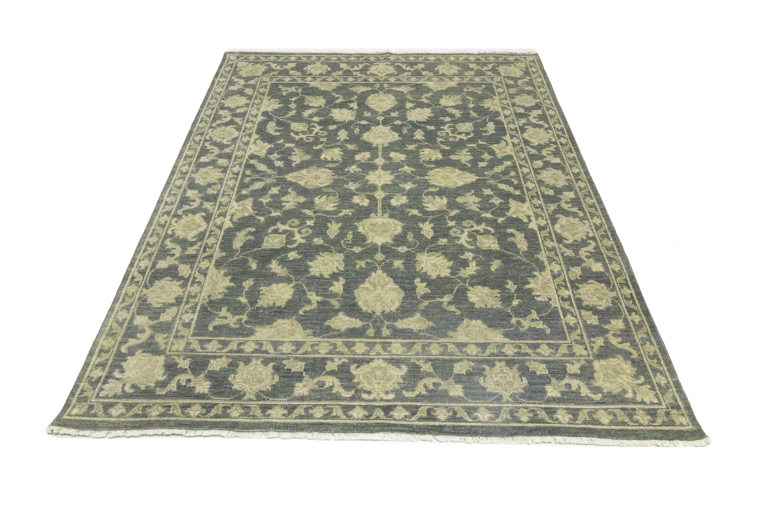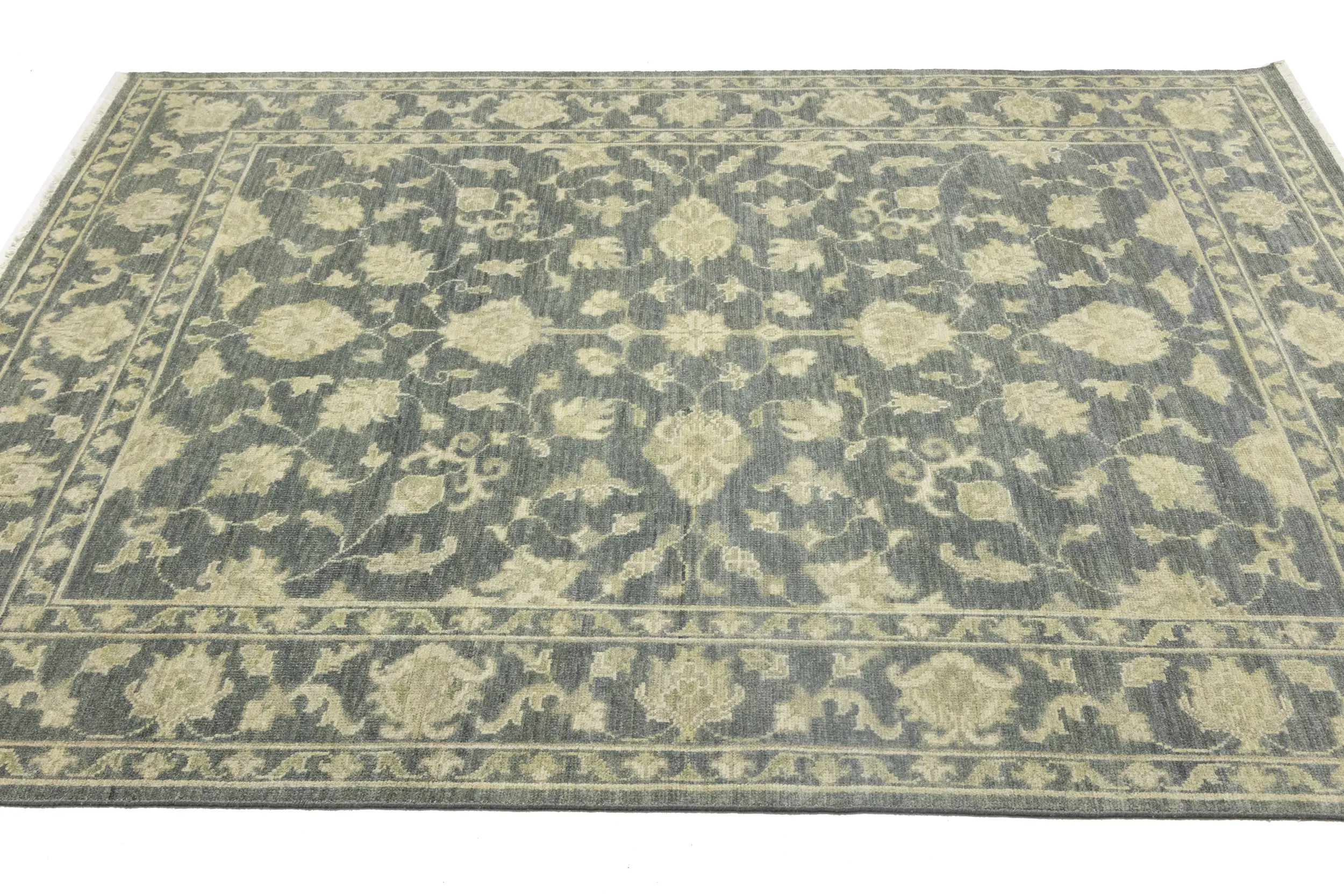 Muted Dark Slate Floral 8X10 Transitional Oriental Rug