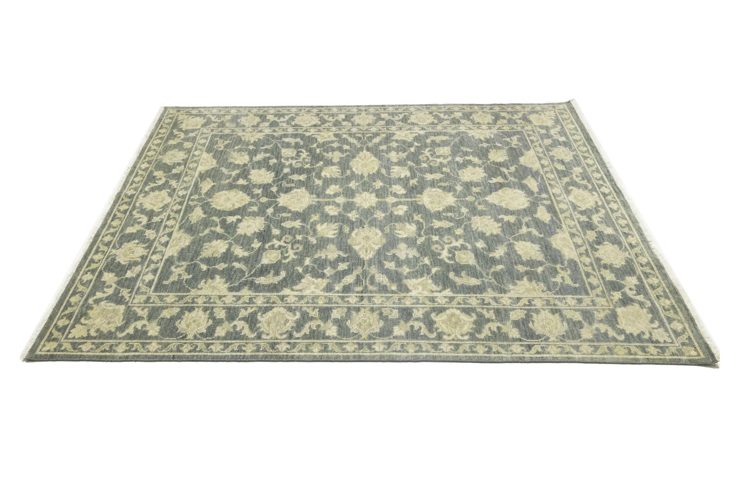 Handmade 8X10 gray oriental rug made with vegetable dyes (fine wool pile and cotton foundation), superior knot count, and appealing ancient designs. This Oriental rug never will go out of style and would be among your most valuable treasures.