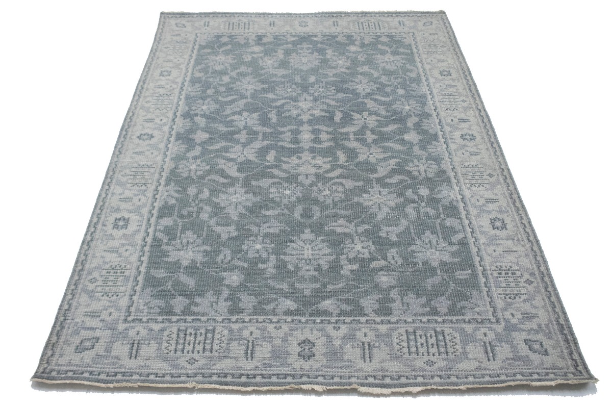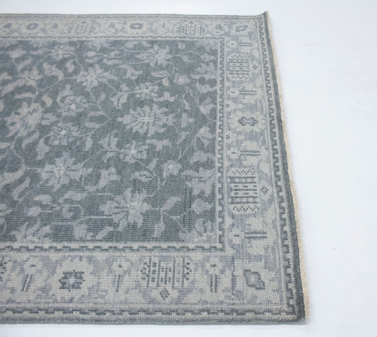 This original 5X8 gray new Oriental rug was made by the hands of talented weavers influenced by a variety of gorgeous symmetrical artistic designs, to recreate the aged look of the unique piece with a richness of color and very balanced background field. What set this vintage style Oriental area rug from the others are the material and dye used (wool pile and cotton foundation), knot count, antique designs, fantastic grades, and its regional historical connection: it has deep roots, from the story of the people who produced it to the meaning of the symbols and colors displayed across its canvas that have been praised for centuries. This Indian home décor carpet will be completely cozy and inviting that never will go out of style! Also, this Oriental rug would be among your most valuable treasures, it is a great investment that accrues value over time, and it will last a lifetime because was woven with high-quality, all-natural wool. Eco-friendly, opulent yet affordable; this rug will give you an extra pop of character to help define your home environment with sophistication and warmth that will capture the eyes and attention of your audience (homeowners, designers, decorators, family and friends). OT-1909