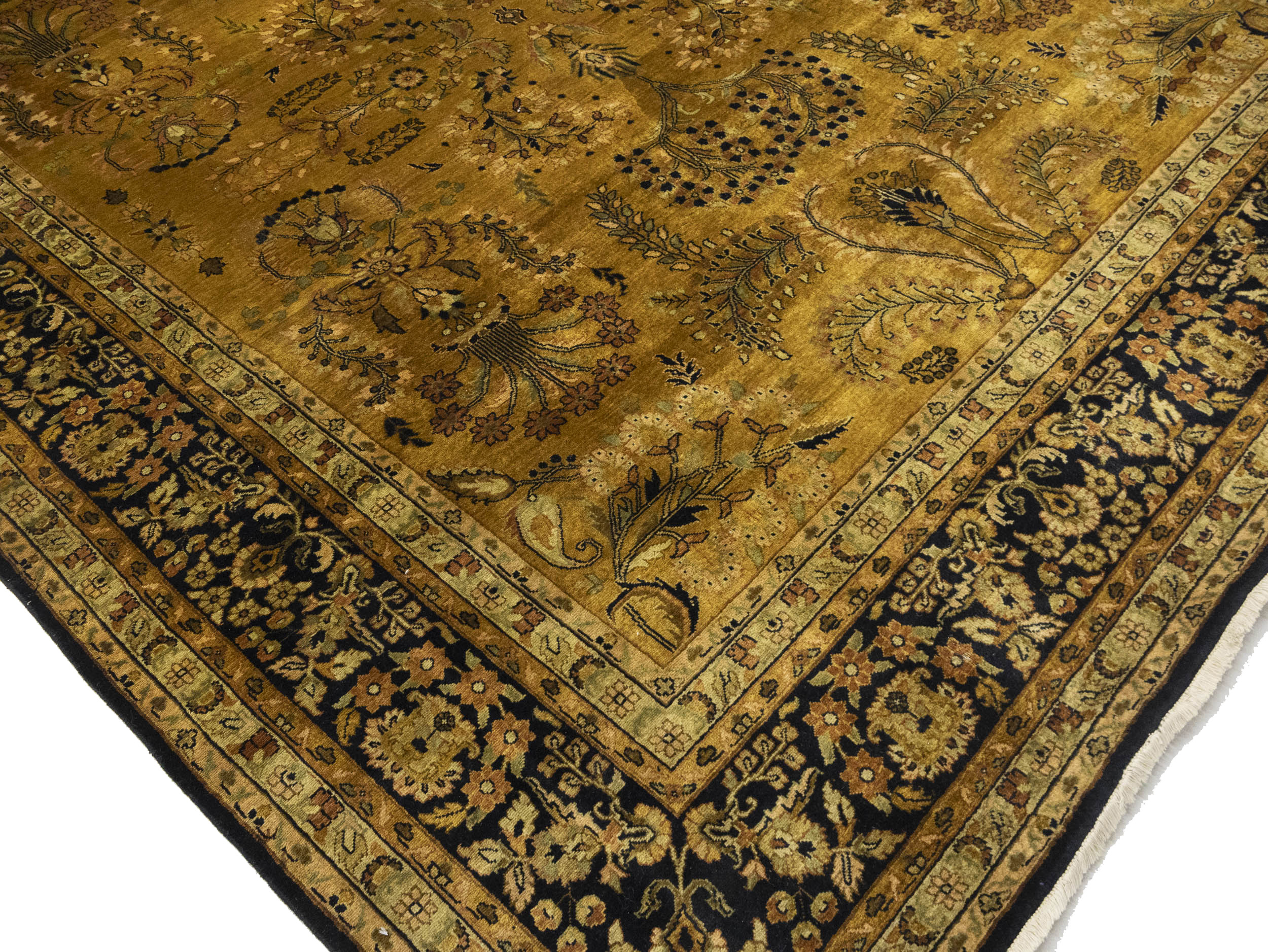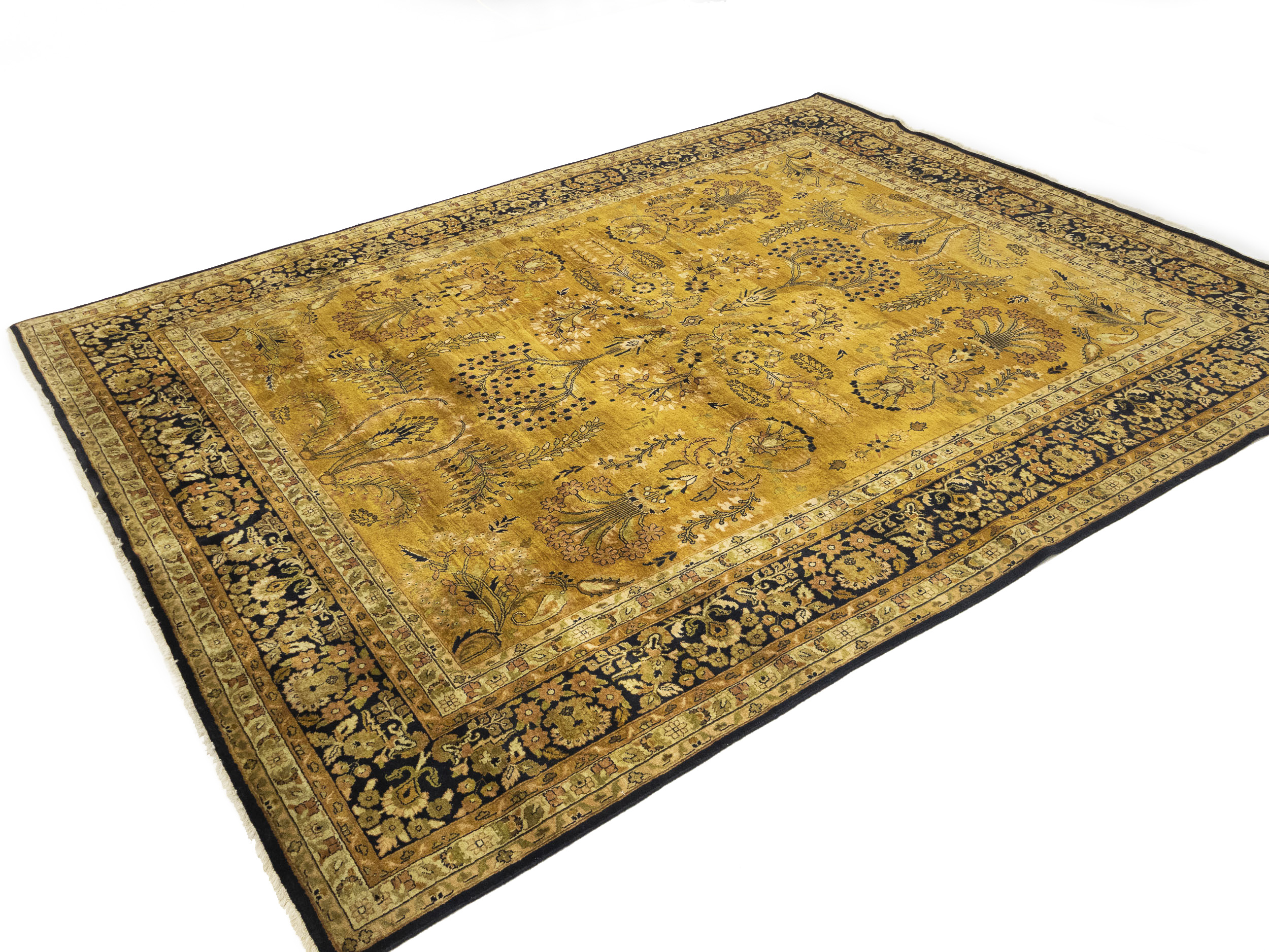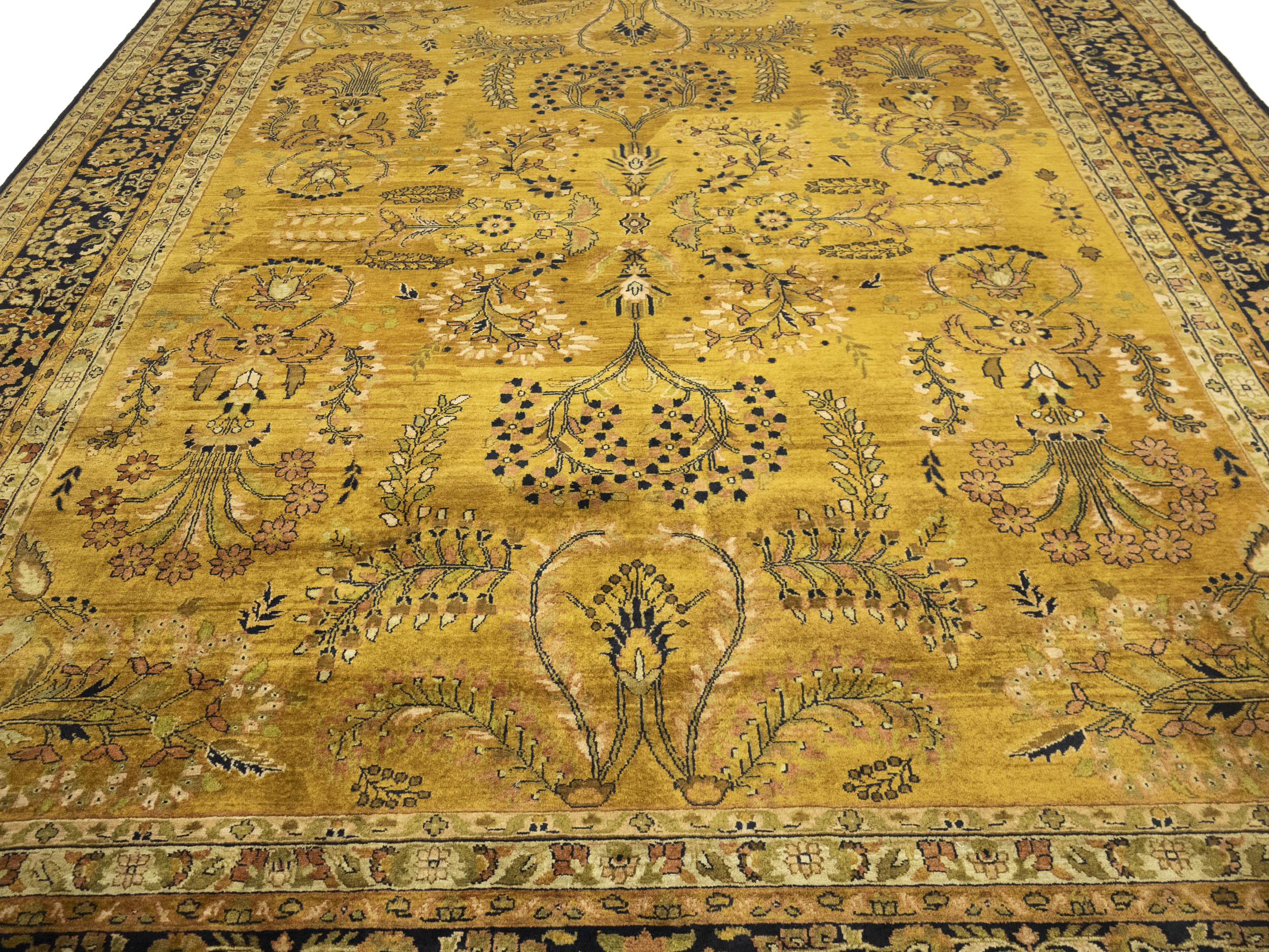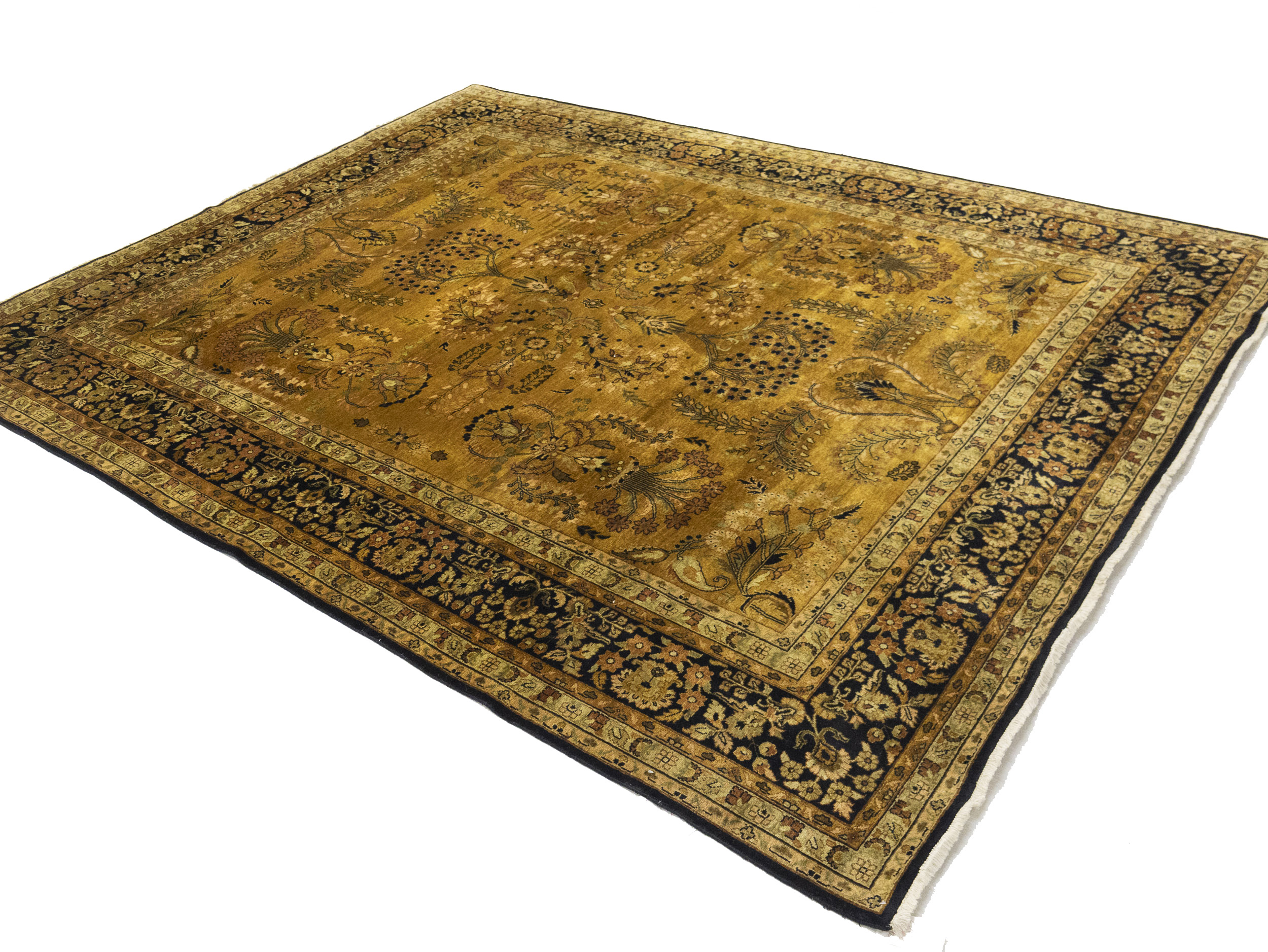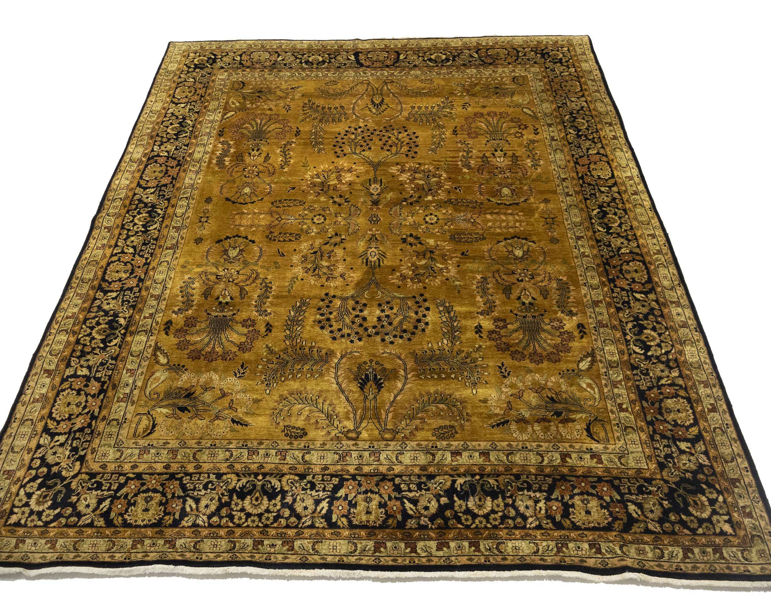 Handmade 8X10 gold oriental rug made with vegetable dyes (fine wool pile and cotton foundation), exceptional knot count, and appealing ancient designs. This Oriental rug never will go out of style and would be among your most valuable treasures.