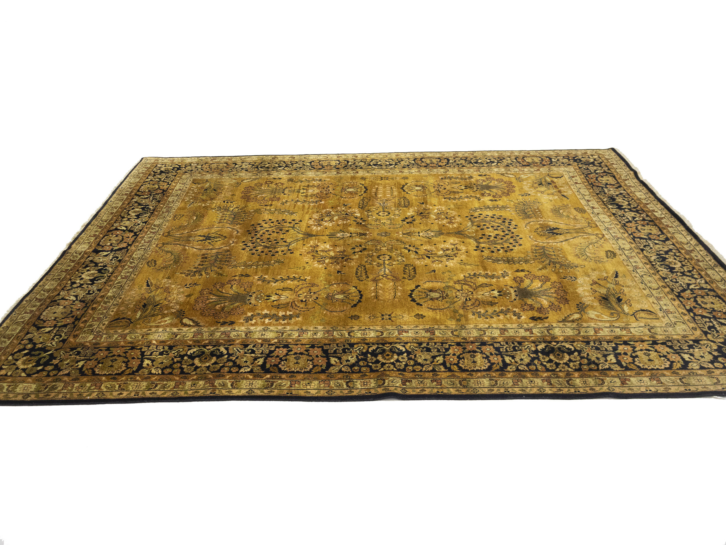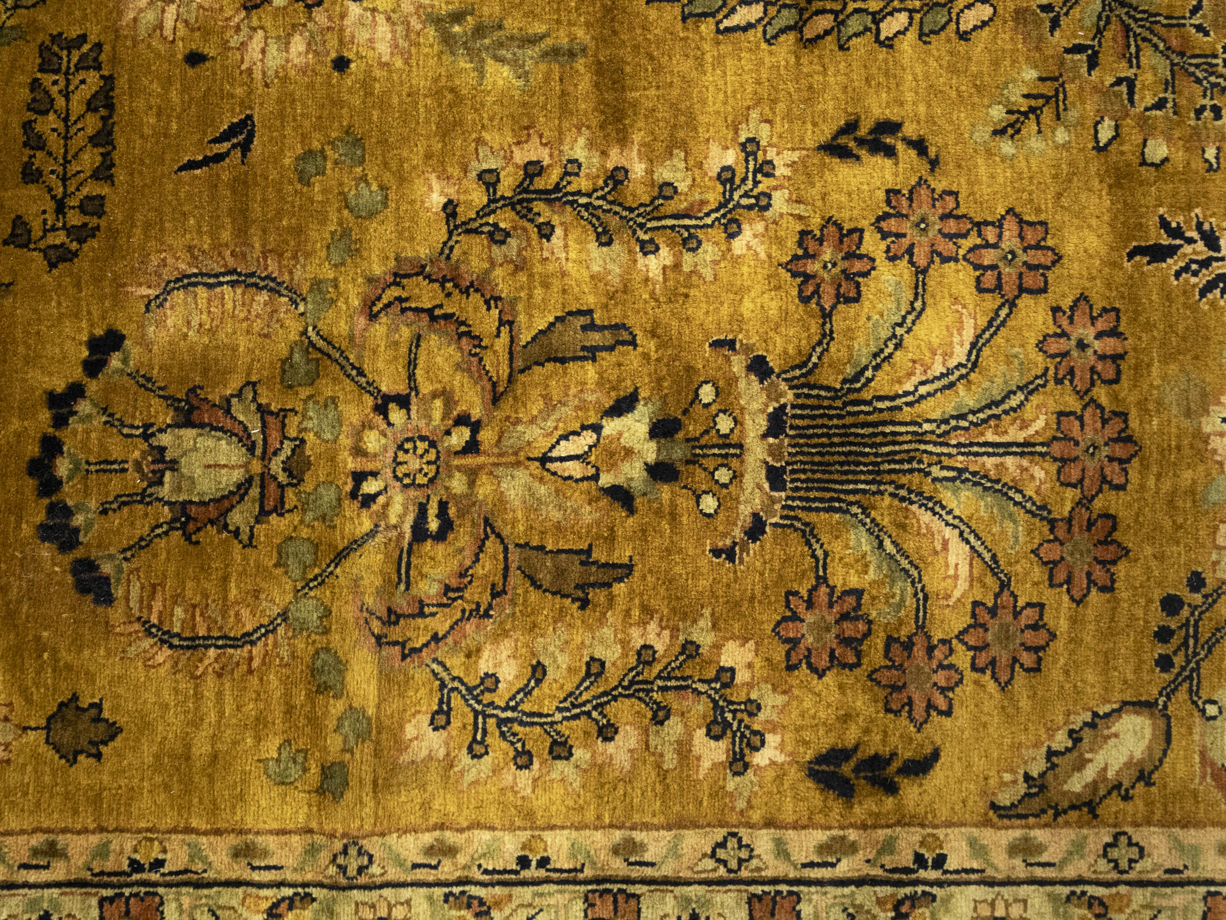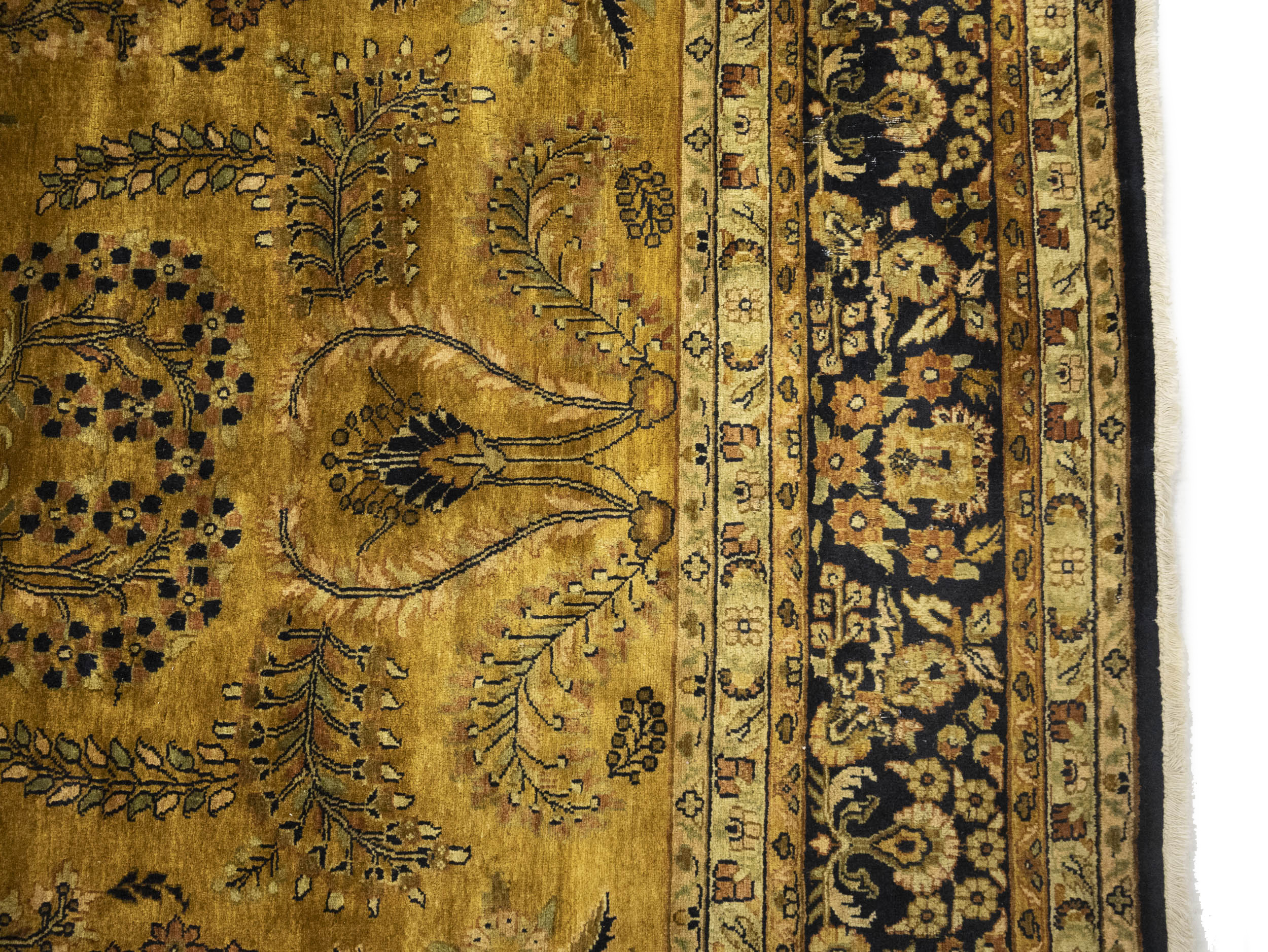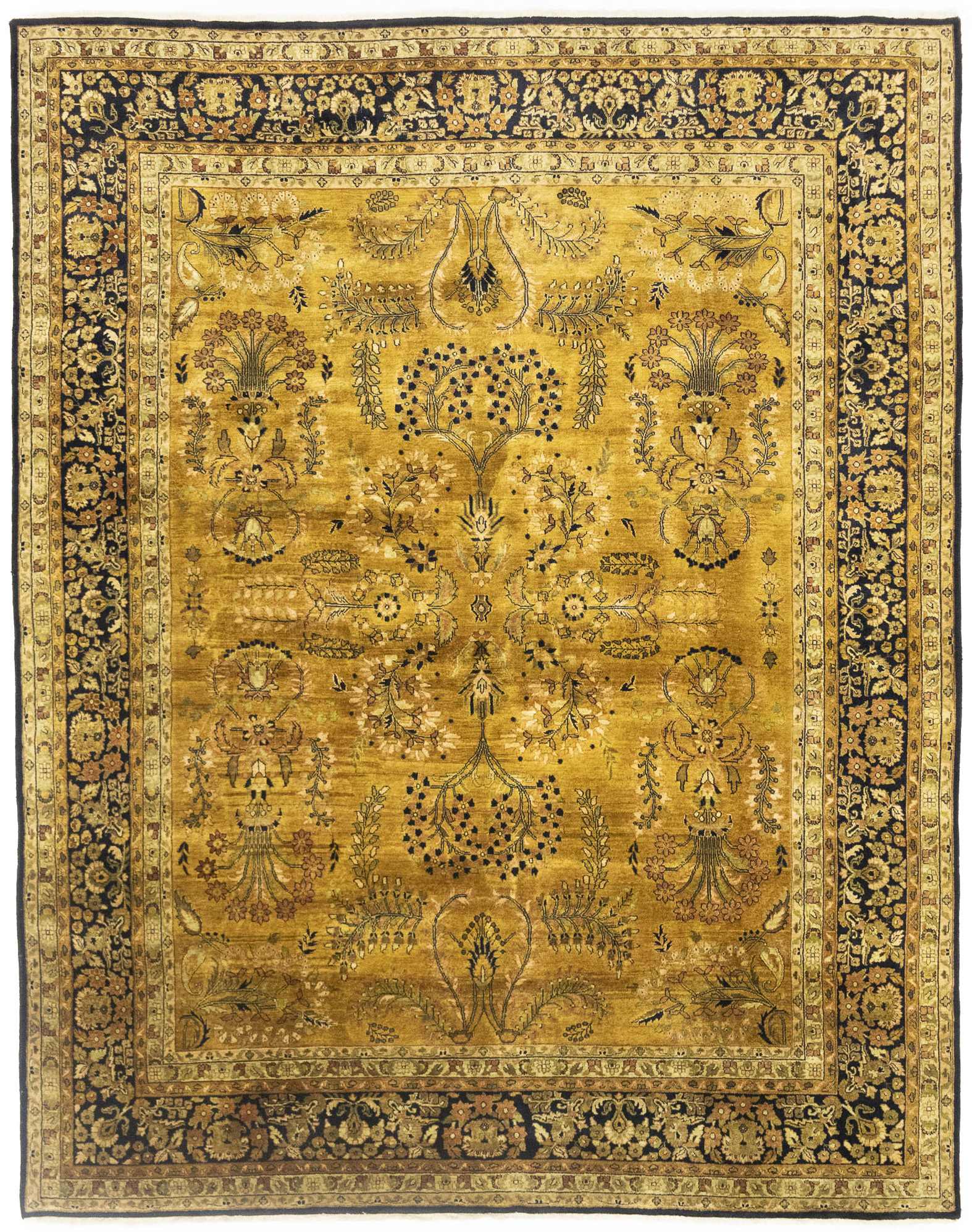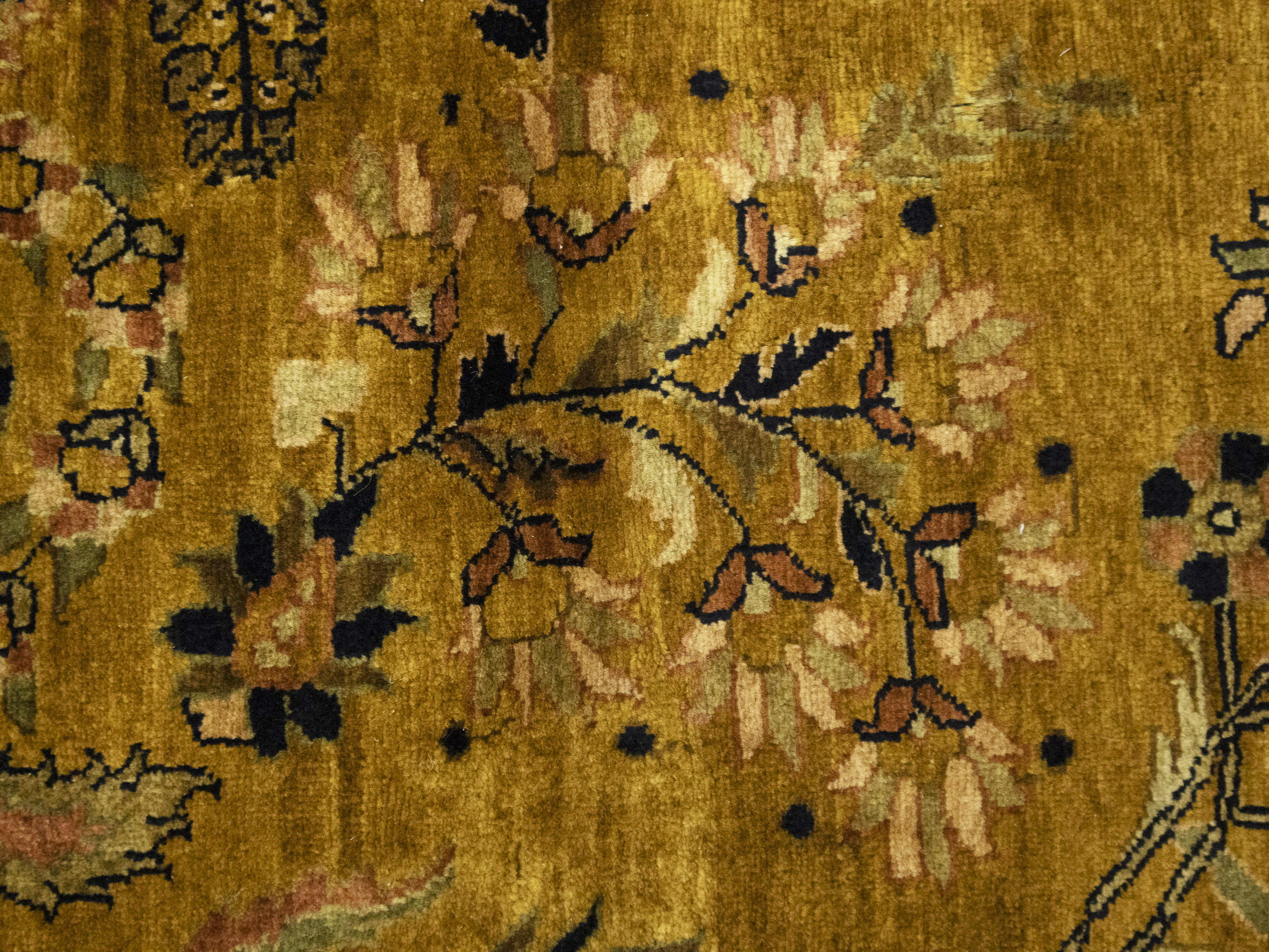 Handmade 8X10 gold oriental rug made with vegetable dyes (fine wool pile and cotton foundation), exceptional knot count, and appealing ancient designs. This Oriental rug never will go out of style and would be among your most valuable treasures.