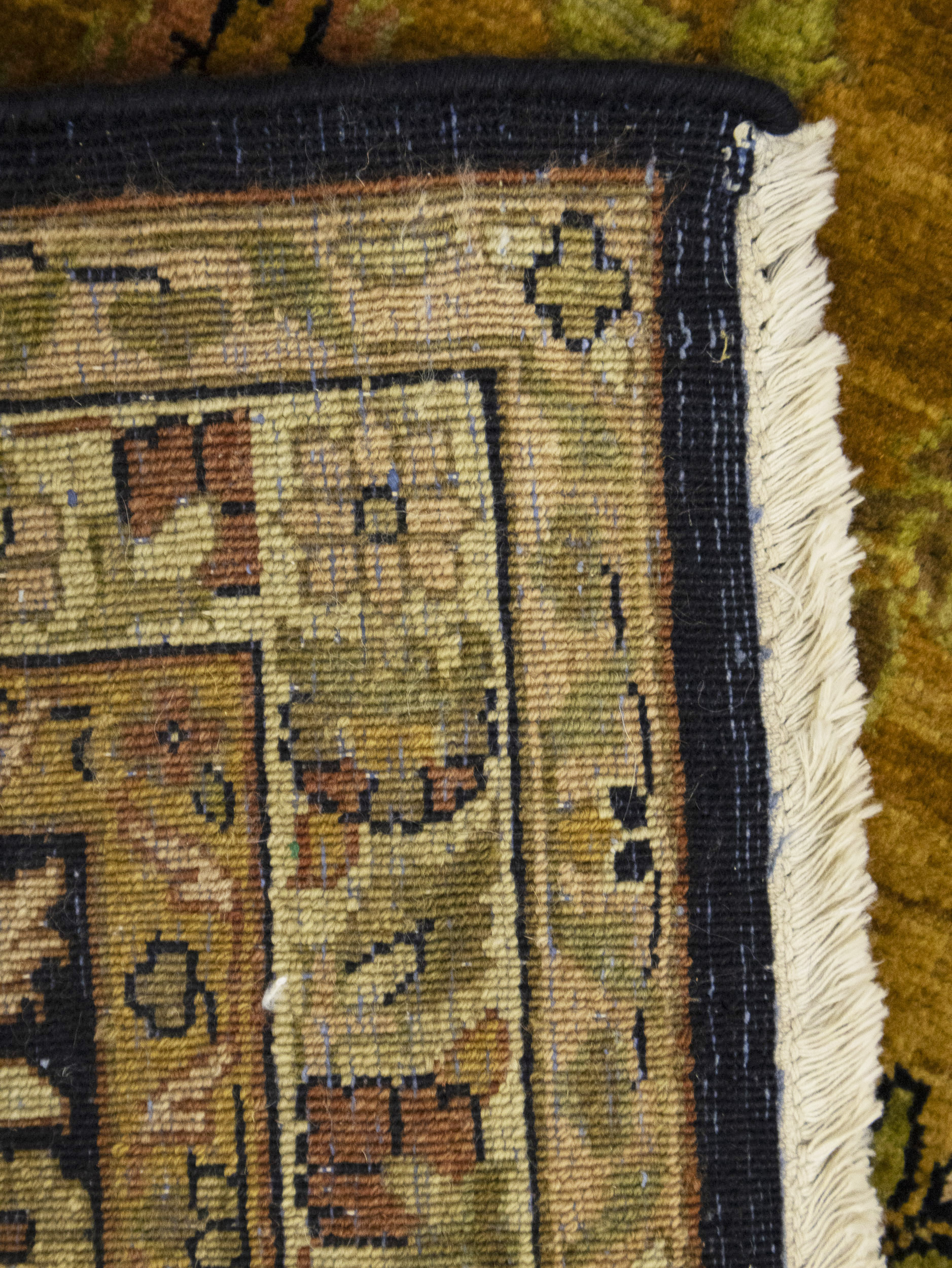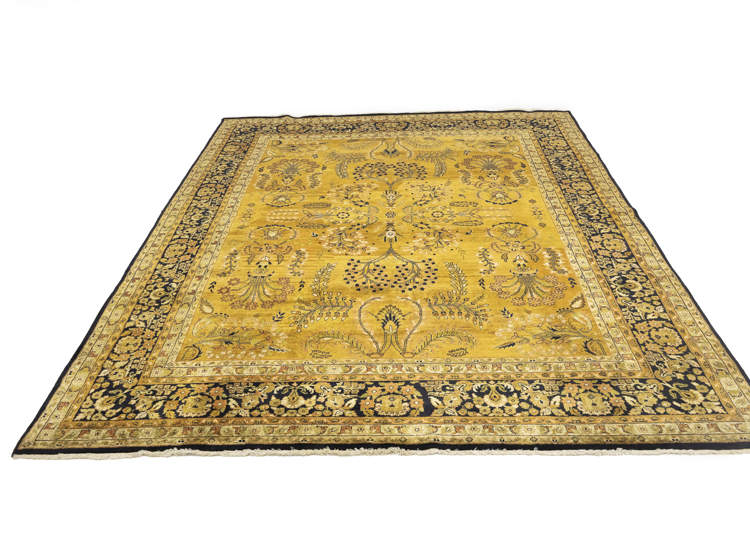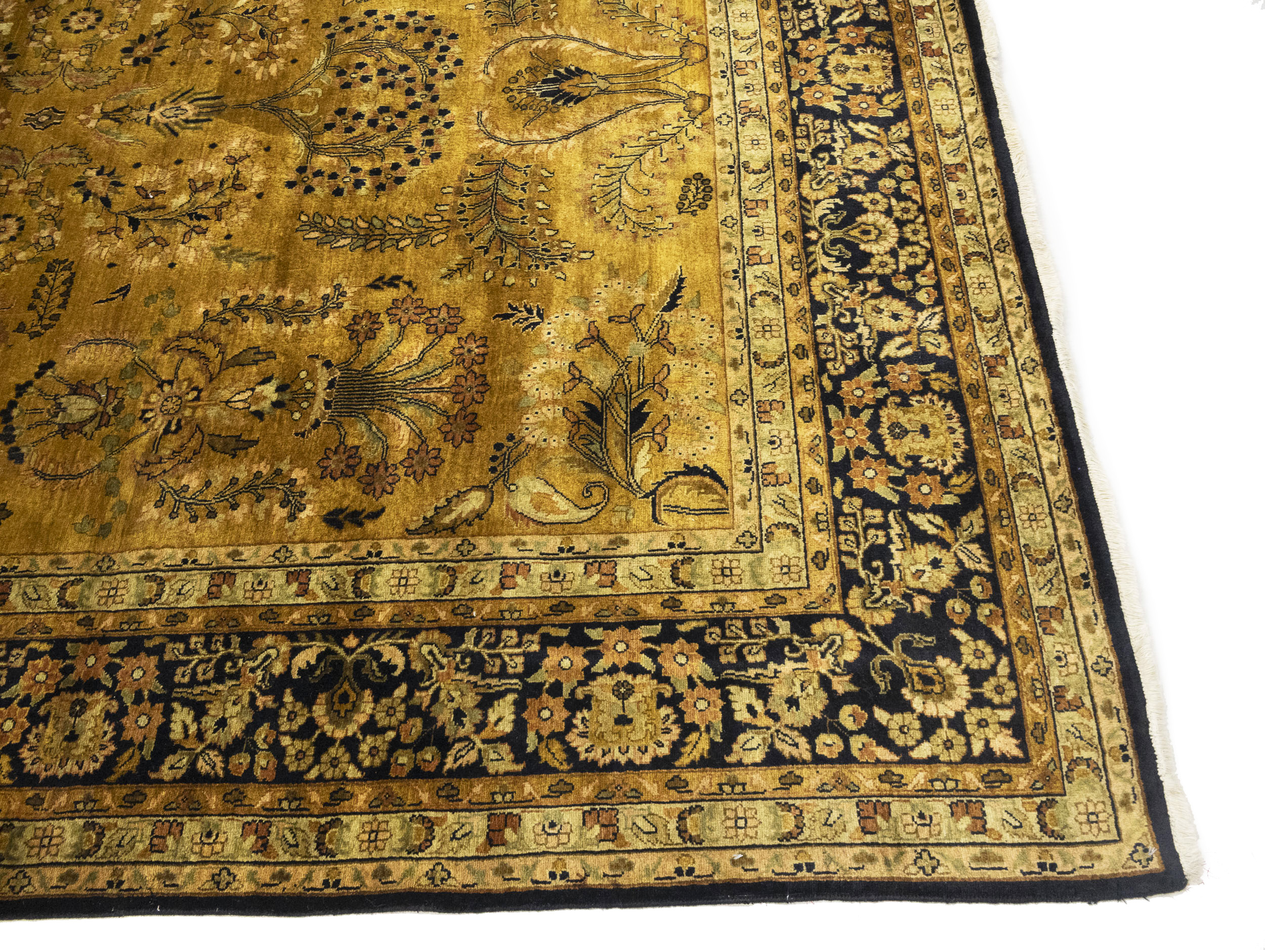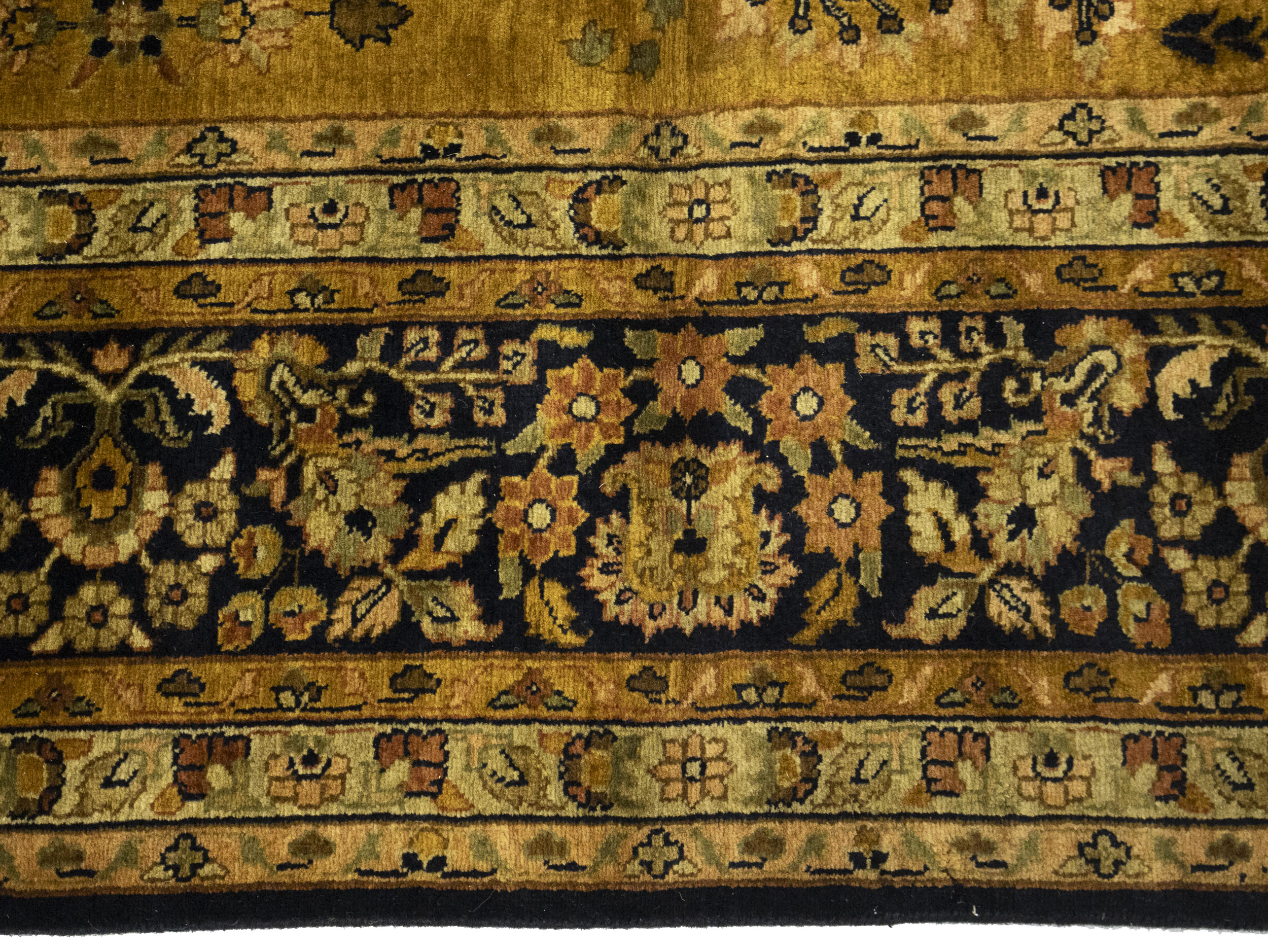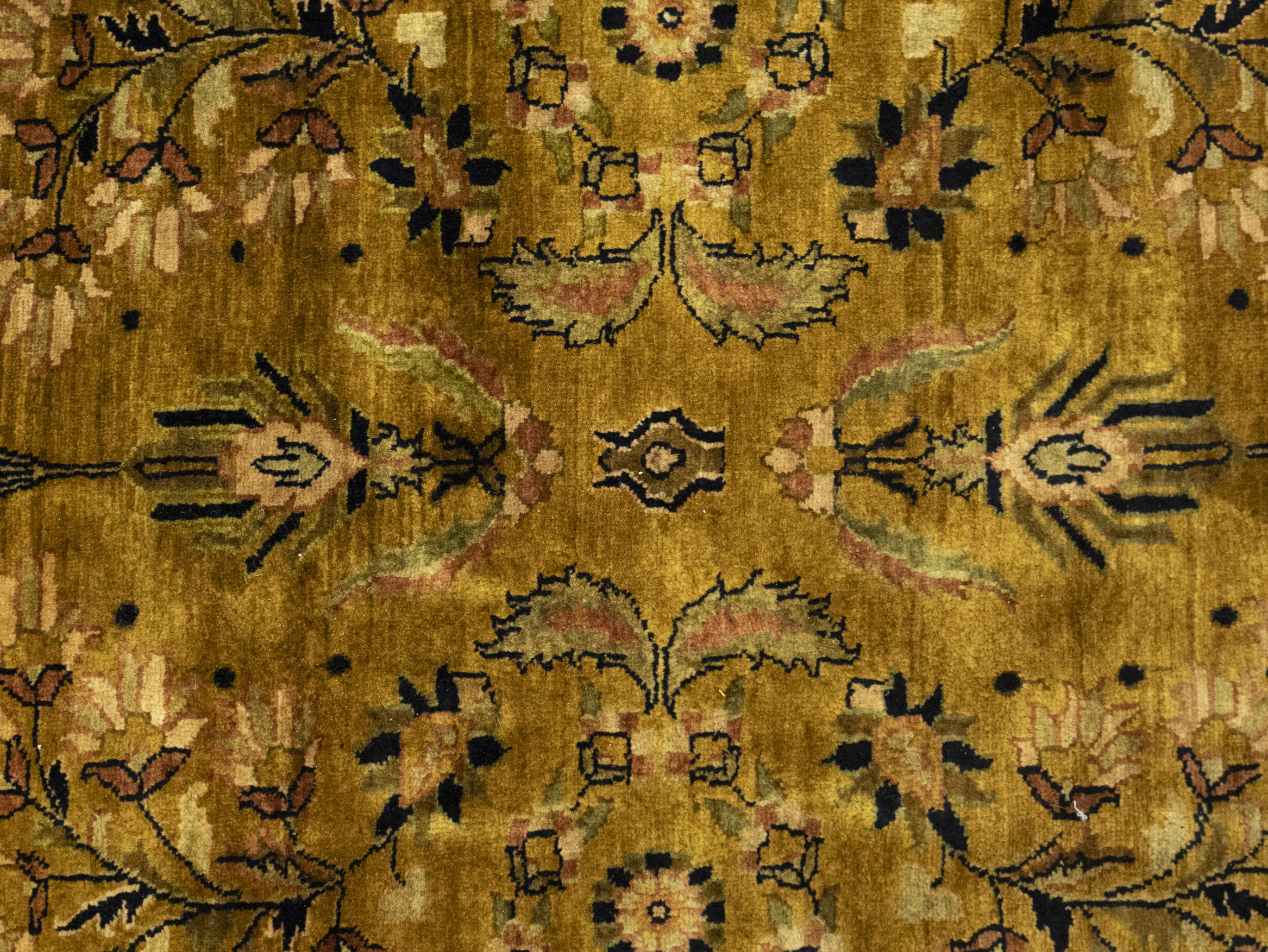 Handmade 8X10 gold oriental rug made with vegetable dyes (fine wool pile and cotton foundation), exceptional knot count, and appealing ancient designs. This Oriental rug never will go out of style and would be among your most valuable treasures.
