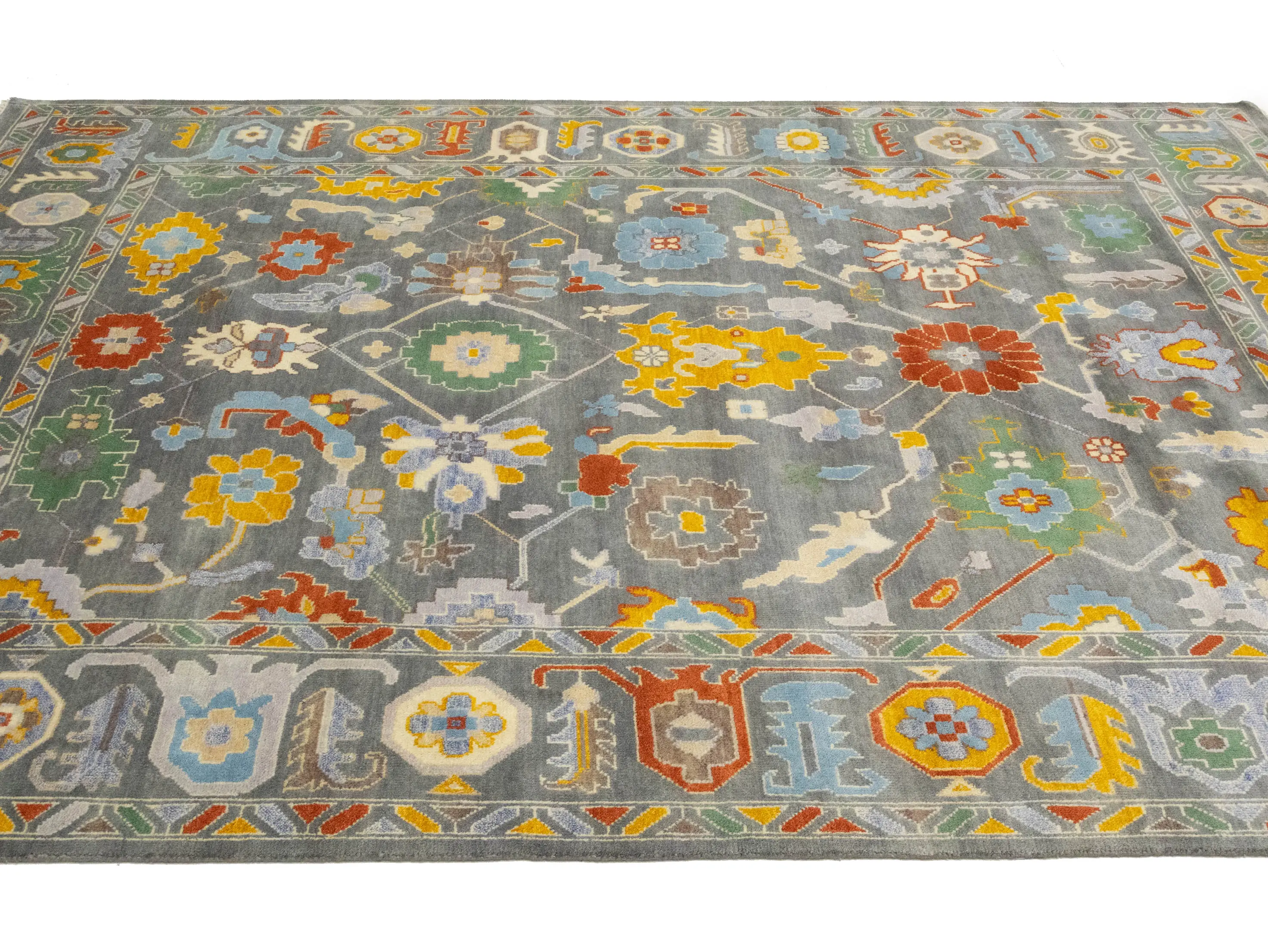 Muted Floral Colorfast 9X12 Oushak Chobi Oriental Rug