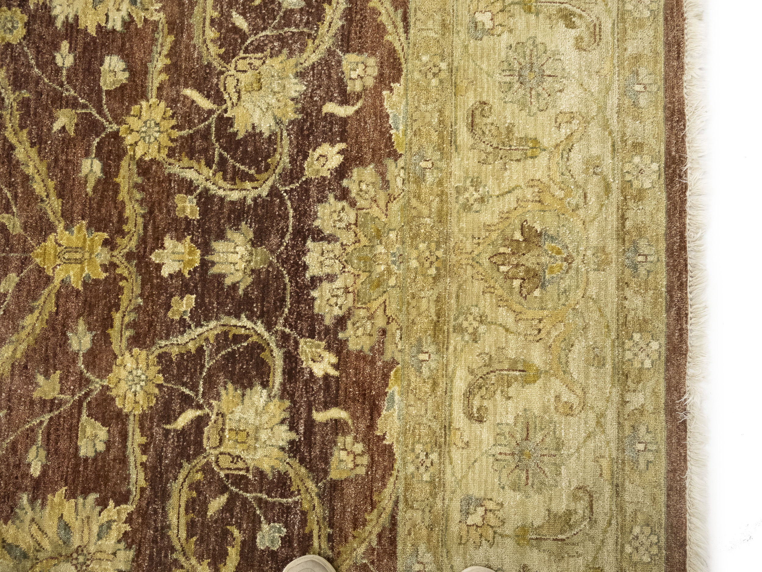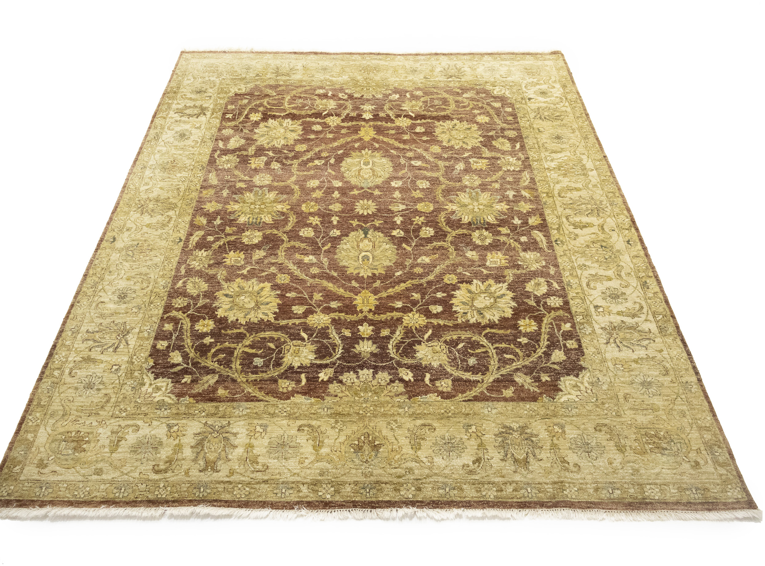 Hand Knotted 8X10 Brown oriental rug made with vegetable dyes (fine wool pile and cotton foundation), superior knot count, and appealing ancient designs. This Oriental rug never will go out of style and would be among your most valuable treasures.