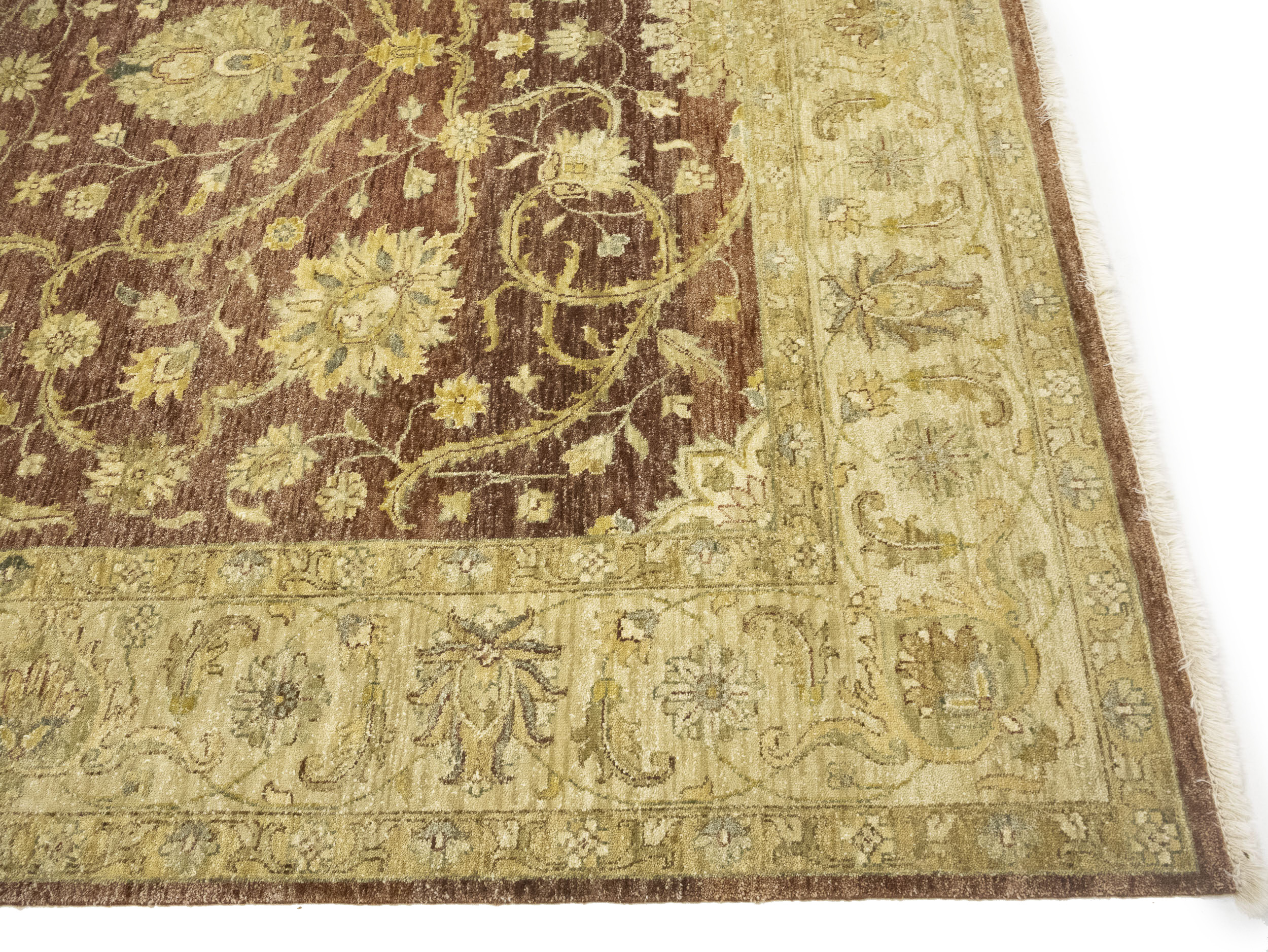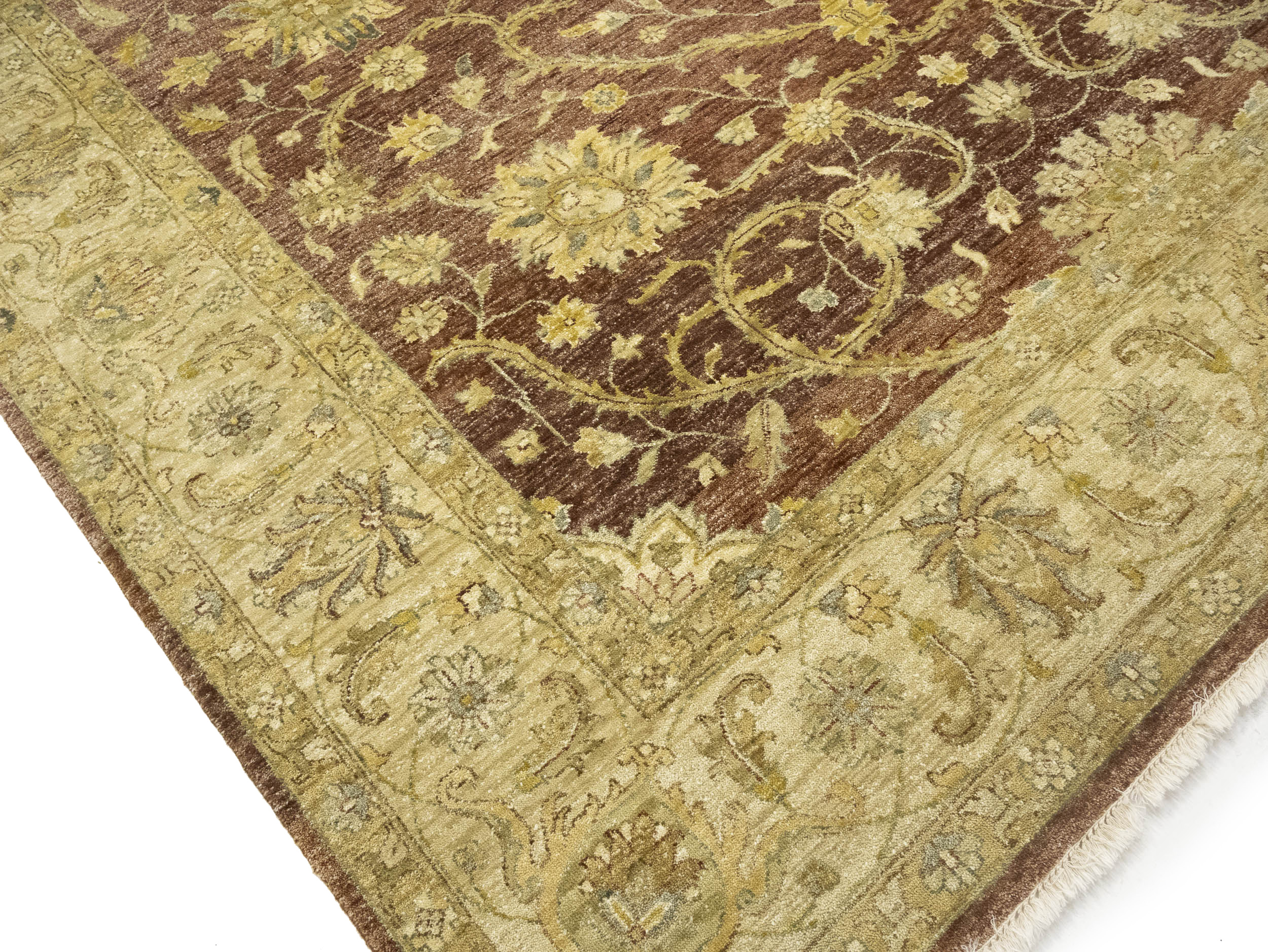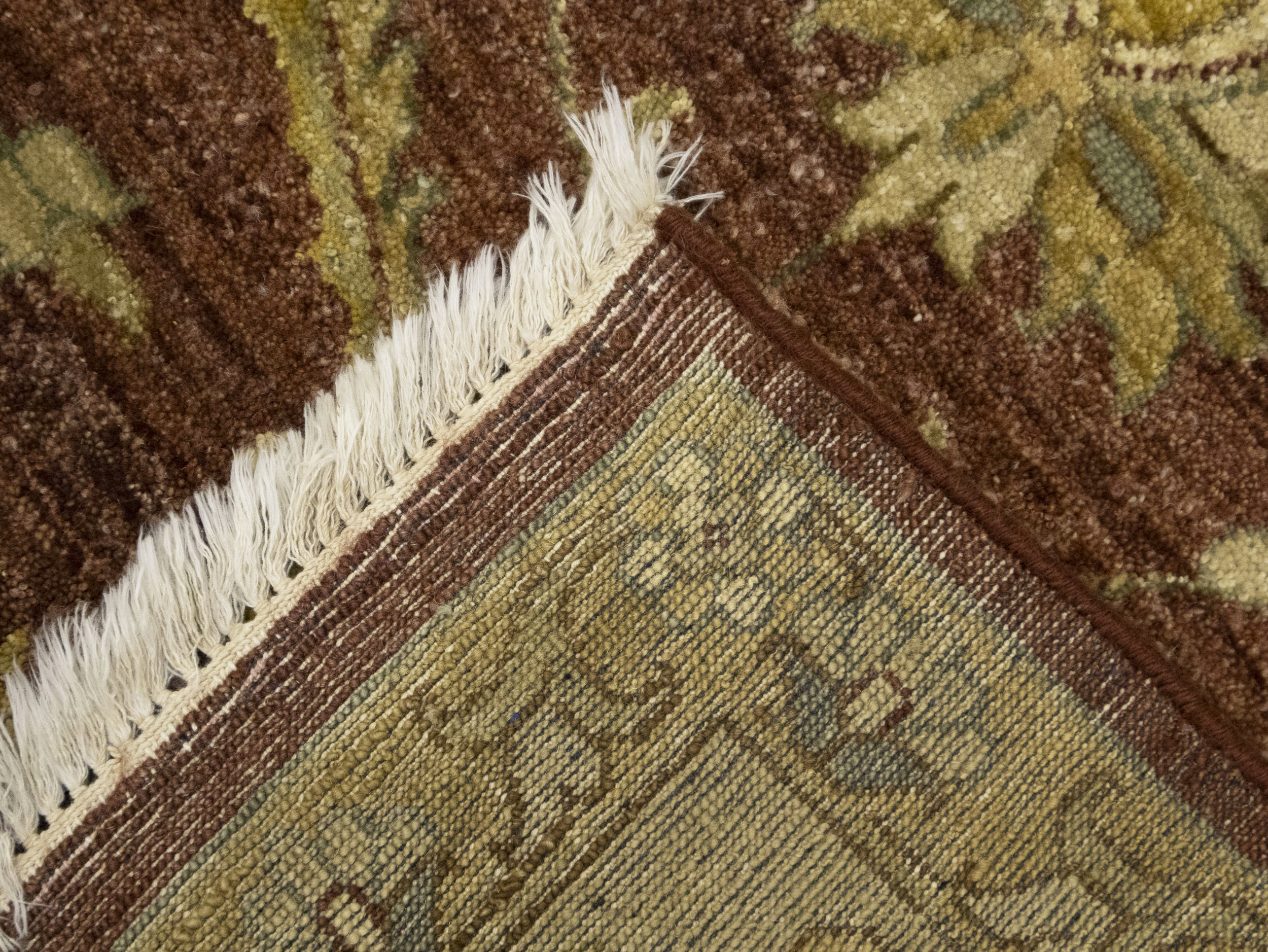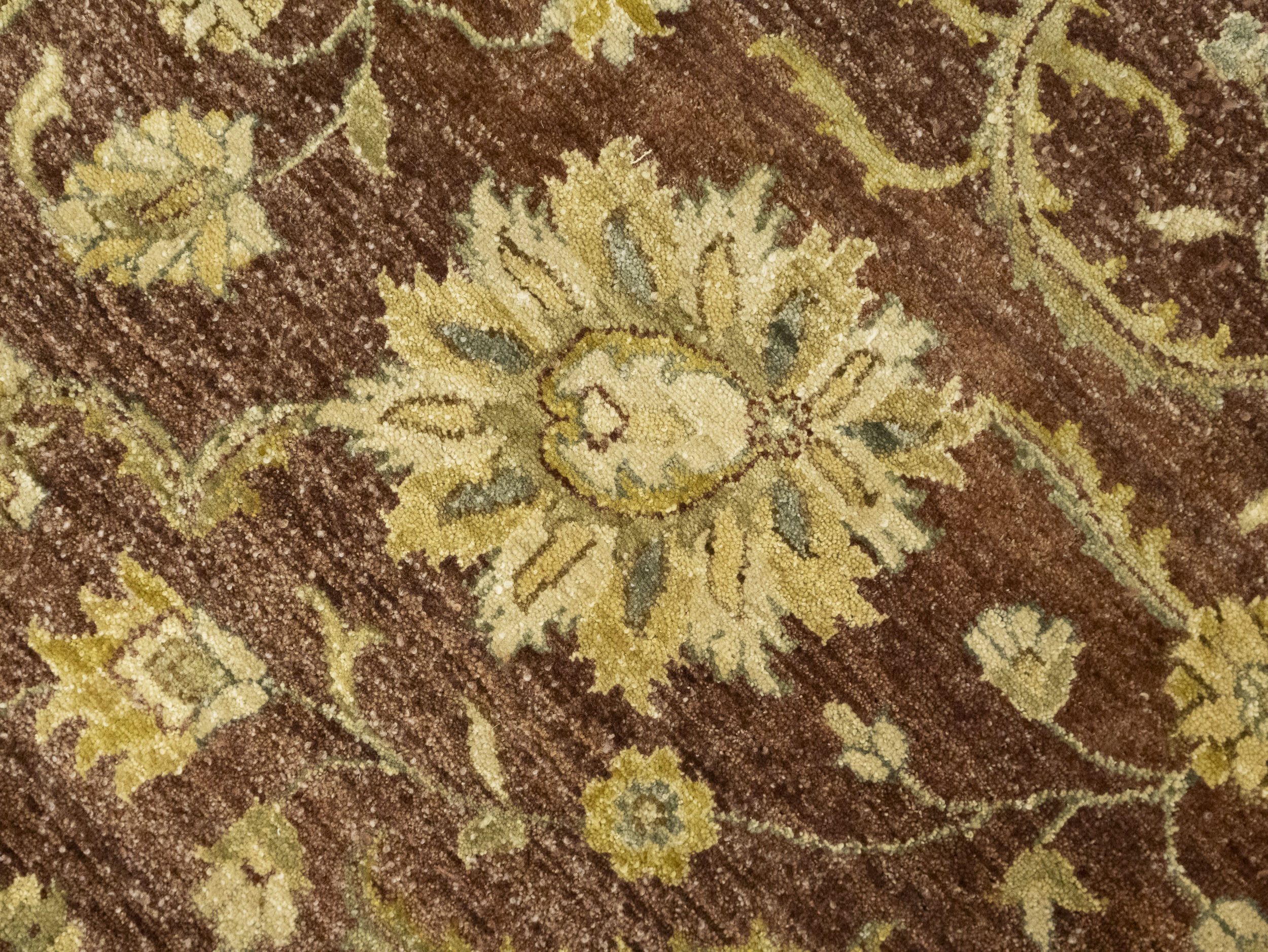 This authentic new 8X10 Brown Oriental rug was crafted by the hands of skilled weavers enthused by a variety of lovely artistic designs, to recreate the aged look of the unique piece with a richness of color and beautifully elaborated background field. What set this vintage style Oriental area rug from the others are the material and dye used (wool pile and cotton foundation), knot count, ancient designs, fantastic grades, and its regional historical connection: it has deep roots, from the story of the people who produced it to the meaning of the symbols and colors displayed across its canvas that have been praised for centuries. This Indian home décor carpet will be completely cozy and inviting that never will go out of style!