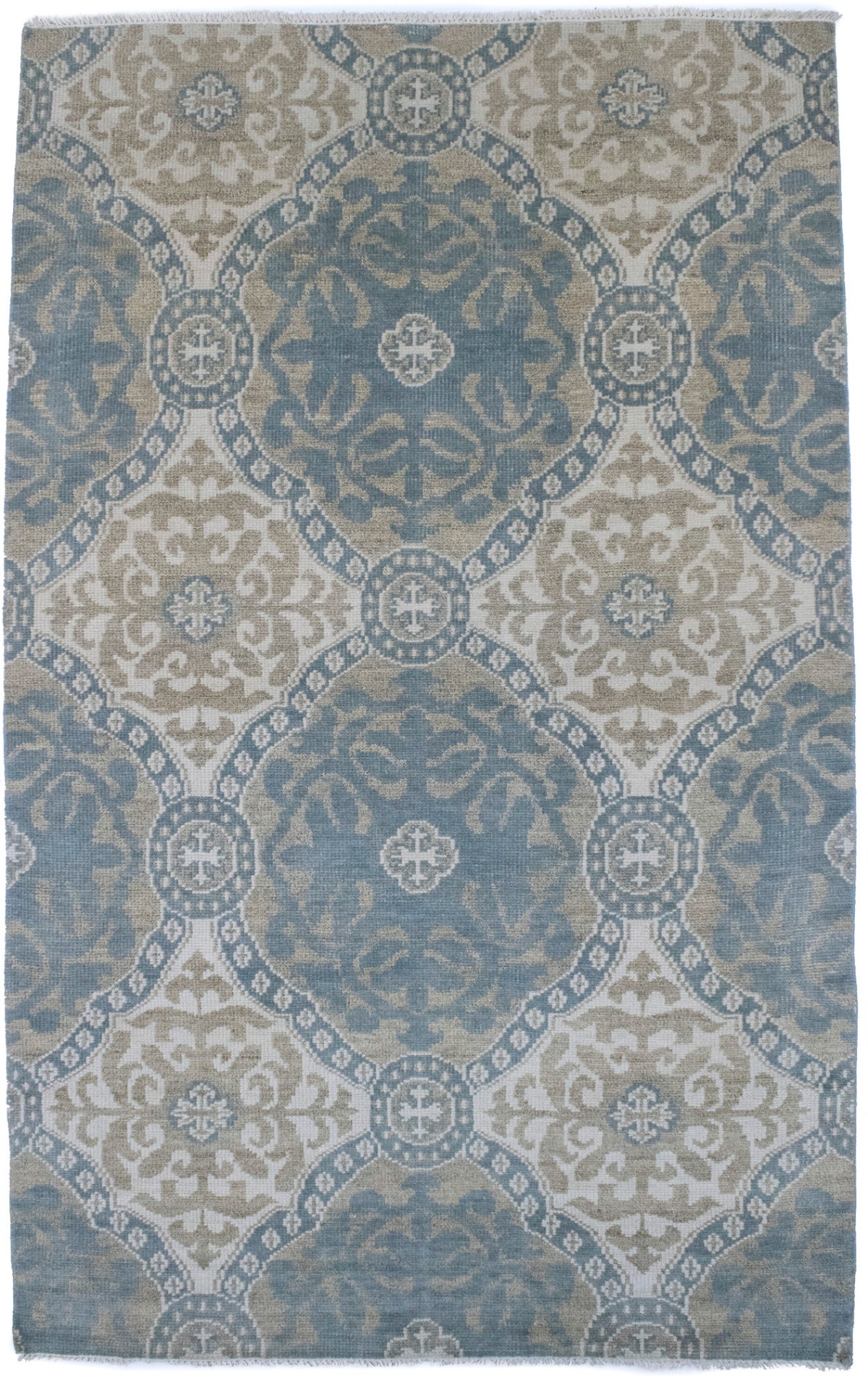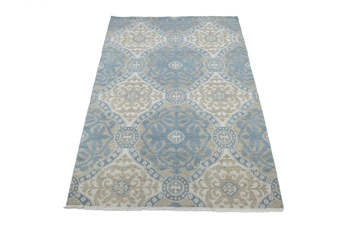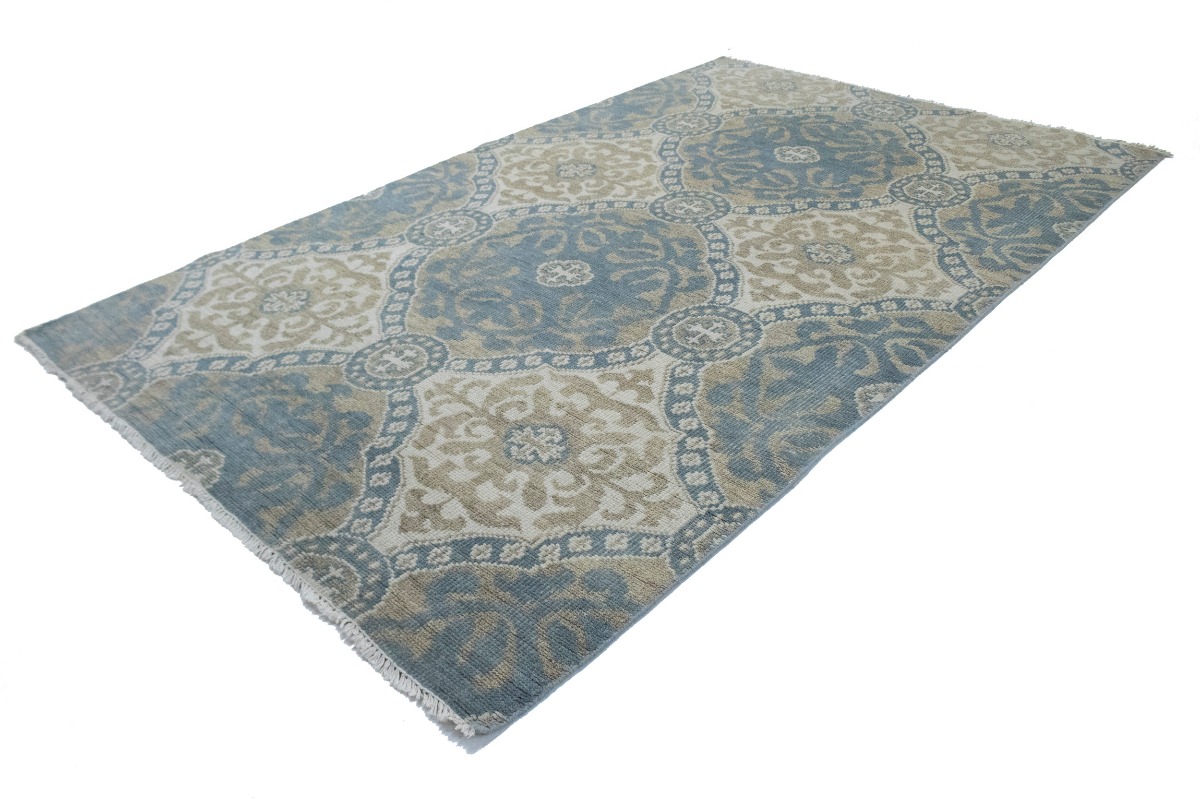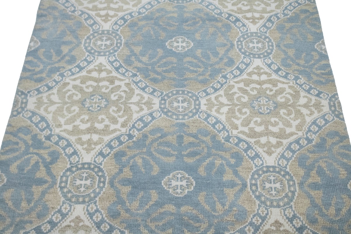 Muted Teal Blue Geometric 6X9 Modern Oriental Rug
