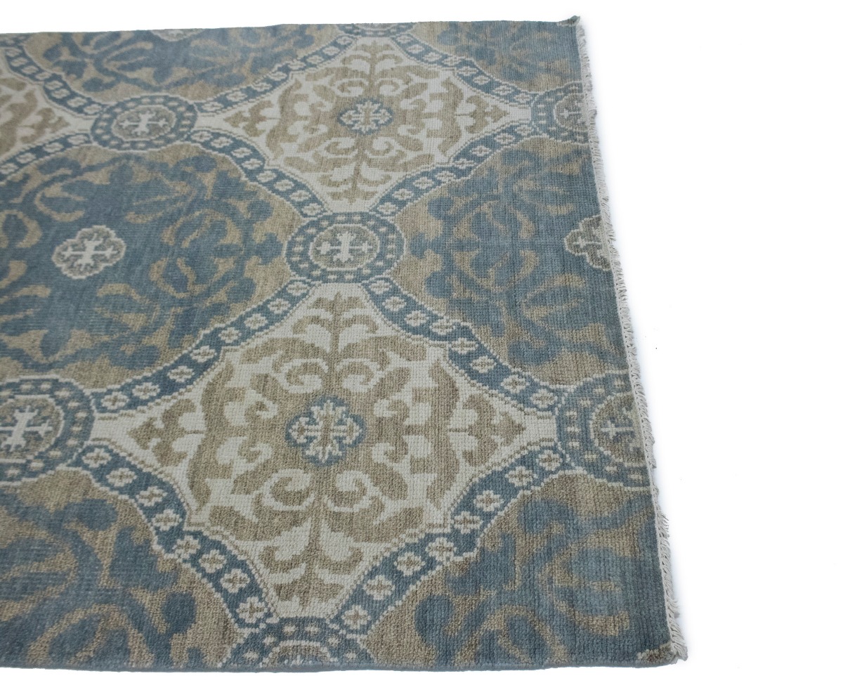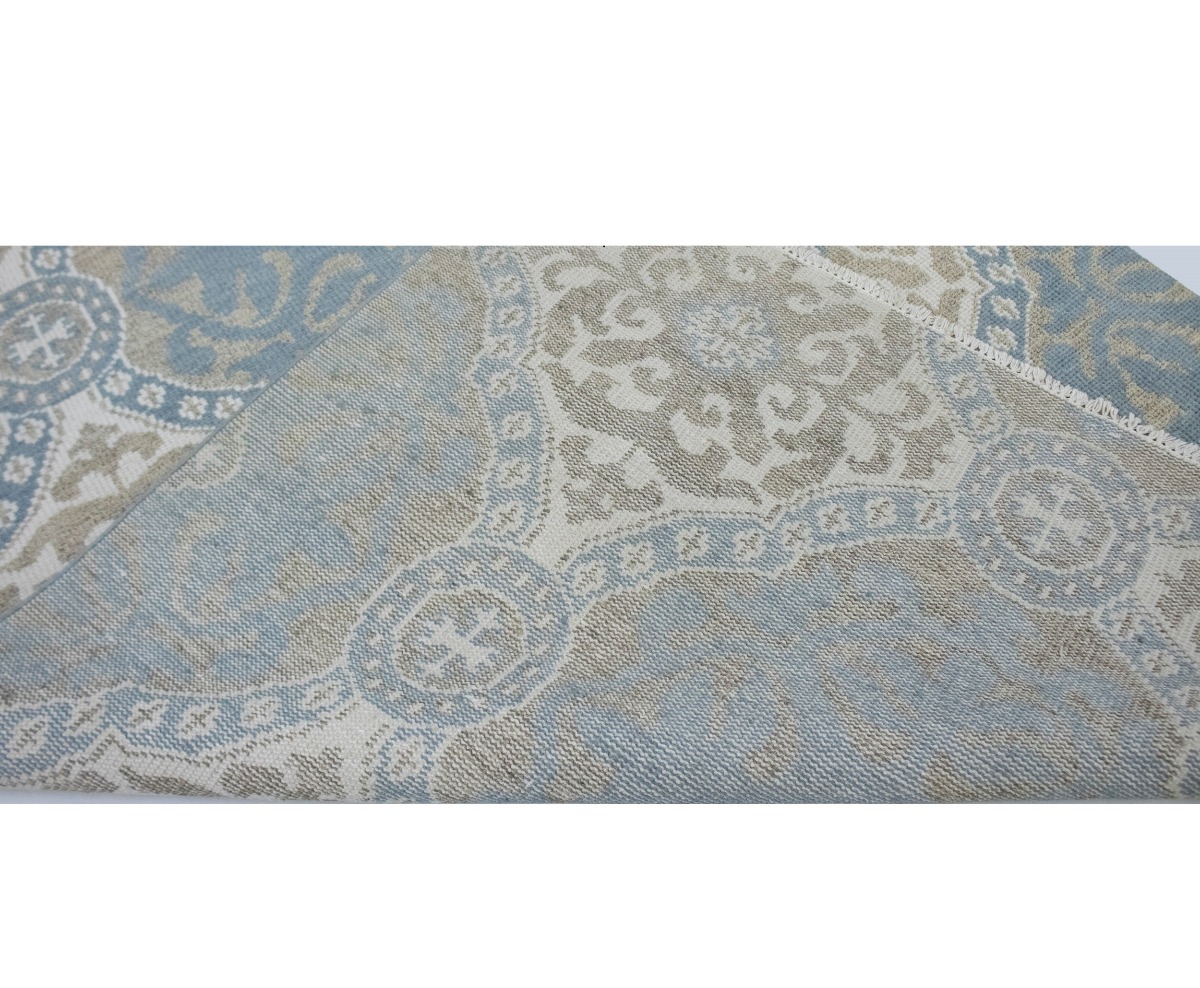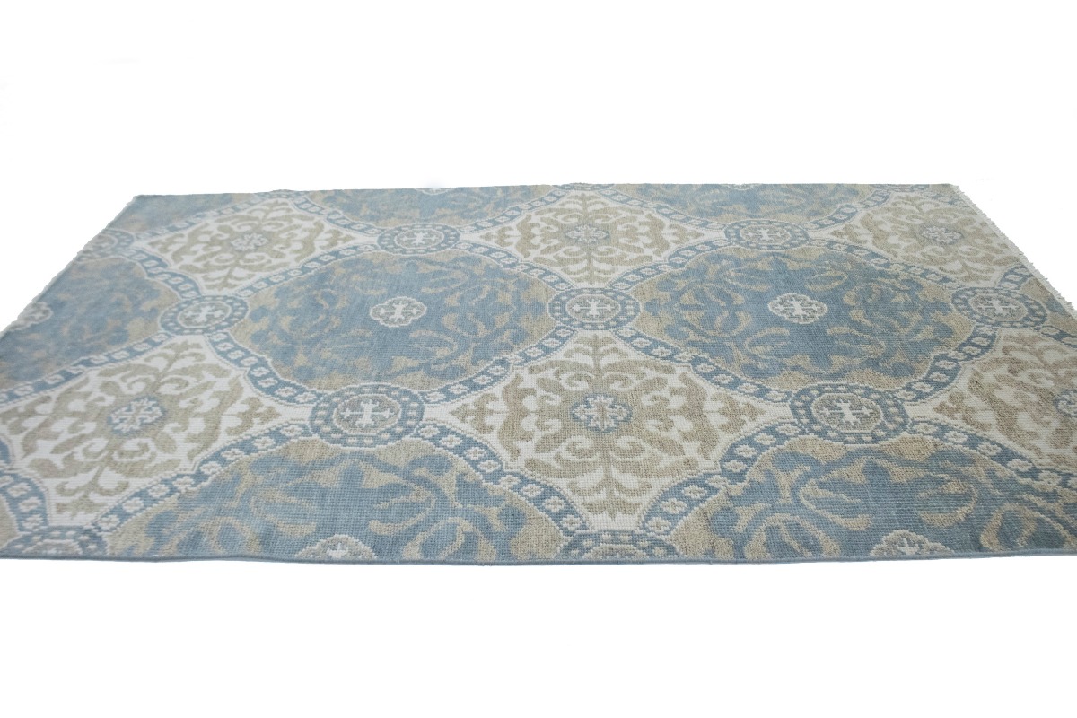 This original 6X9 Teal Blue new Oriental rug was made by the hands of talented weavers influenced by a variety of gorgeous symmetrical artistic designs, to recreate the aged look of the unique piece with a richness of color and very balanced background field. What set this vintage style Oriental area rug from the others are the material and dye used (wool pile and cotton foundation), knot count, antique designs, fantastic grades, and its regional historical connection: it has deep roots, from the story of the people who produced it to the meaning of the symbols and colors displayed across its canvas that have been praised for centuries. This Indian home décor carpet will be completely cozy and inviting that never will go out of style! Also, this Oriental rug would be among your most valuable treasures, it is a great investment that accrues value over time, and it will last a lifetime because was woven with high-quality, all-natural wool. Eco-friendly, opulent yet affordable; this rug will give you an extra pop of character to help define your home environment with sophistication and warmth that will capture the eyes and attention of your audience (homeowners, designers, decorators, family and friends). OT-1900