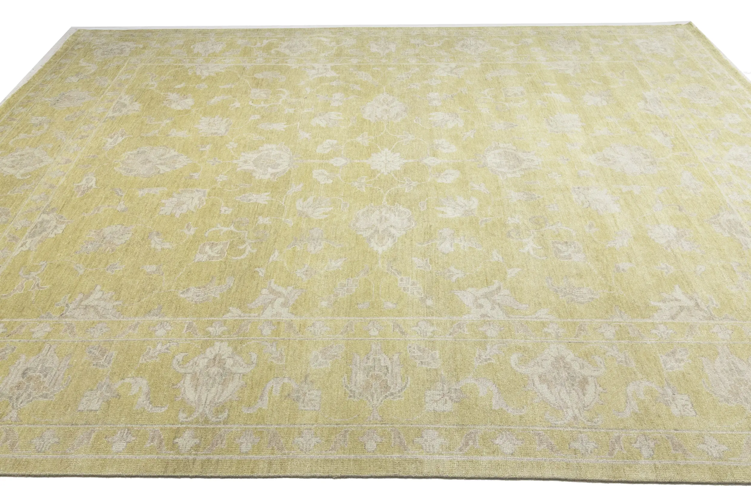 Muted Golden Yellow Floral 12X15 Transitional Oriental Rug