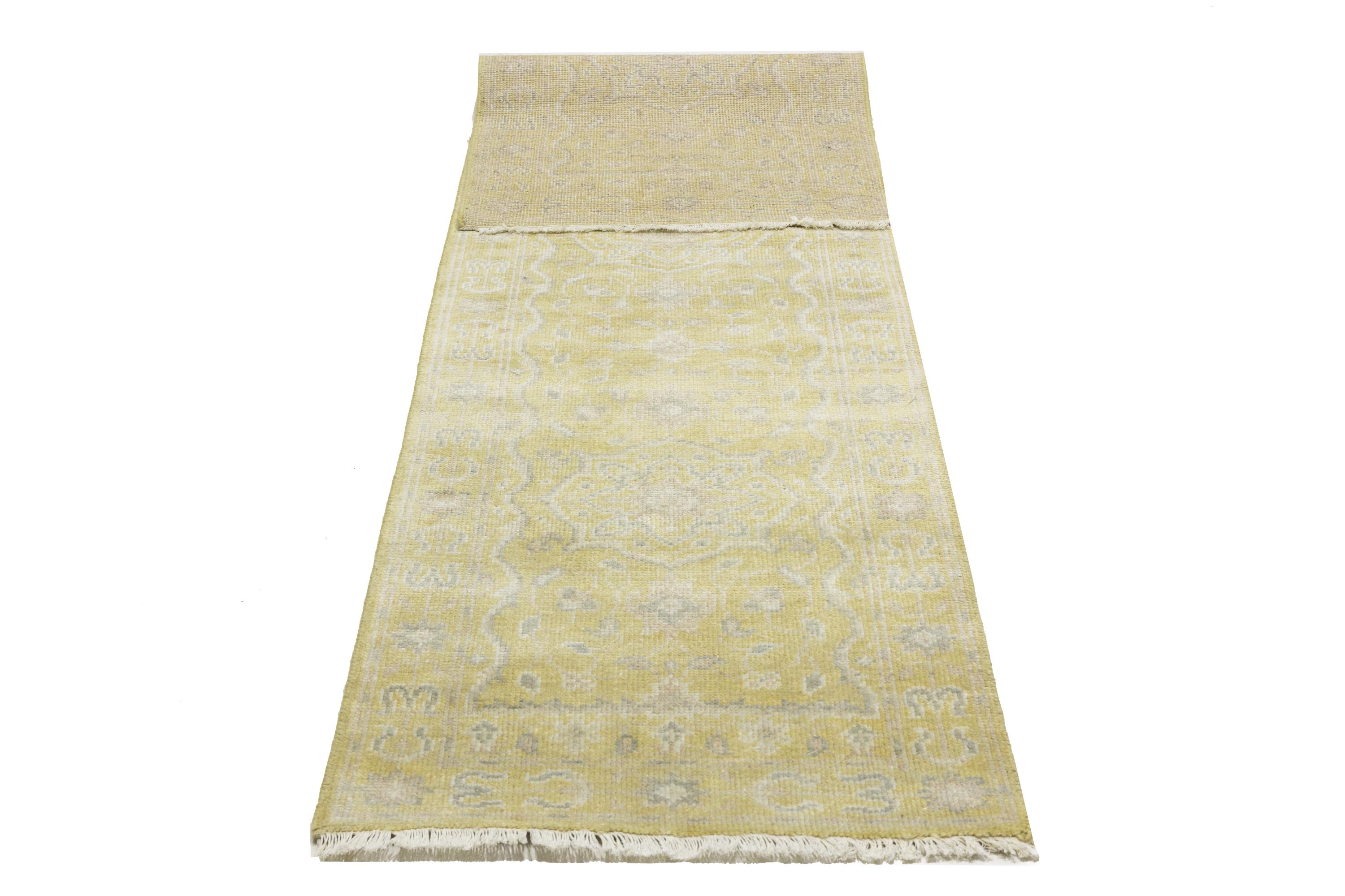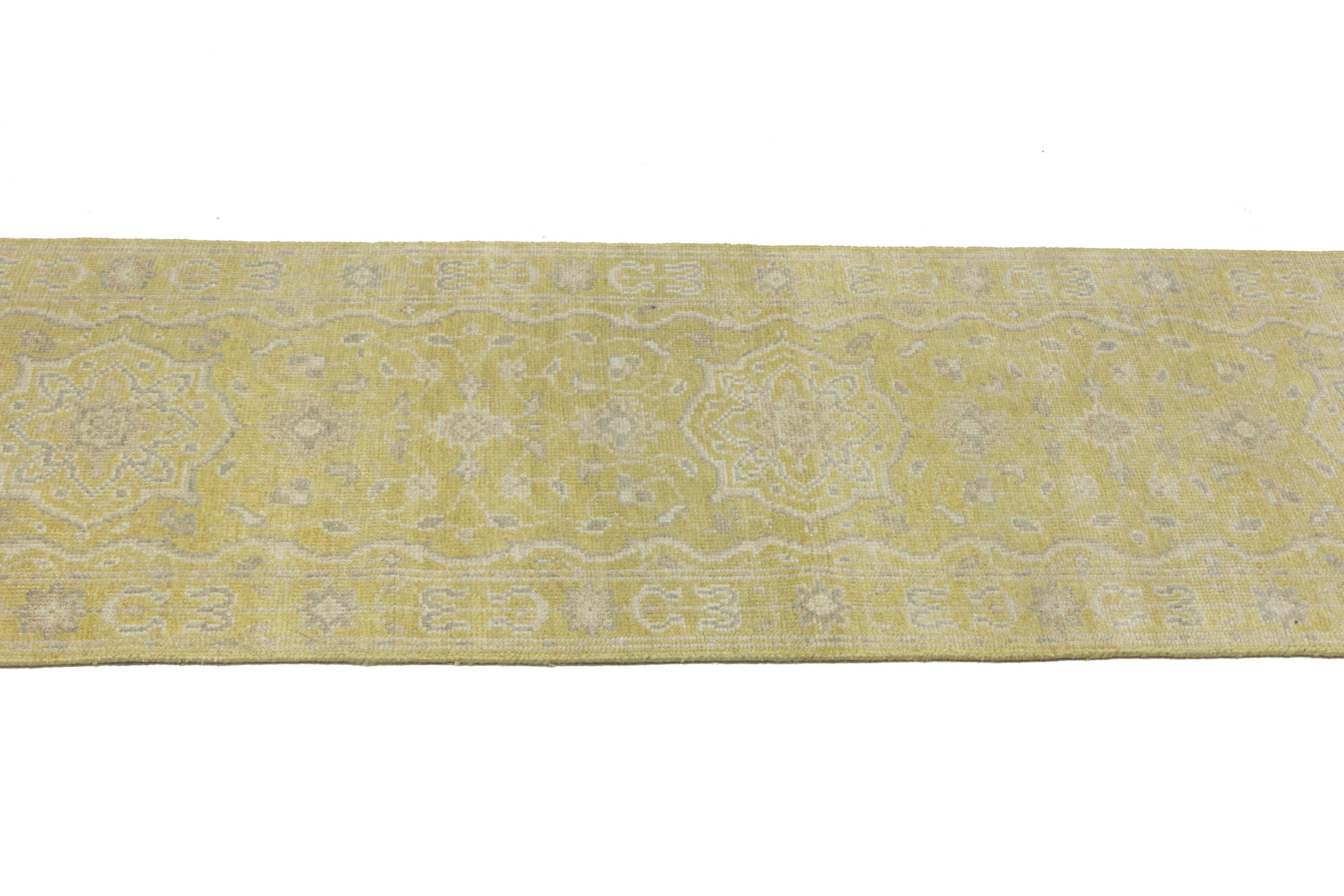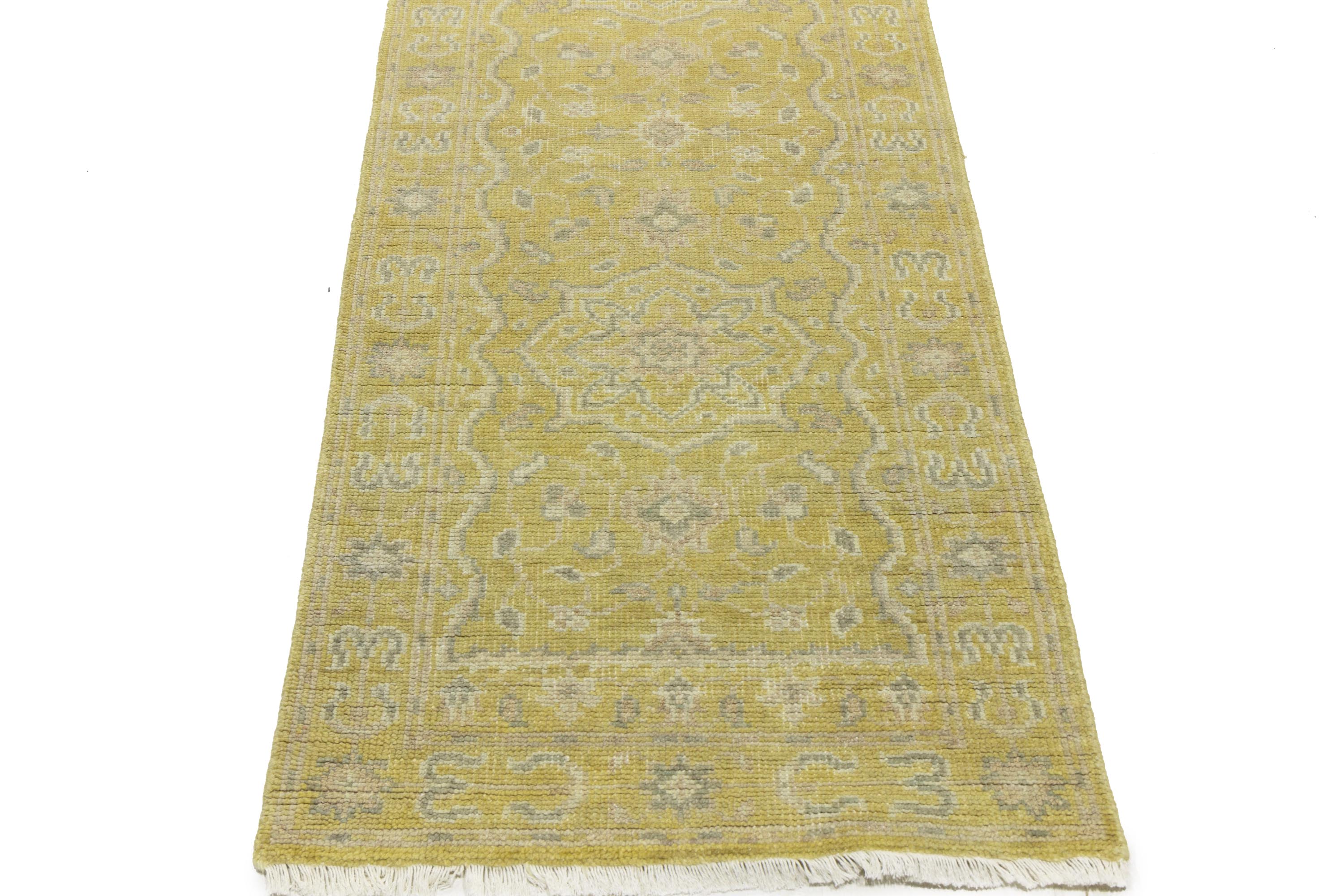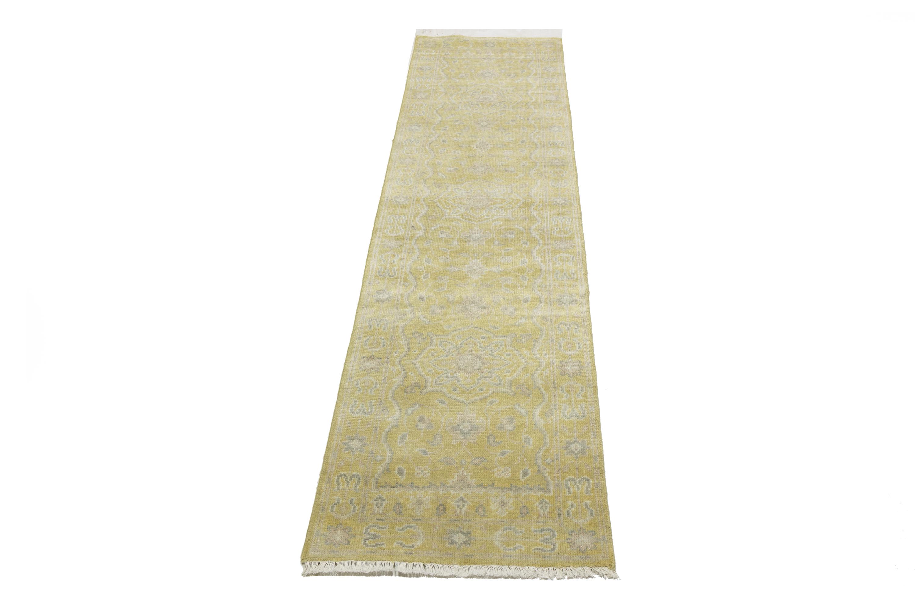 Muted Golden Yellow Floral 3X10 Transitional Oriental Runner Rug