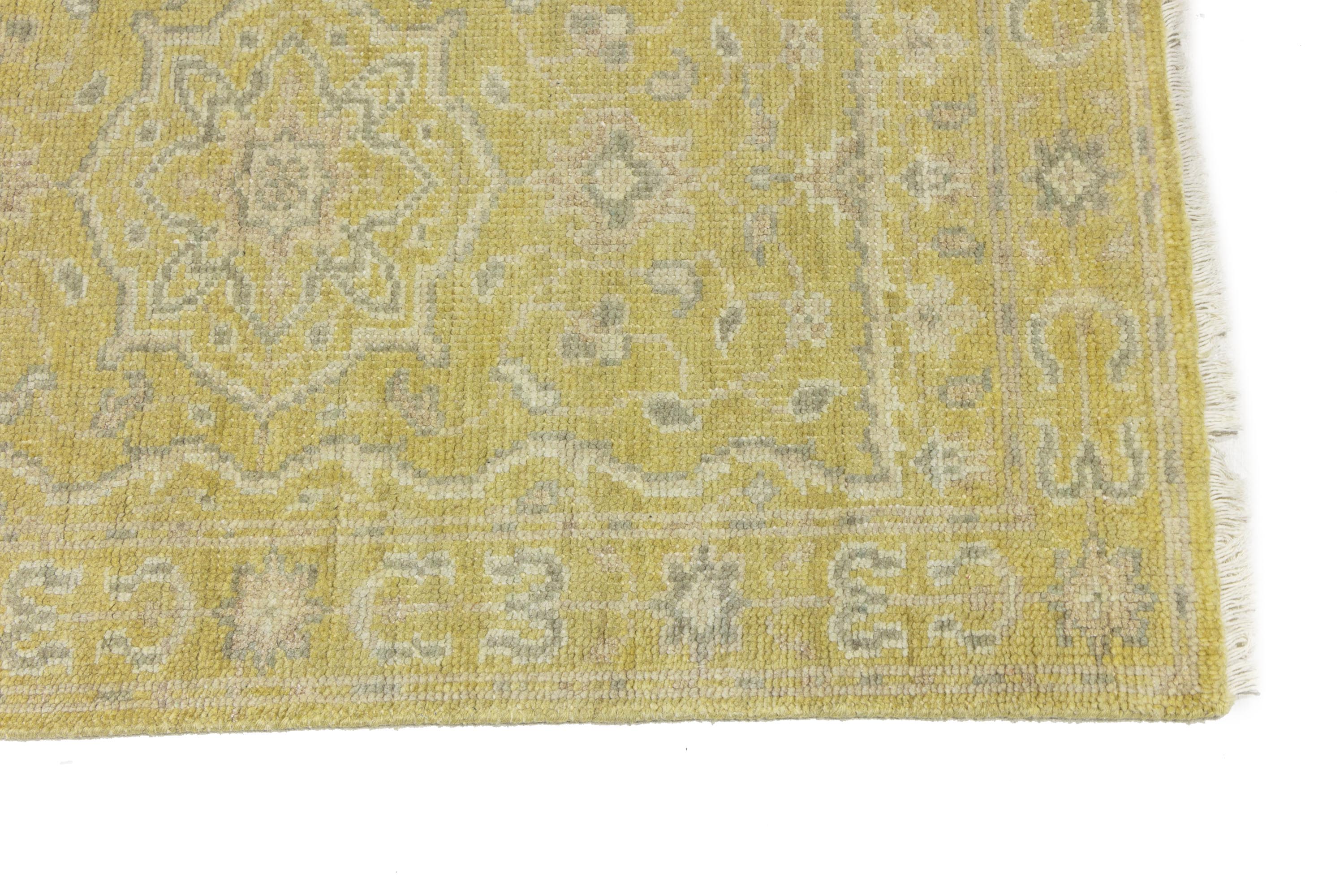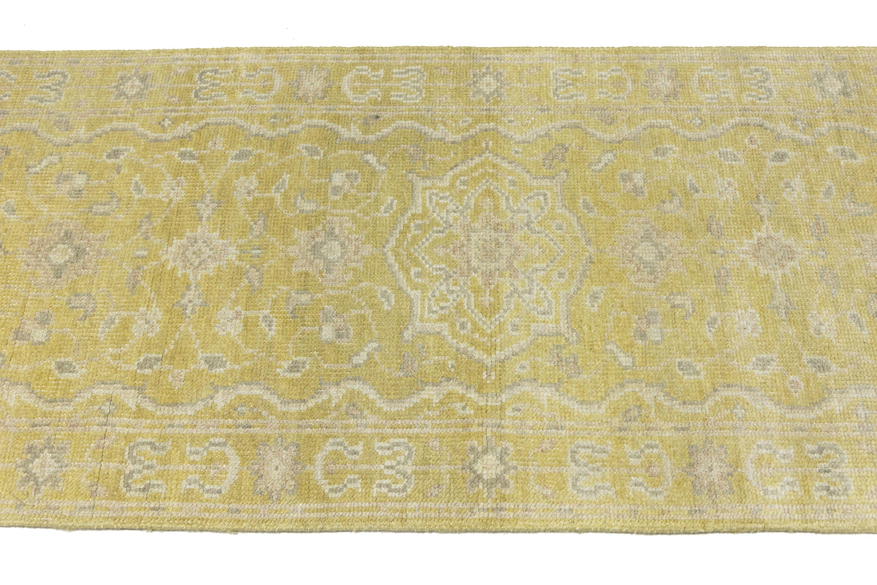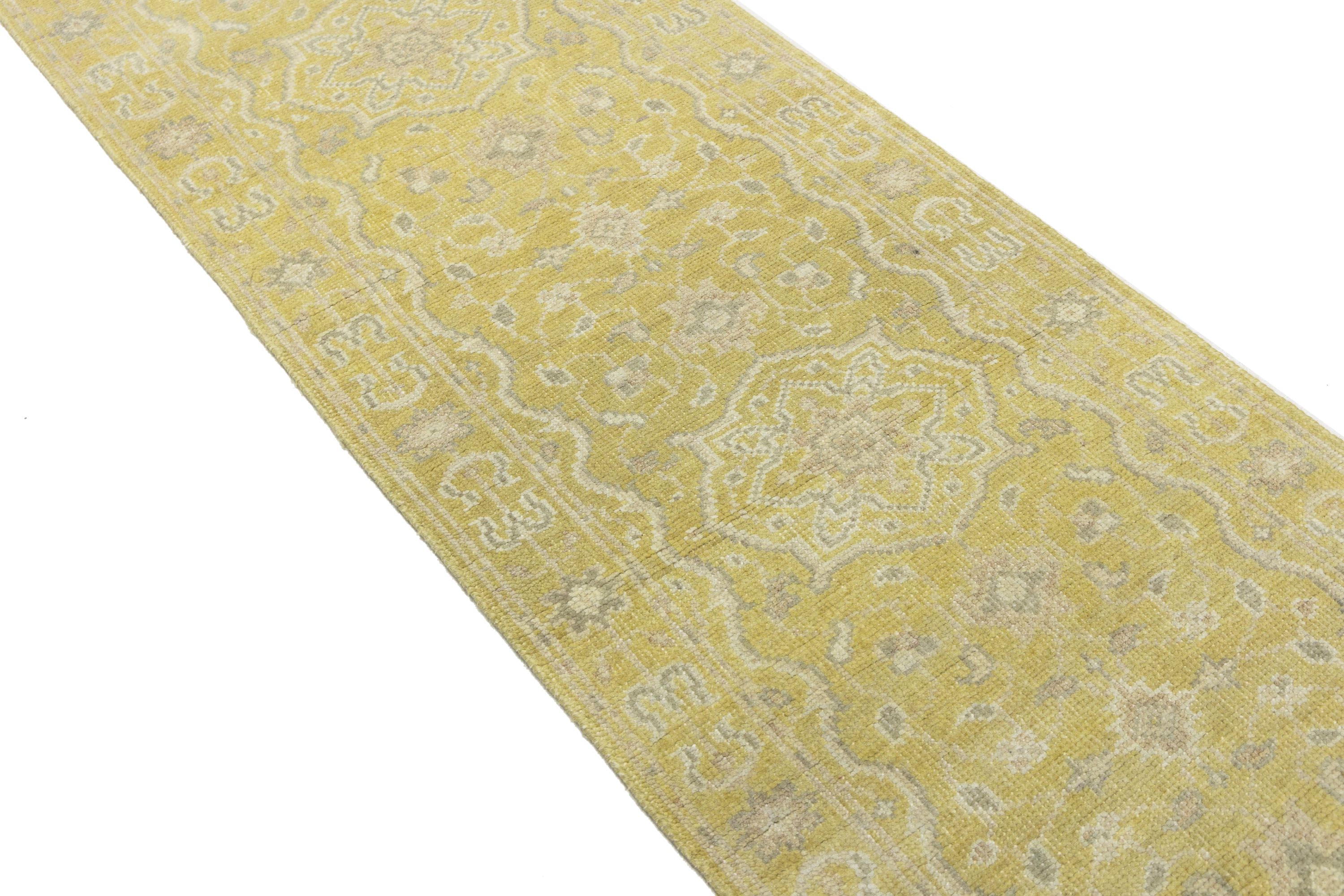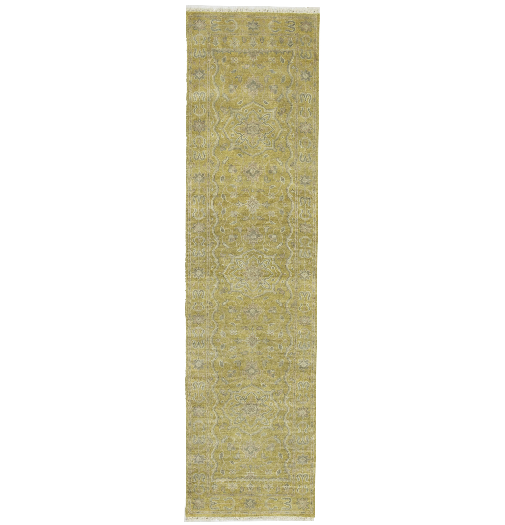 Muted Golden Yellow Floral 3X10 Transitional Oriental Runner Rug