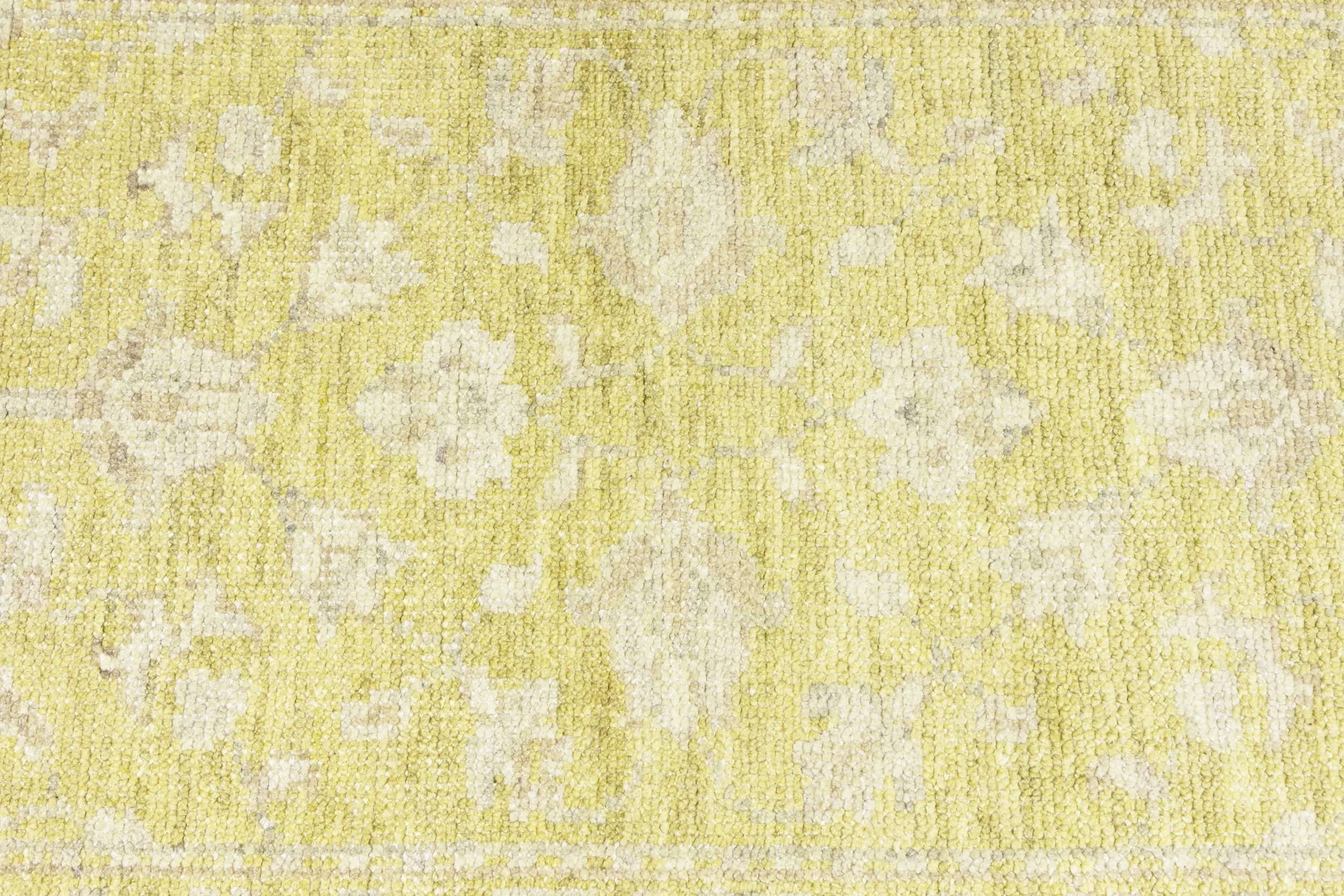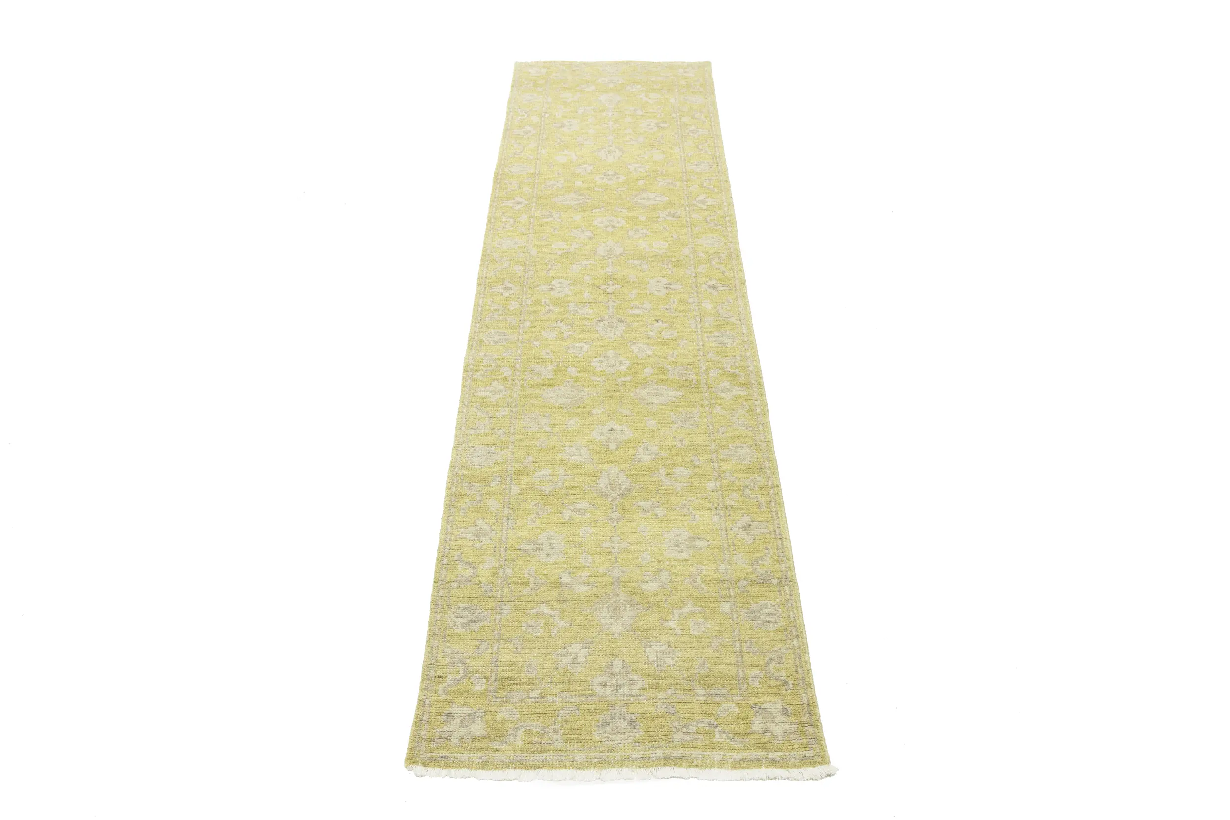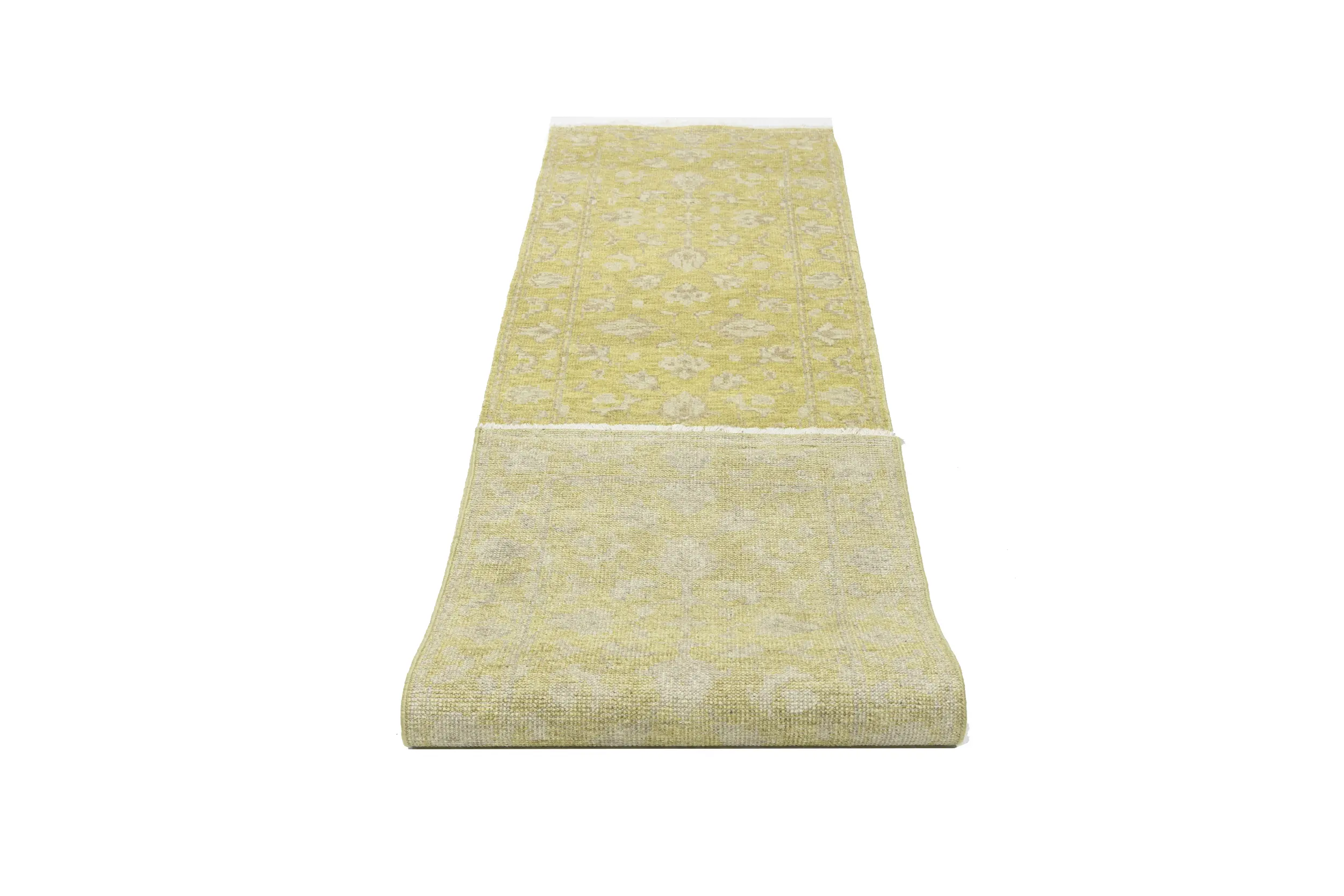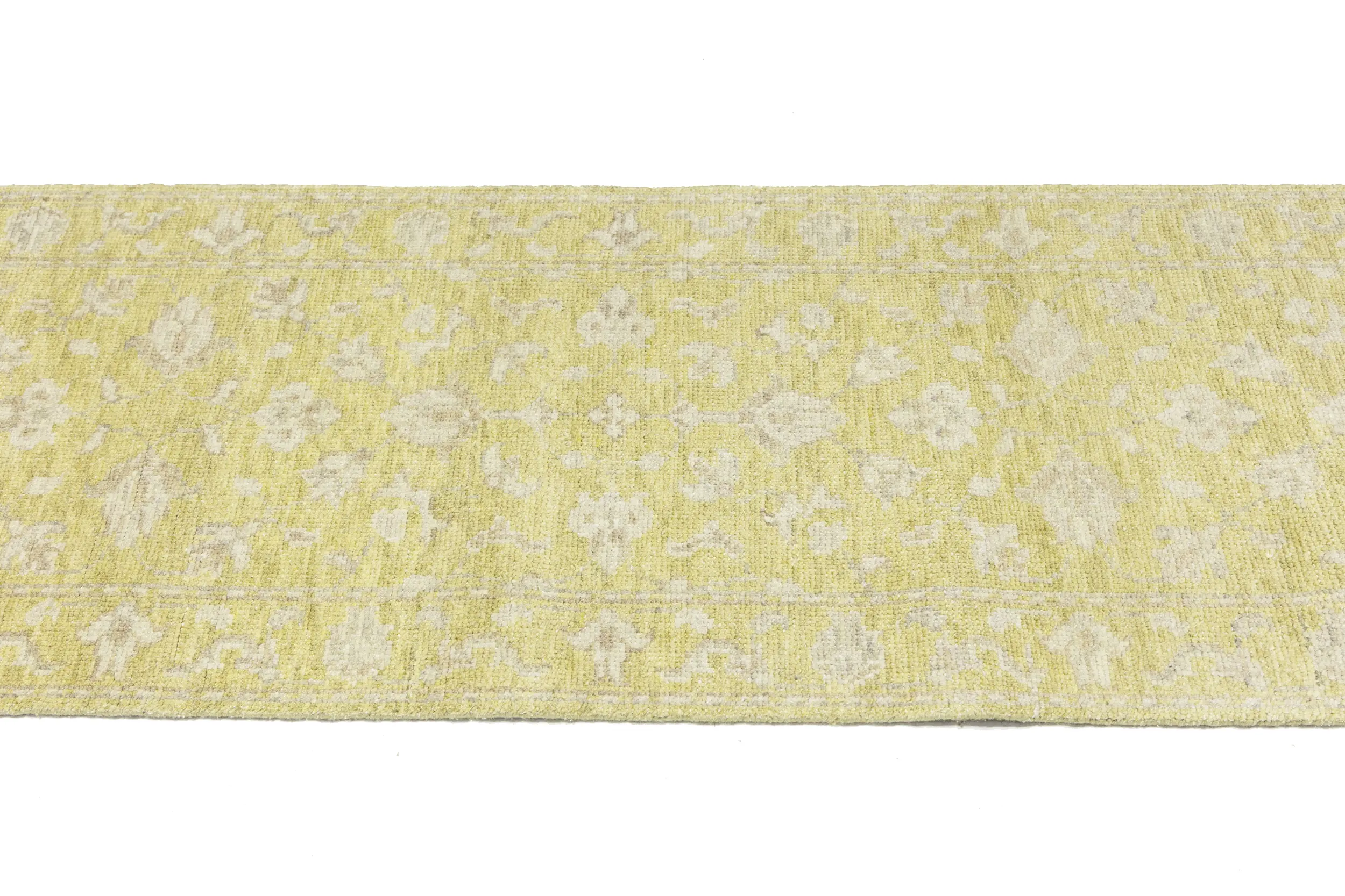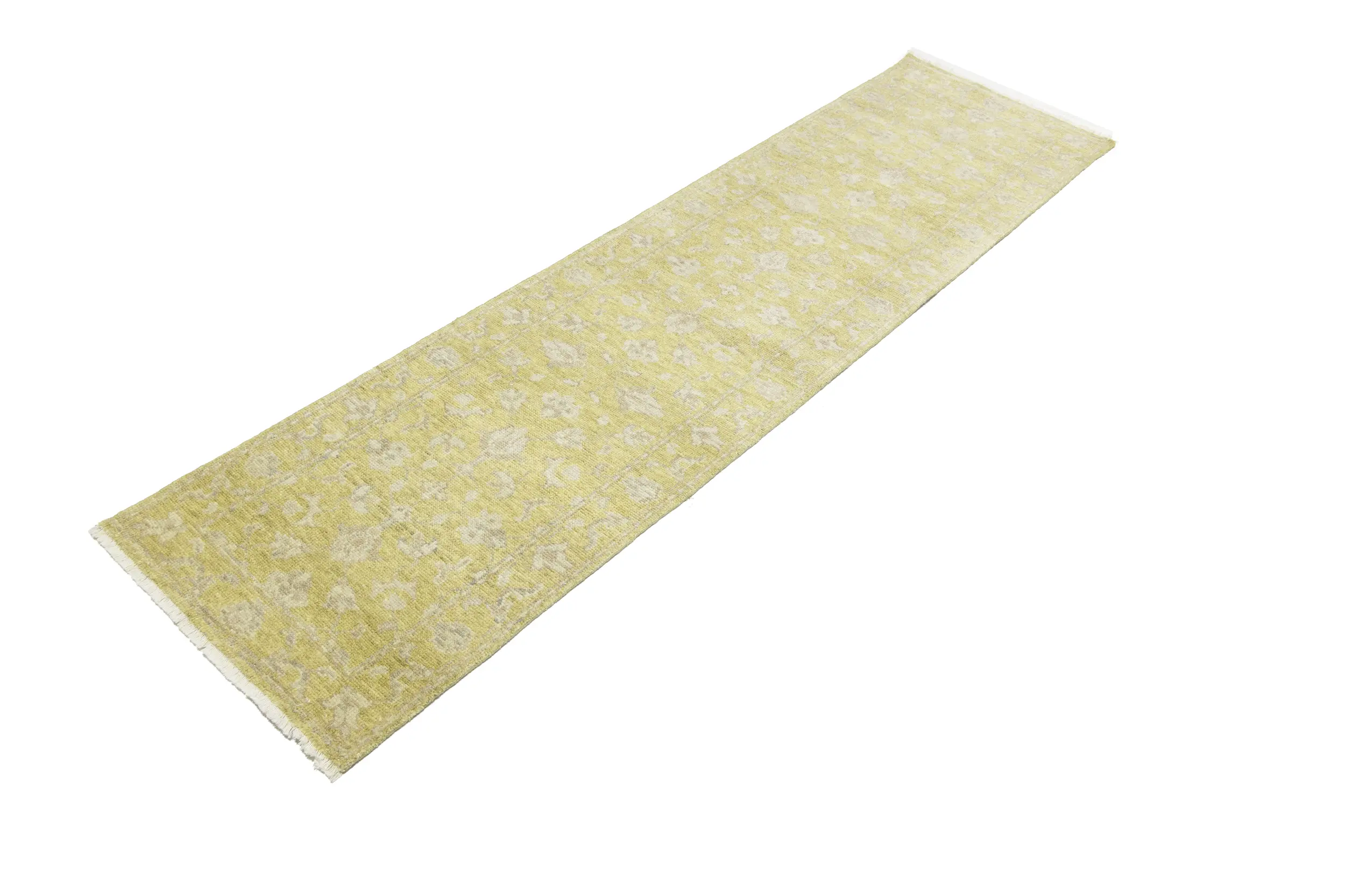 Muted Golden Yellow Floral 3X10 Transitional Oriental Runner Rug